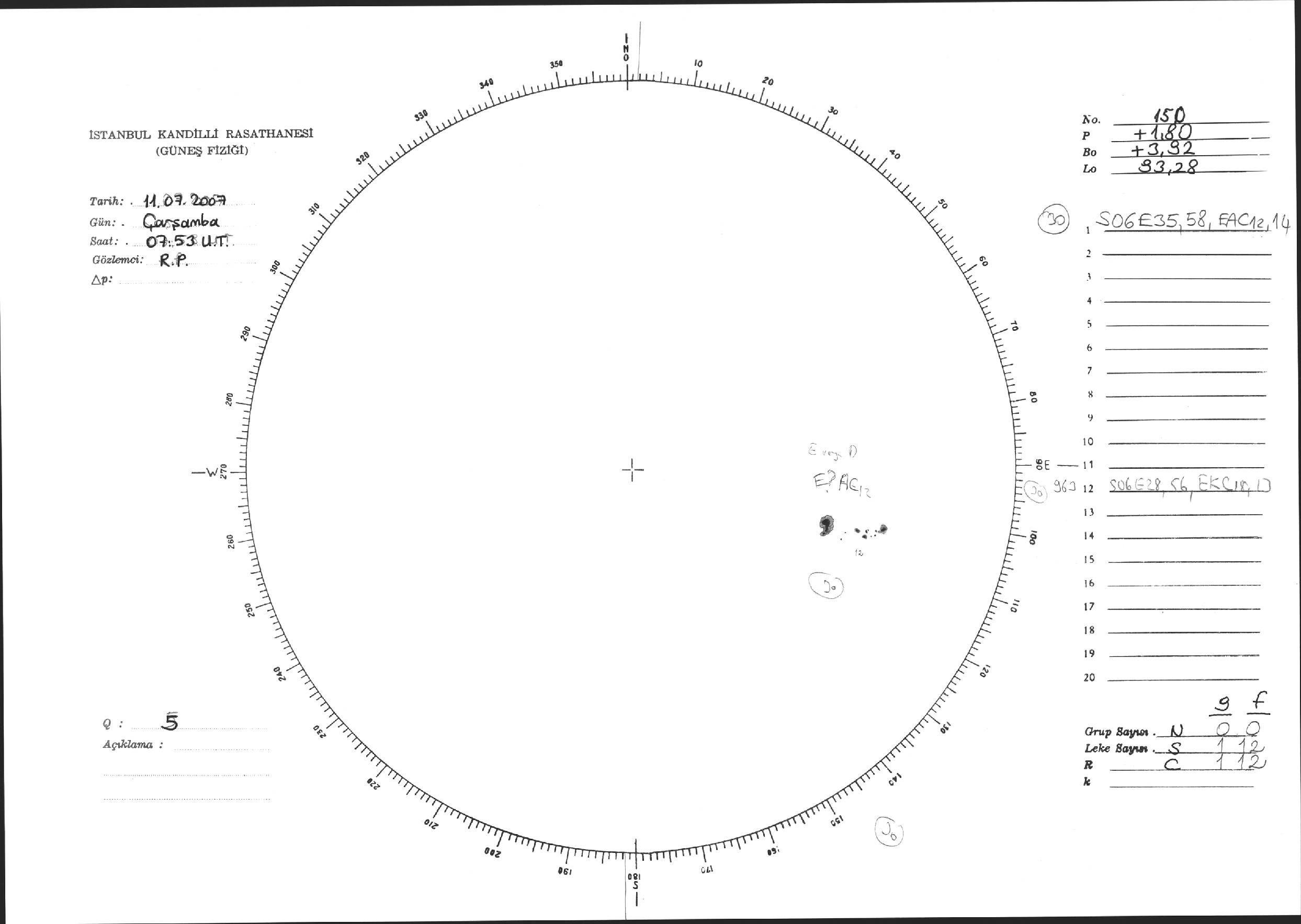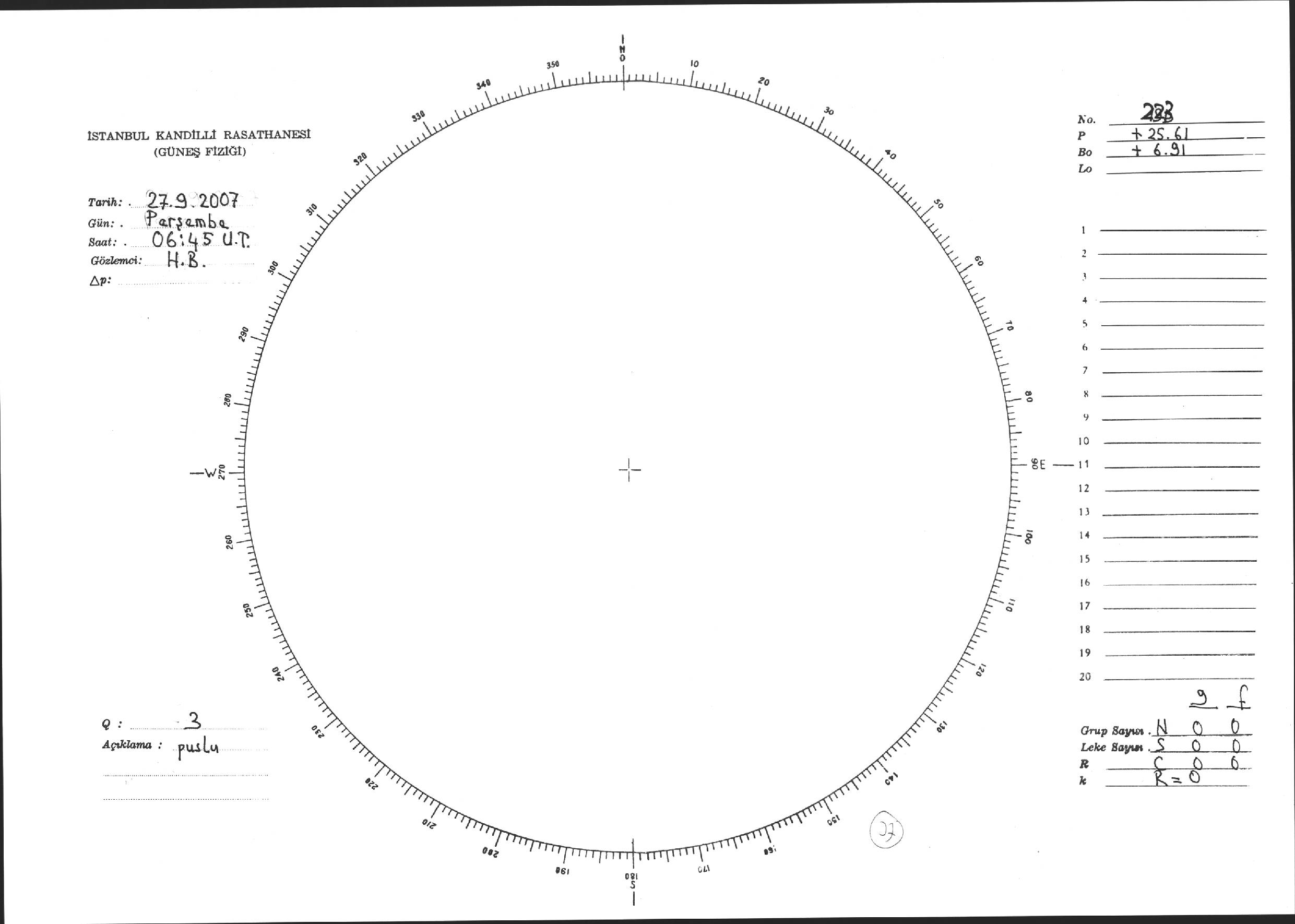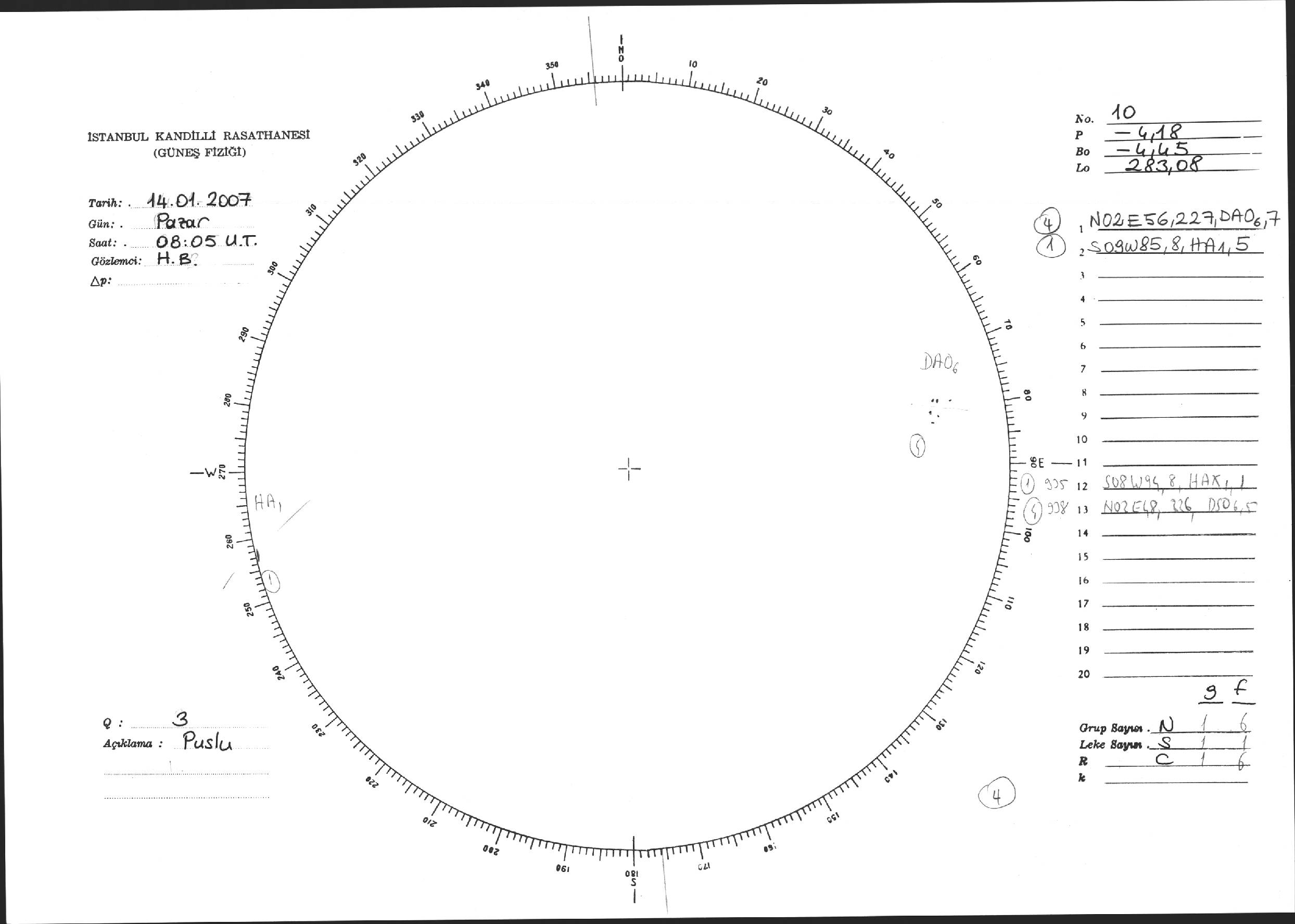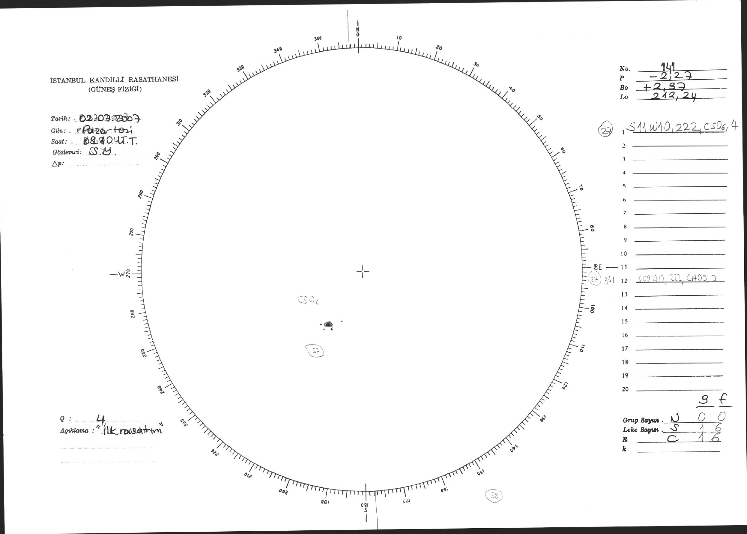 Güneş Lekesi Çizimleri / Kandilli Sunspot Drawings