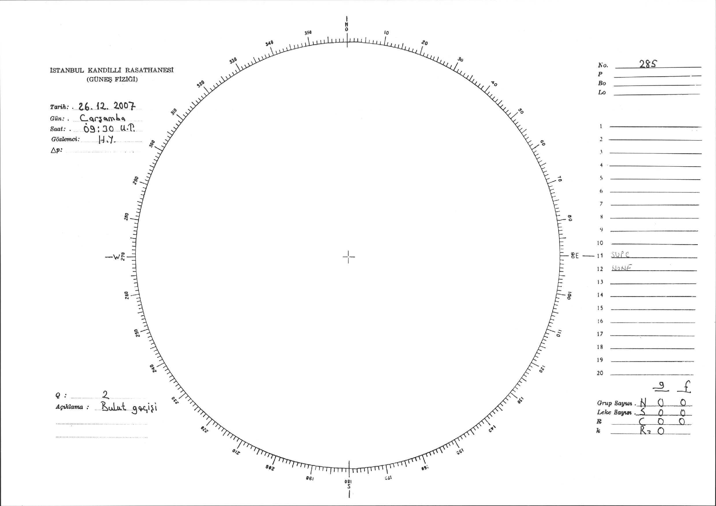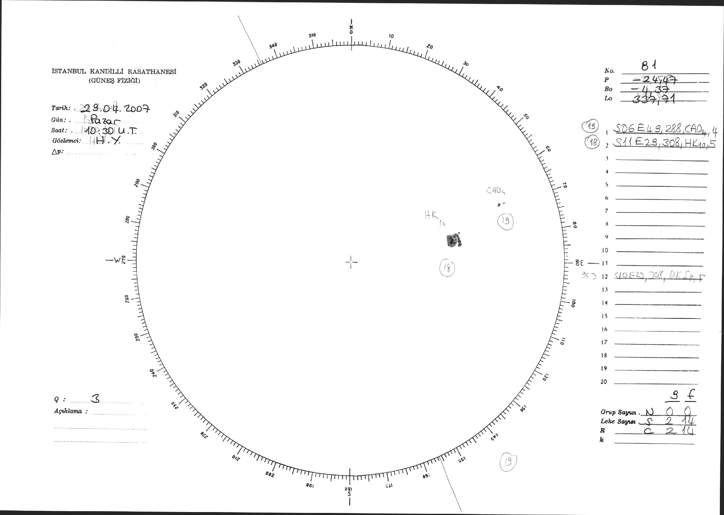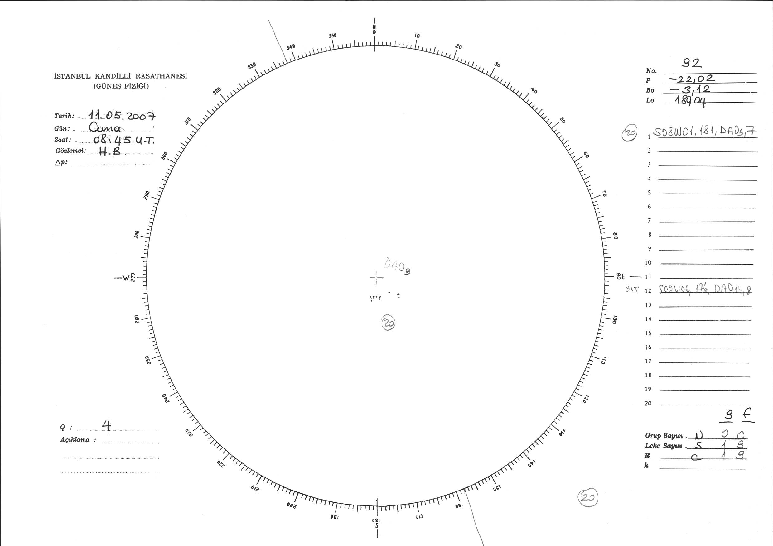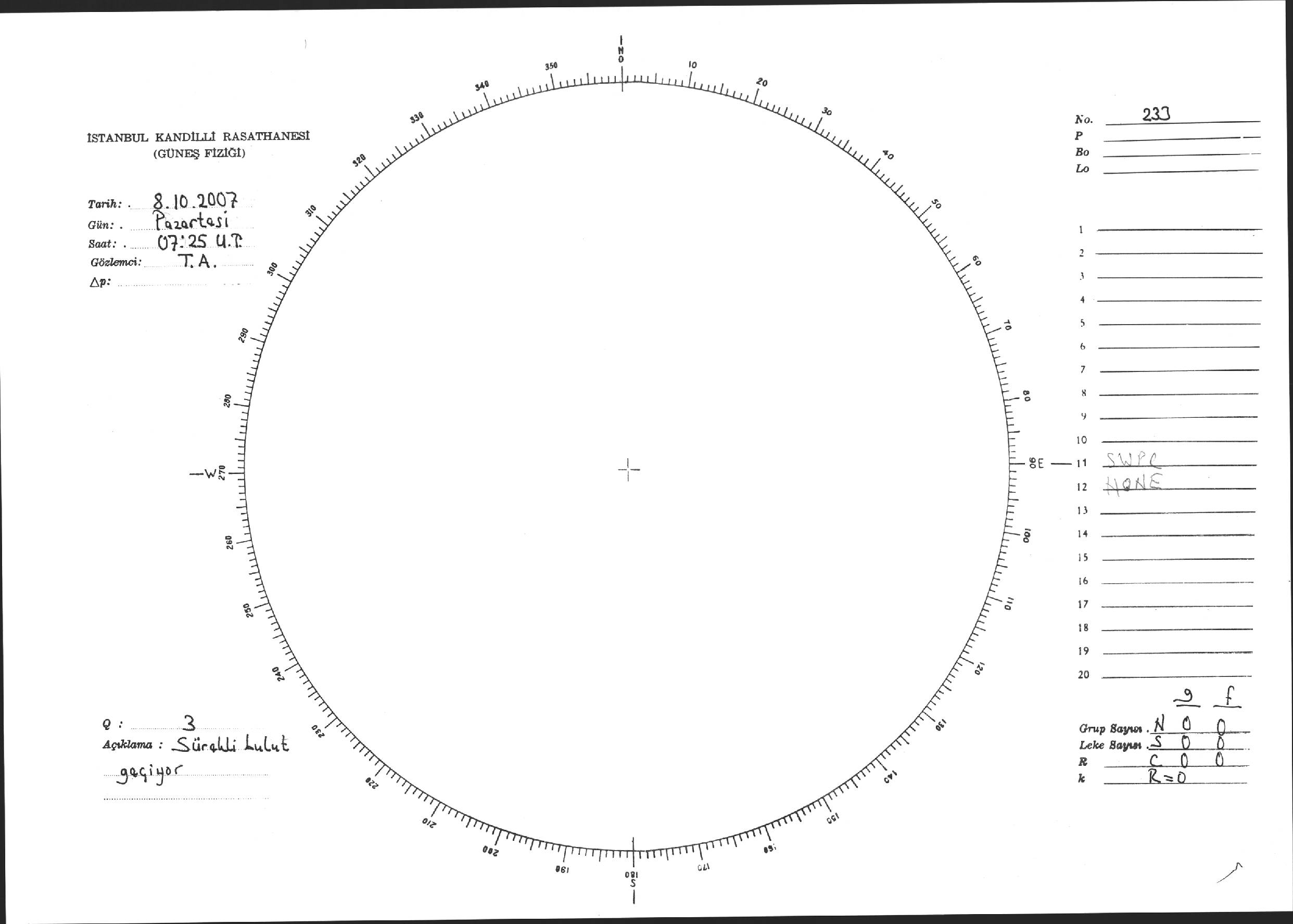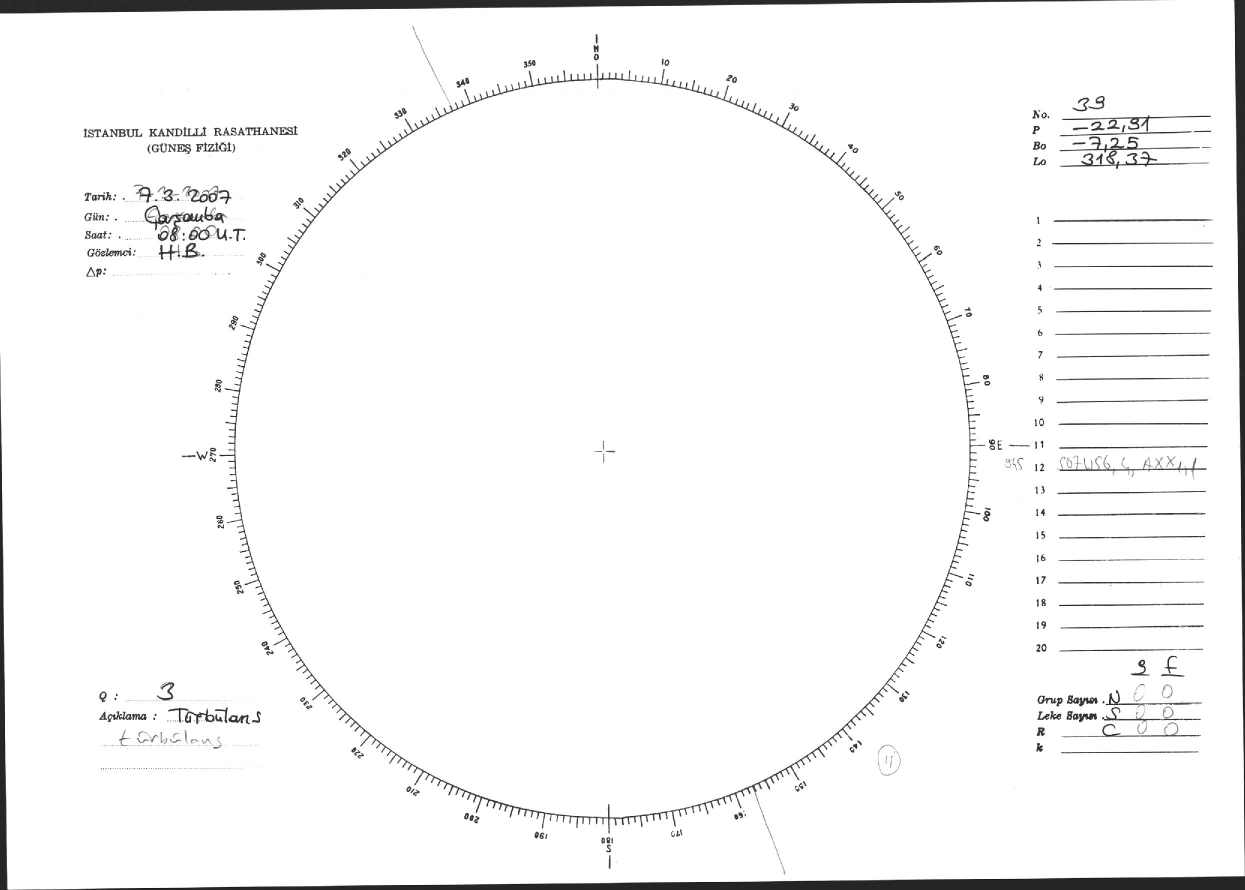 Güneş Lekesi Çizimleri / Kandilli Sunspot Drawings