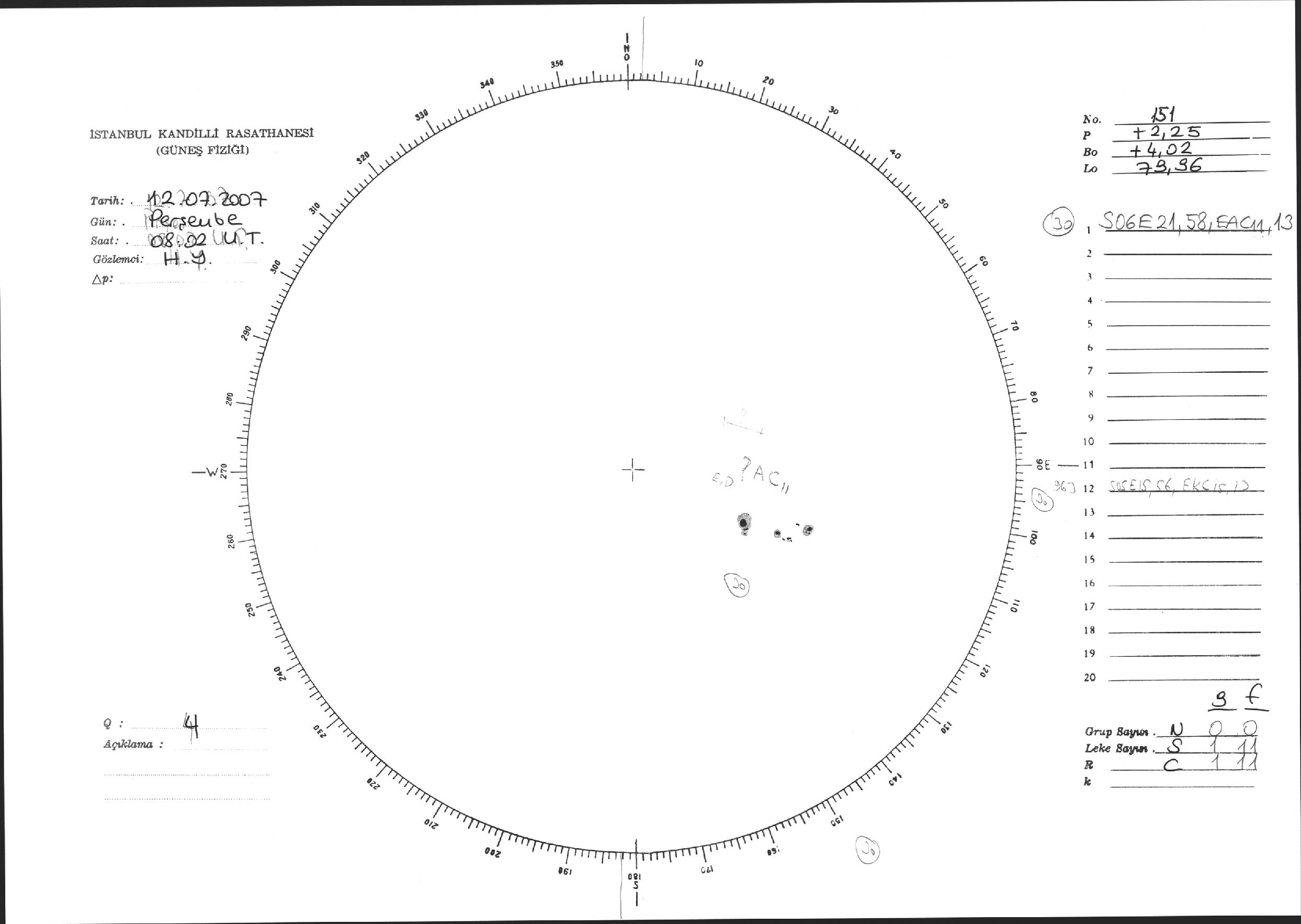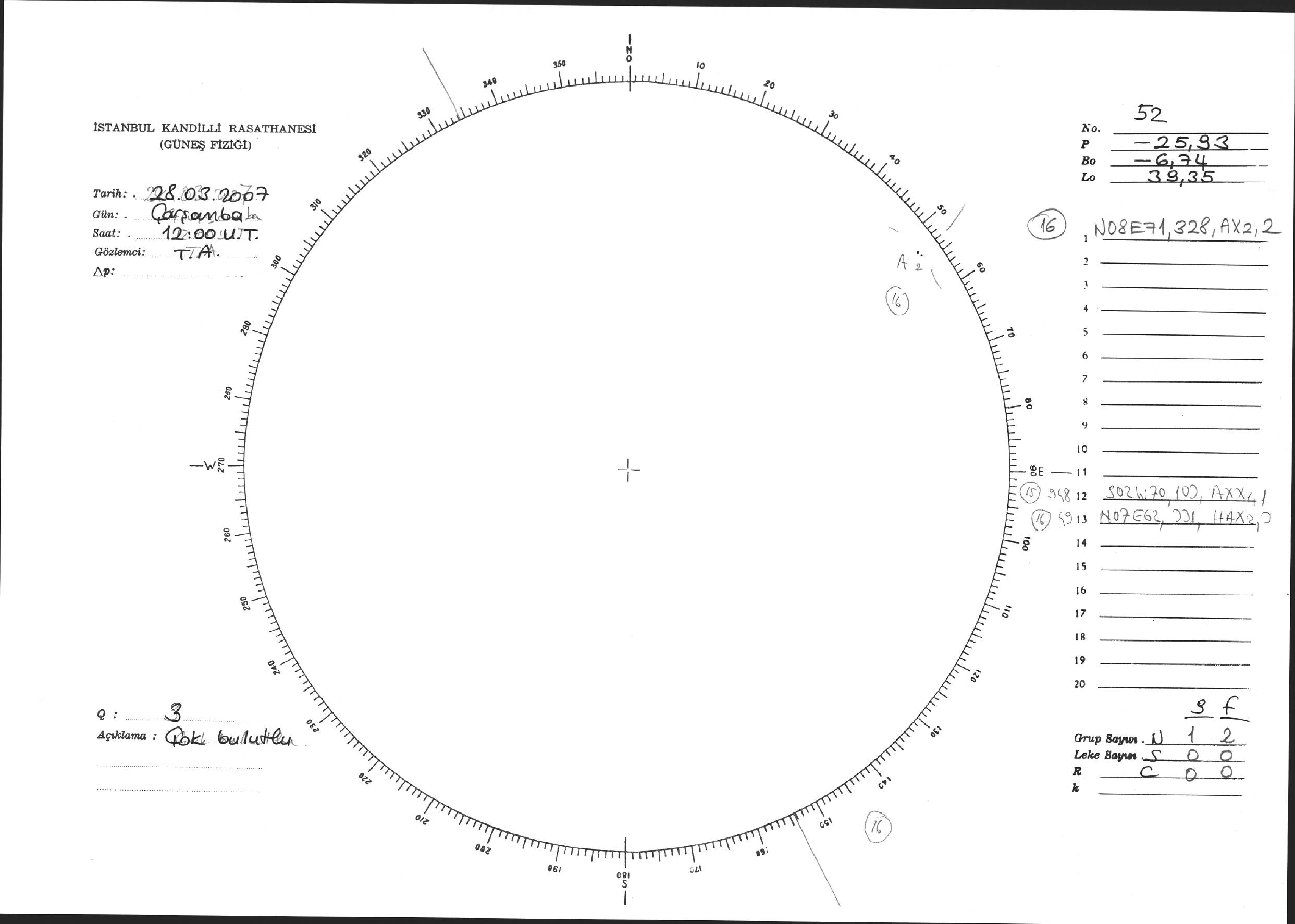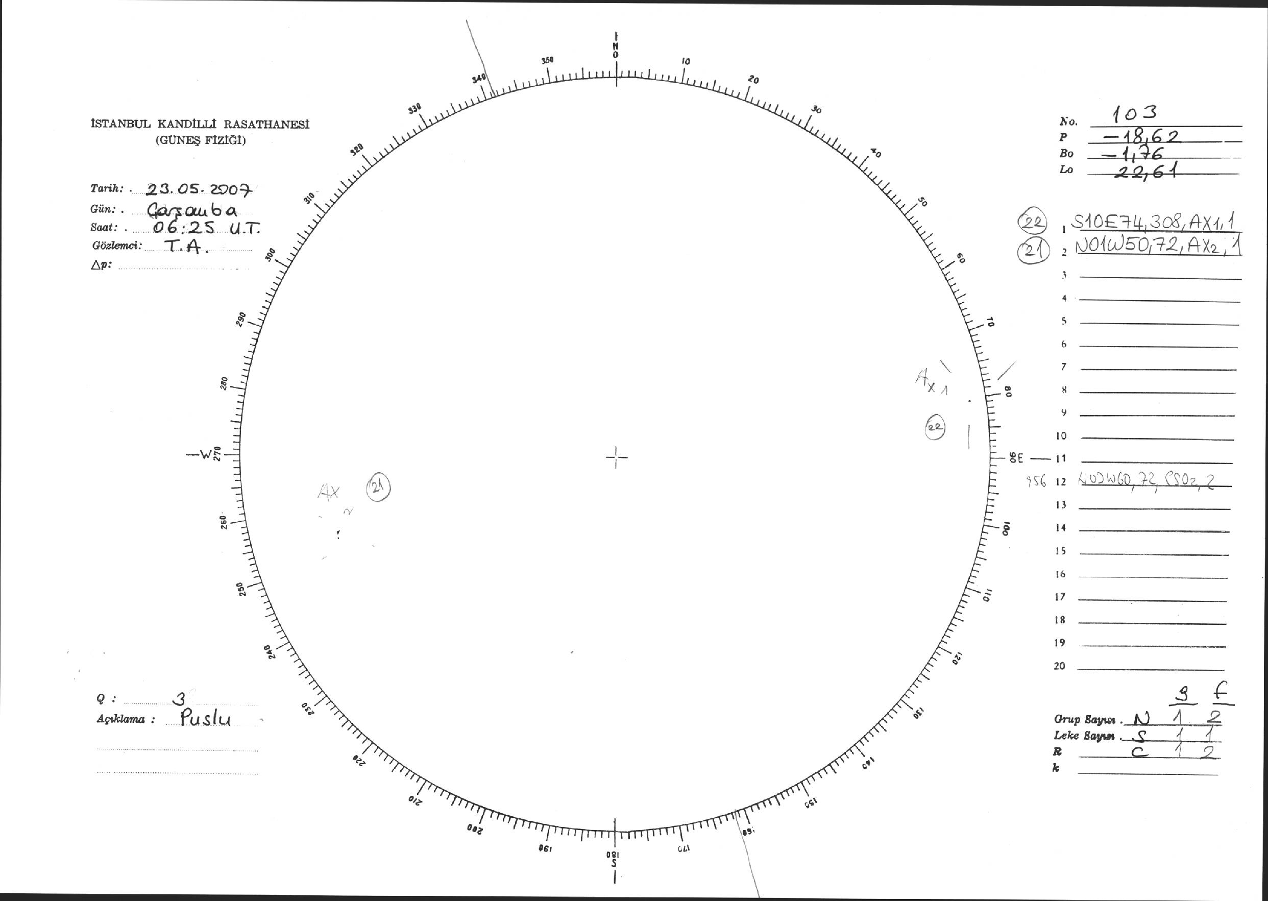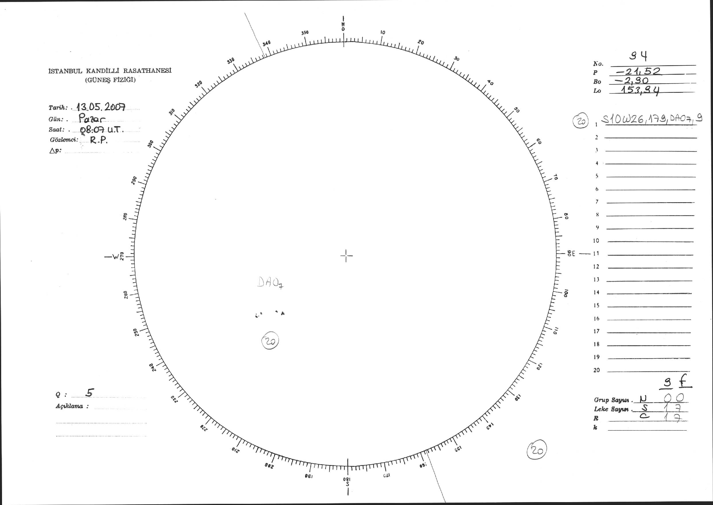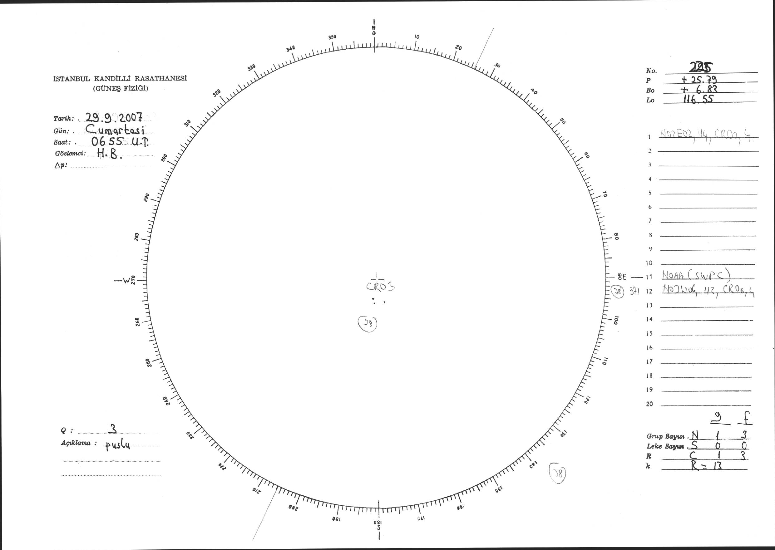 Güneş Lekesi Çizimleri / Kandilli Sunspot Drawings