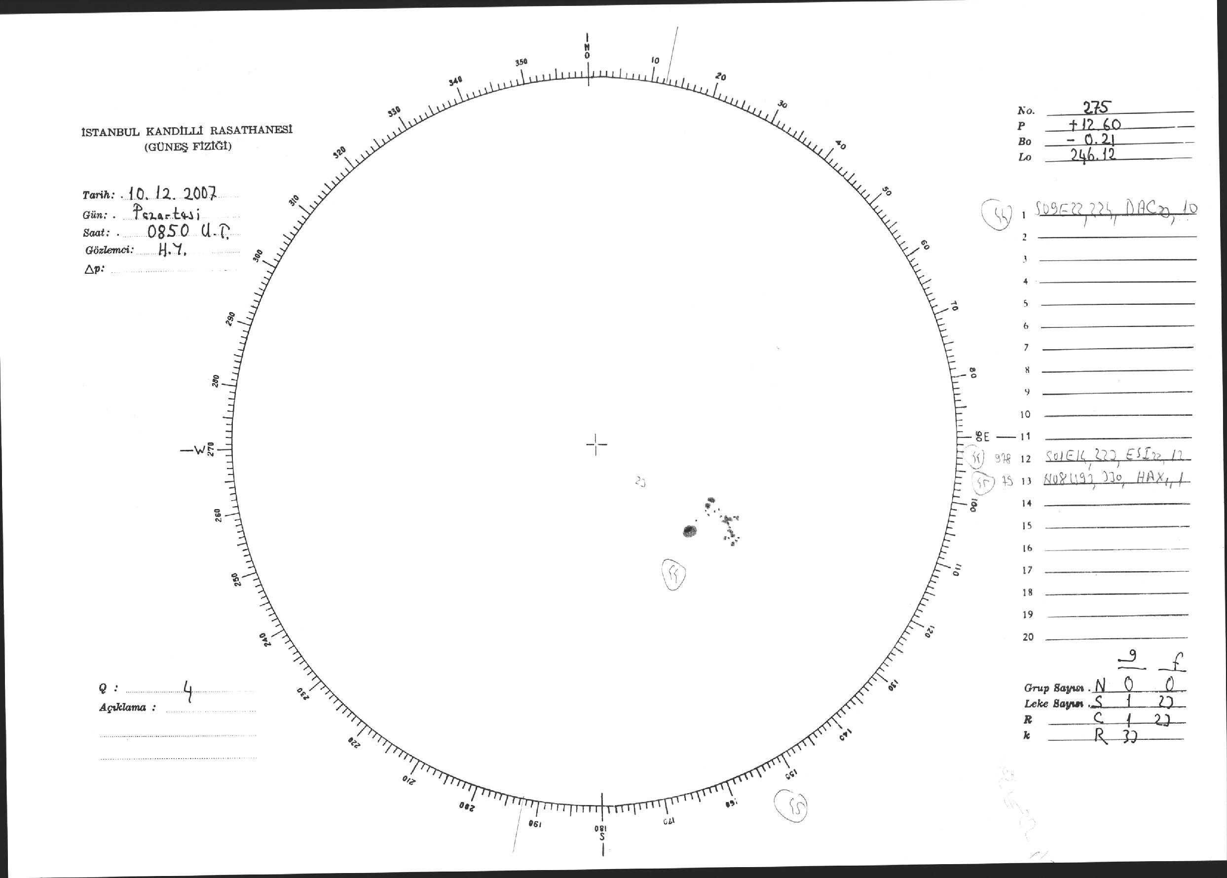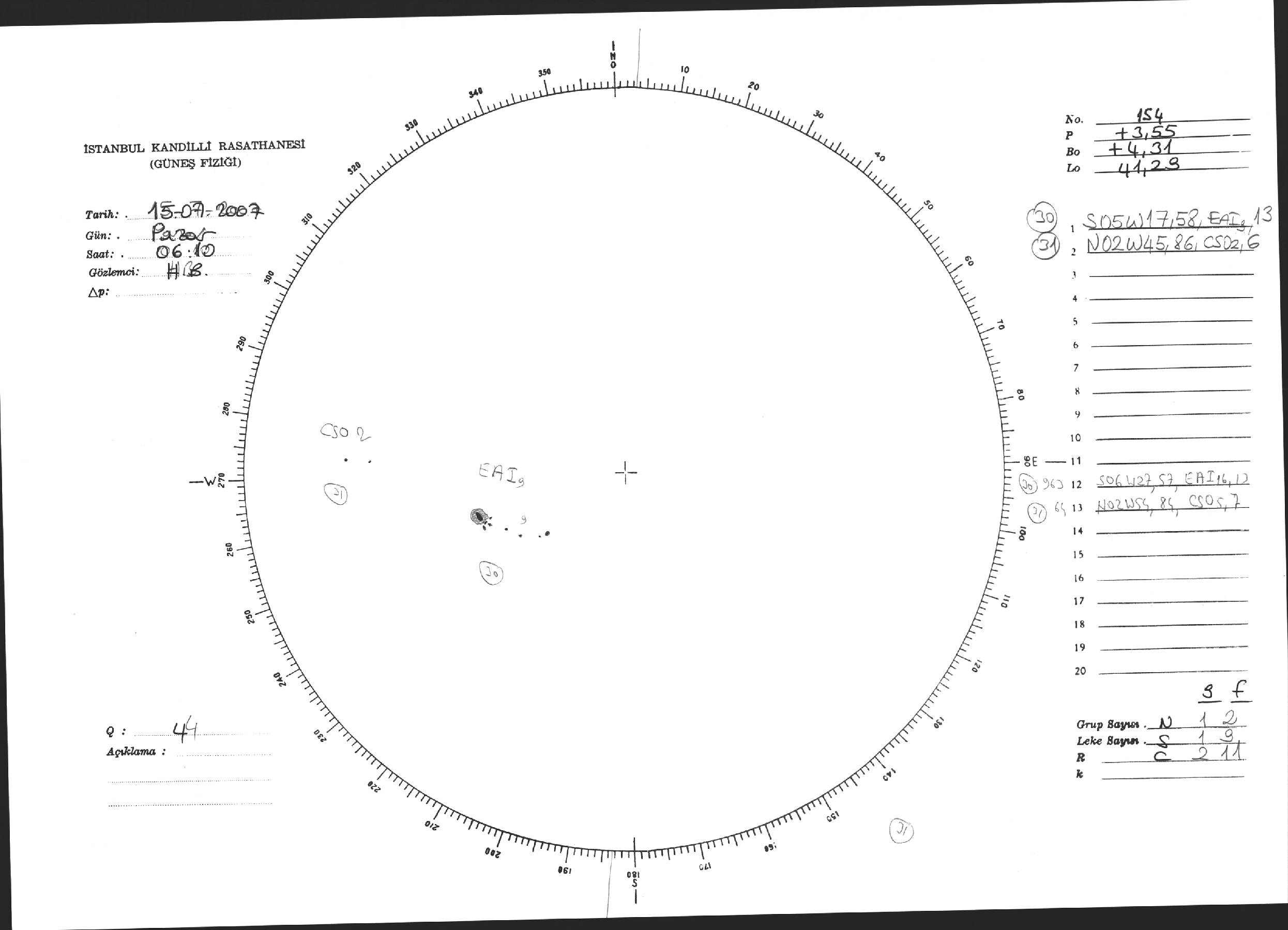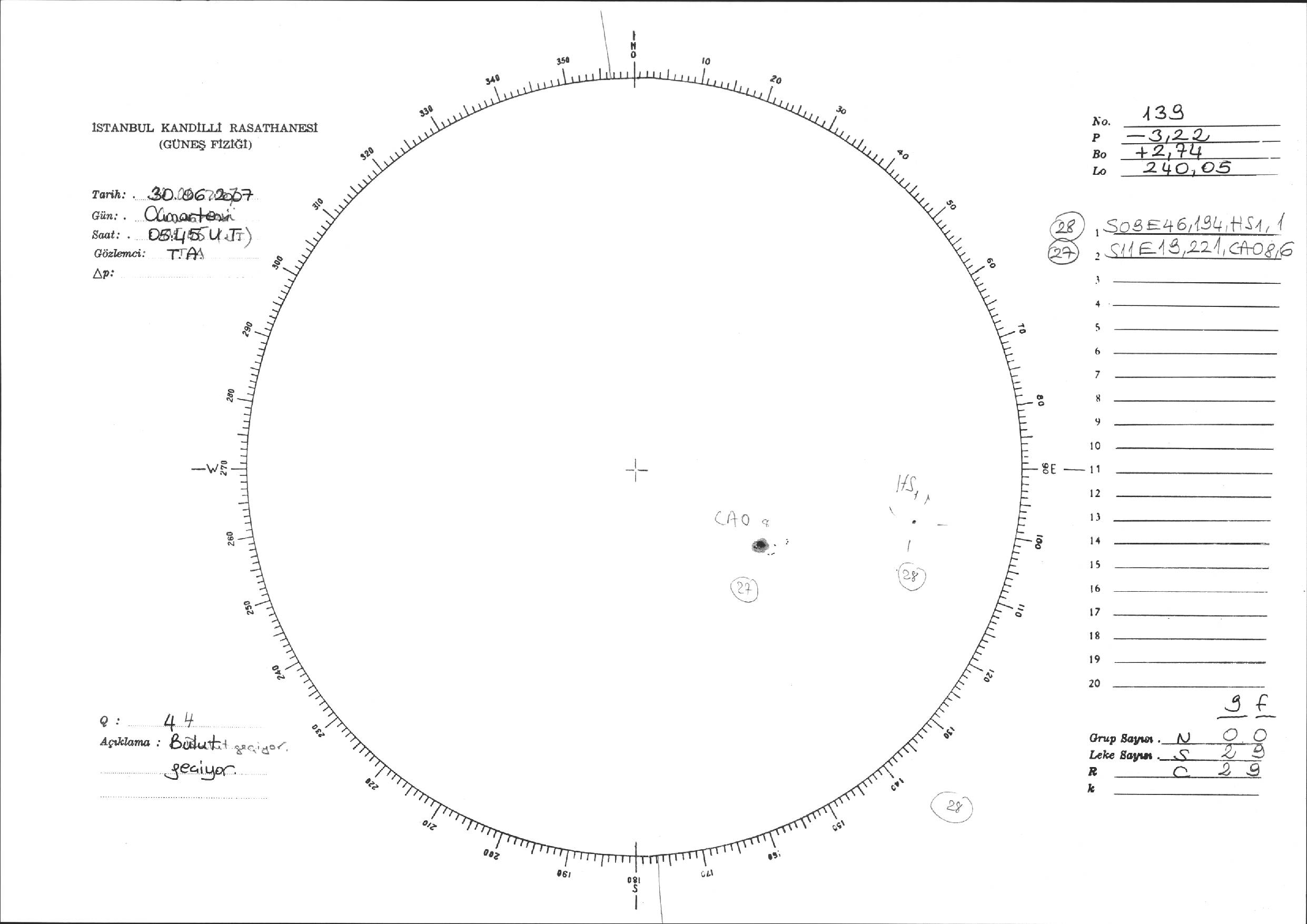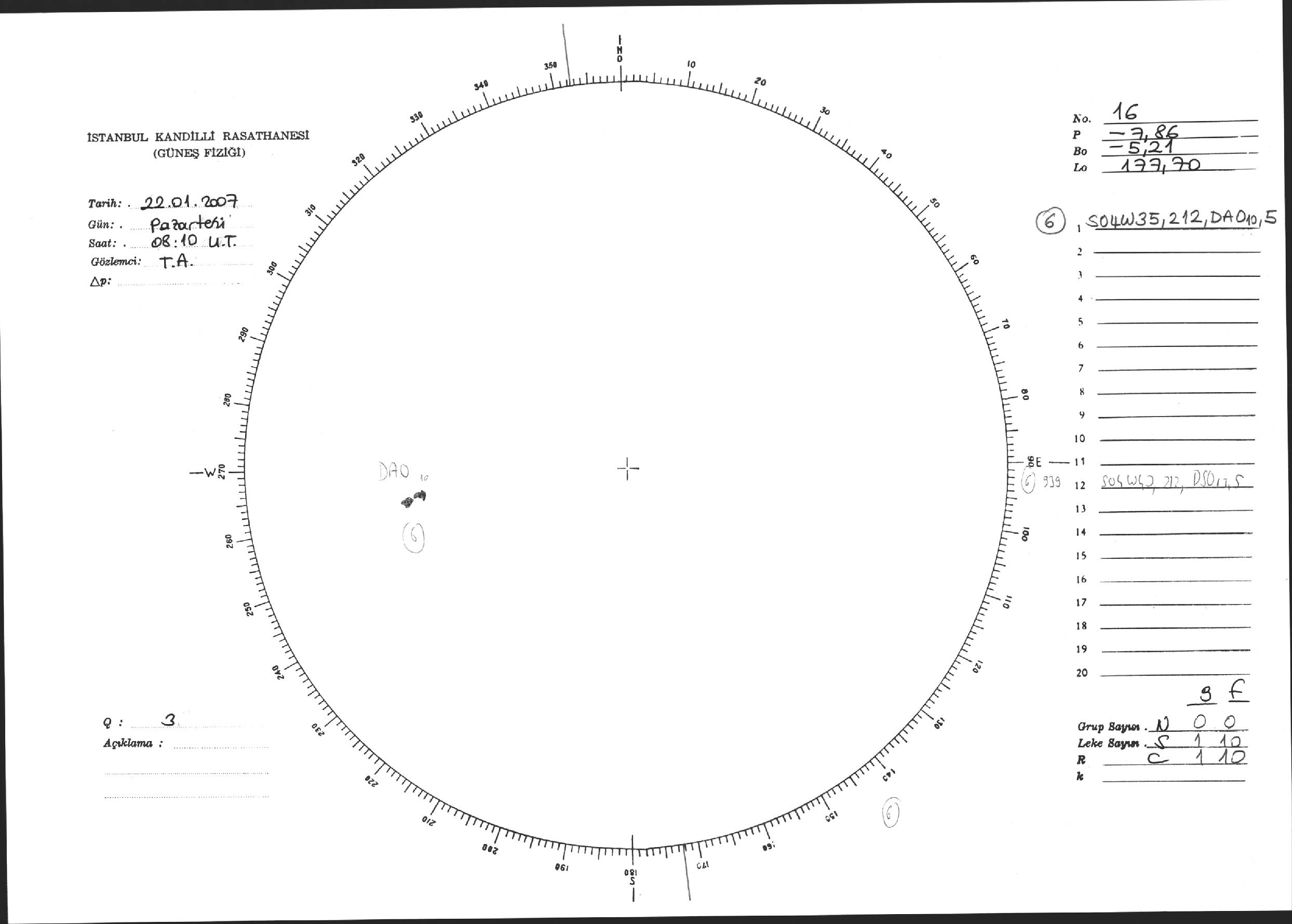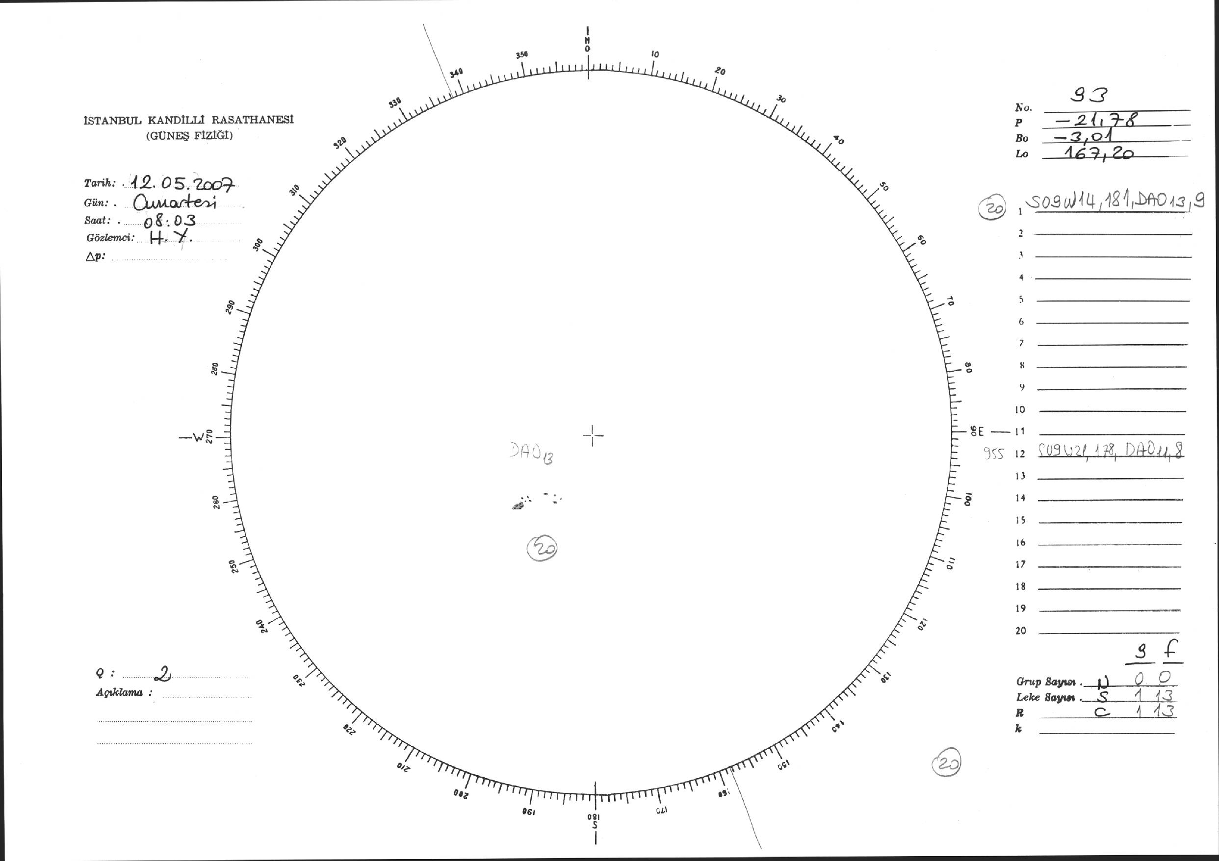 Güneş Lekesi Çizimleri / Kandilli Sunspot Drawings