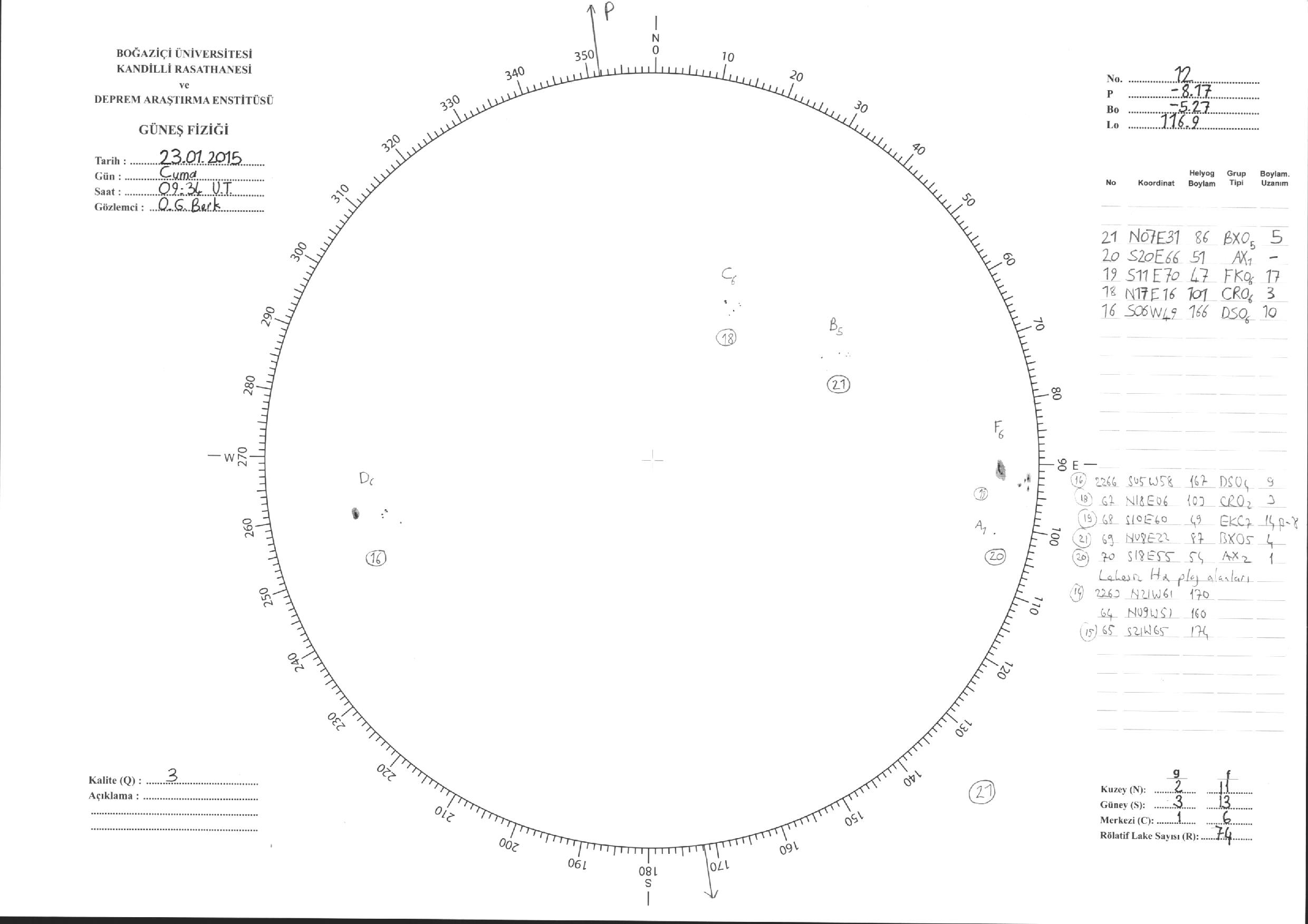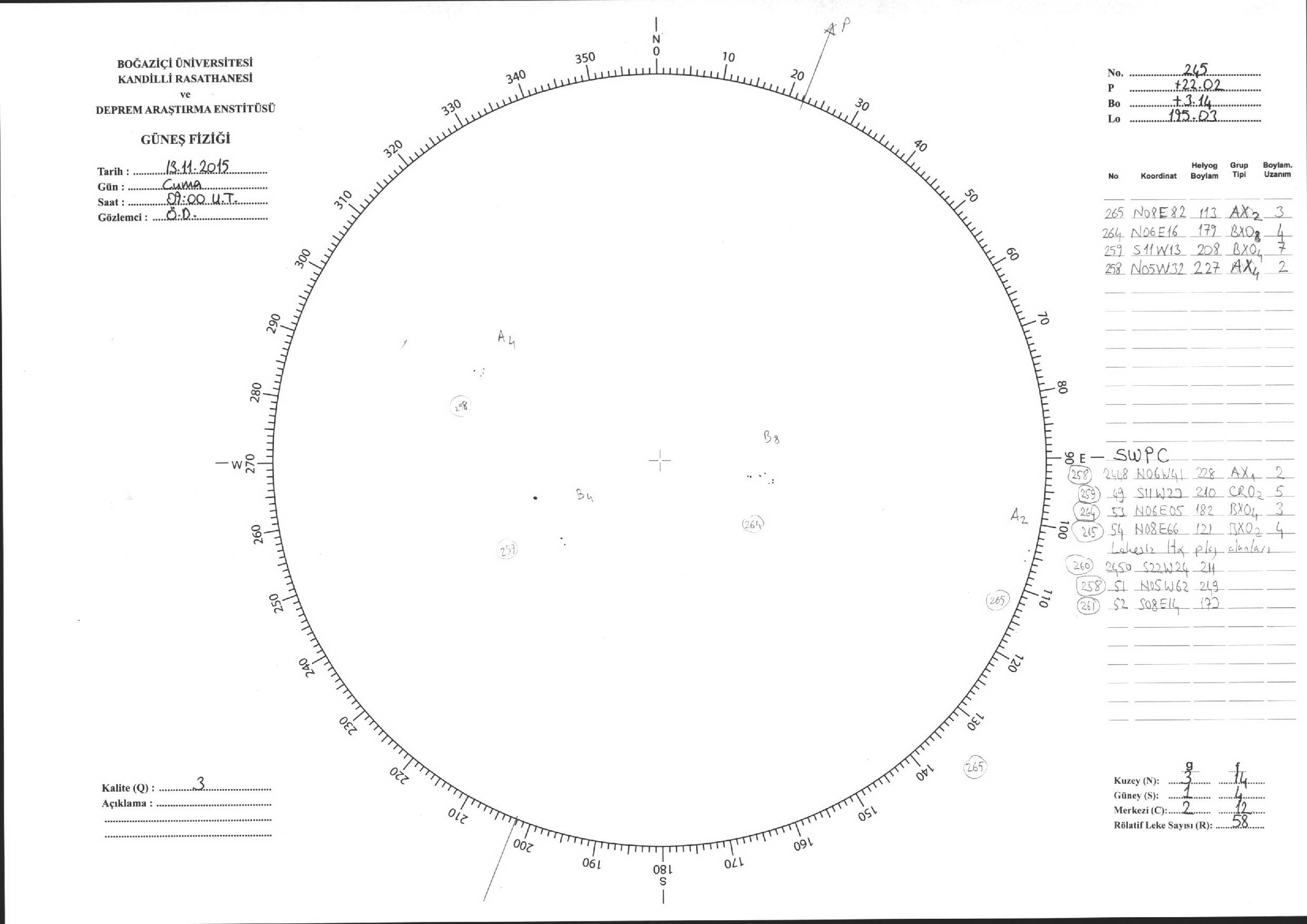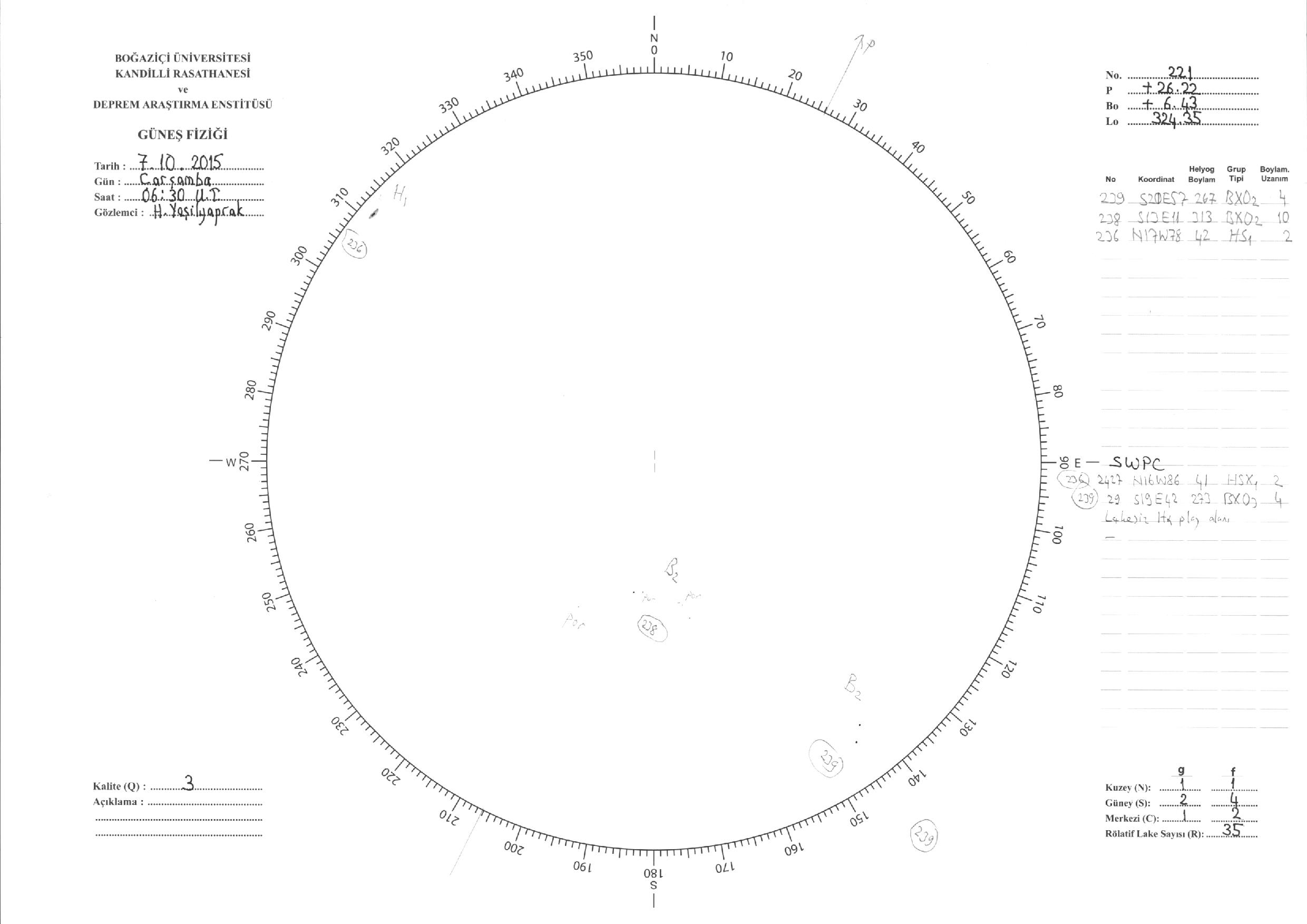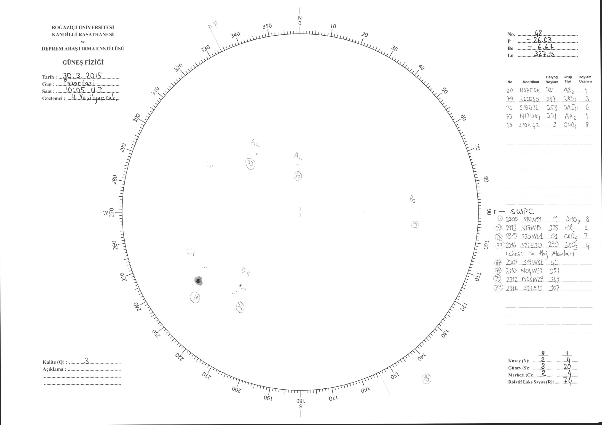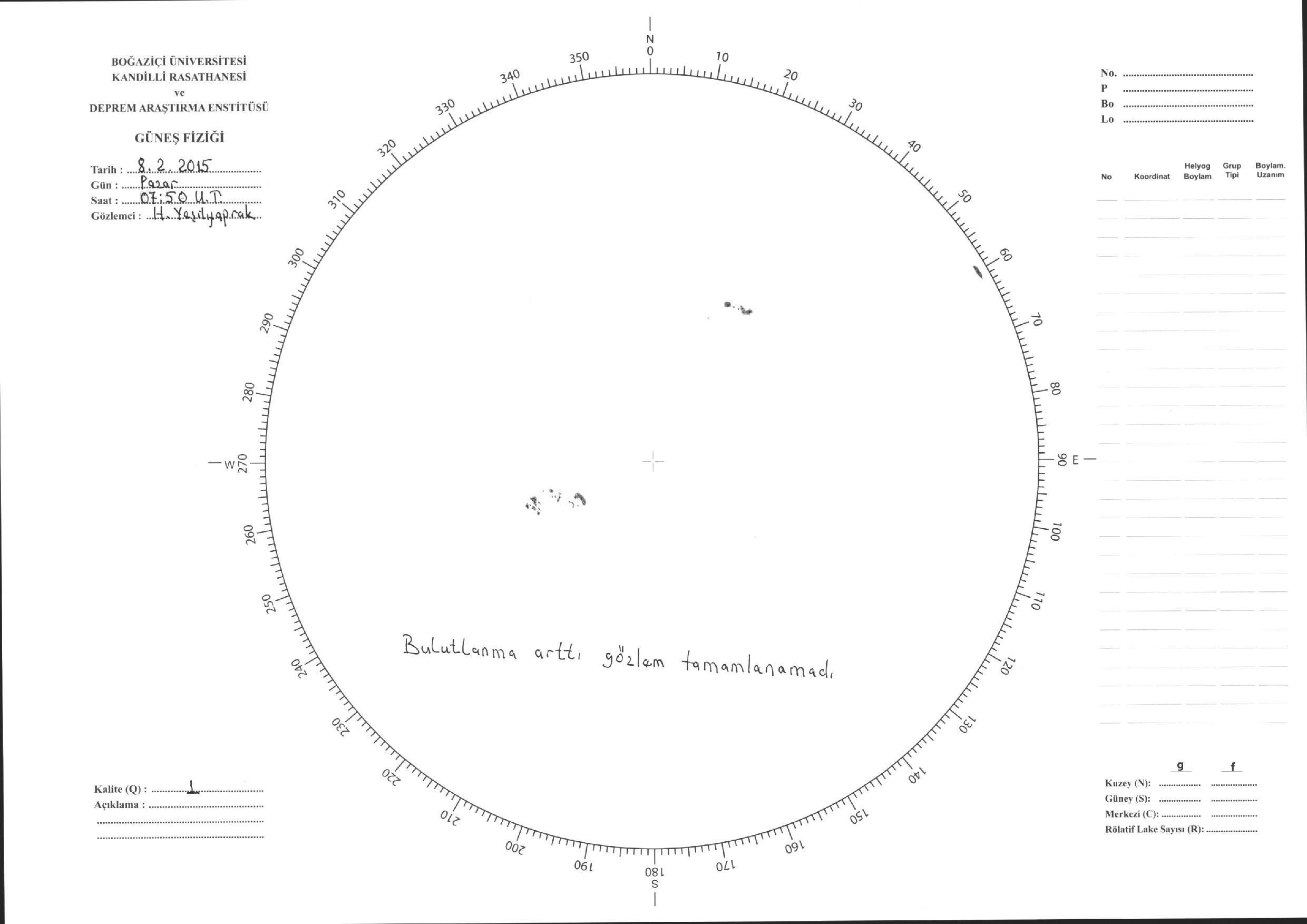 Güneş Lekesi Çizimleri / Kandilli Sunspot Drawings