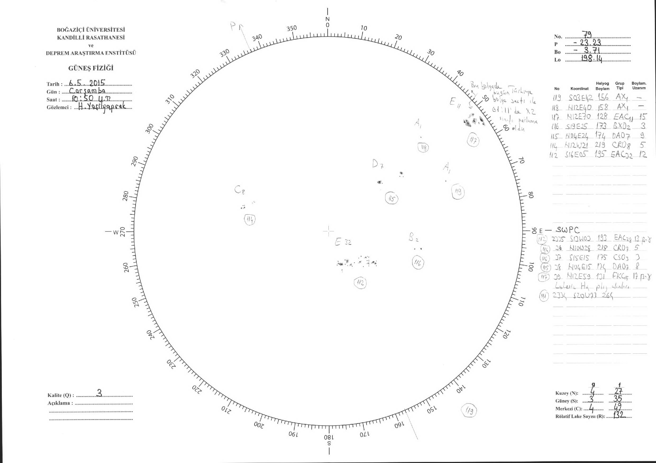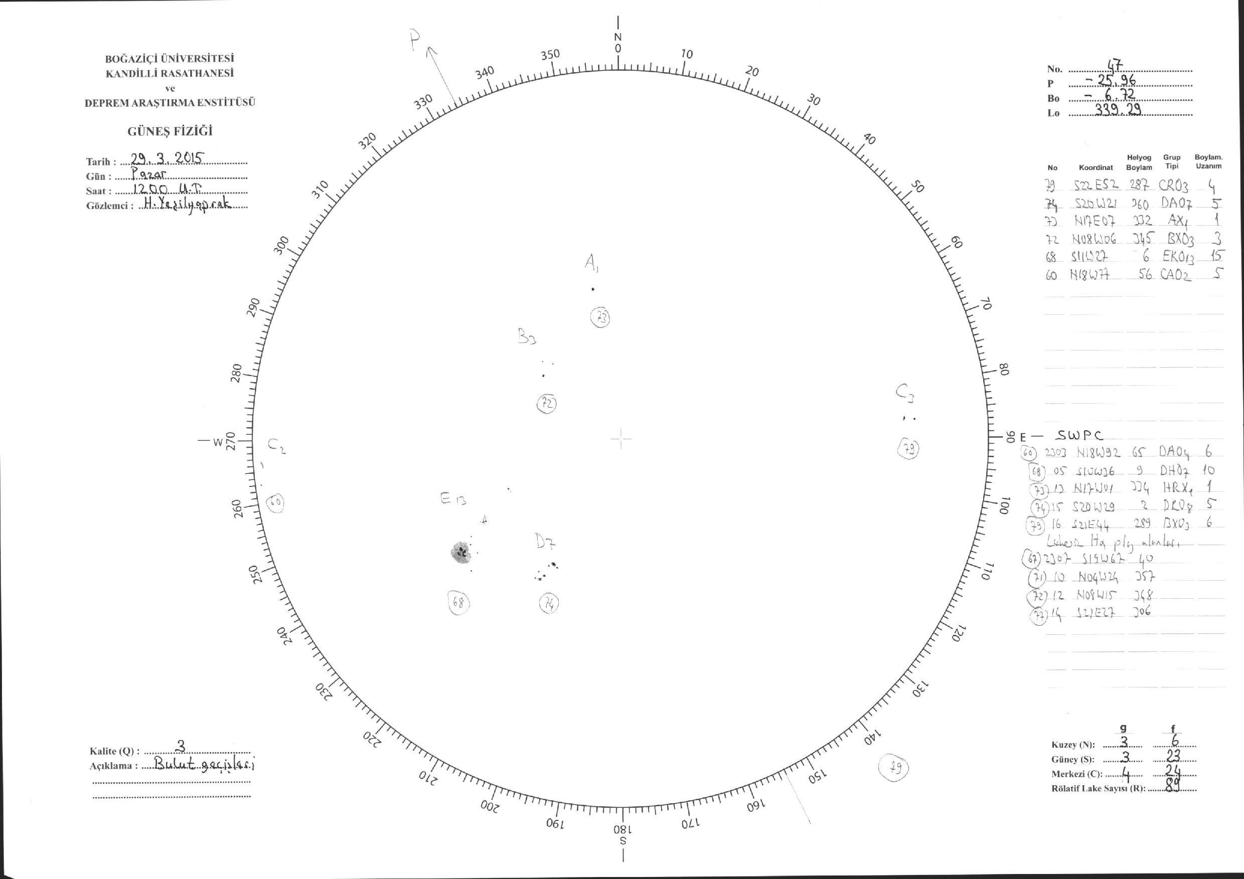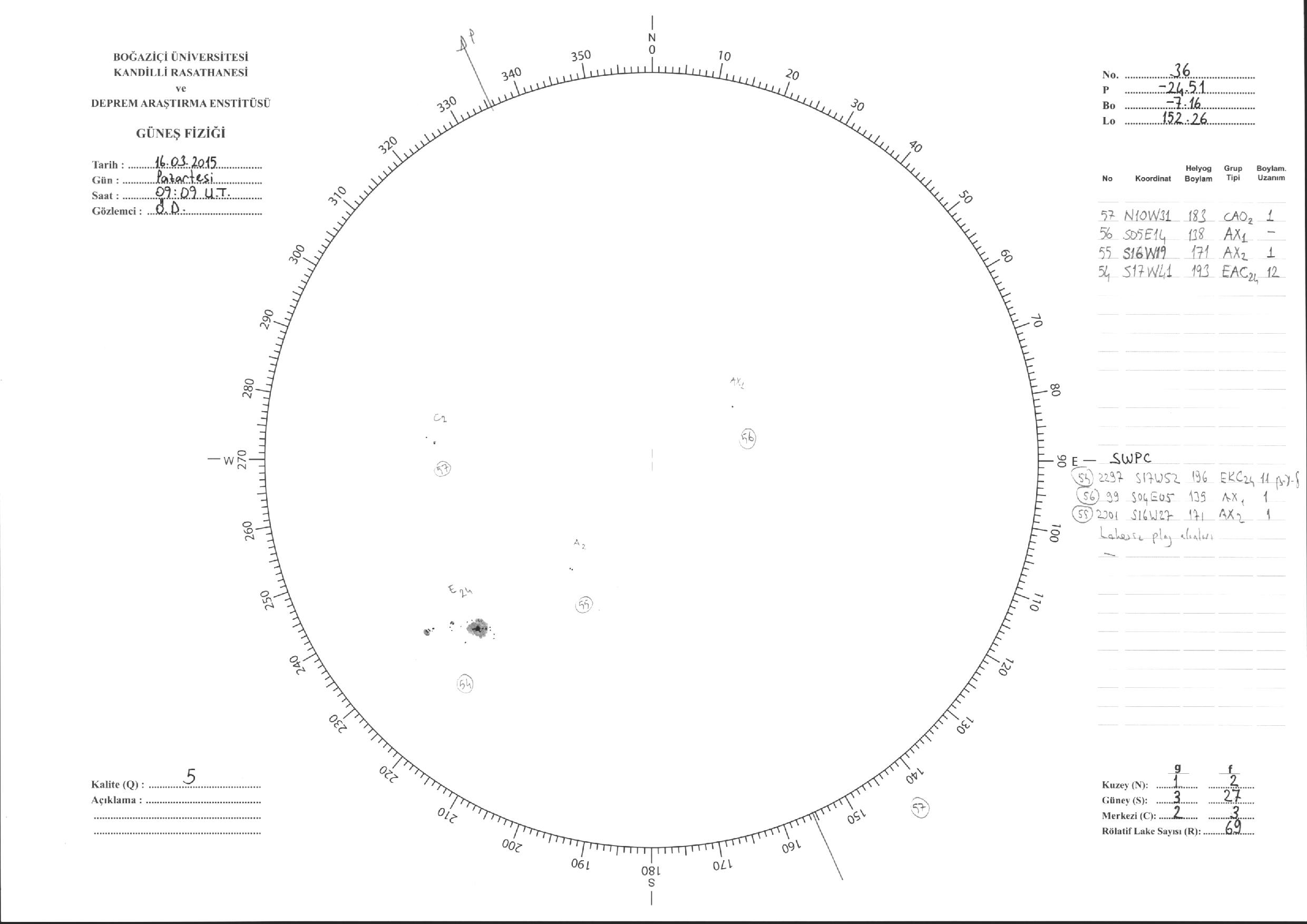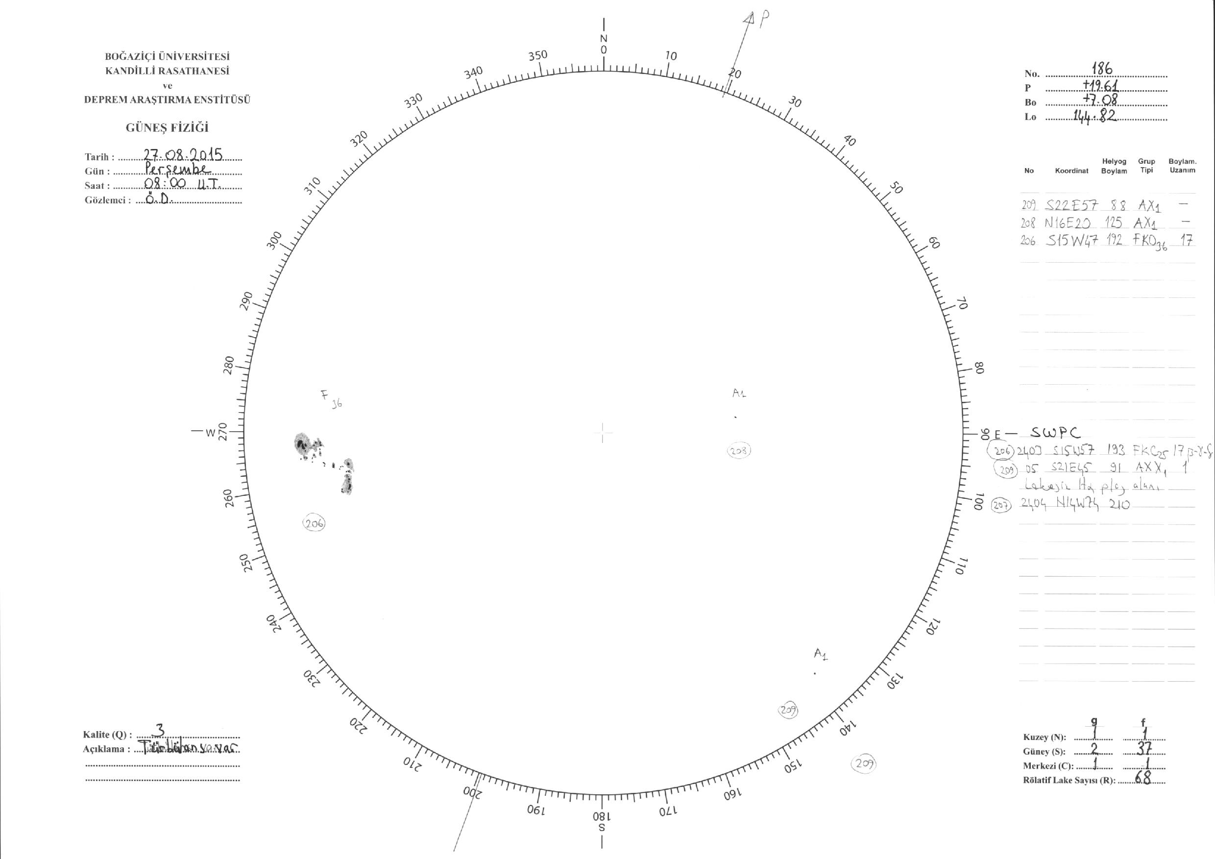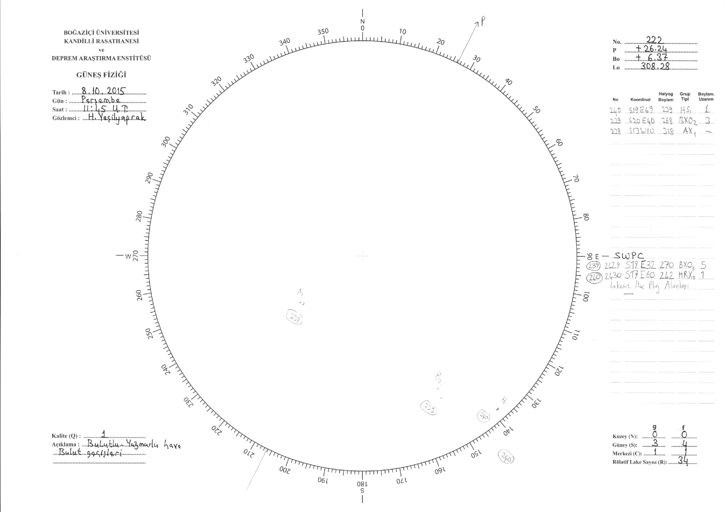 Güneş Lekesi Çizimleri / Kandilli Sunspot Drawings