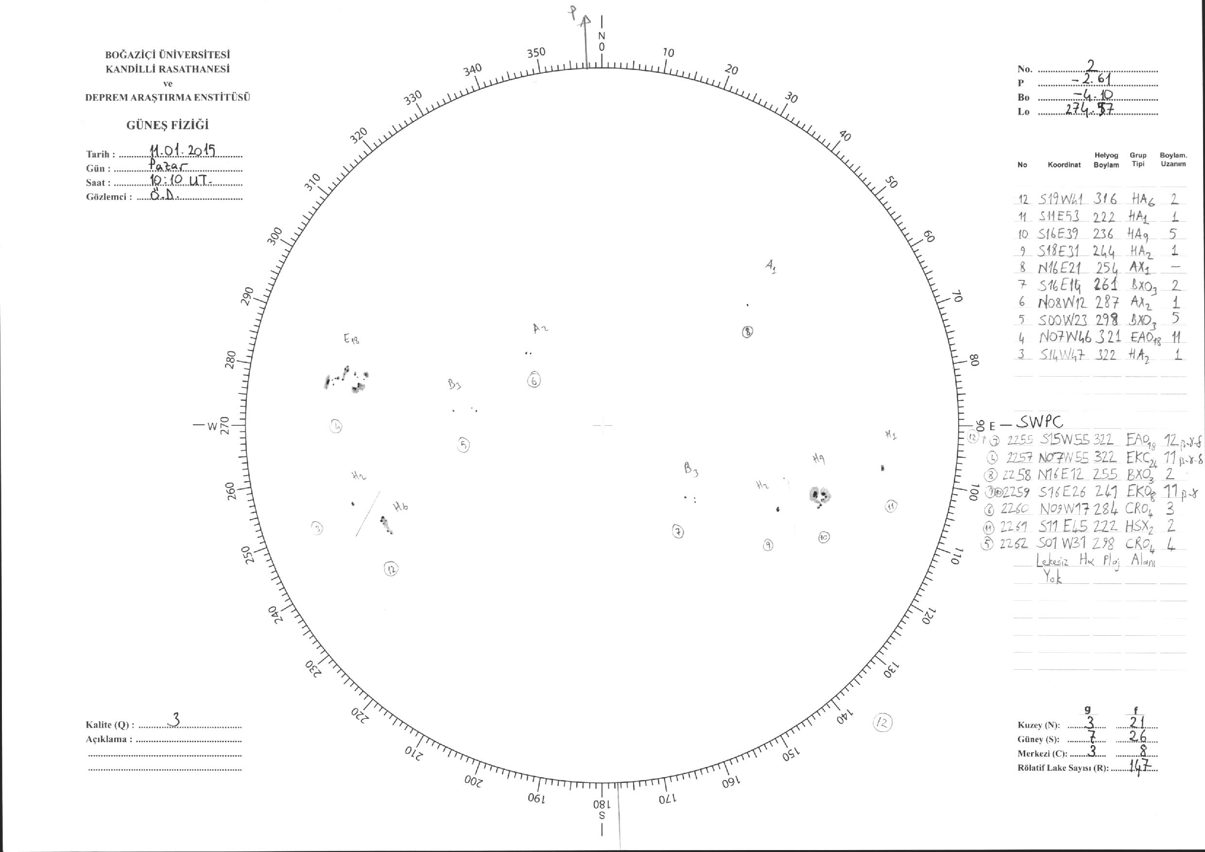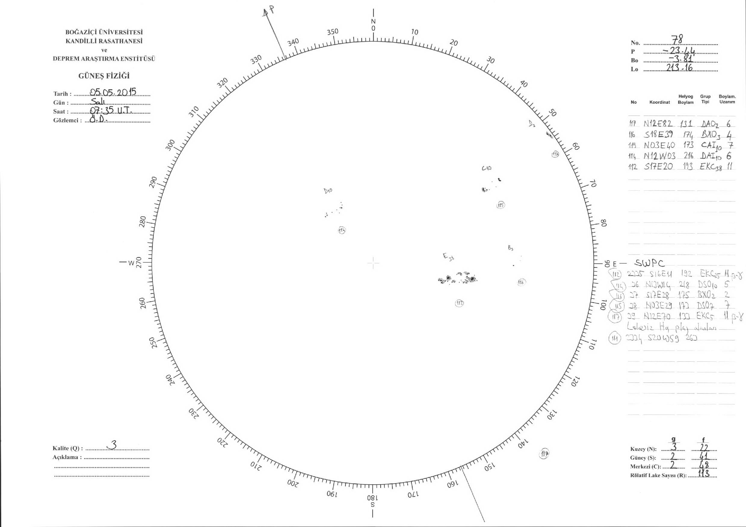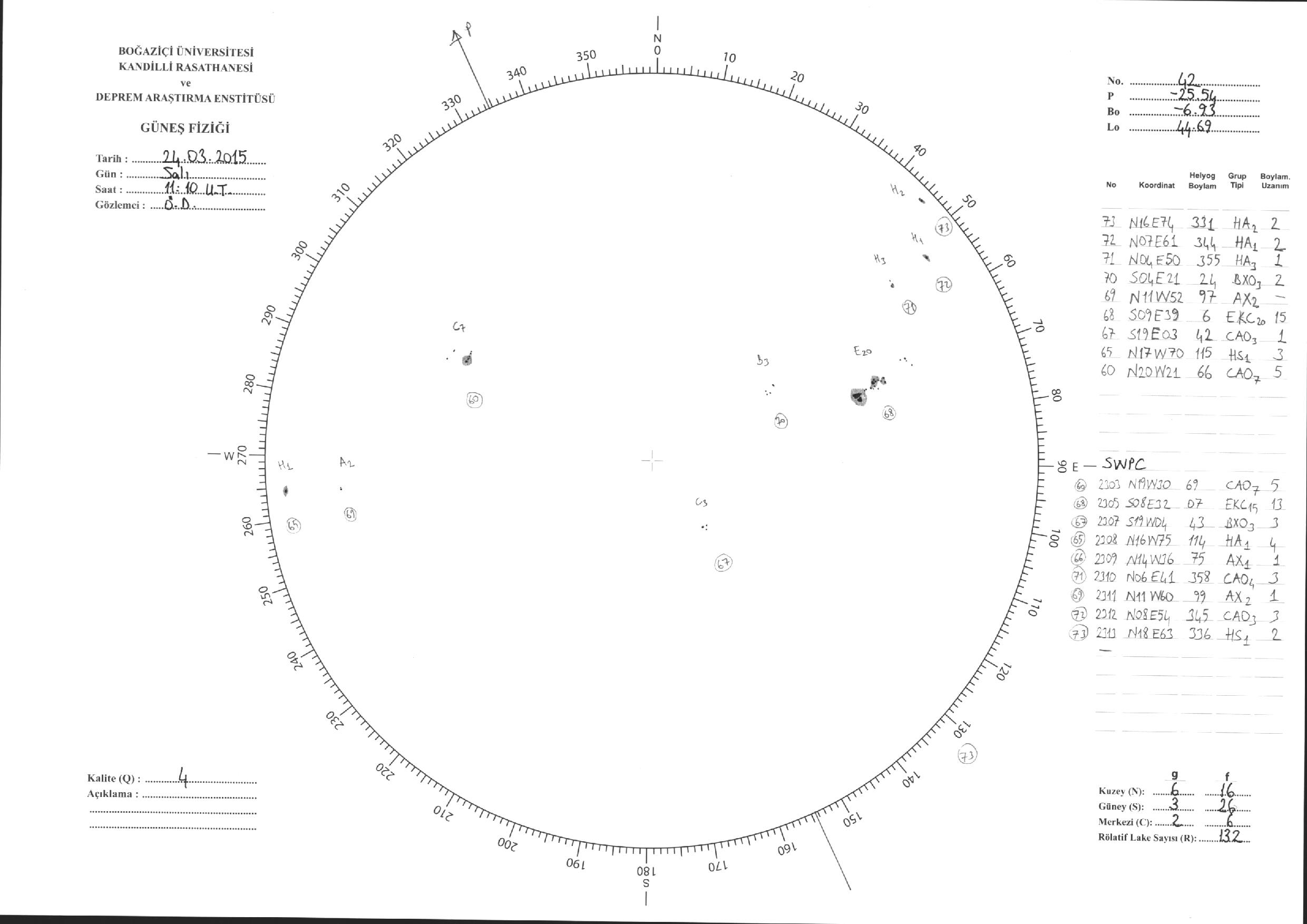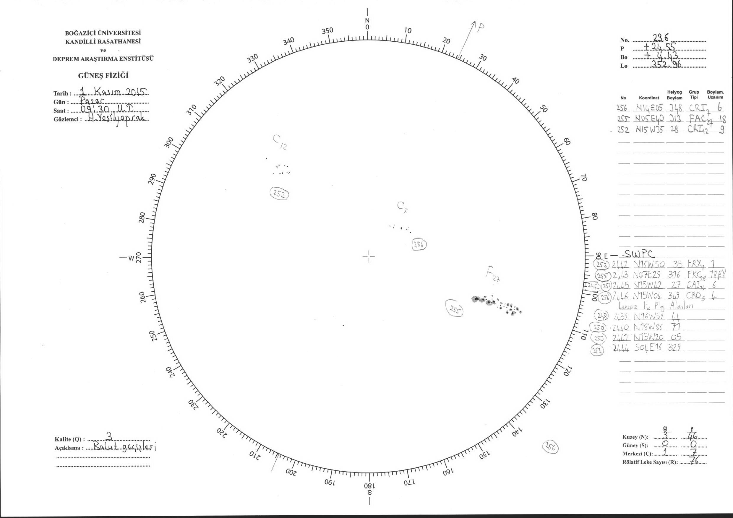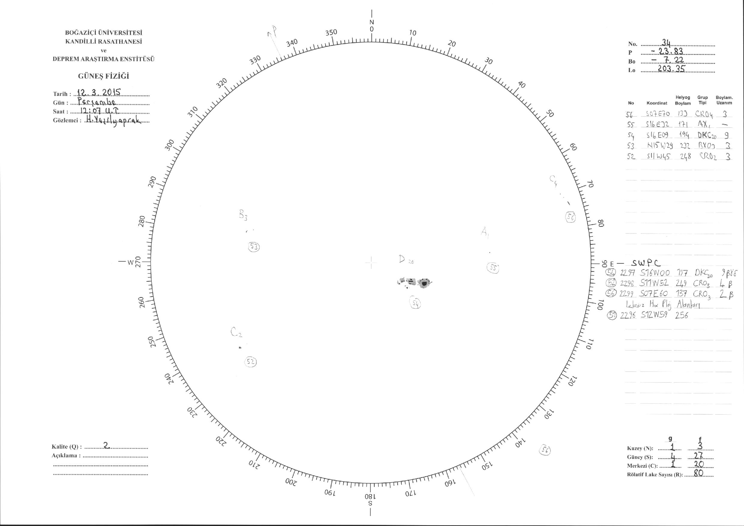 Güneş Lekesi Çizimleri / Kandilli Sunspot Drawings