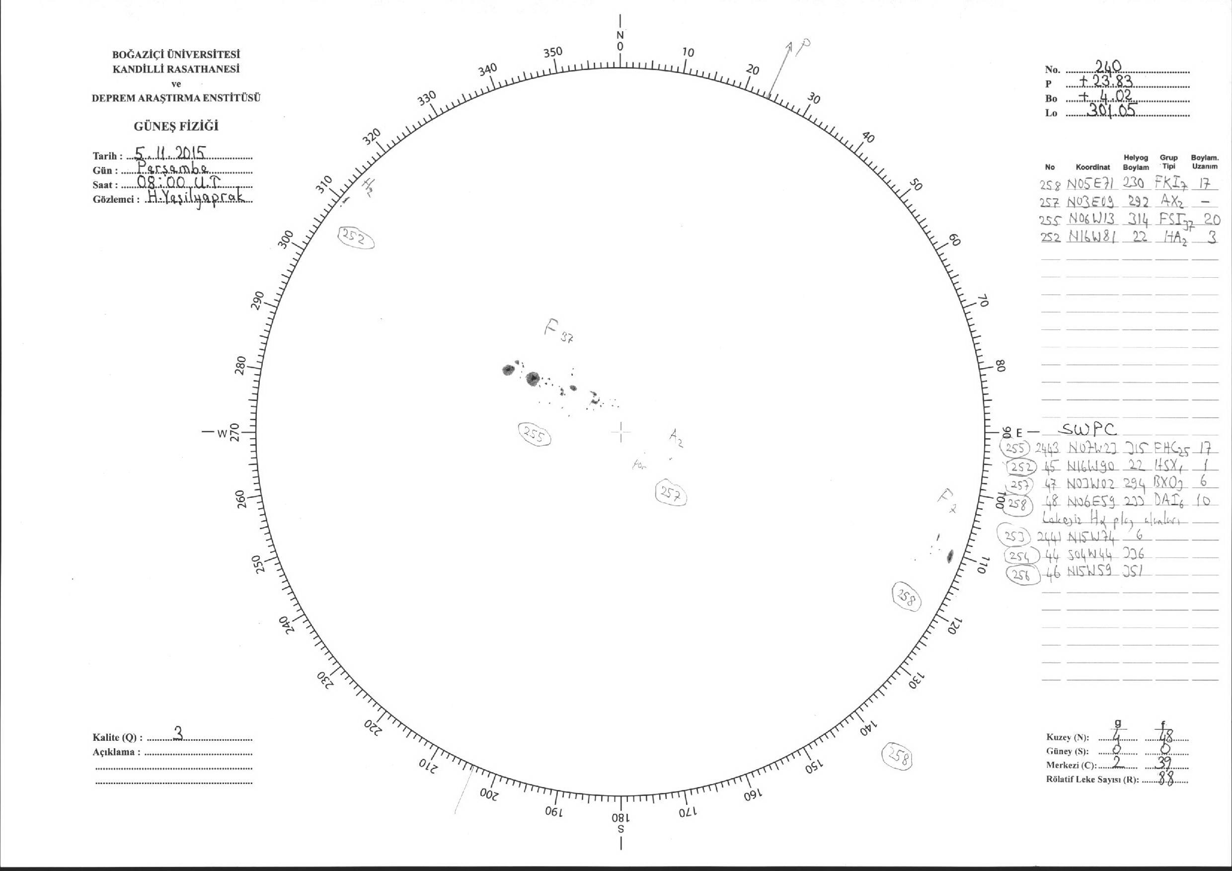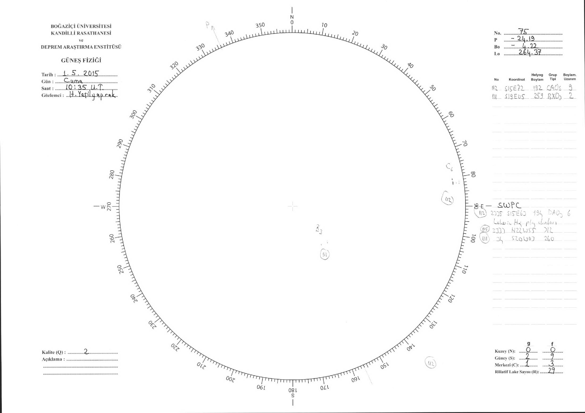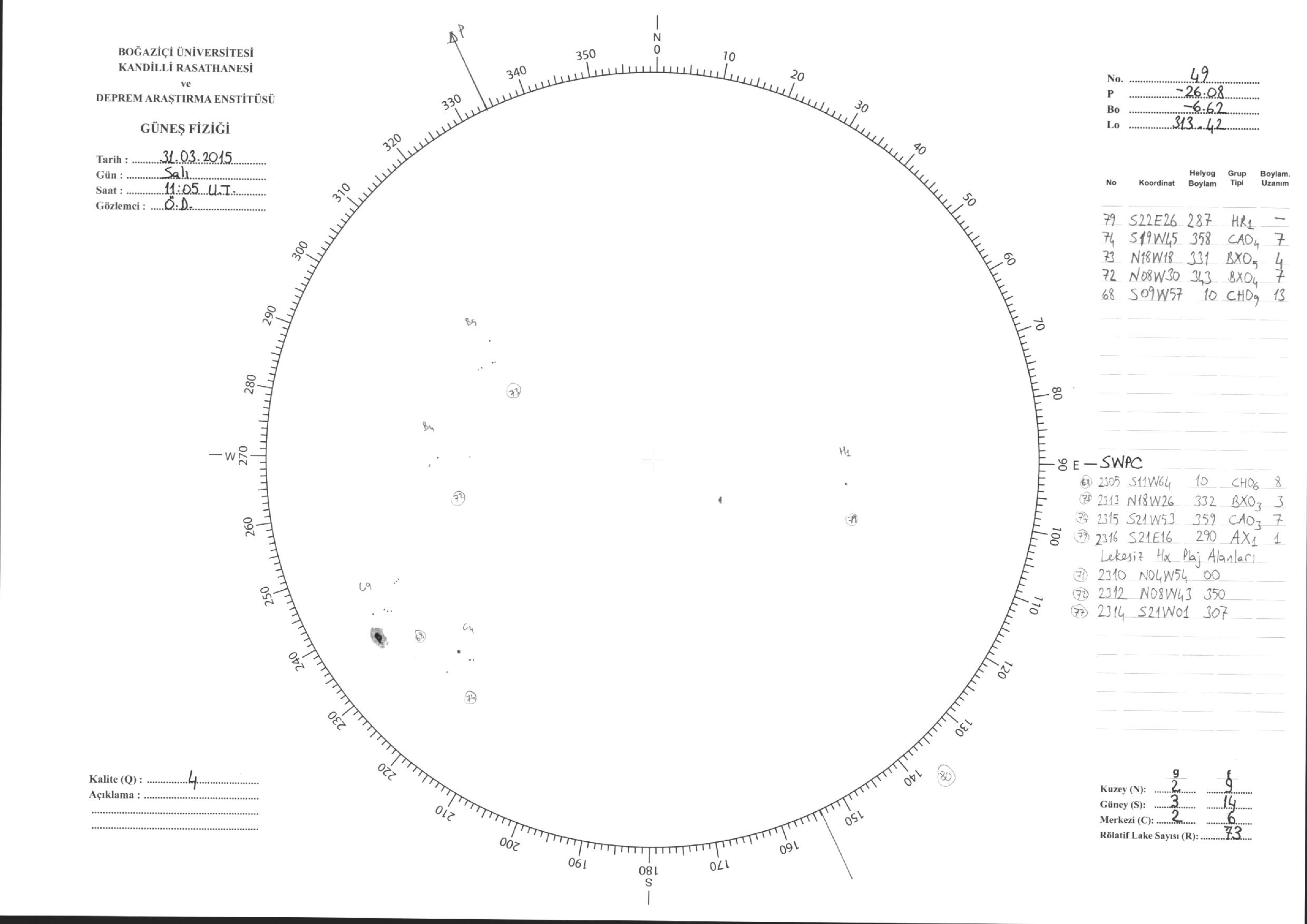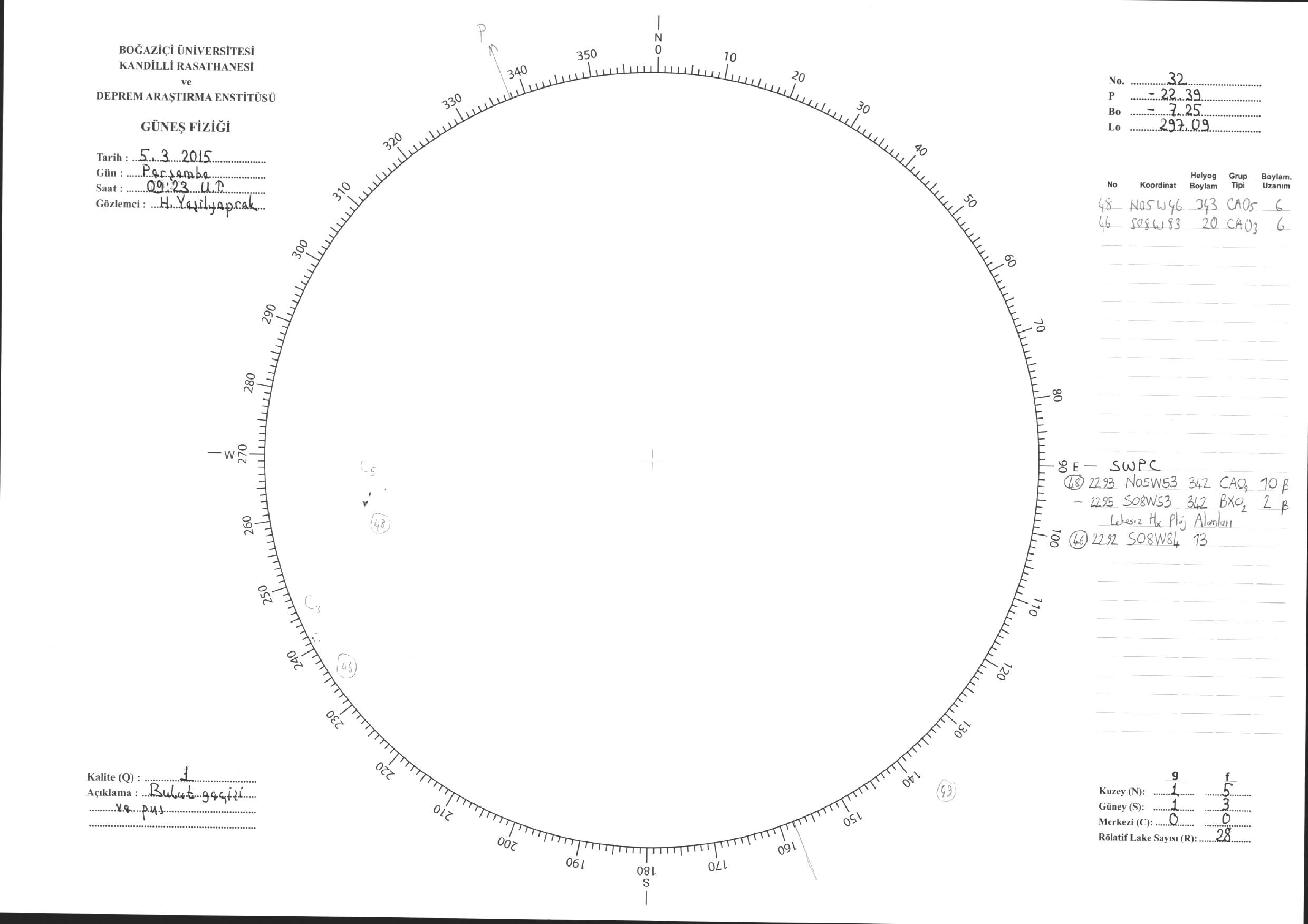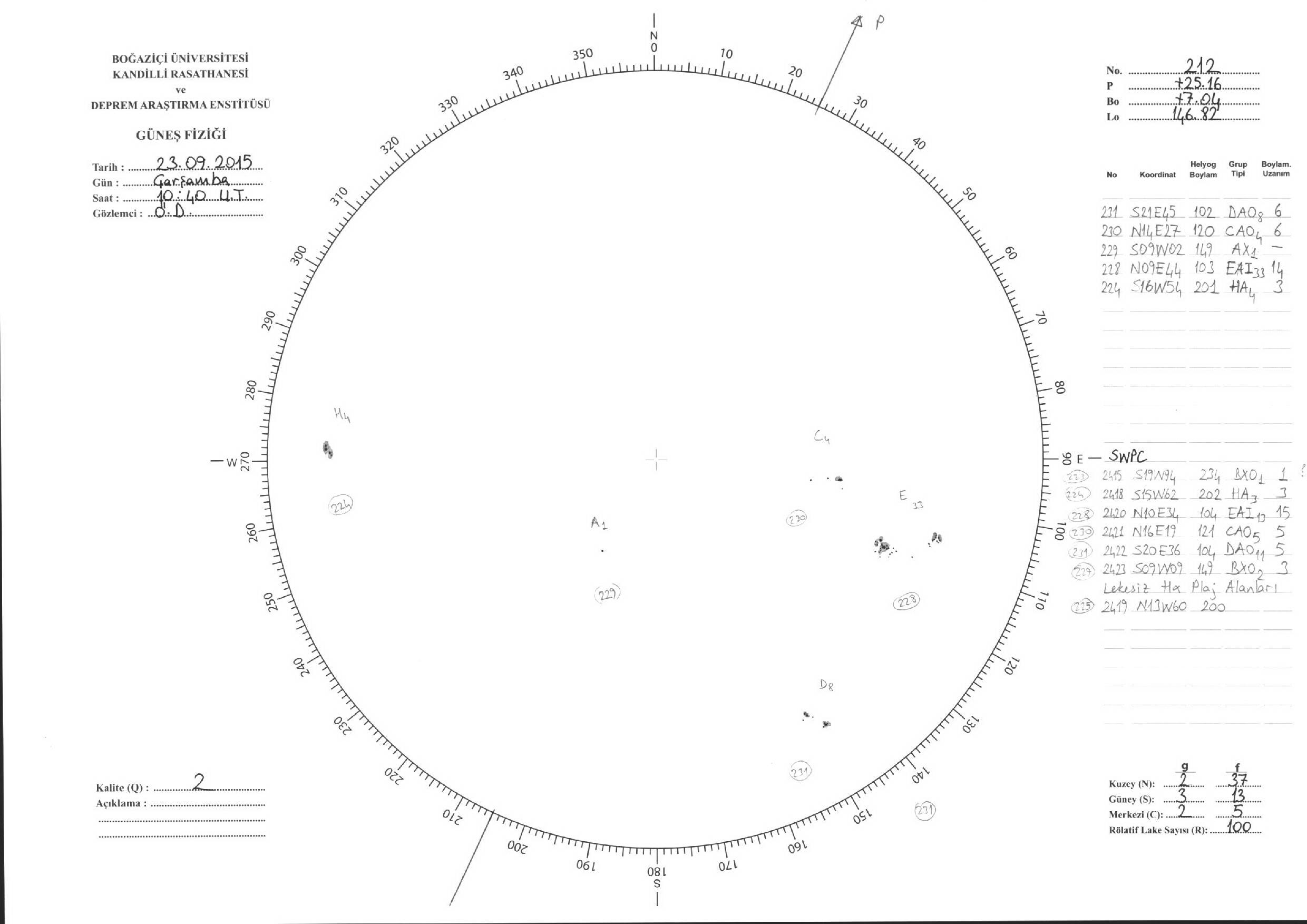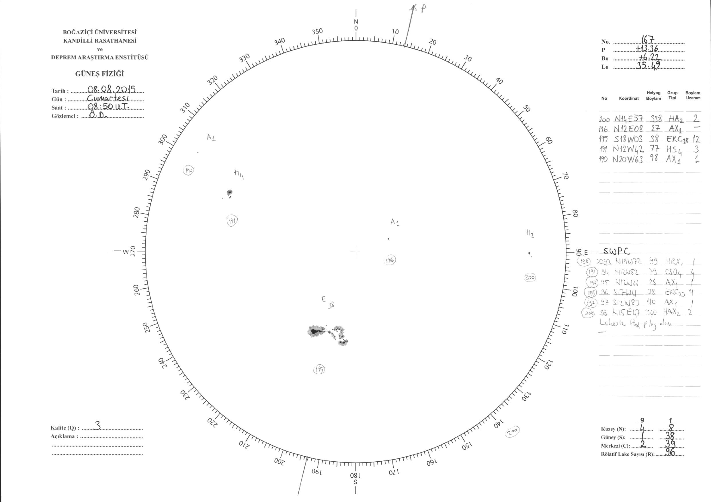 Güneş Lekesi Çizimleri / Kandilli Sunspot Drawings