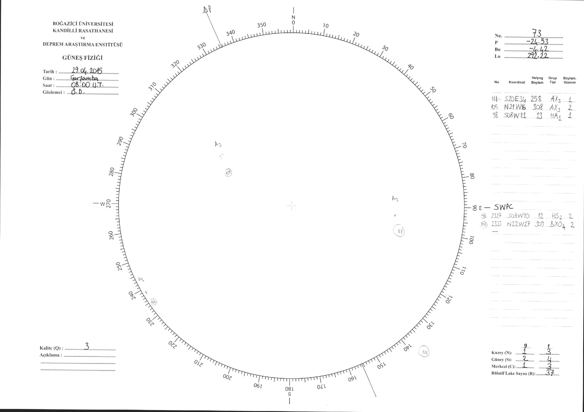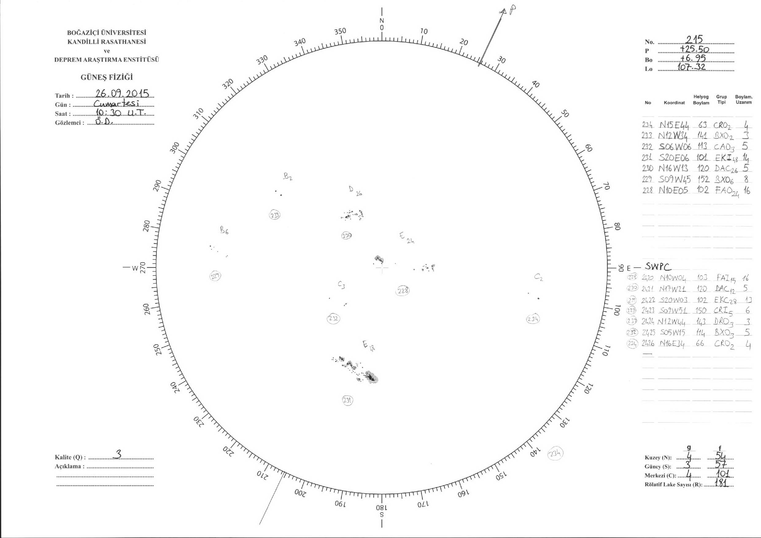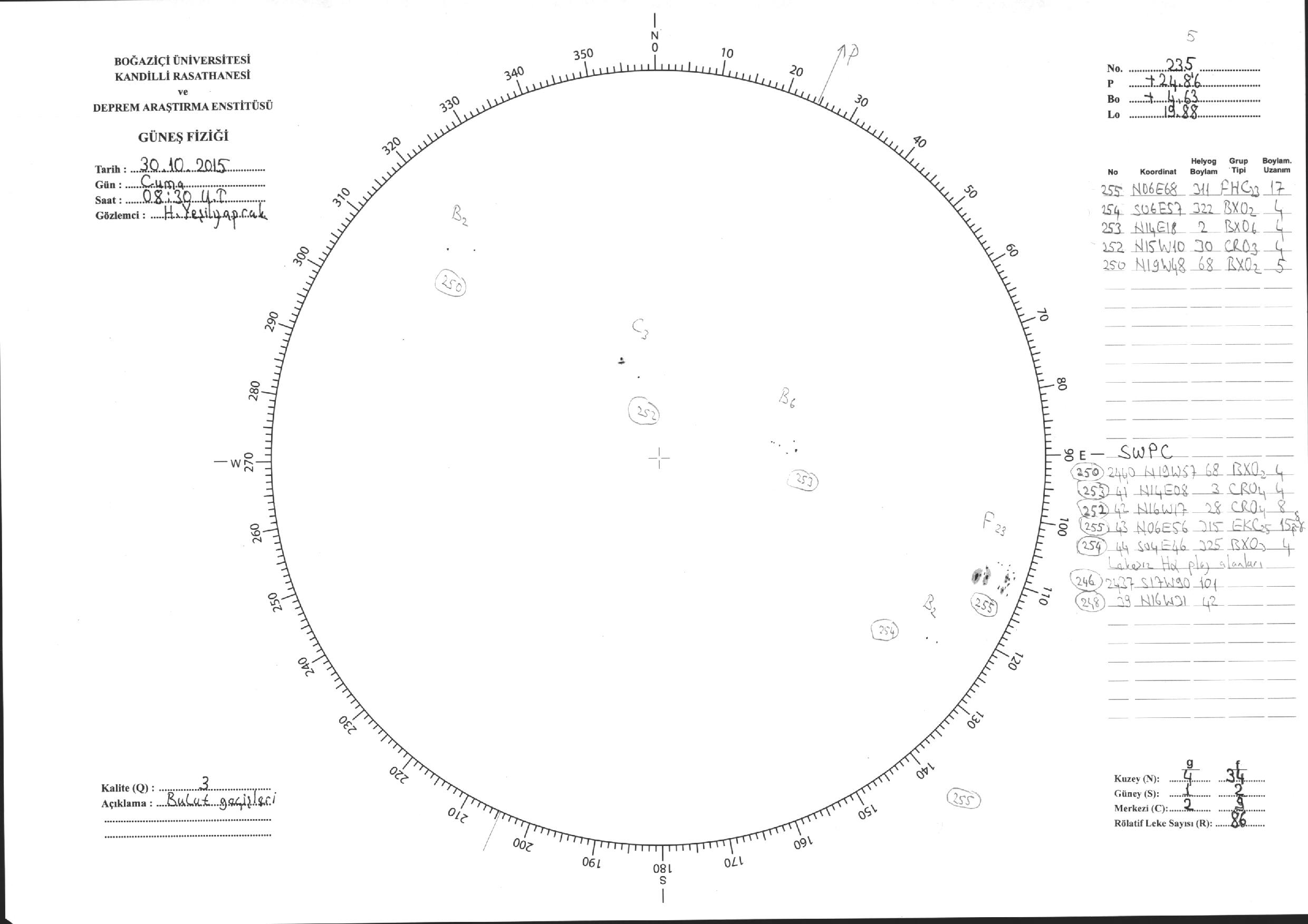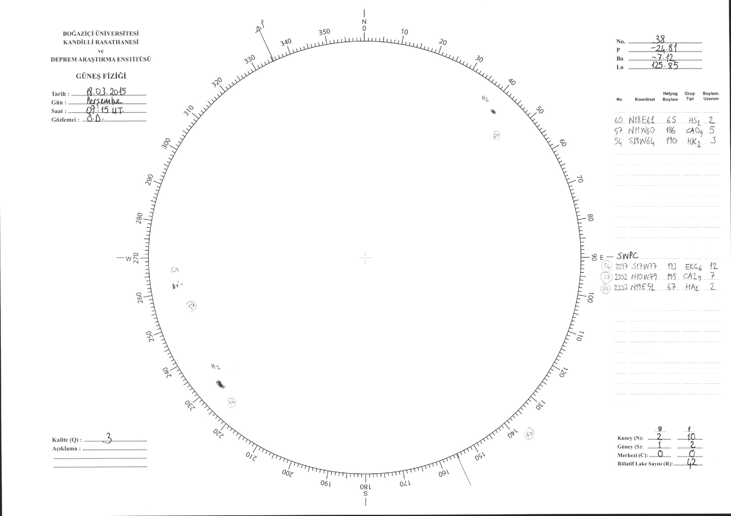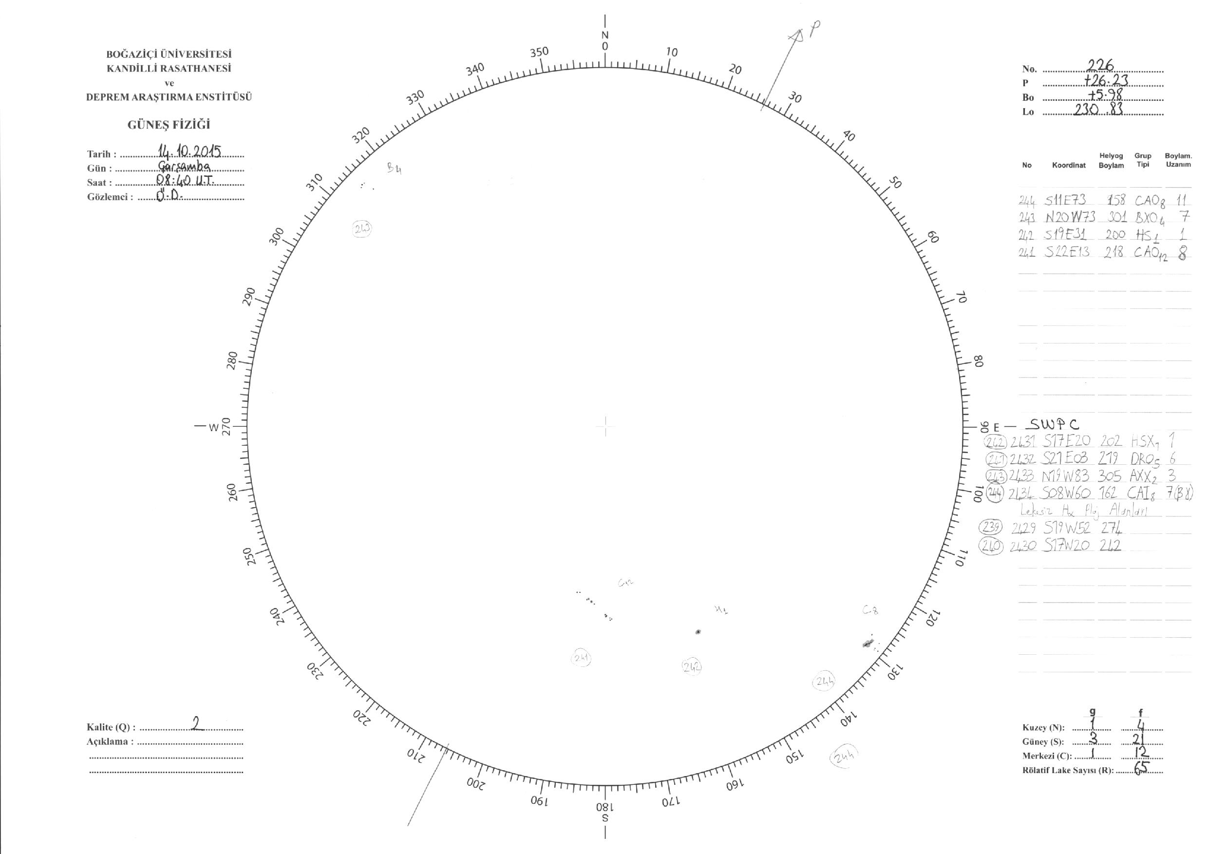 Güneş Lekesi Çizimleri / Kandilli Sunspot Drawings