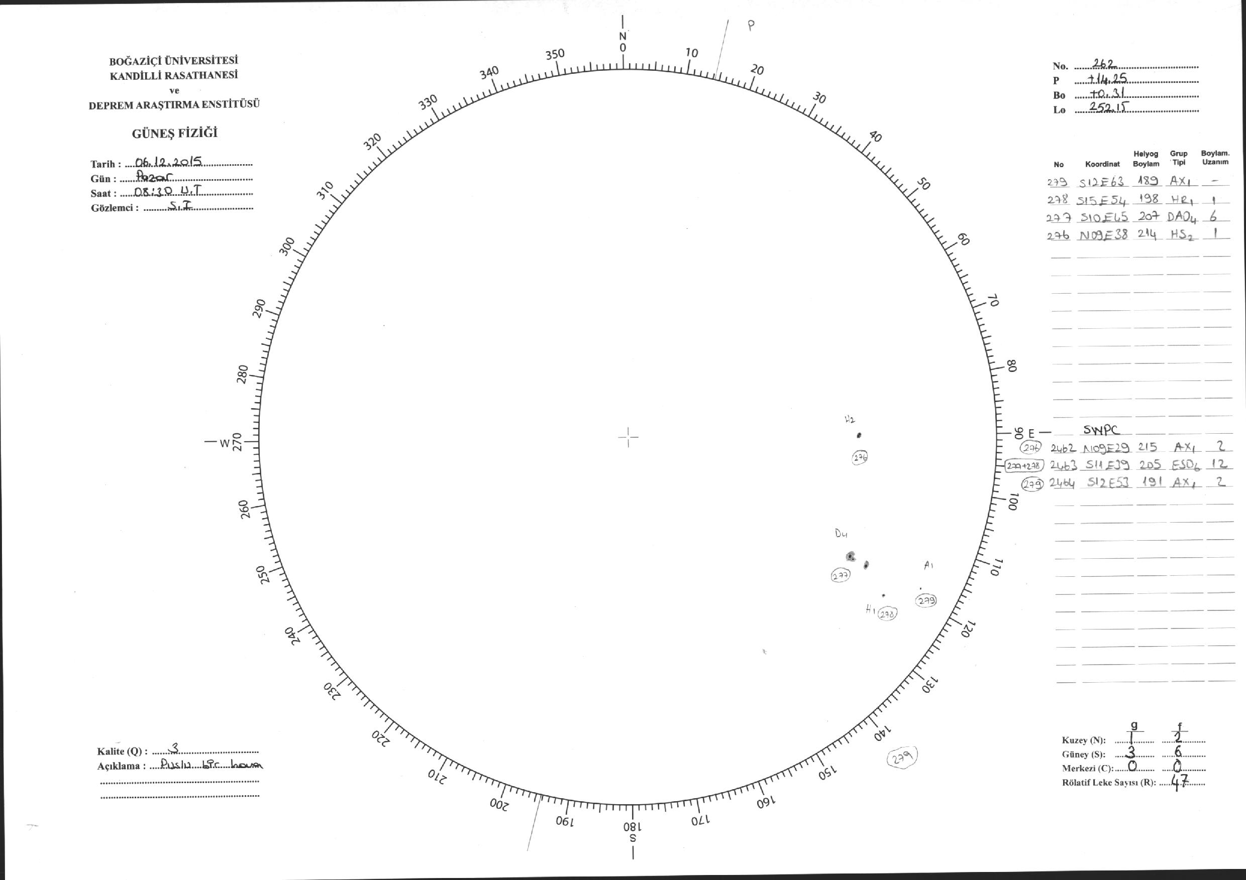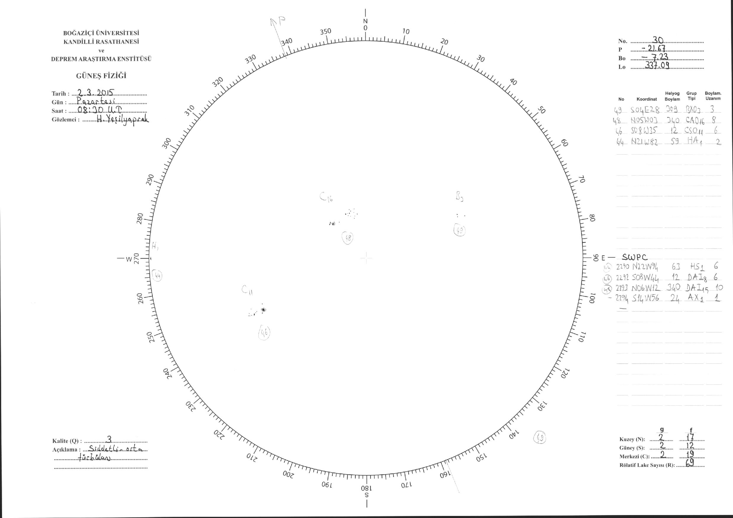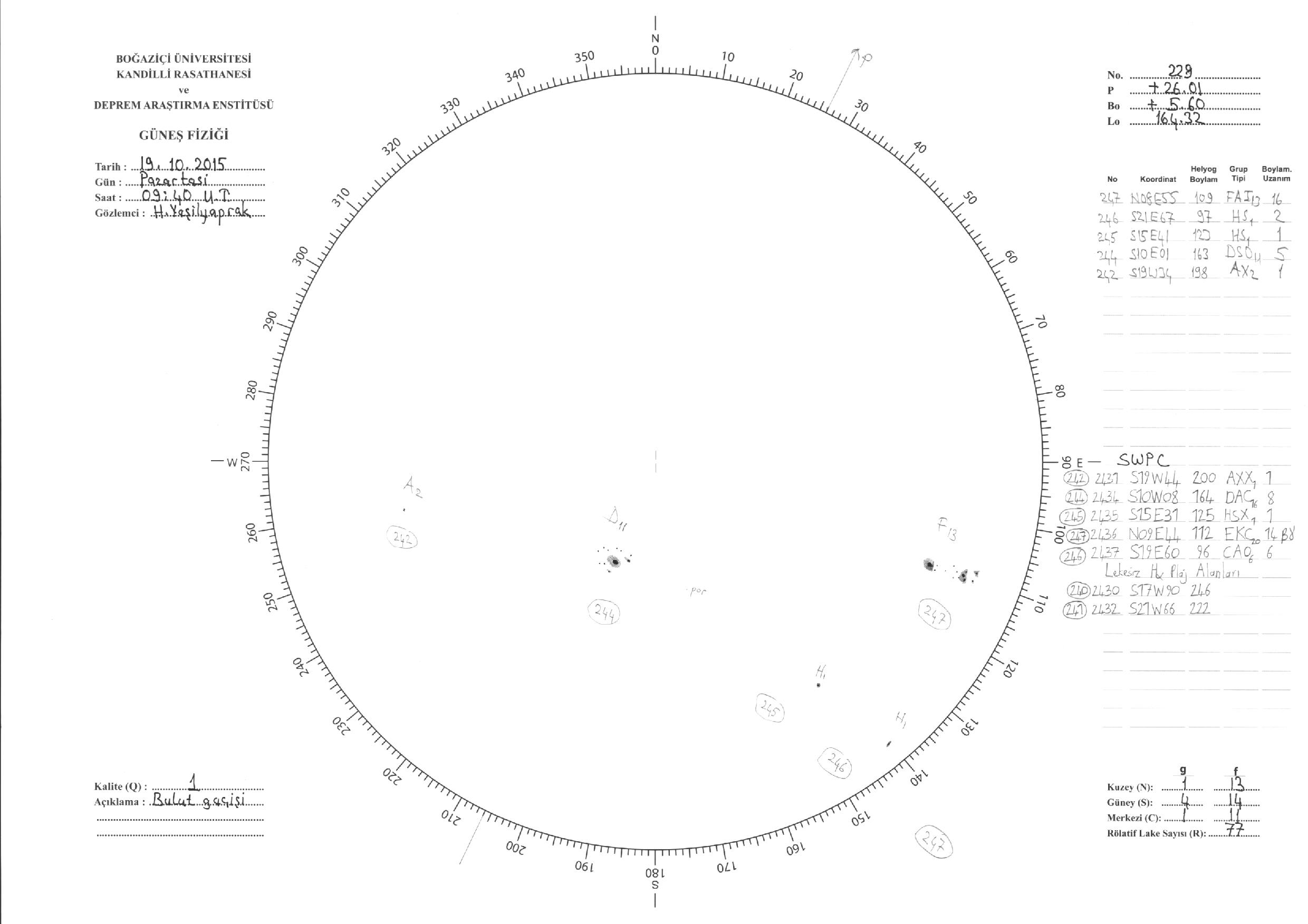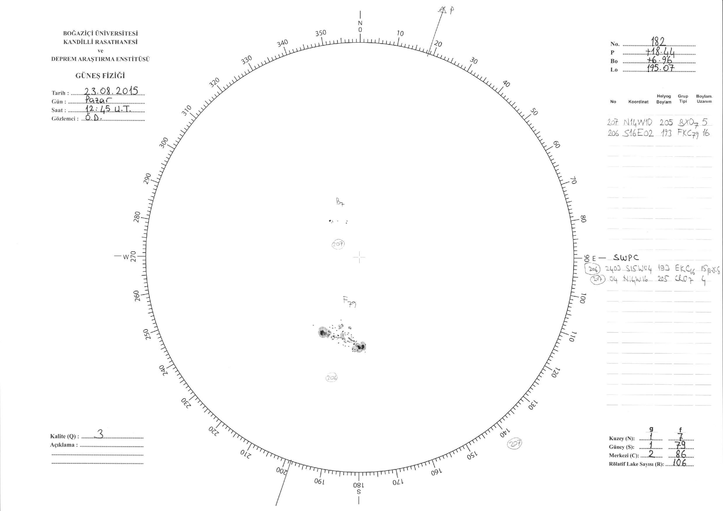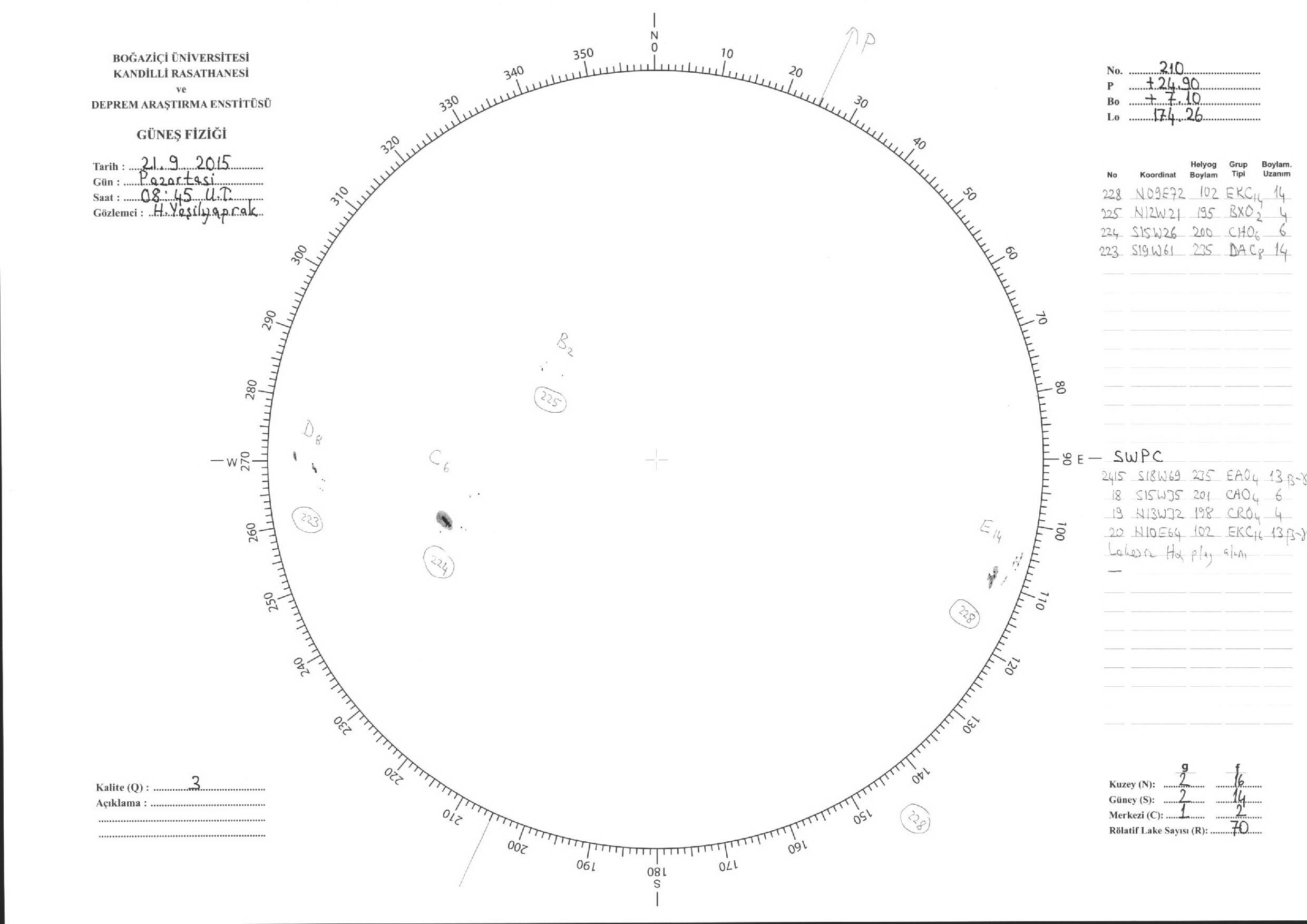 Güneş Lekesi Çizimleri / Kandilli Sunspot Drawings