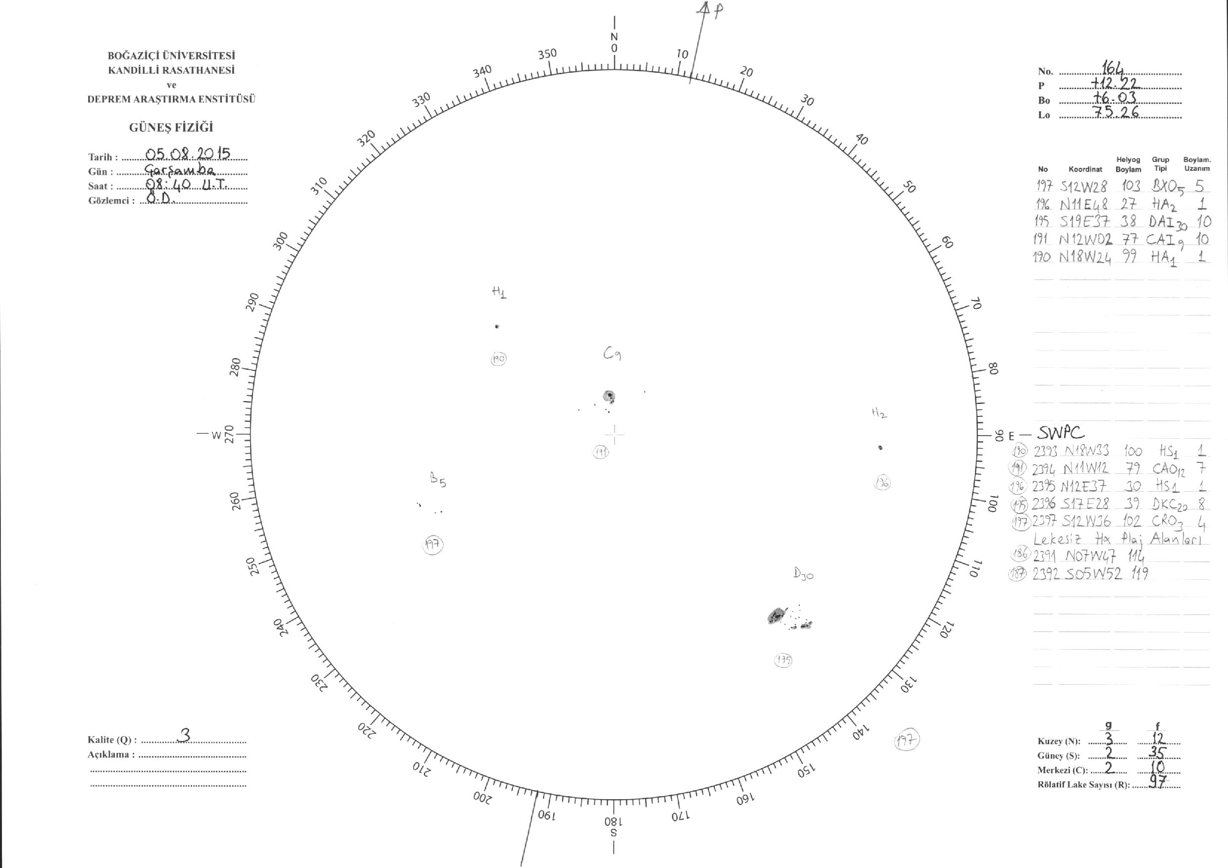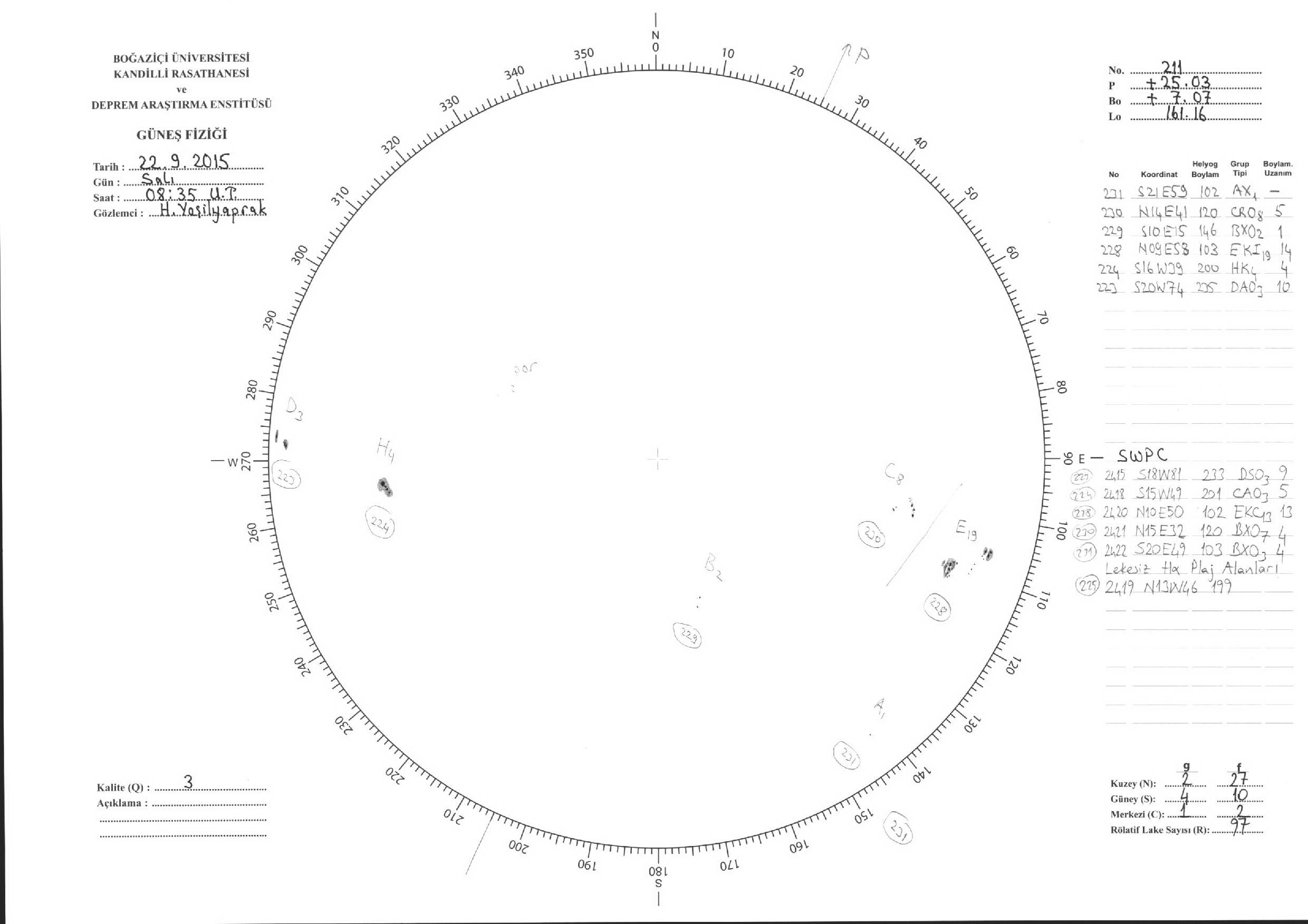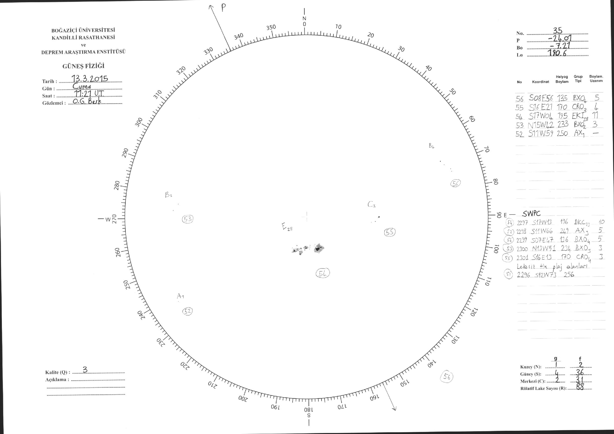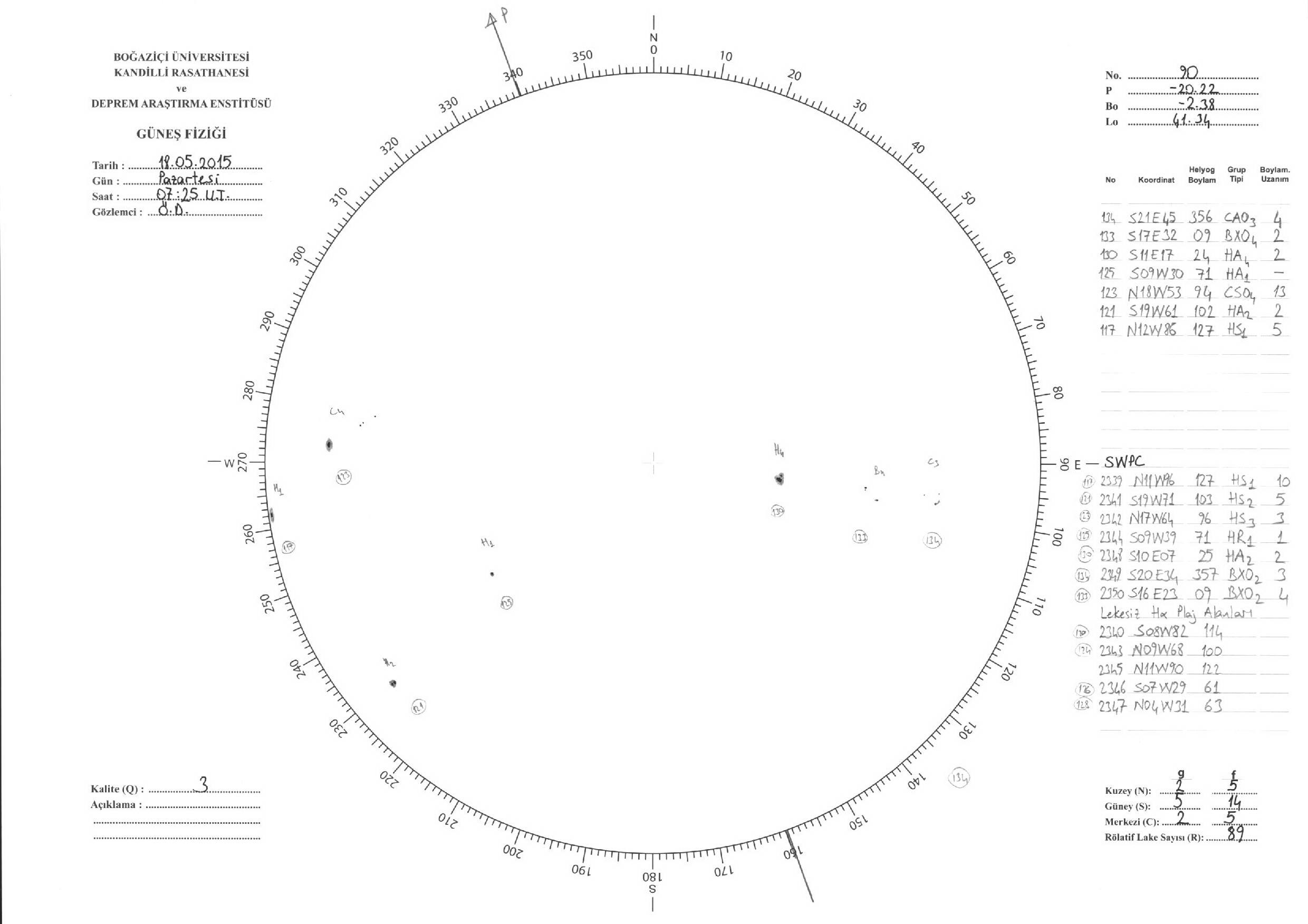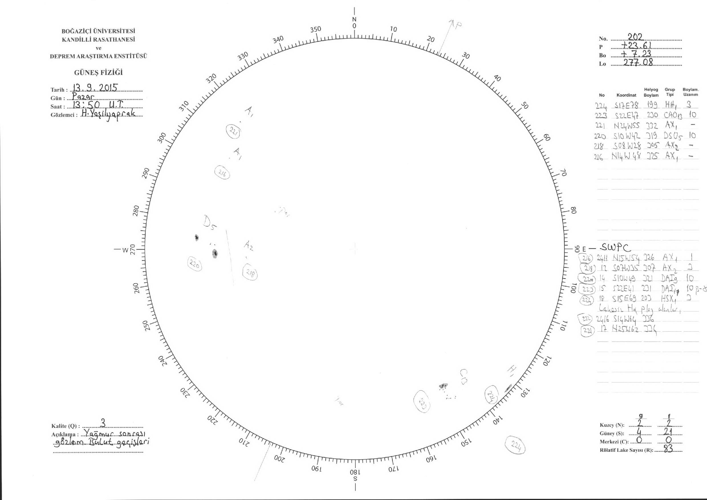 Güneş Lekesi Çizimleri / Kandilli Sunspot Drawings