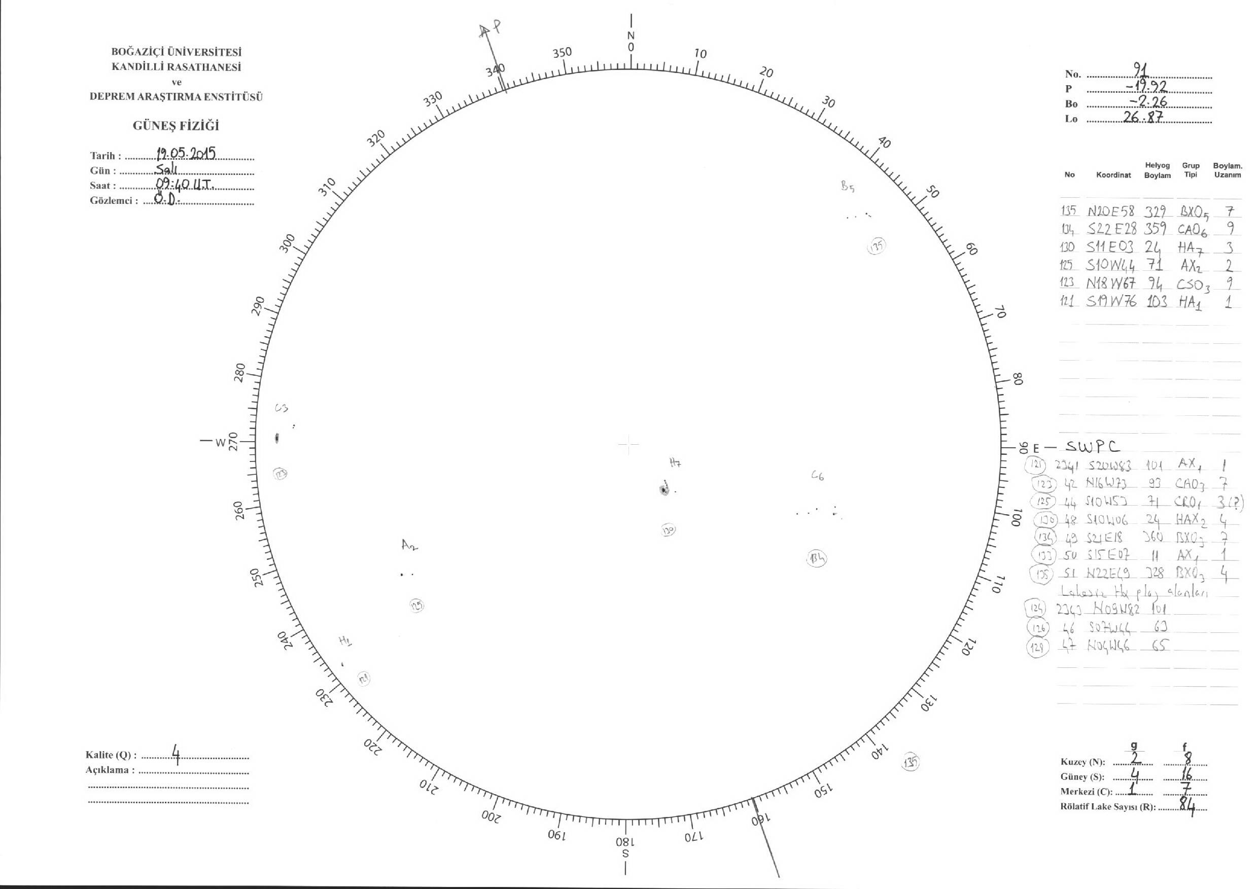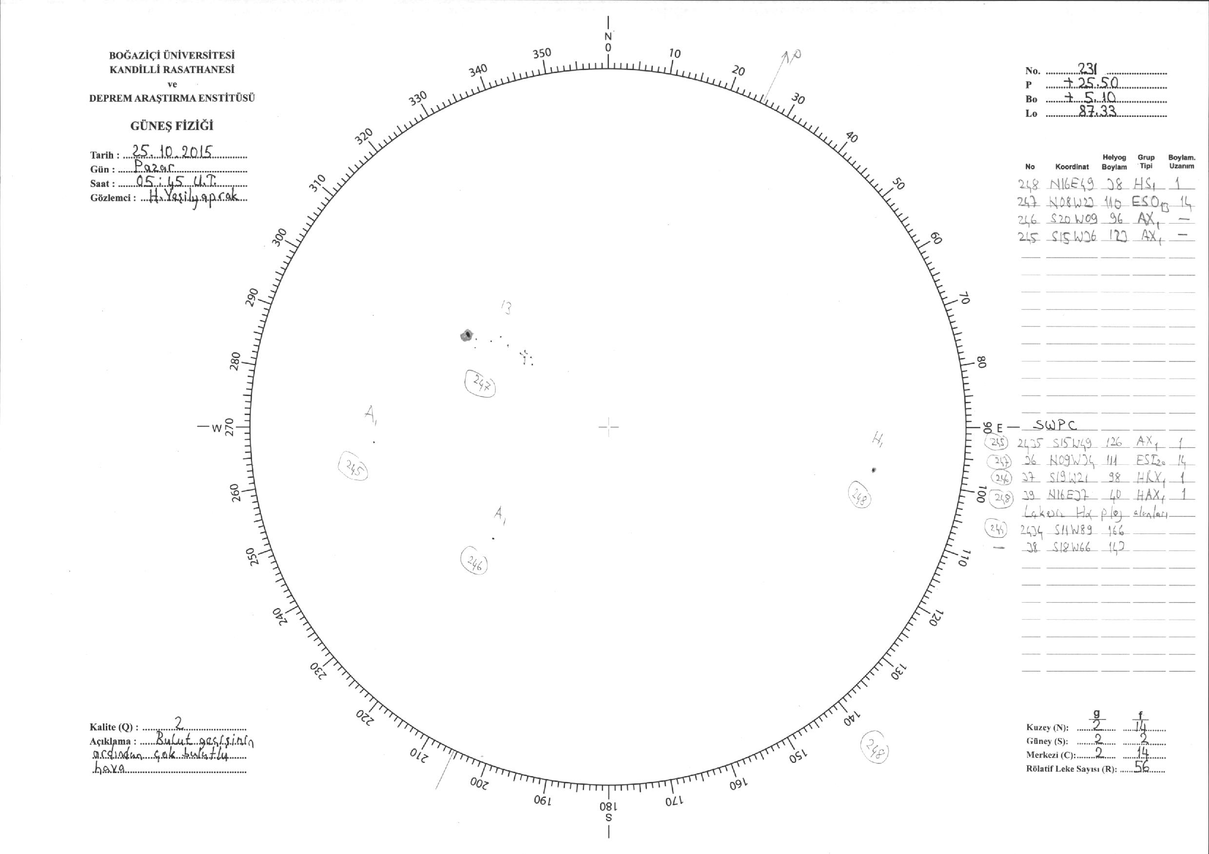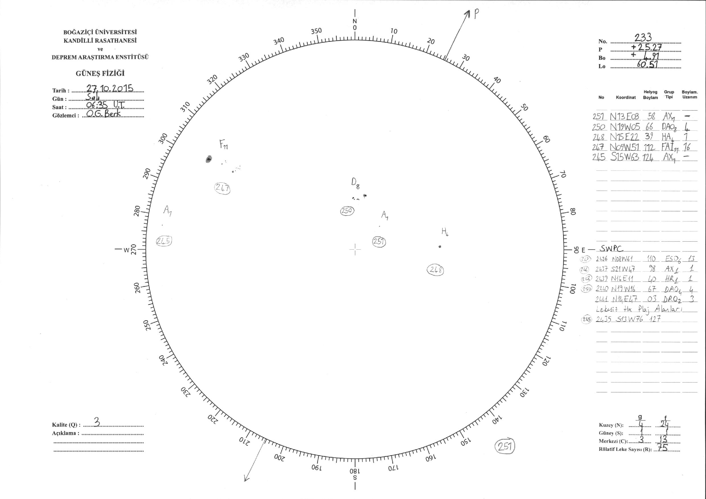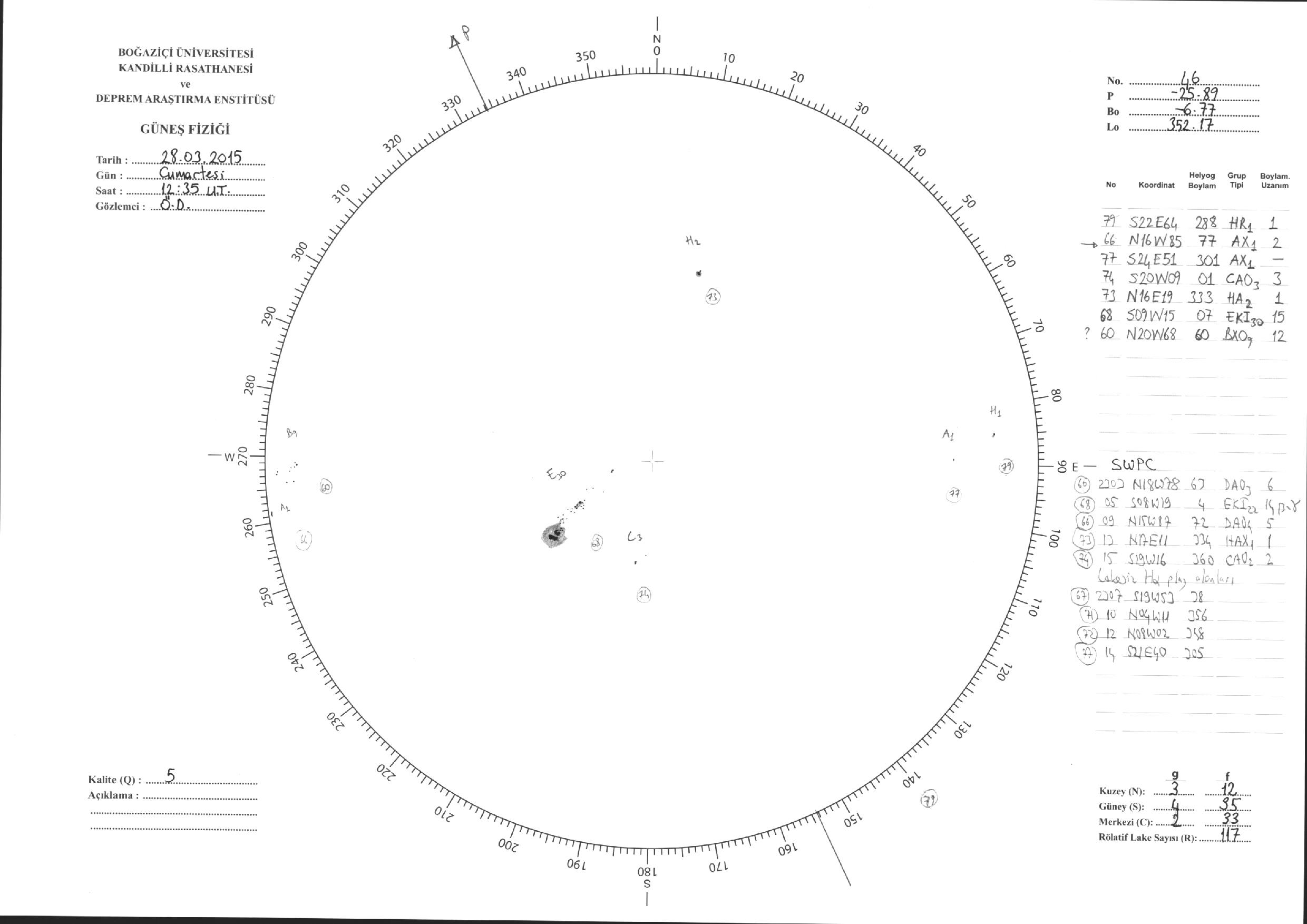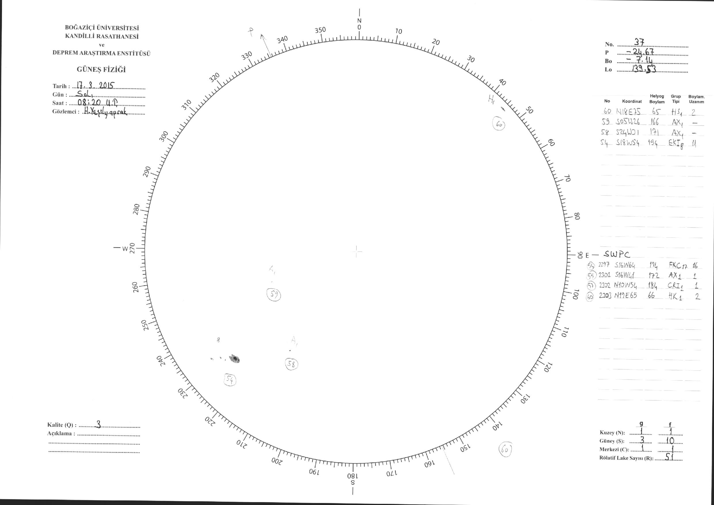 Güneş Lekesi Çizimleri / Kandilli Sunspot Drawings