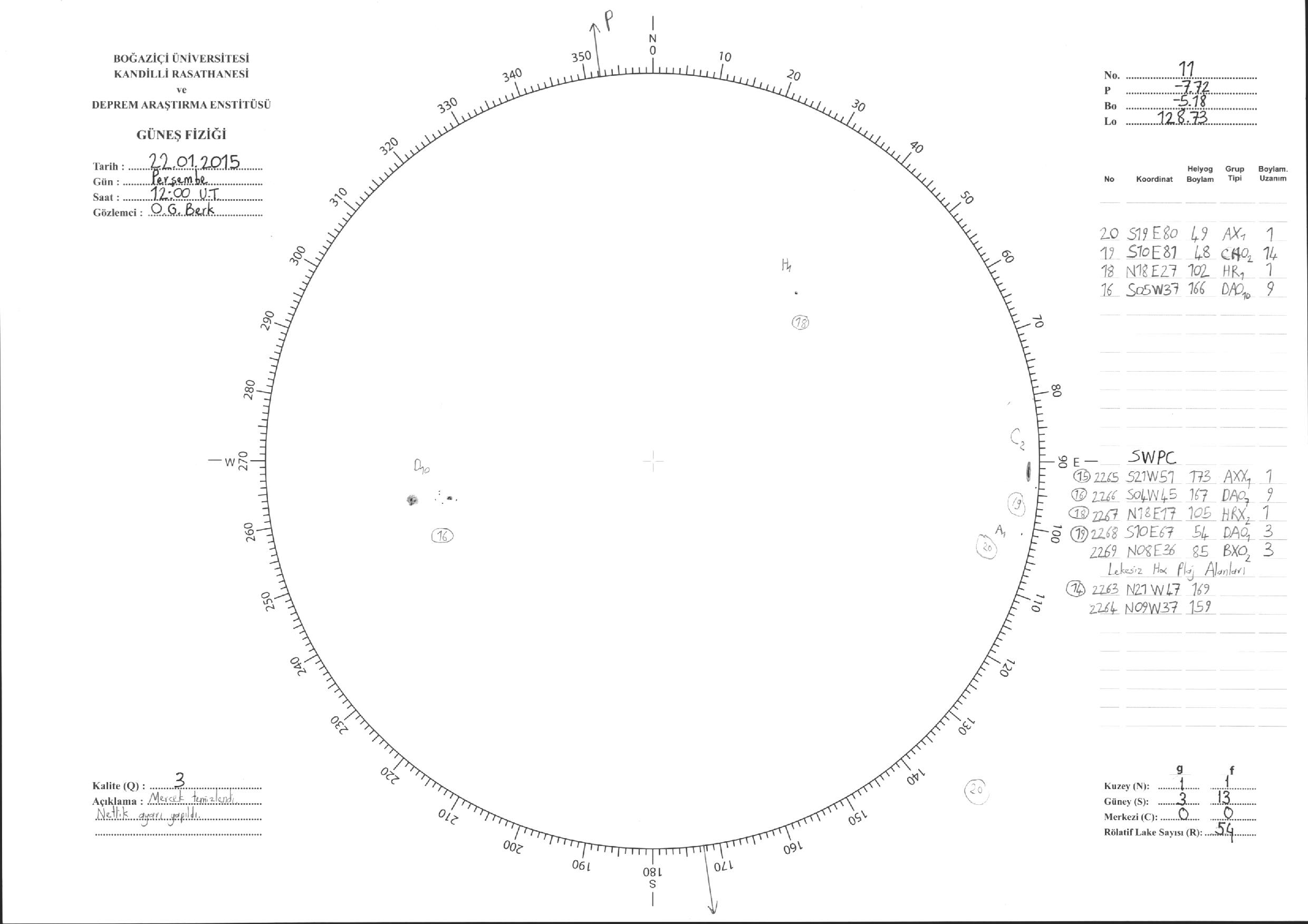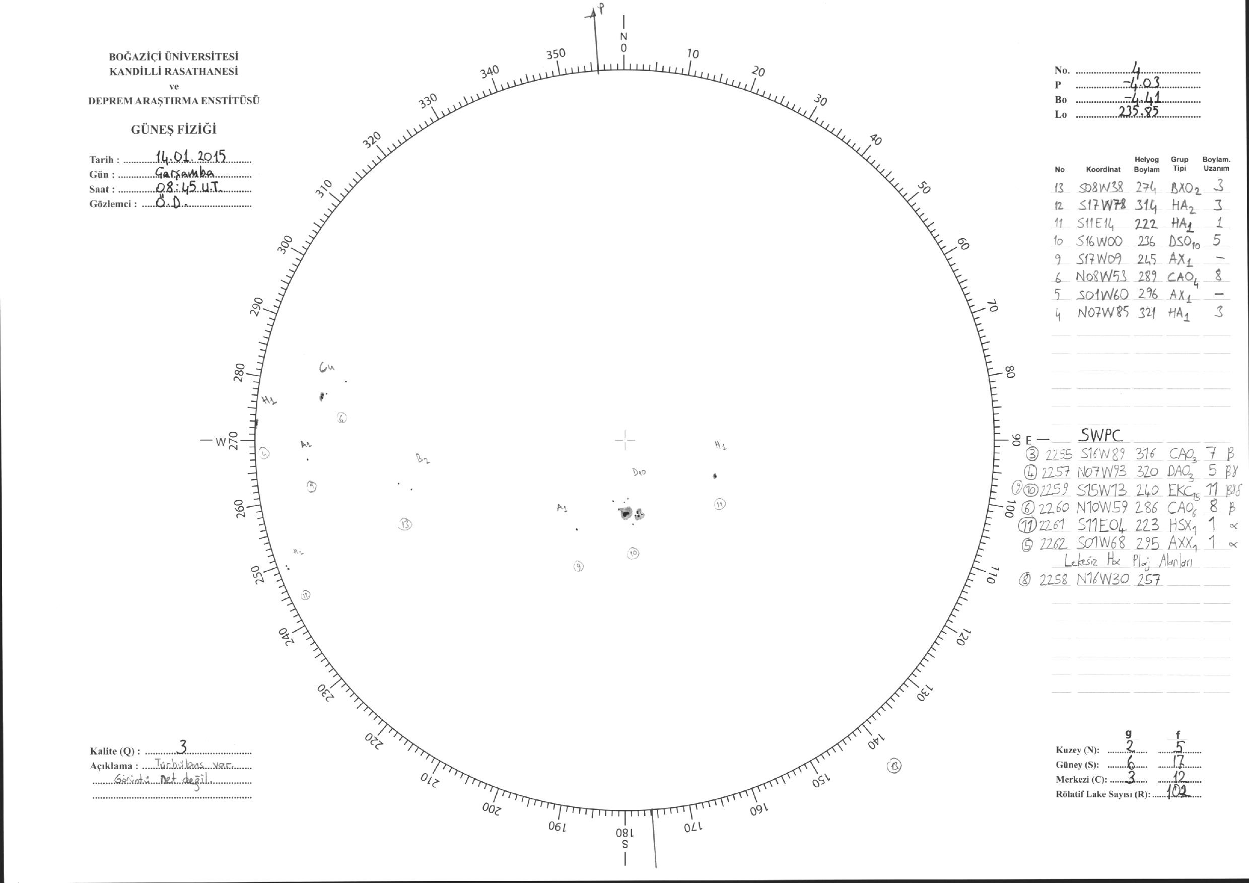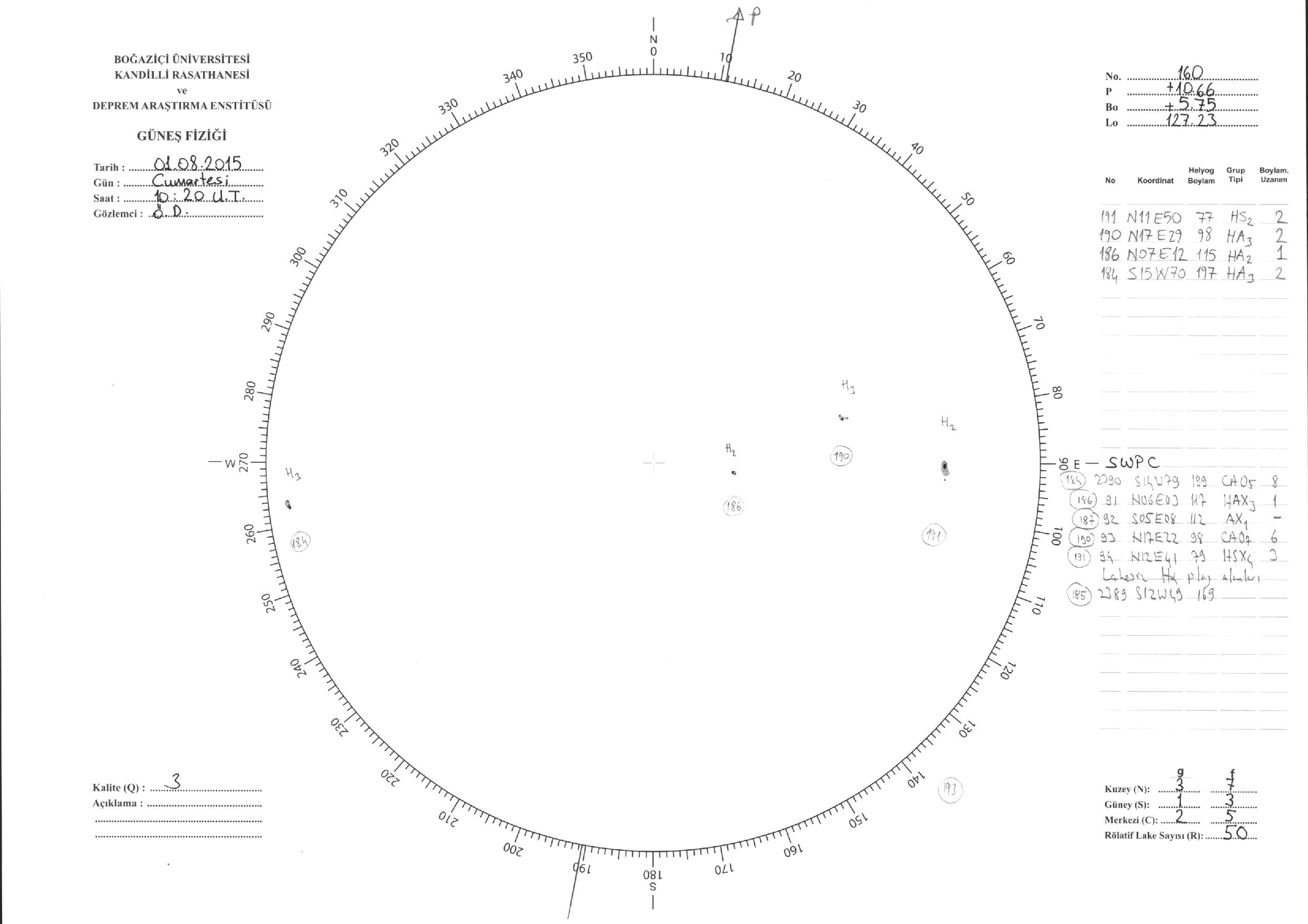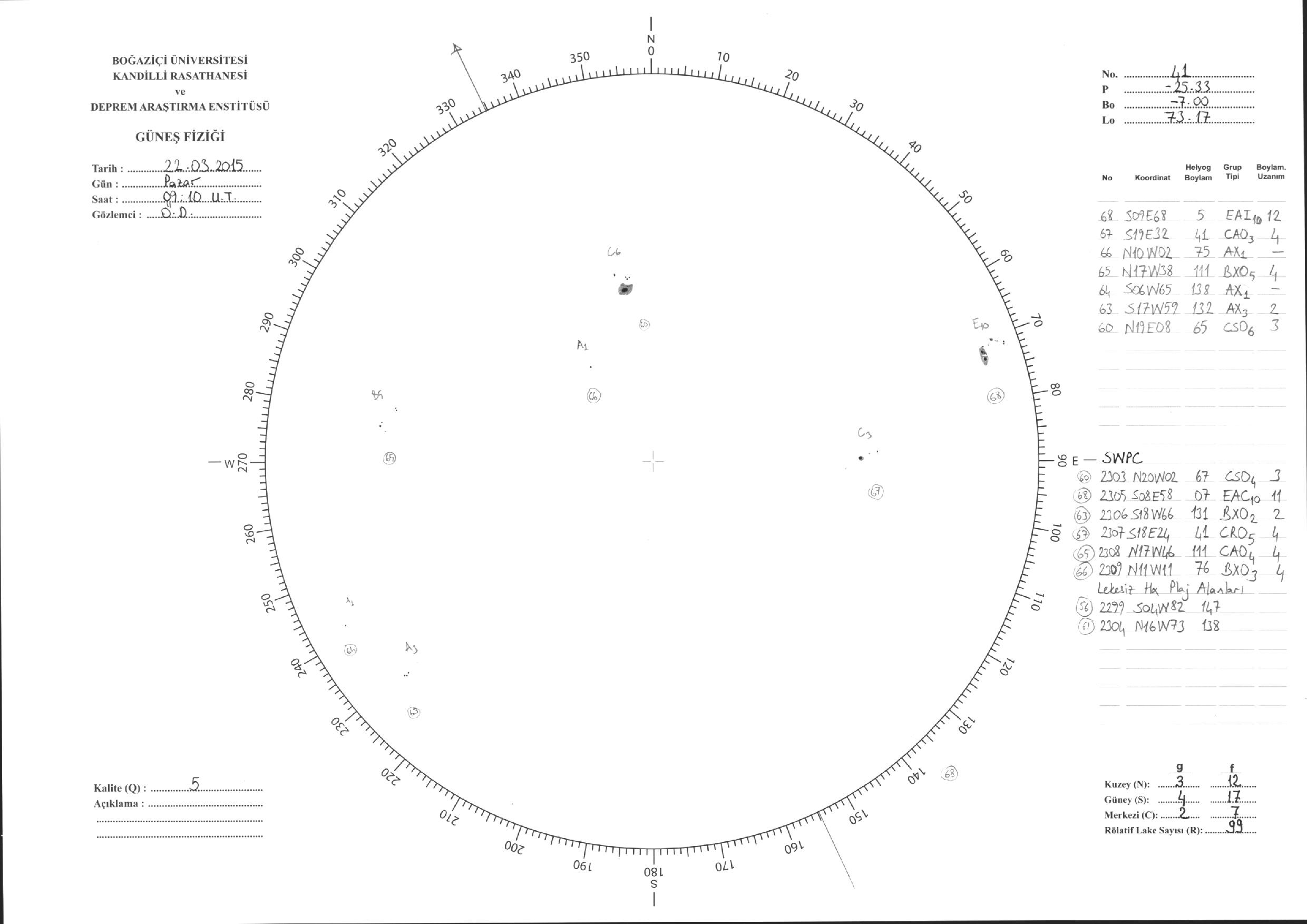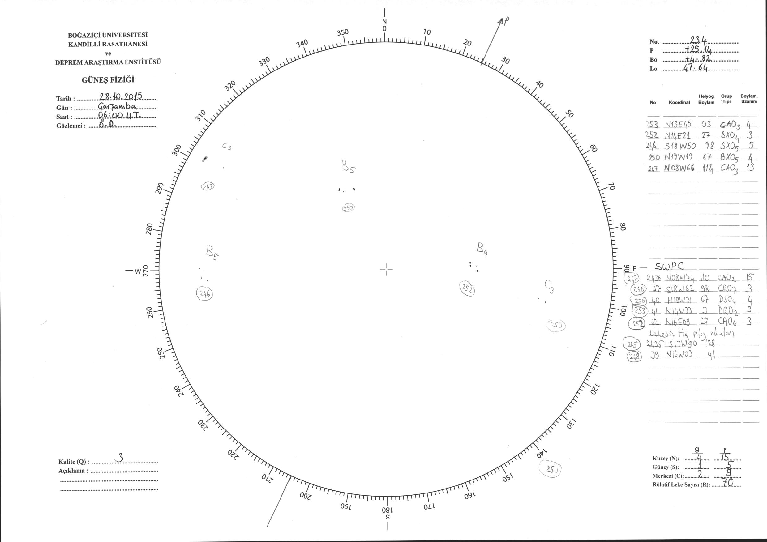 Güneş Lekesi Çizimleri / Kandilli Sunspot Drawings