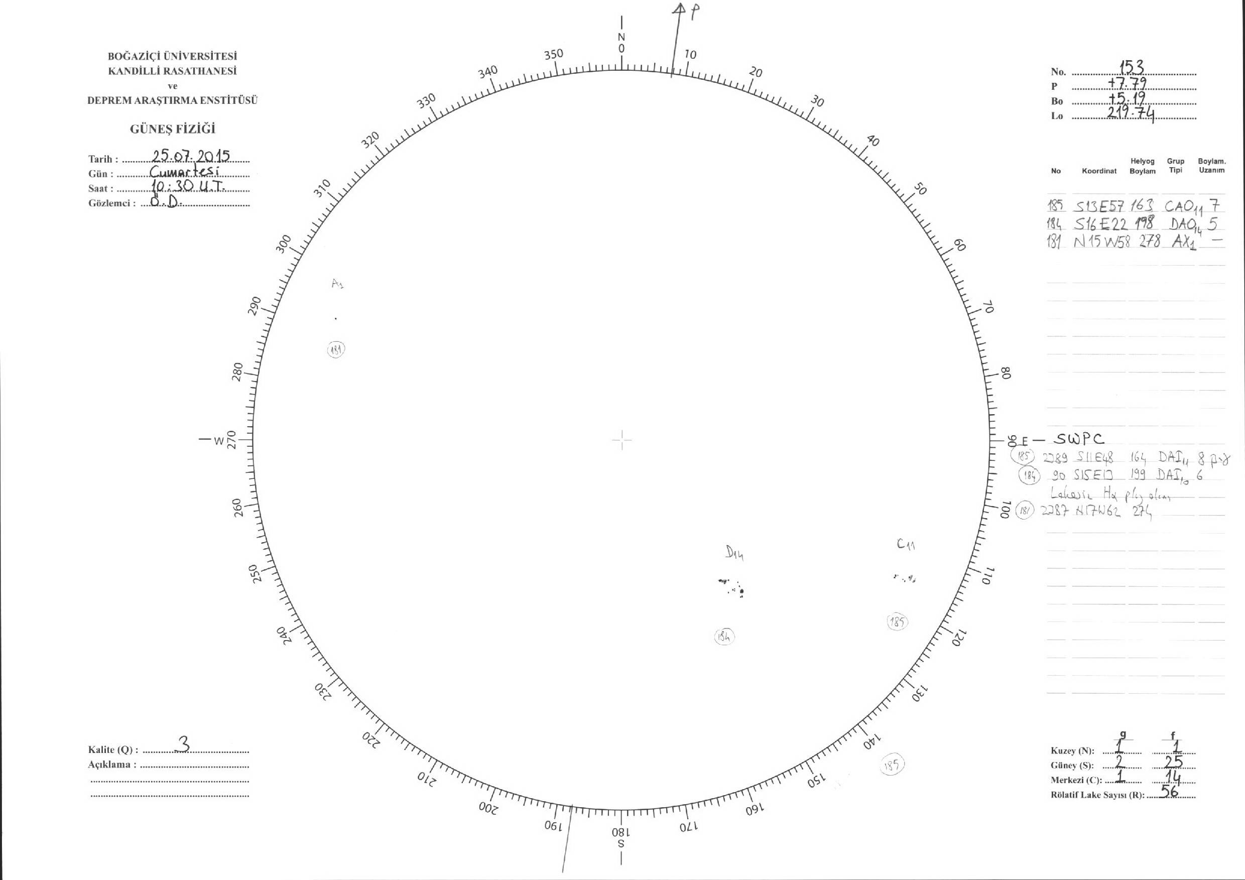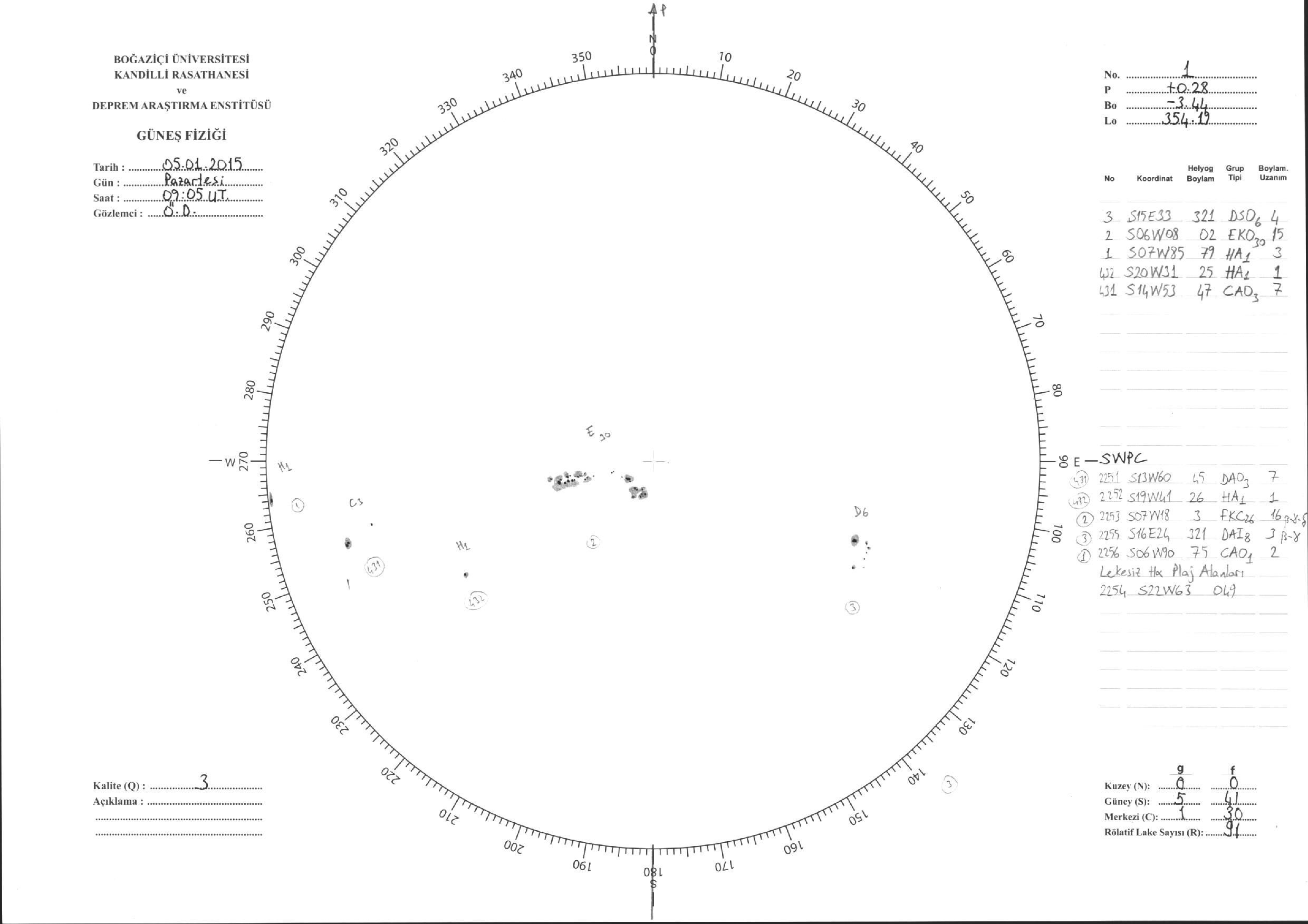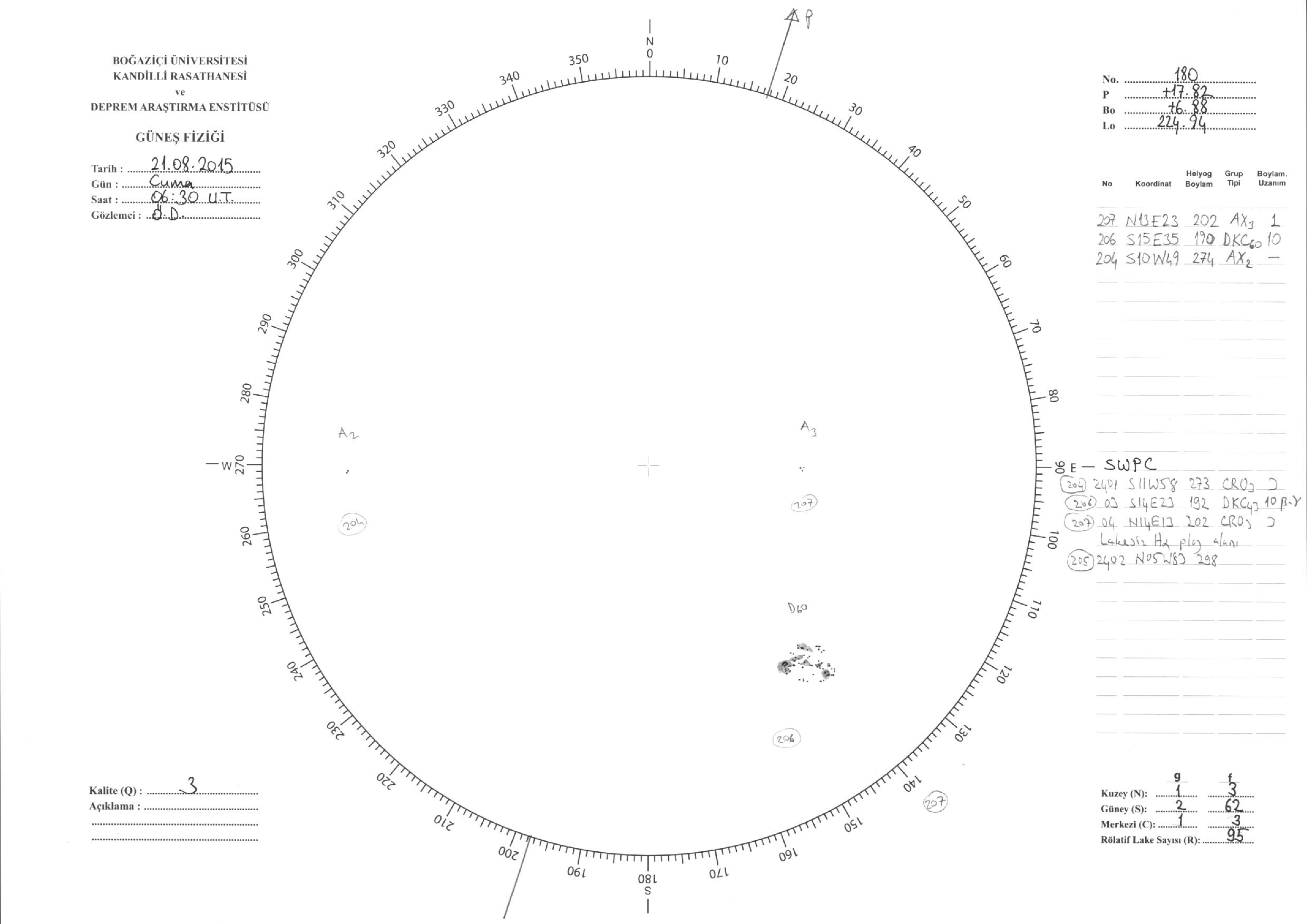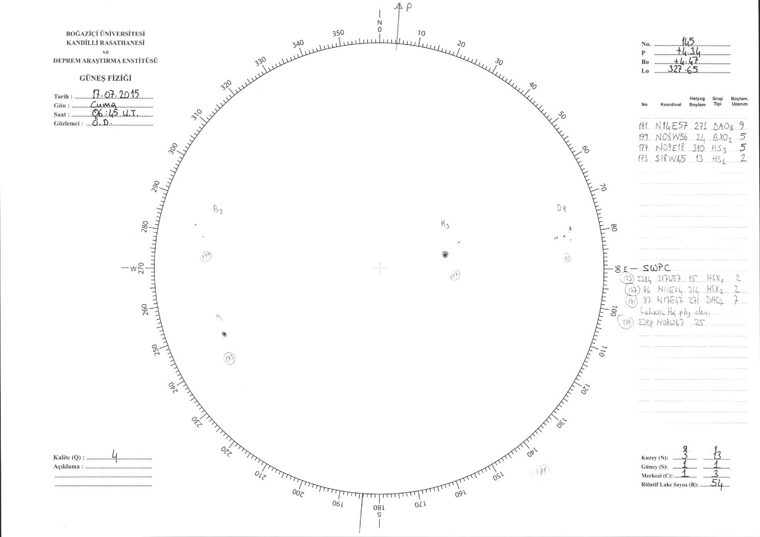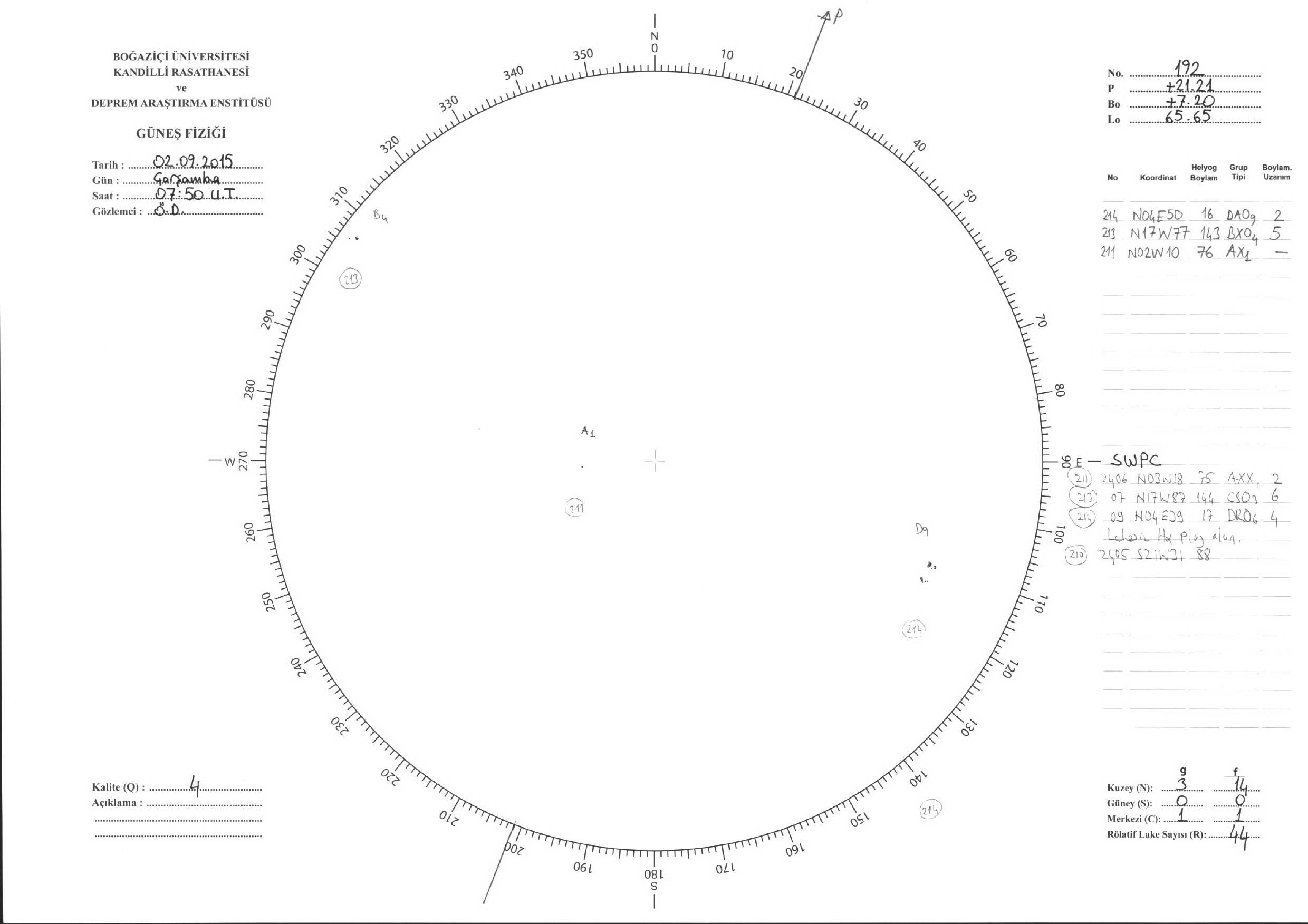 Güneş Lekesi Çizimleri / Kandilli Sunspot Drawings