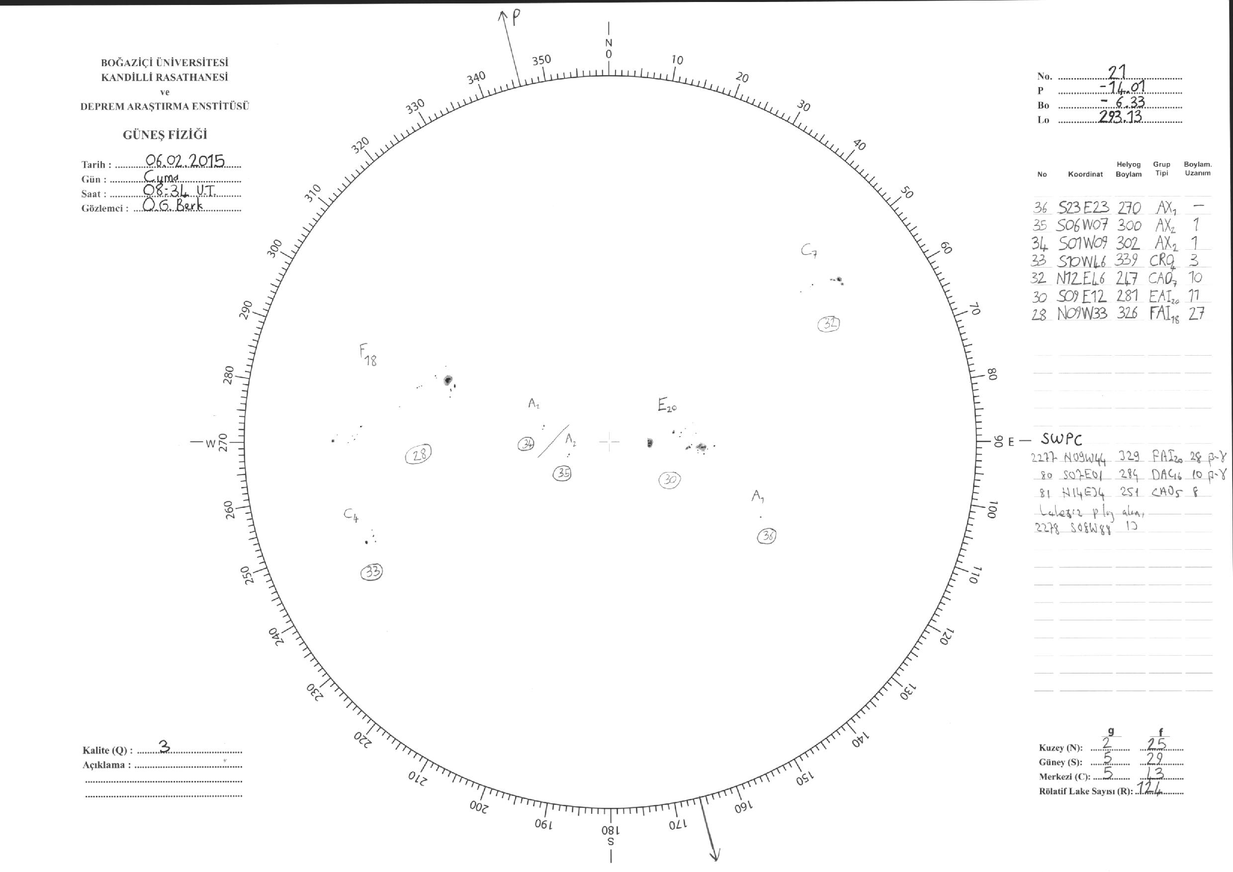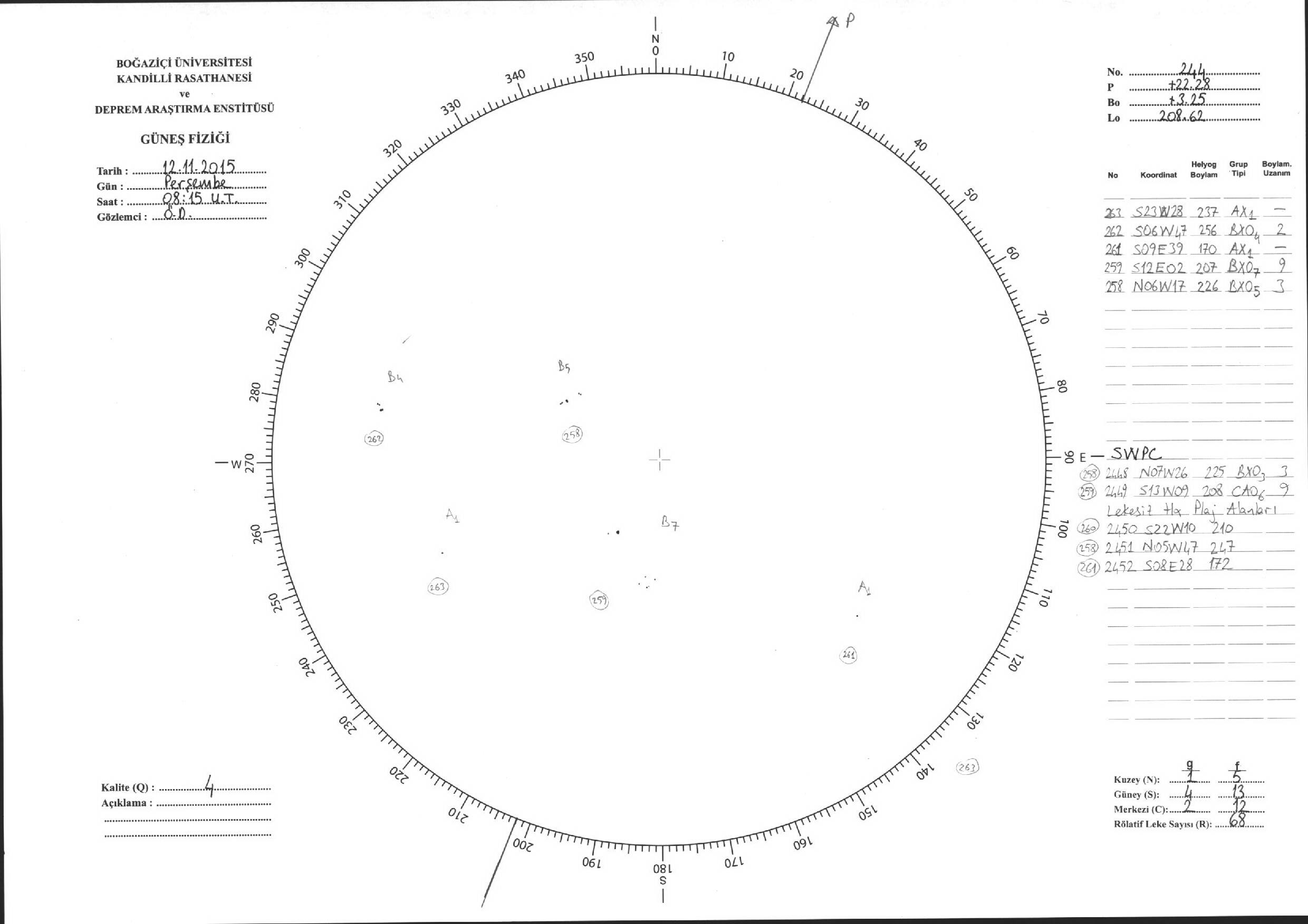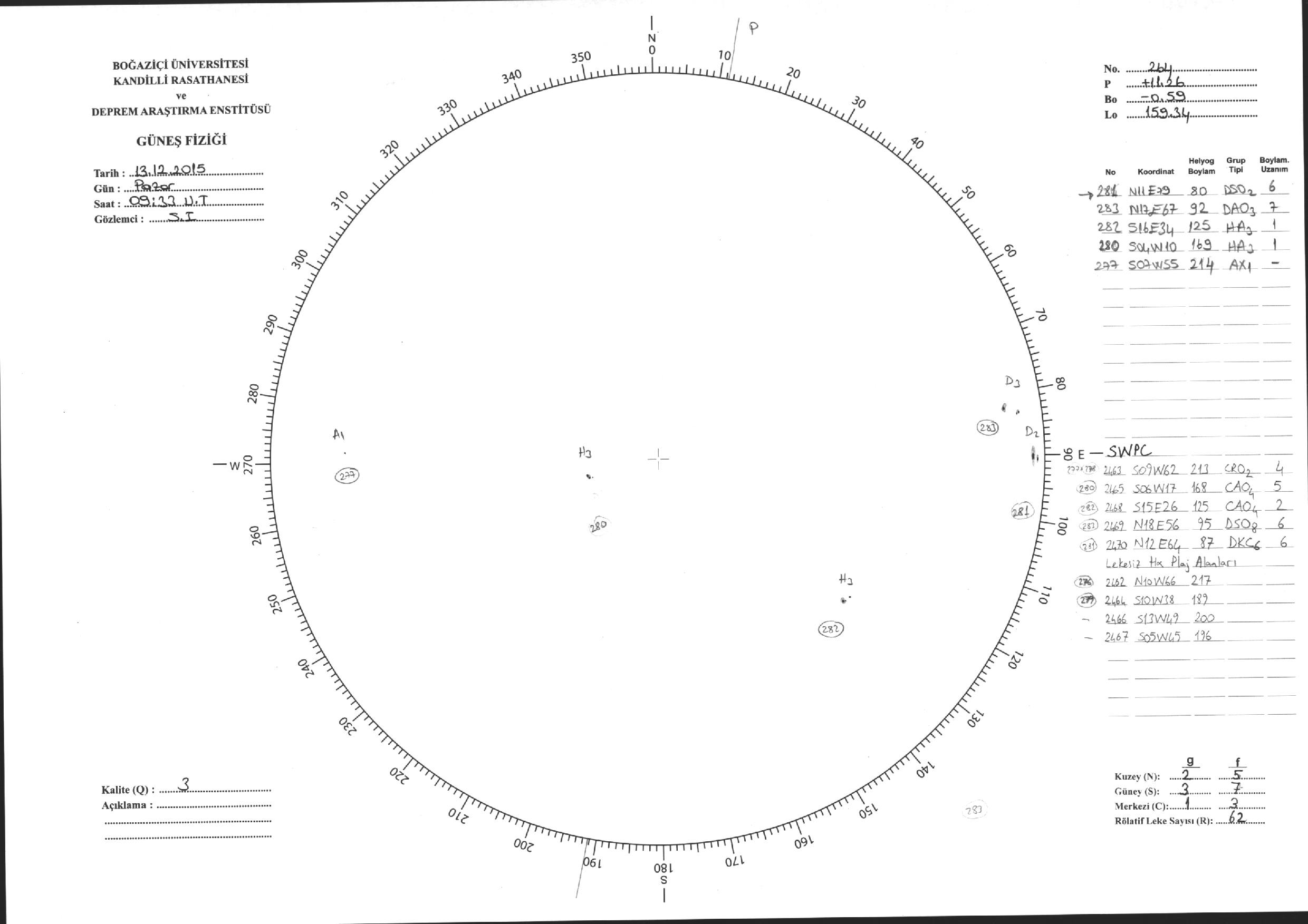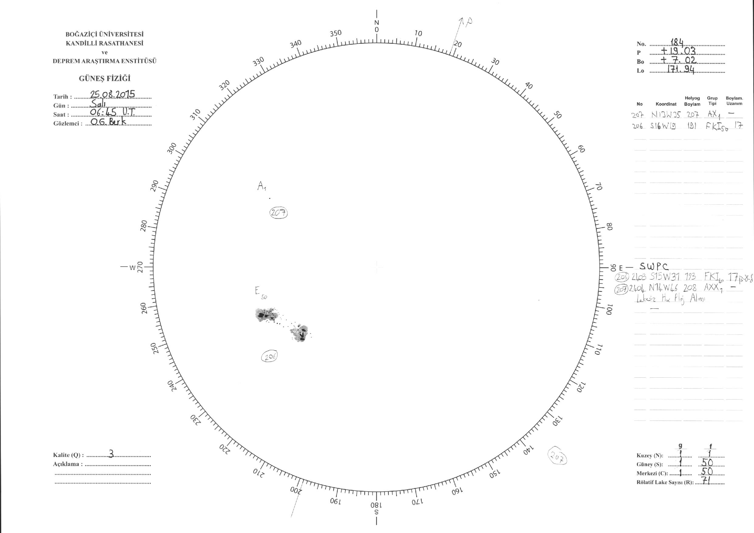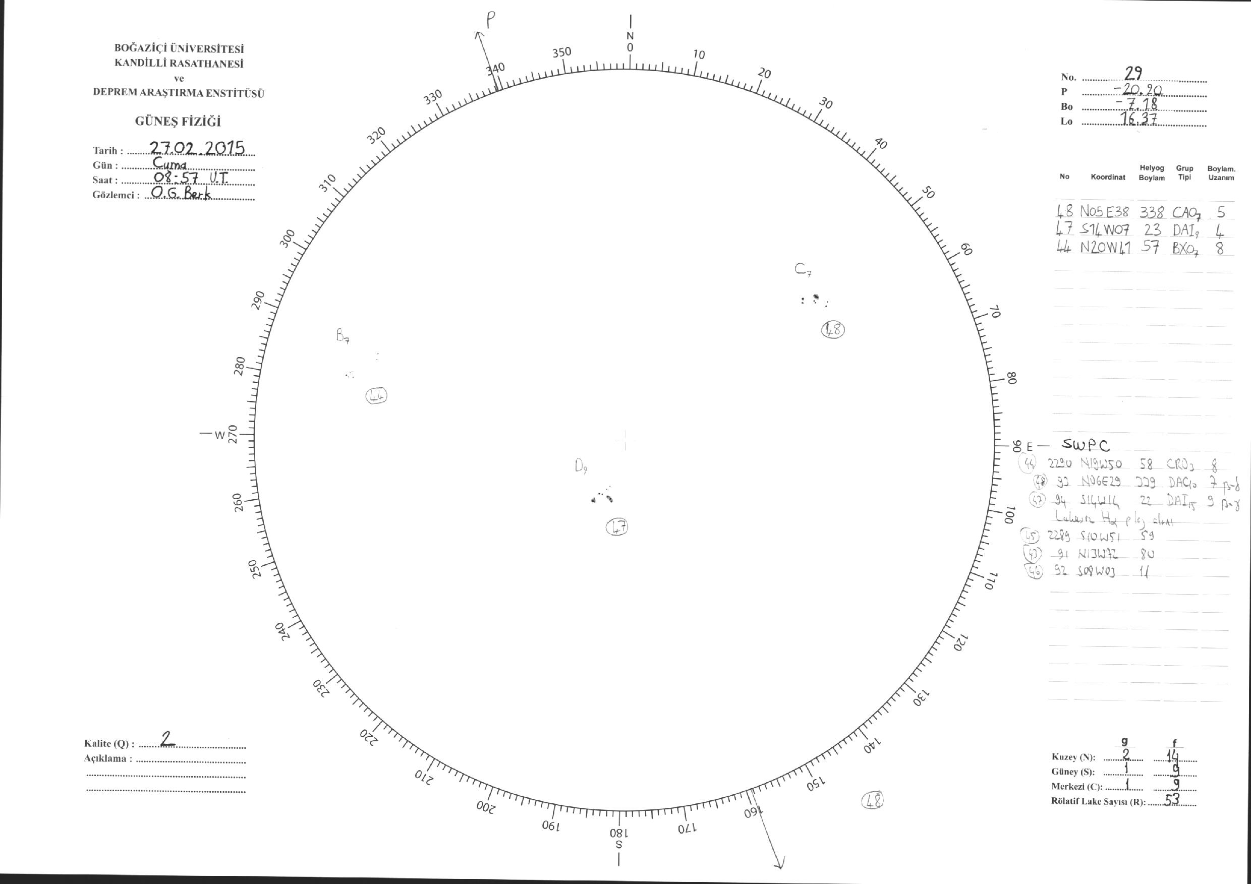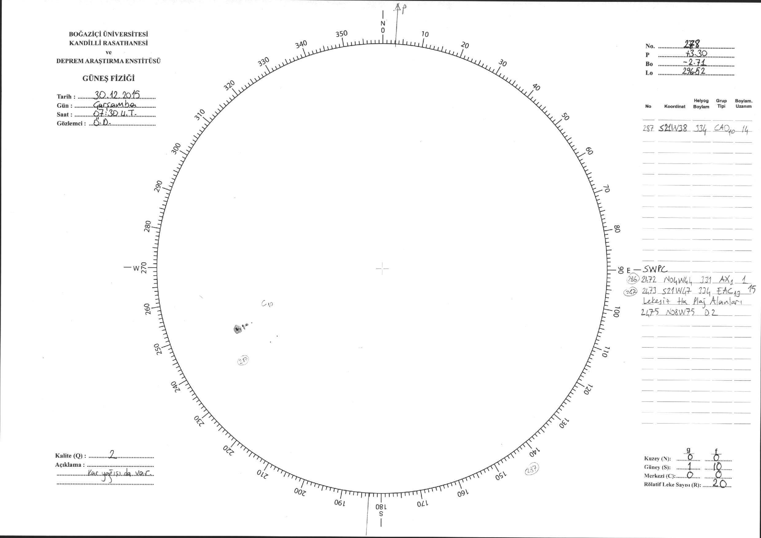 Güneş Lekesi Çizimleri / Kandilli Sunspot Drawings