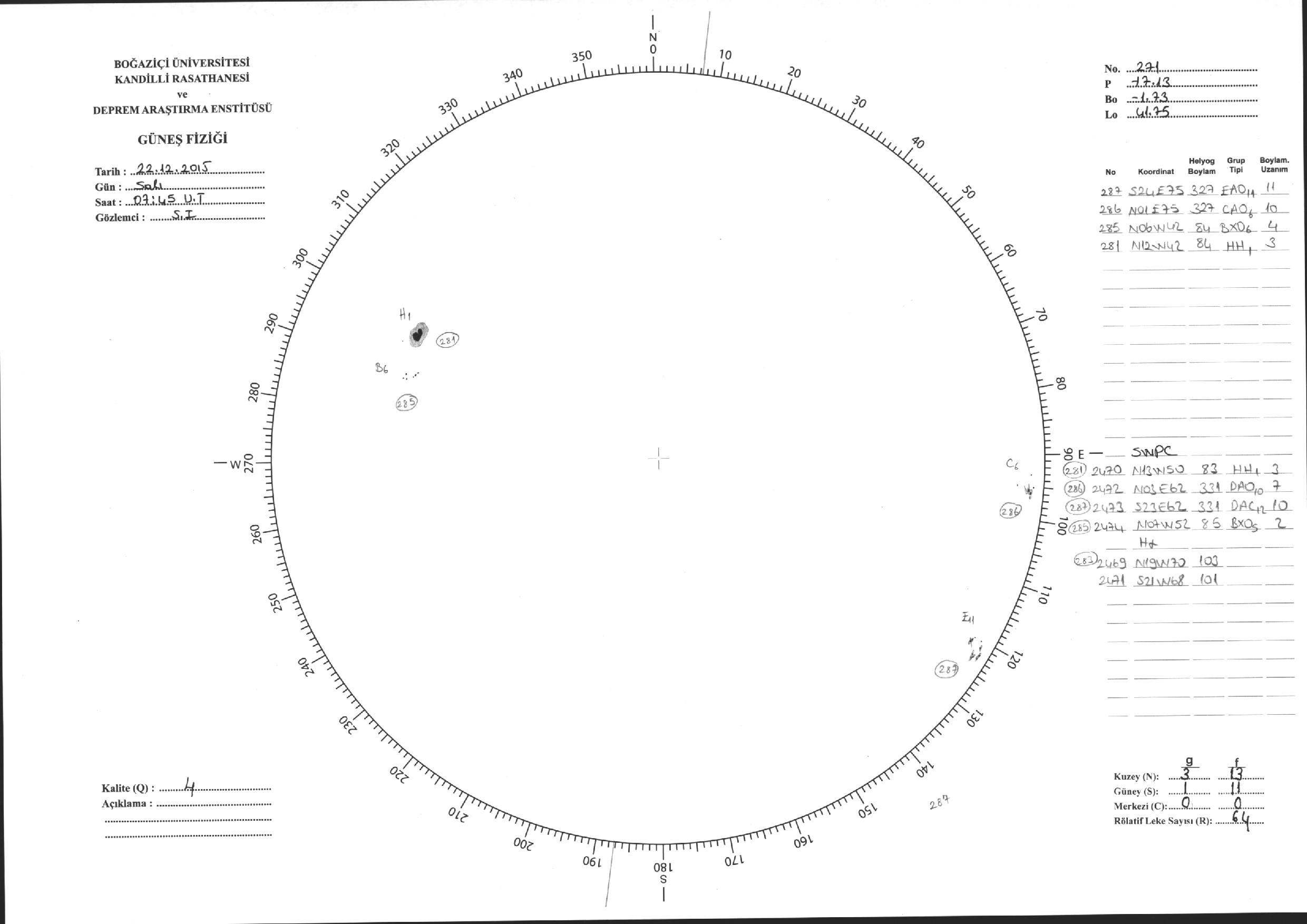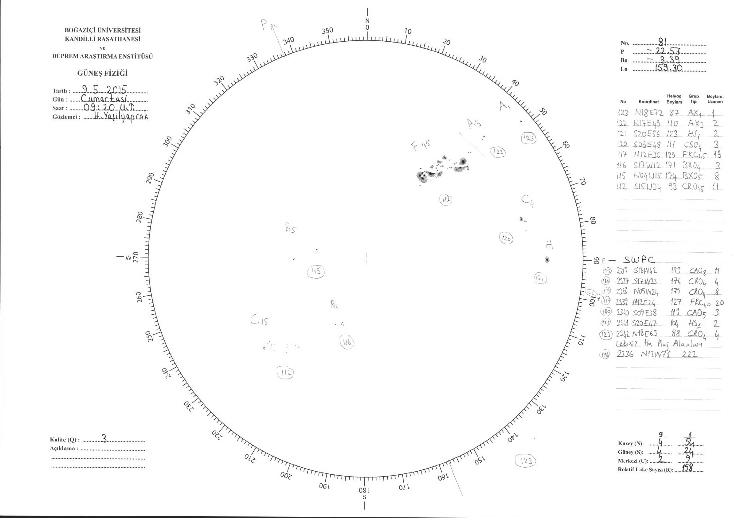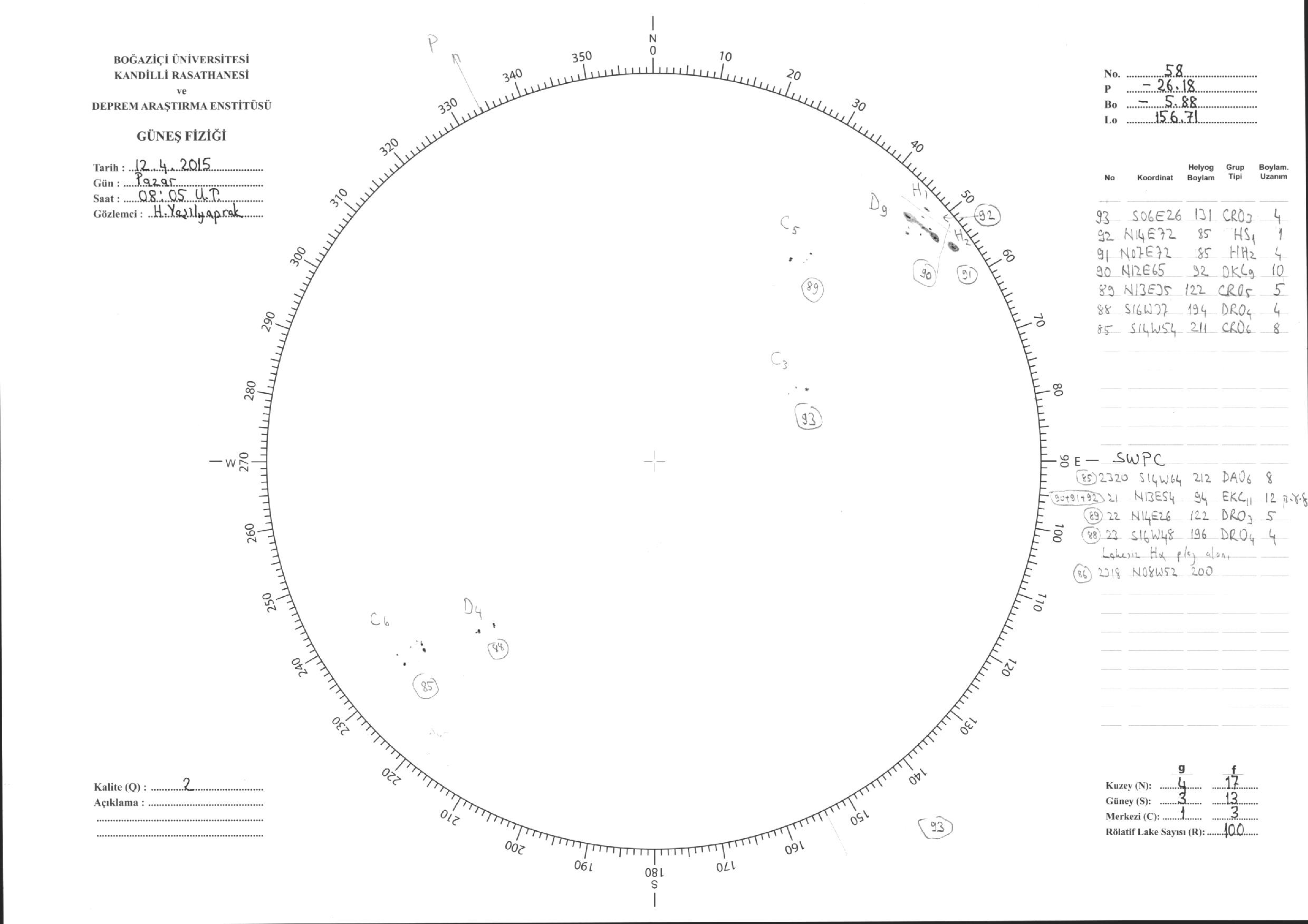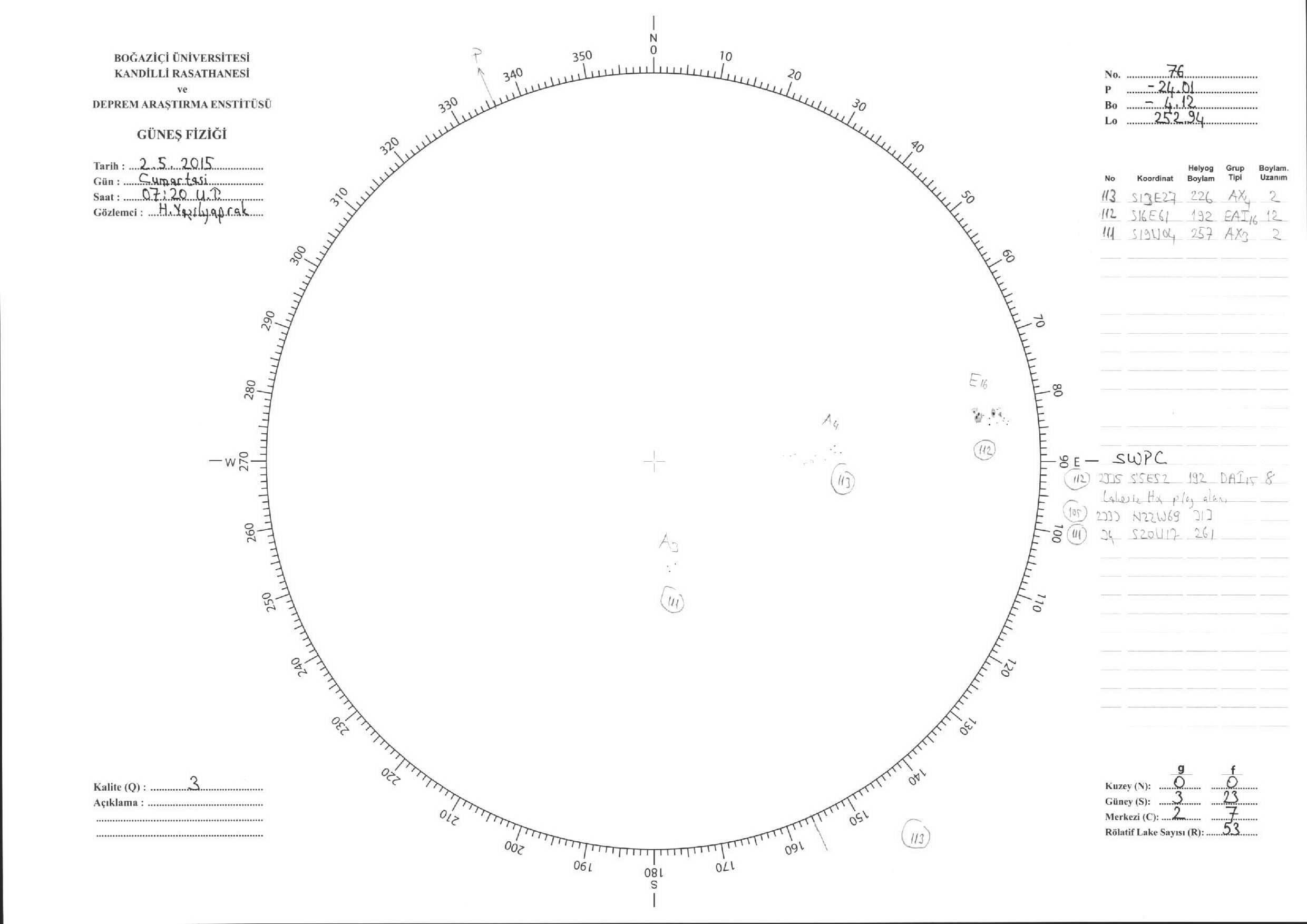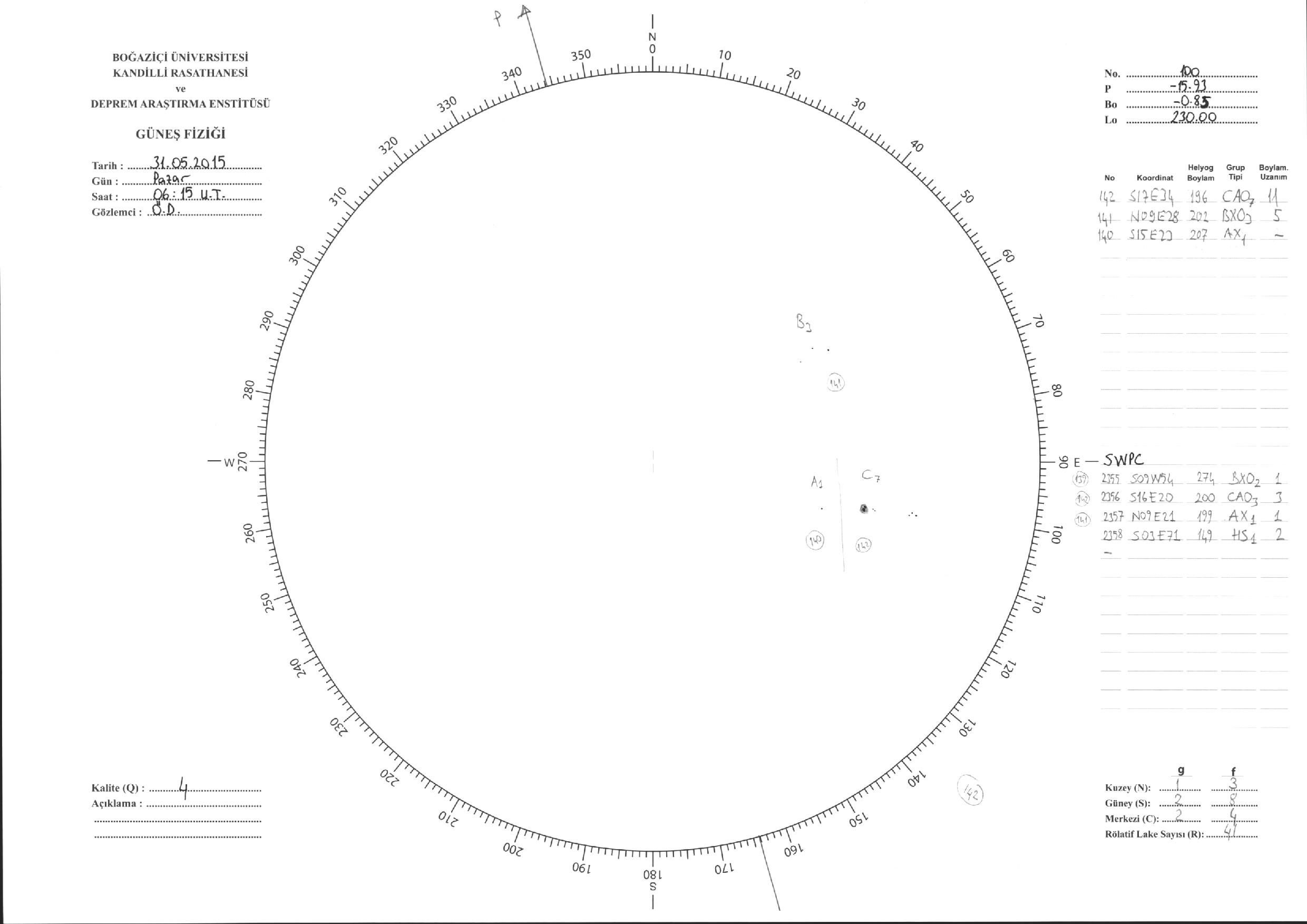Güneş Lekesi Çizimleri / Kandilli Sunspot Drawings