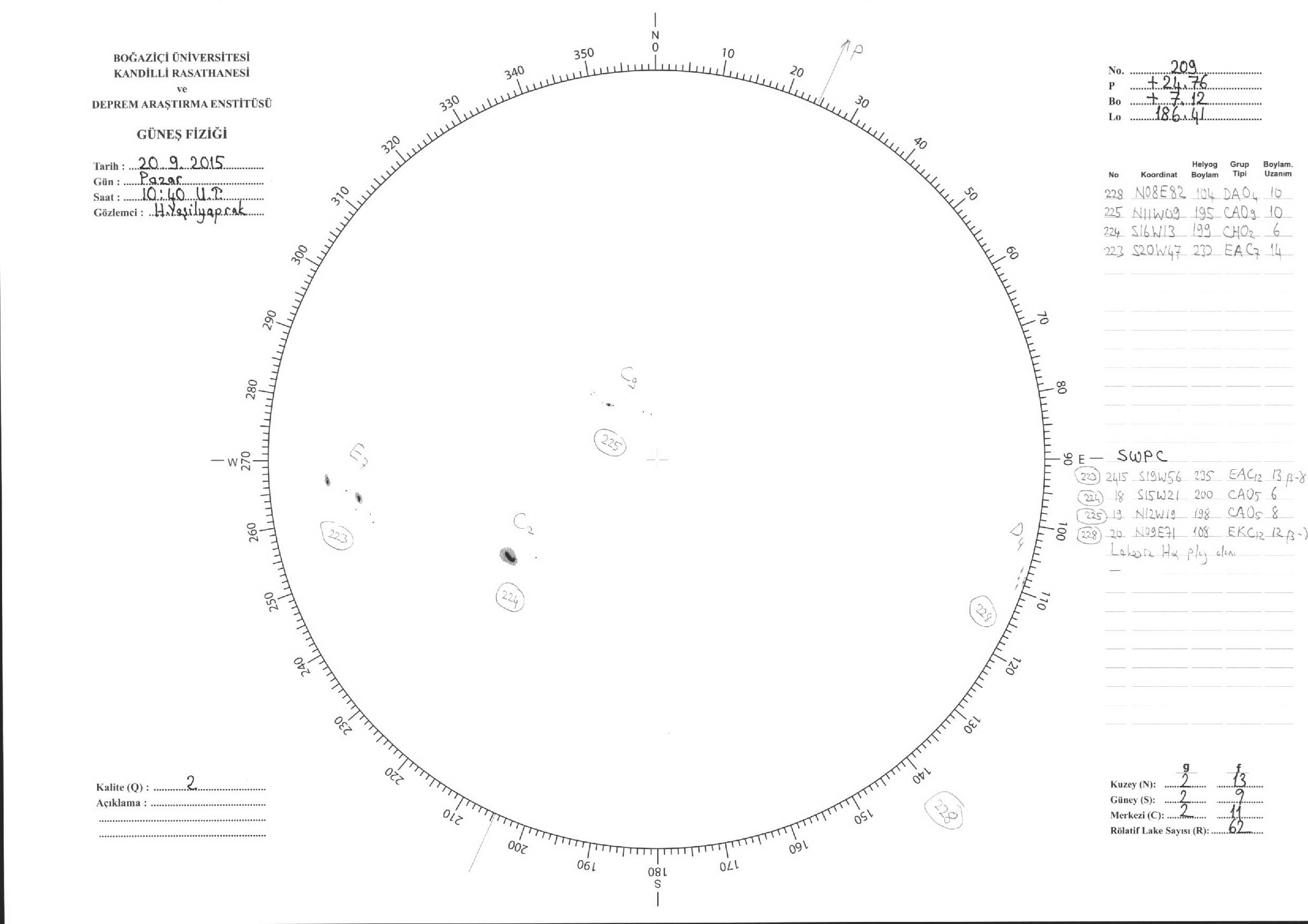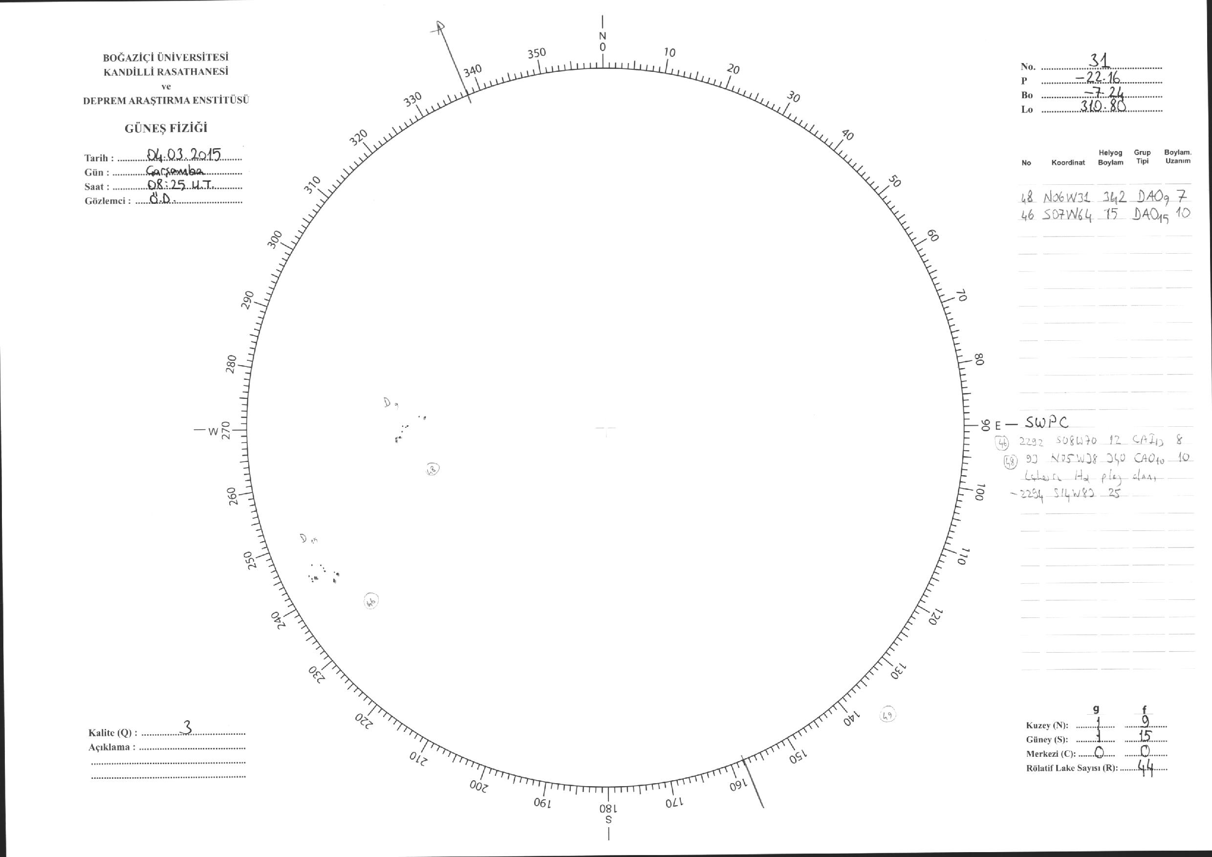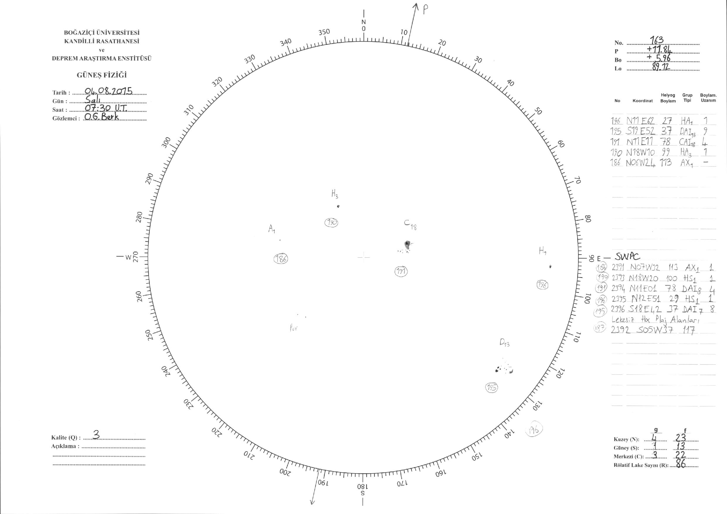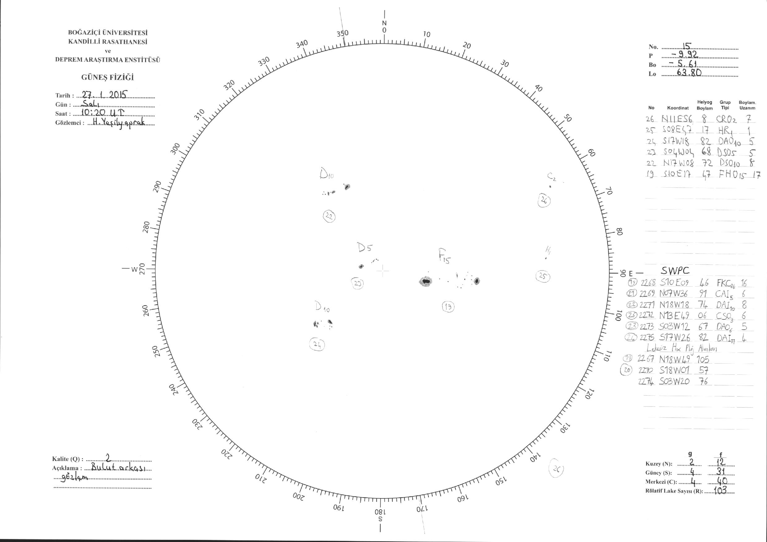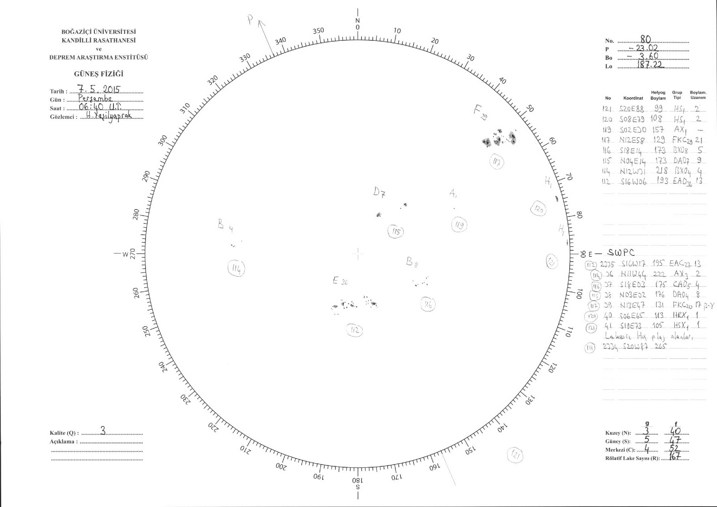 Güneş Lekesi Çizimleri / Kandilli Sunspot Drawings