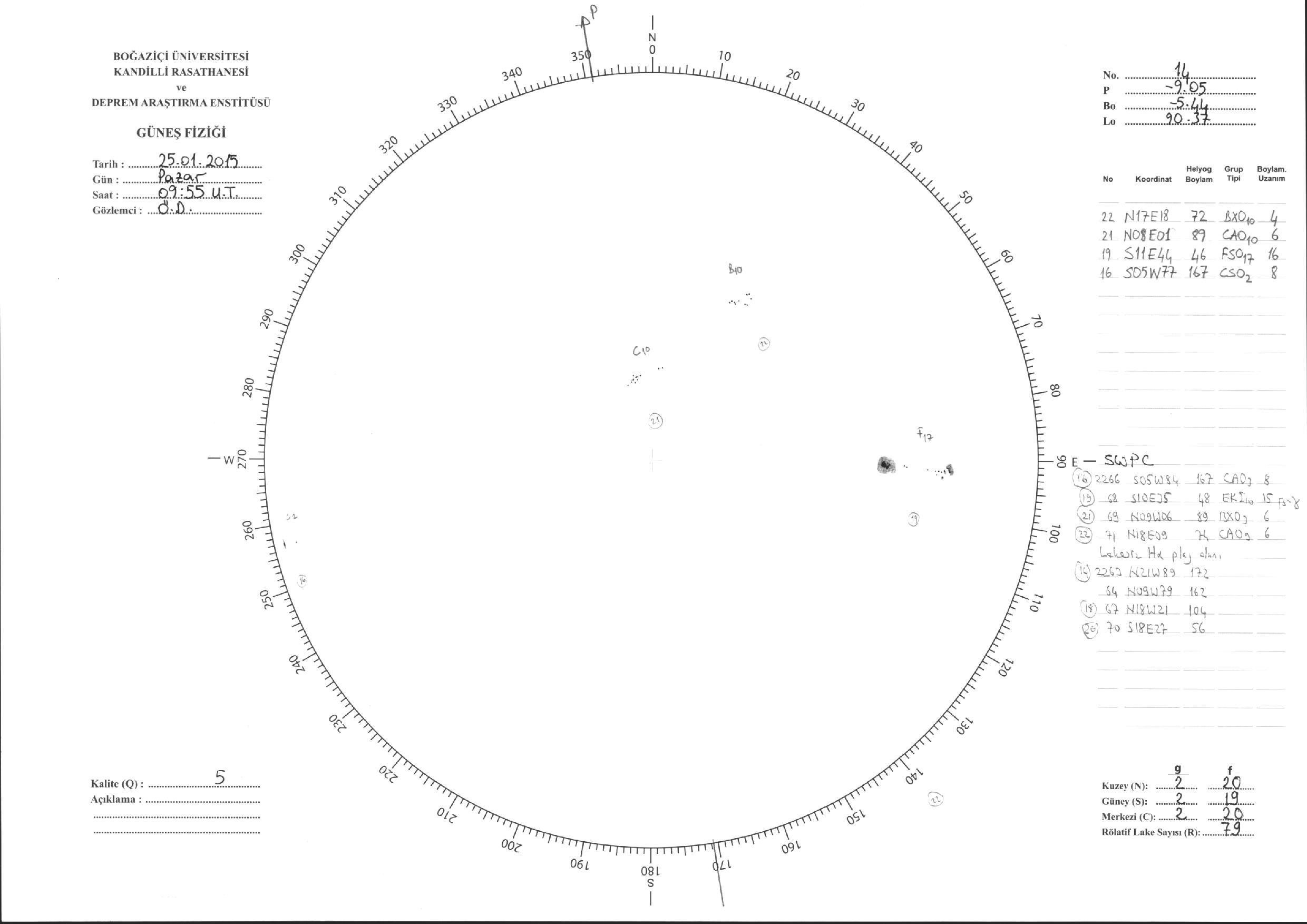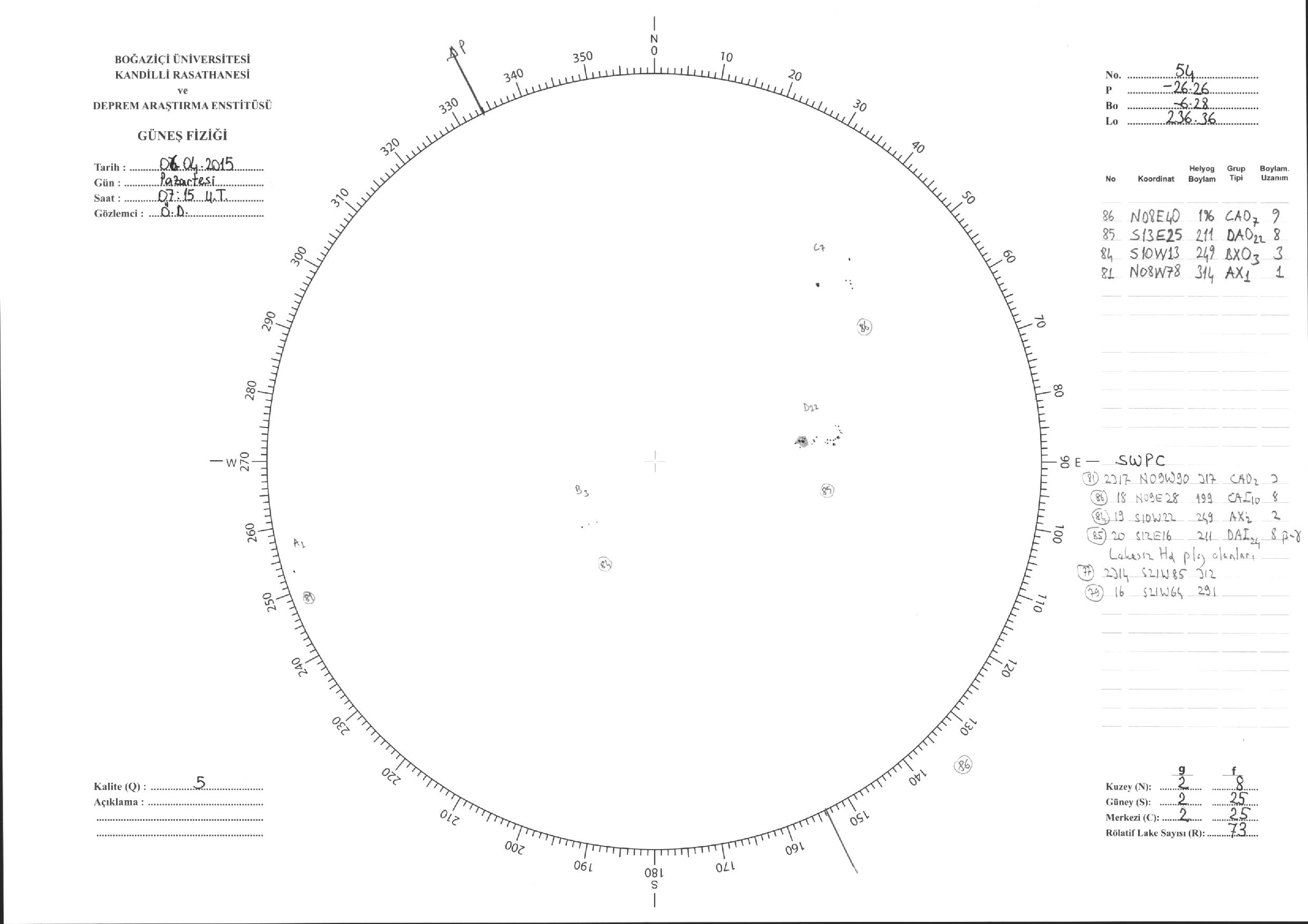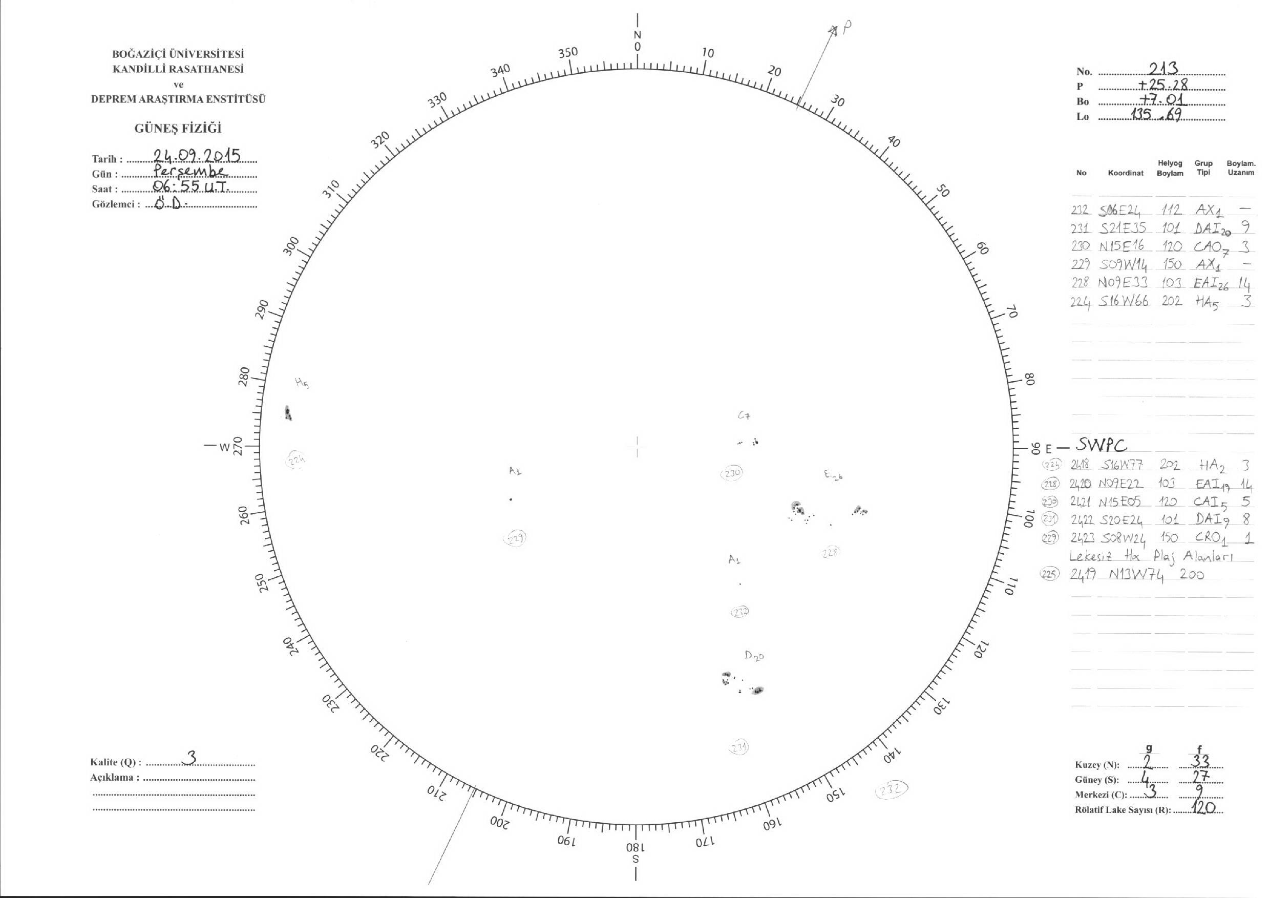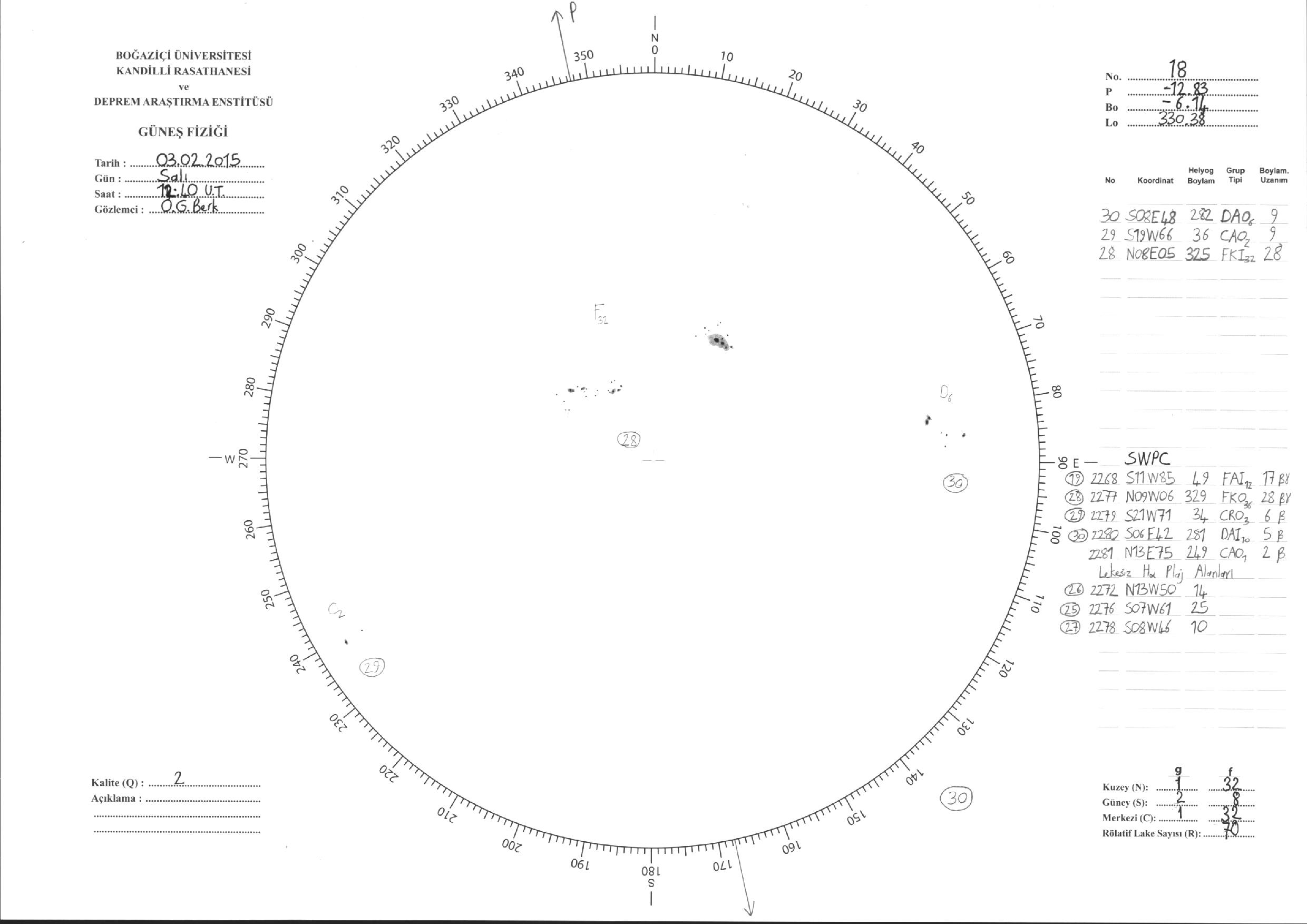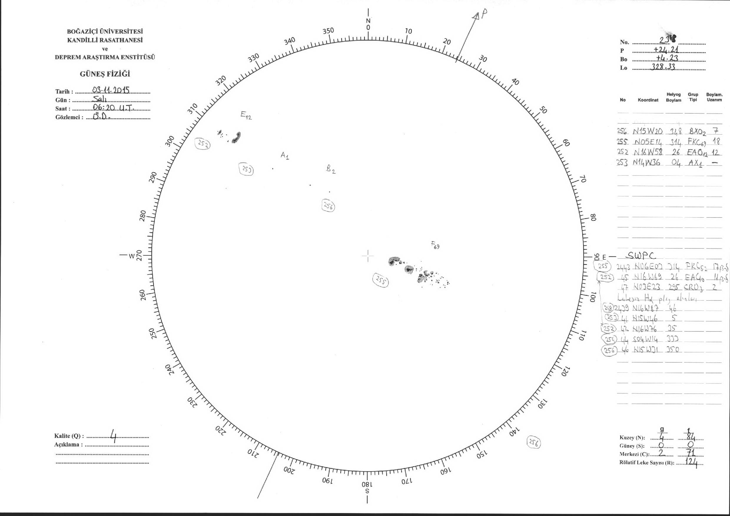 Güneş Lekesi Çizimleri / Kandilli Sunspot Drawings