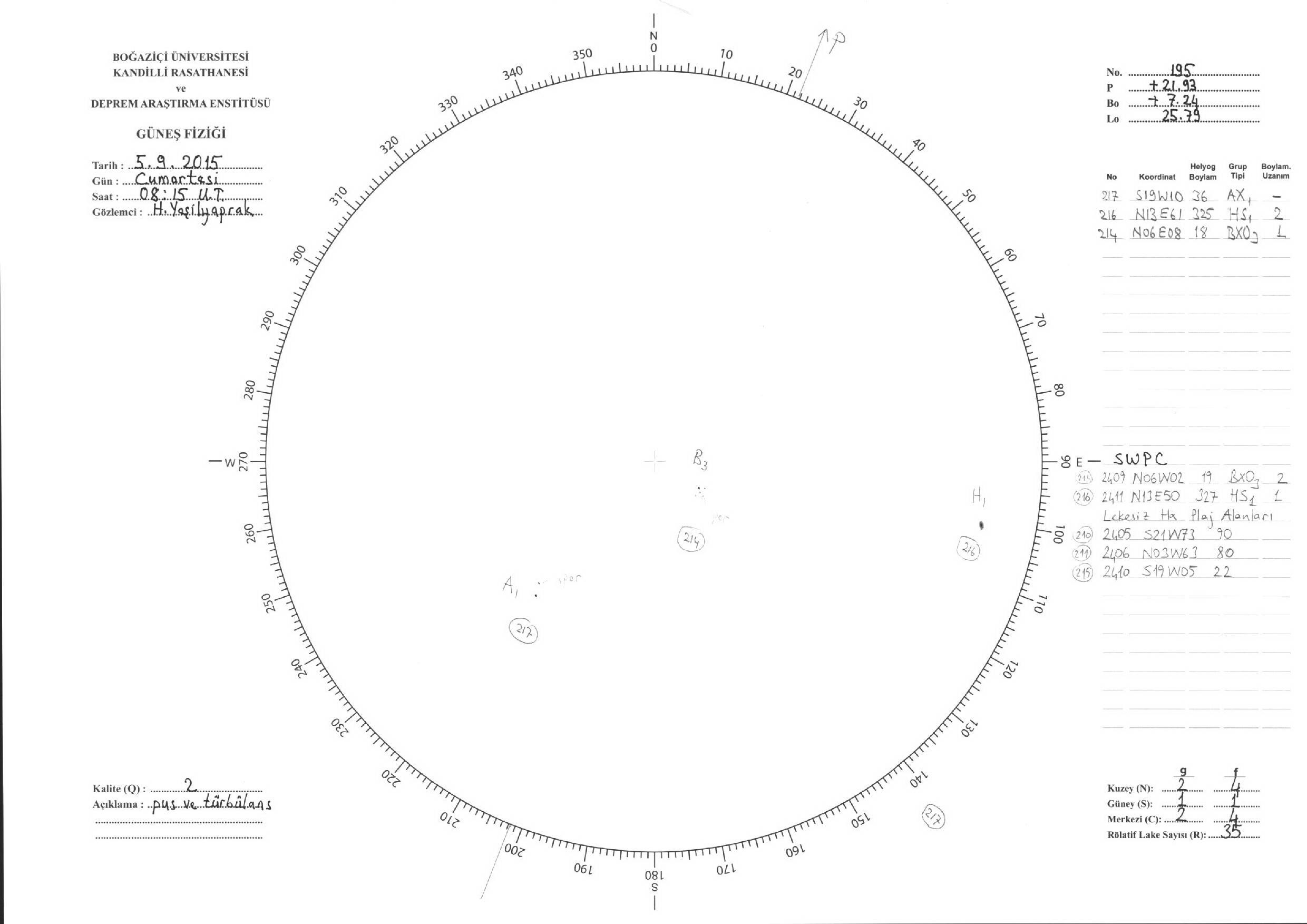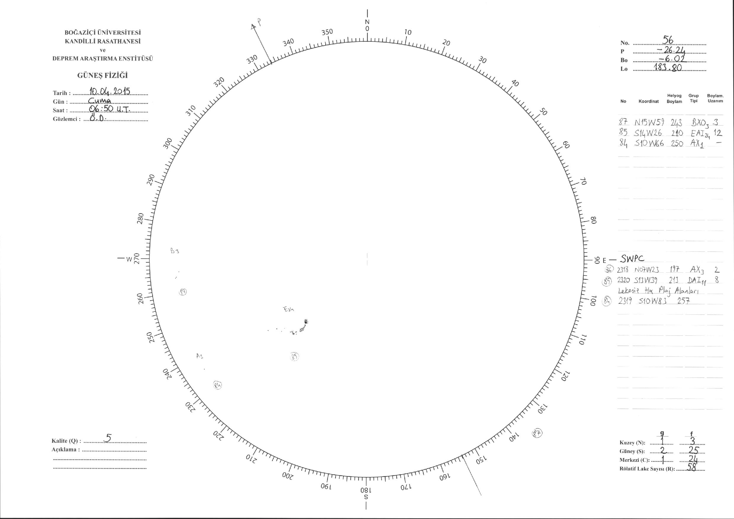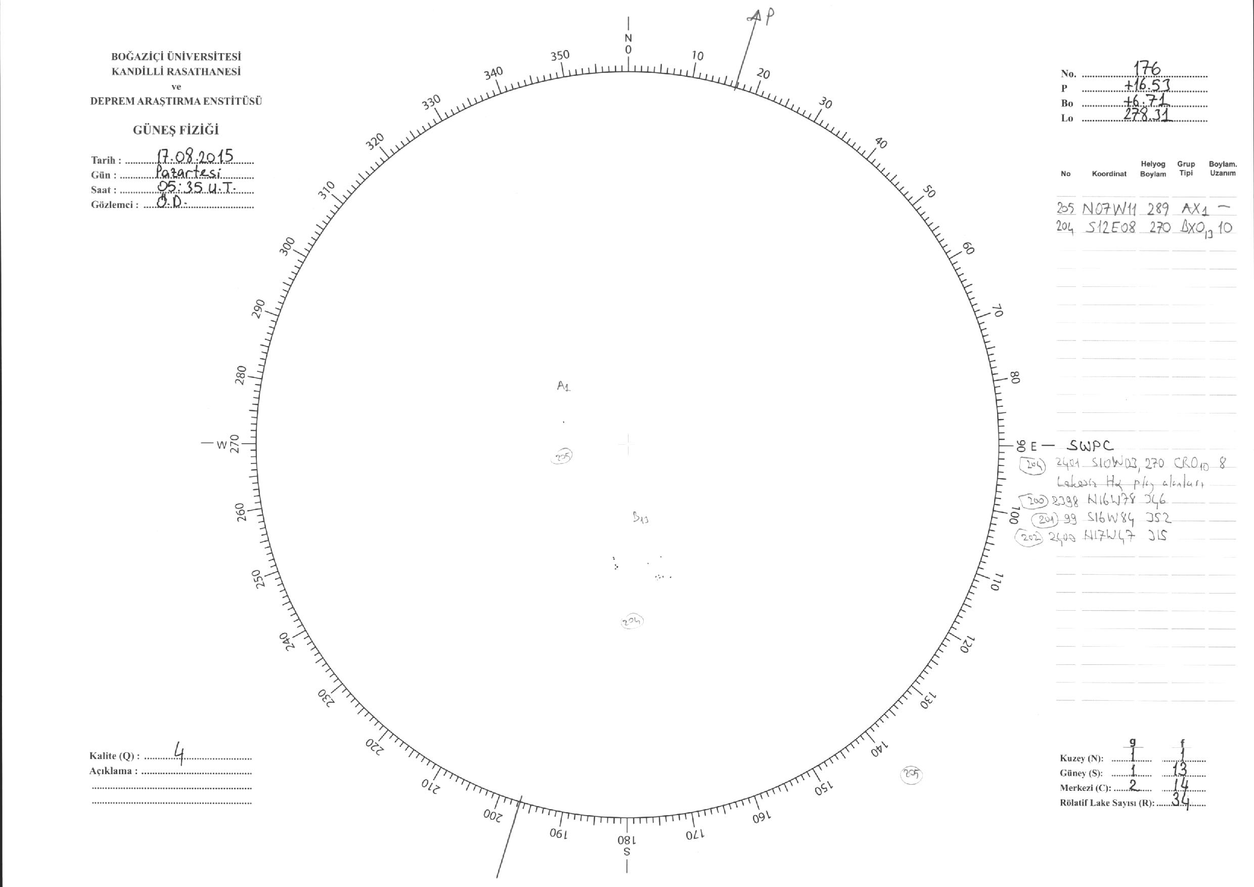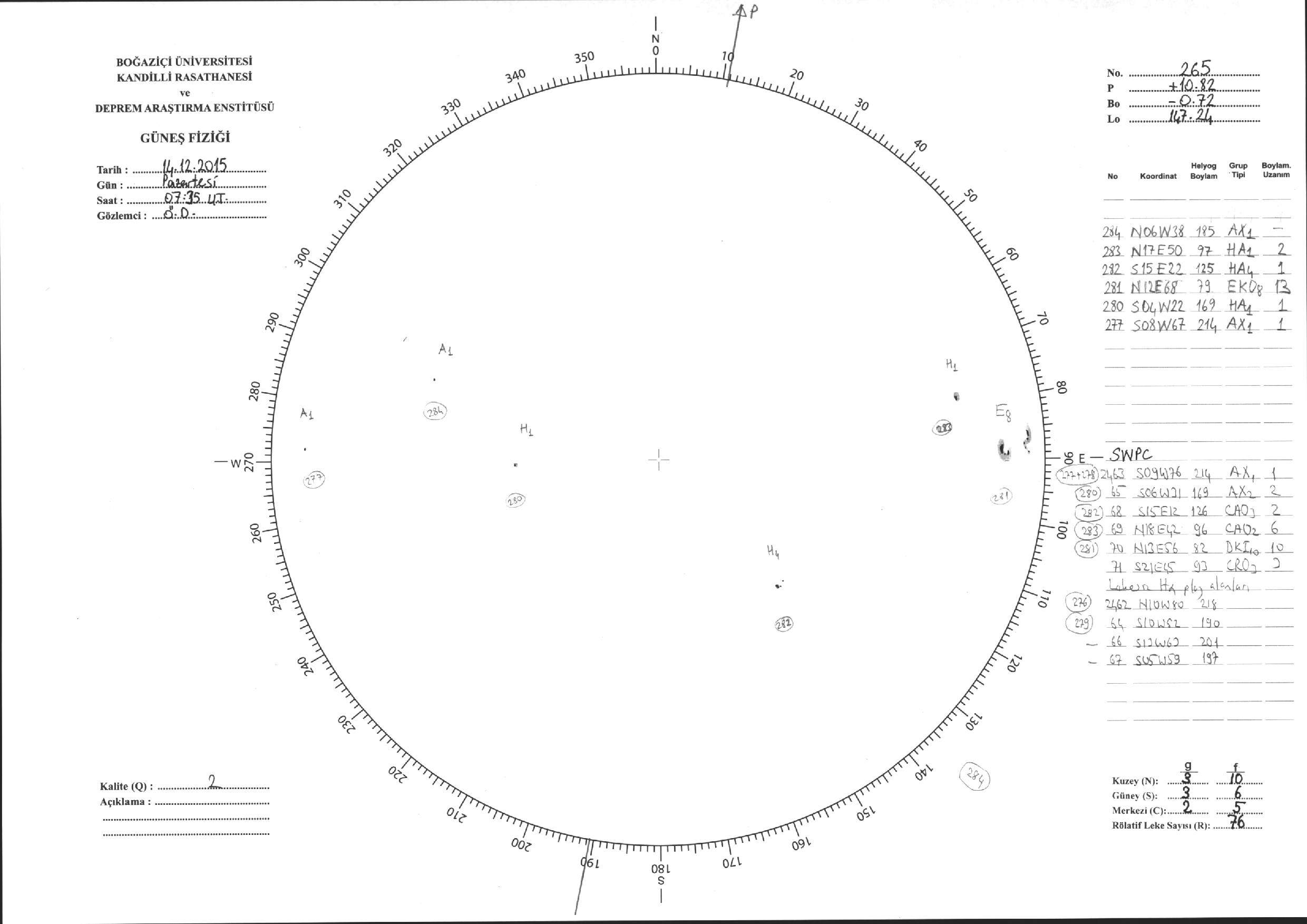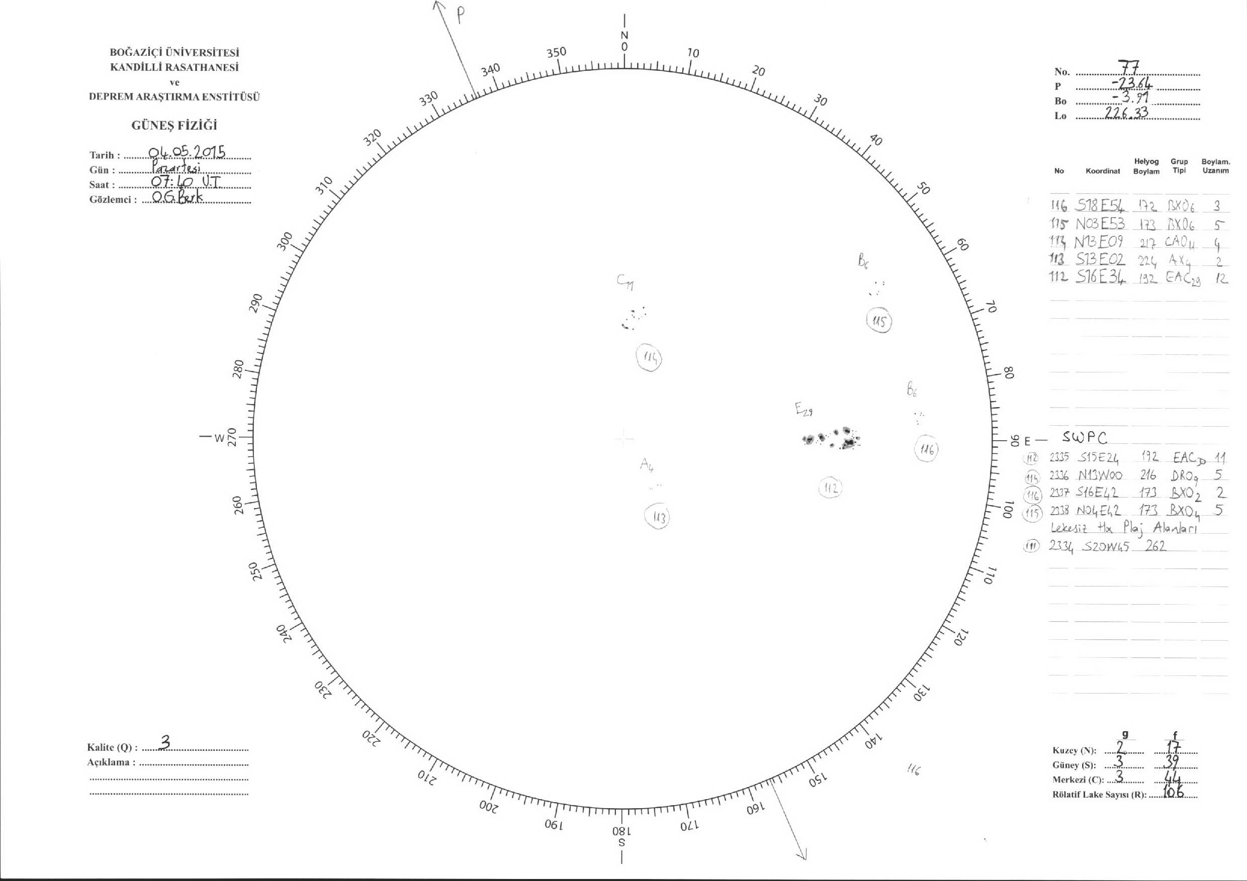 Güneş Lekesi Çizimleri / Kandilli Sunspot Drawings