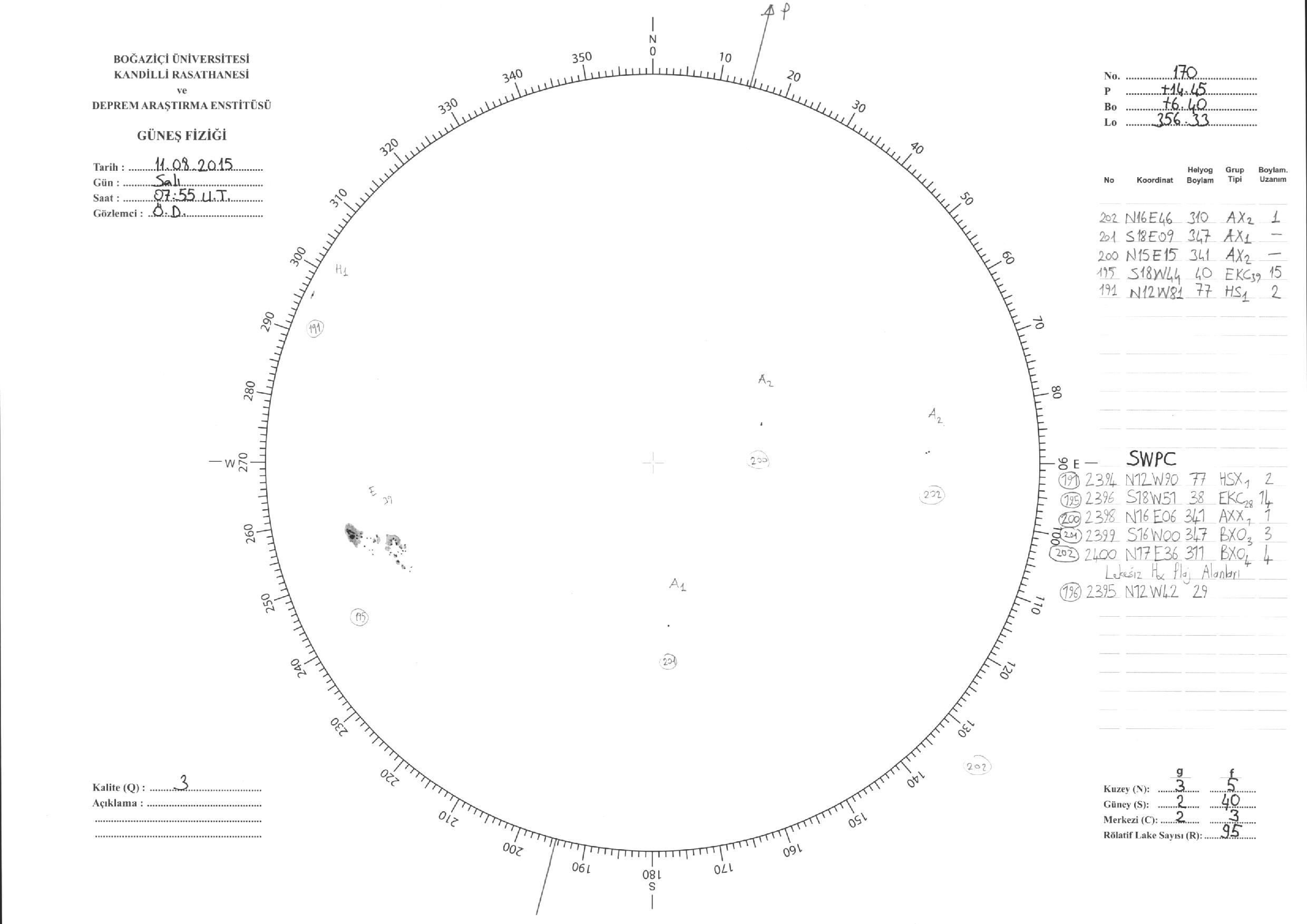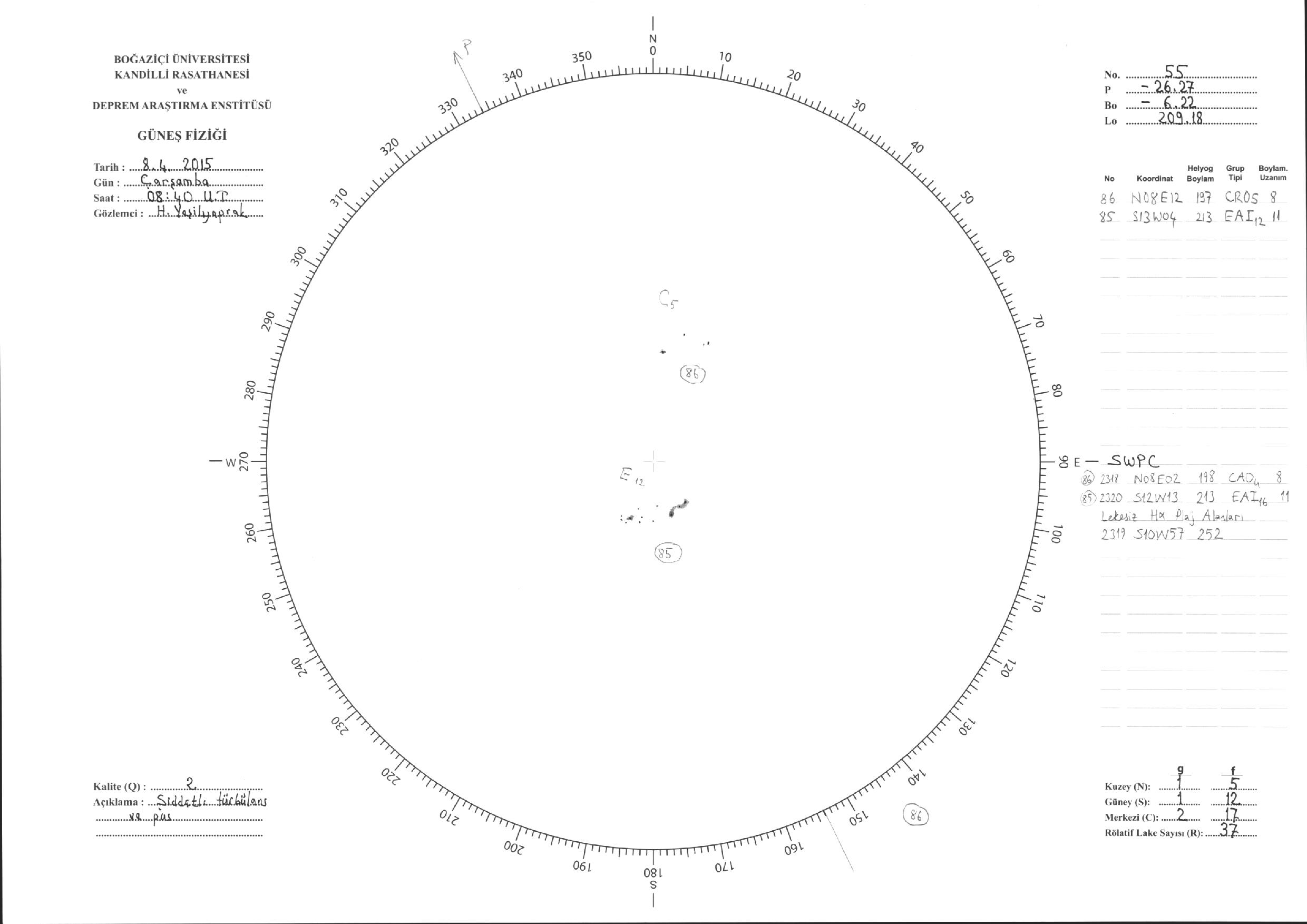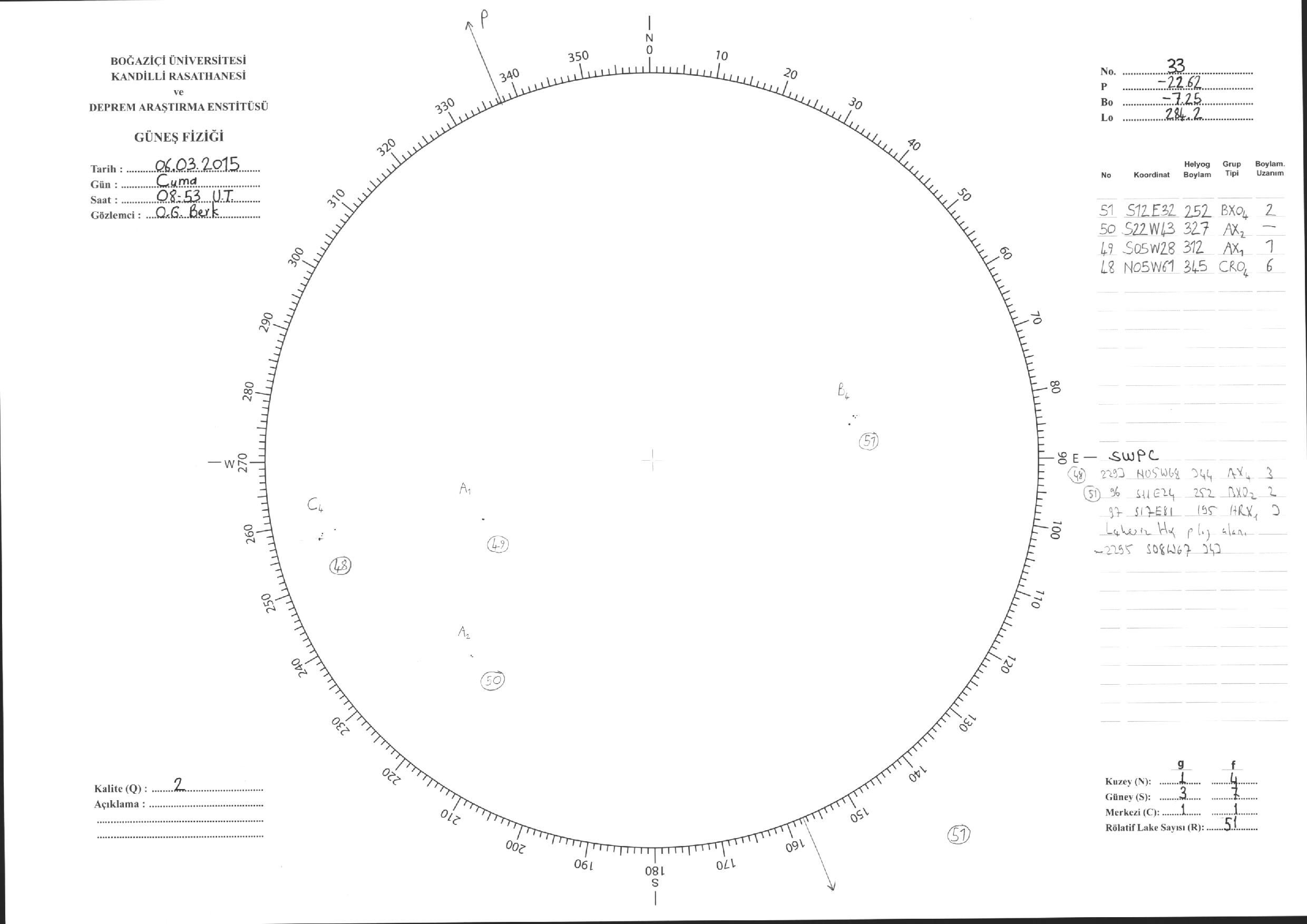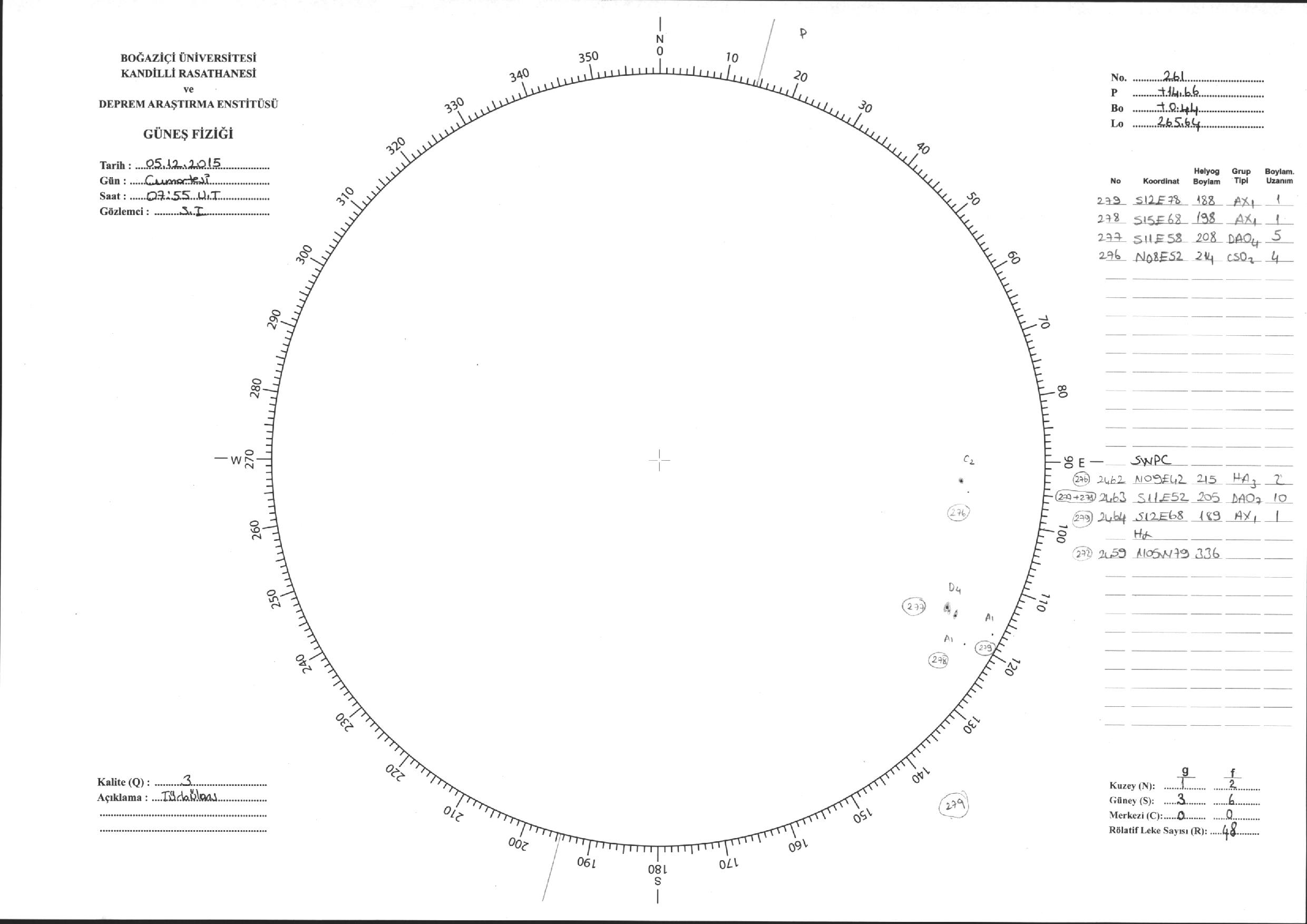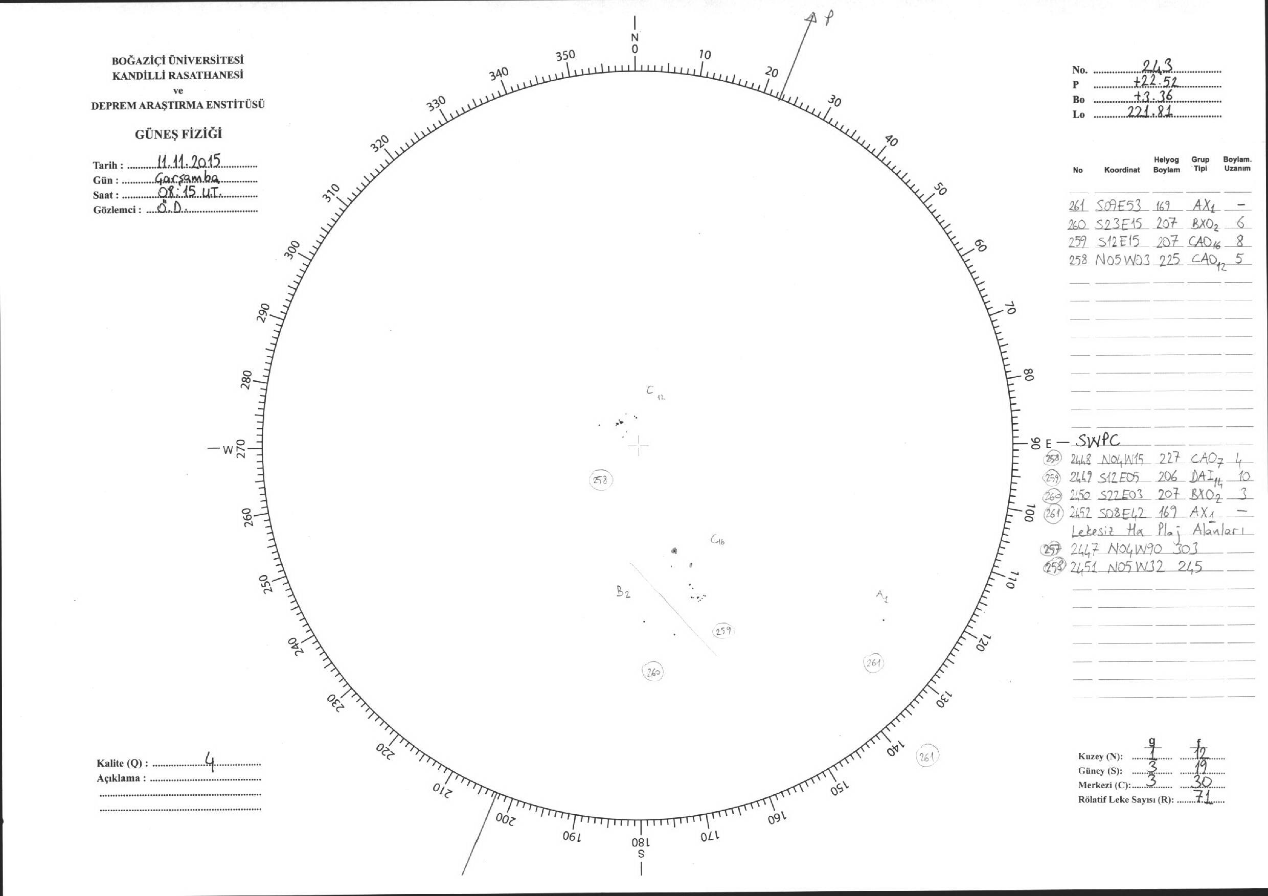 Güneş Lekesi Çizimleri / Kandilli Sunspot Drawings