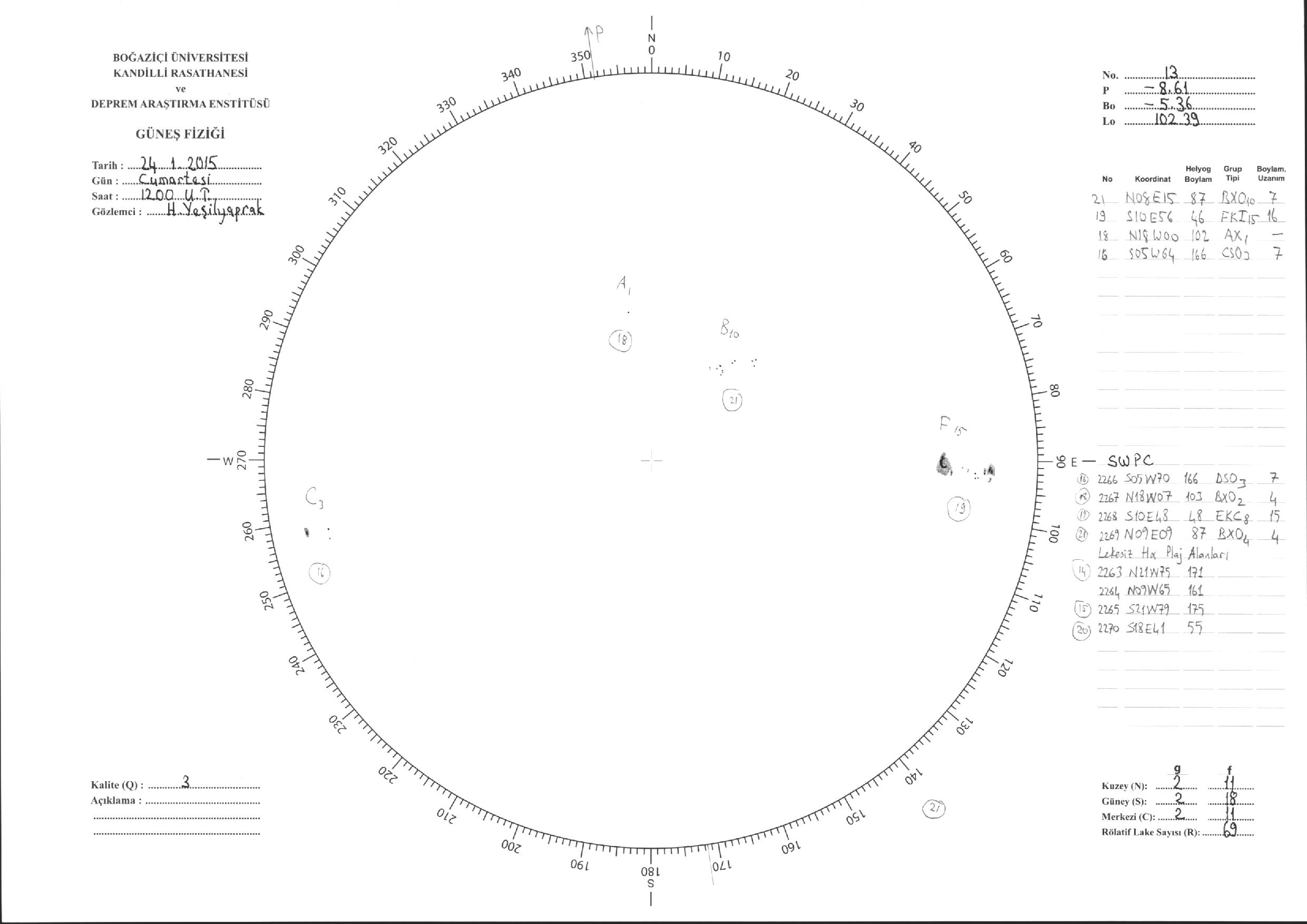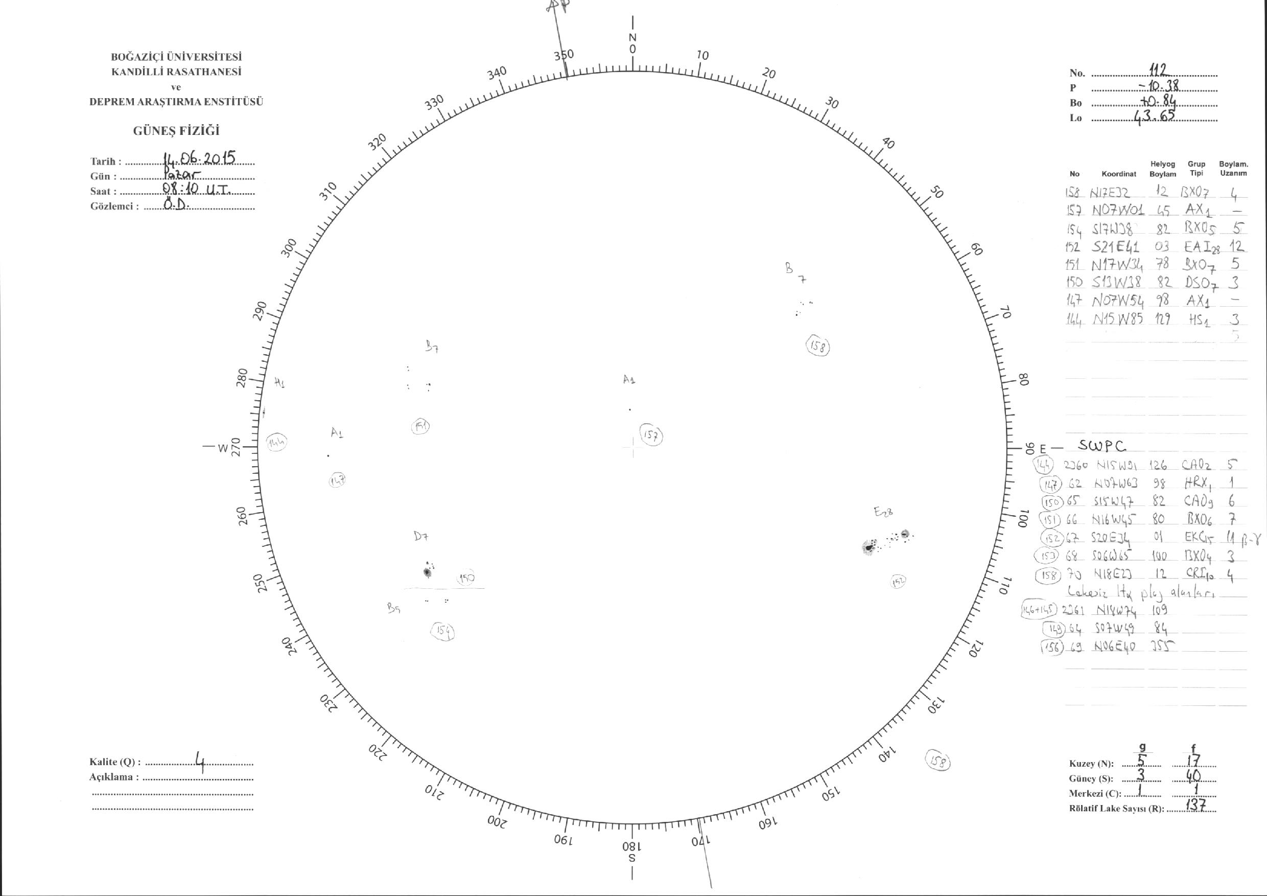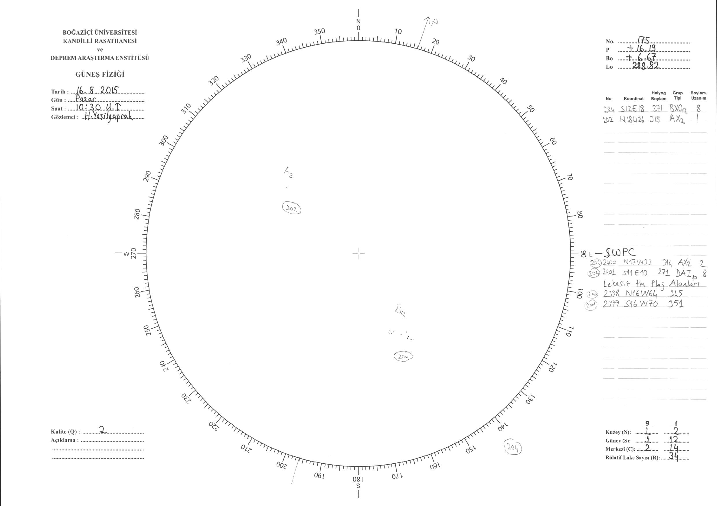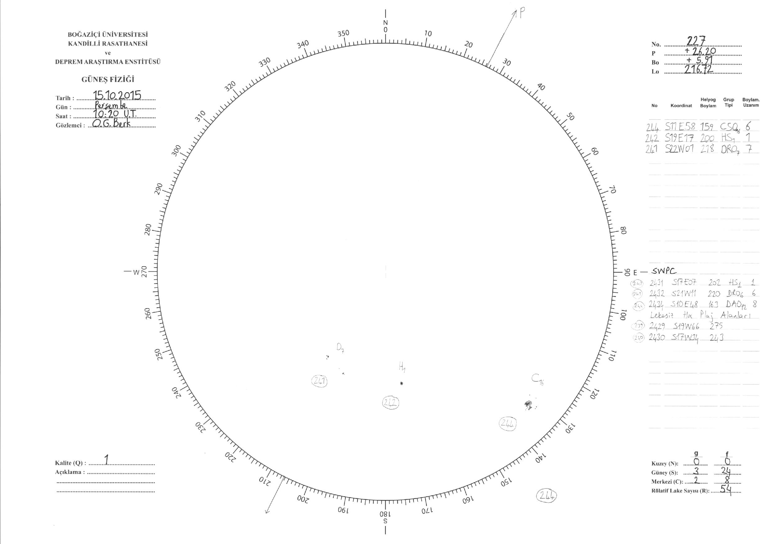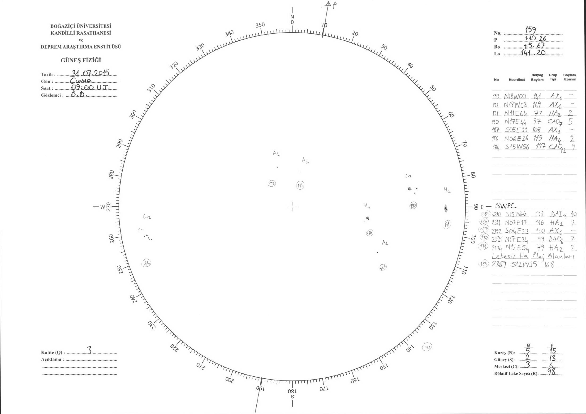 Güneş Lekesi Çizimleri / Kandilli Sunspot Drawings