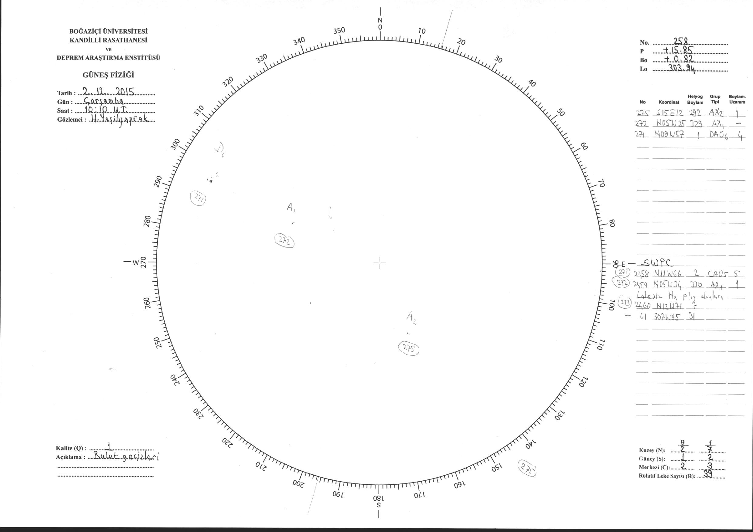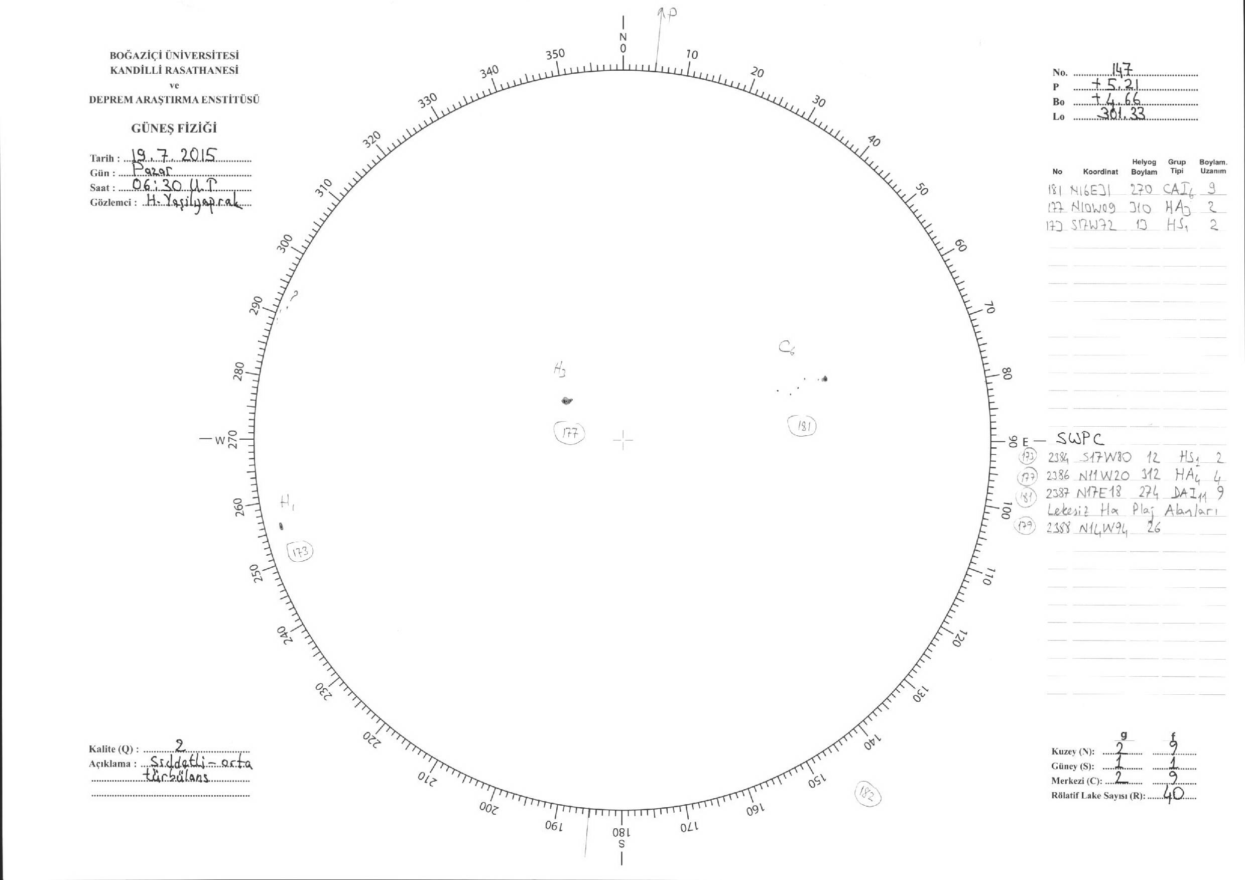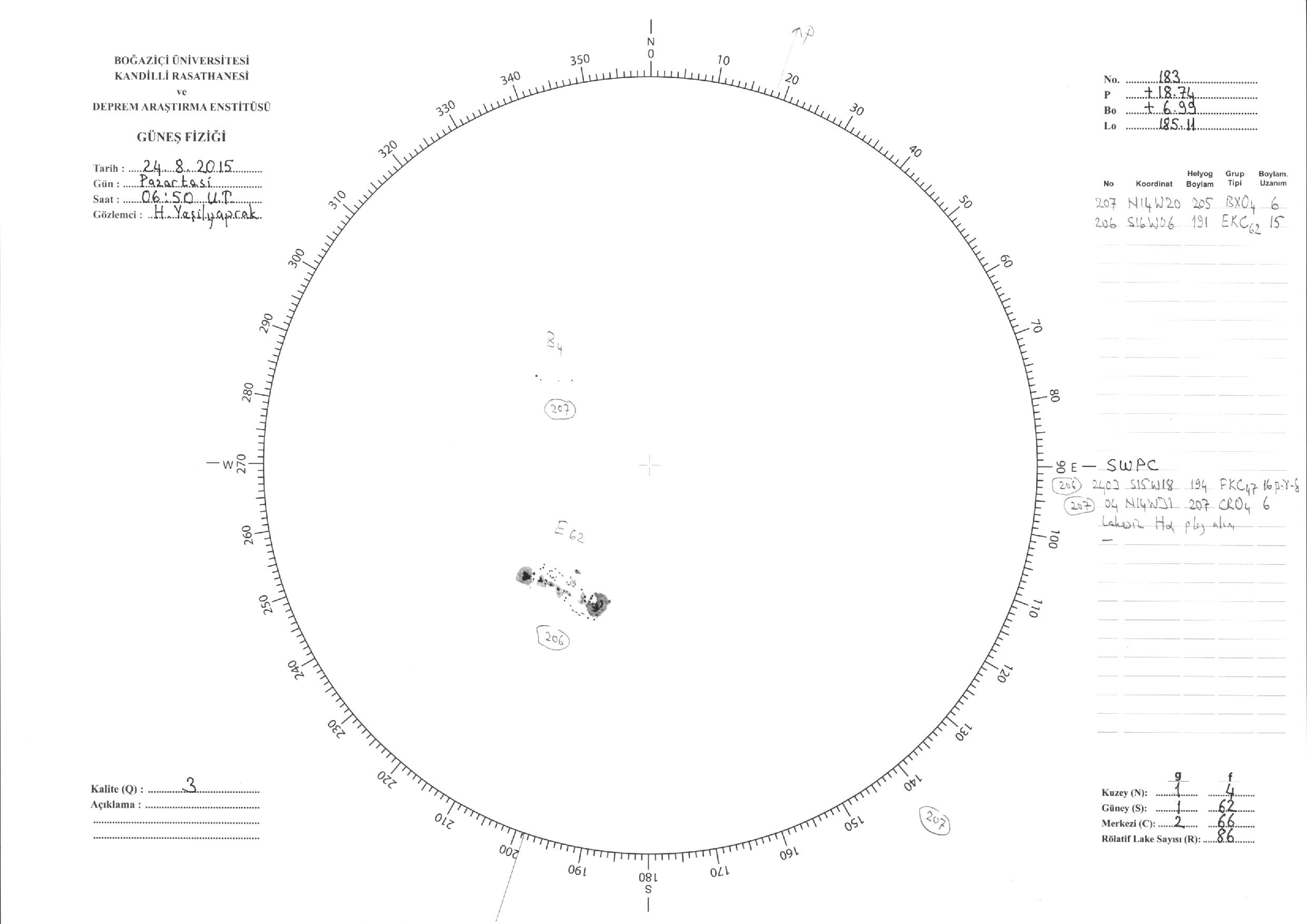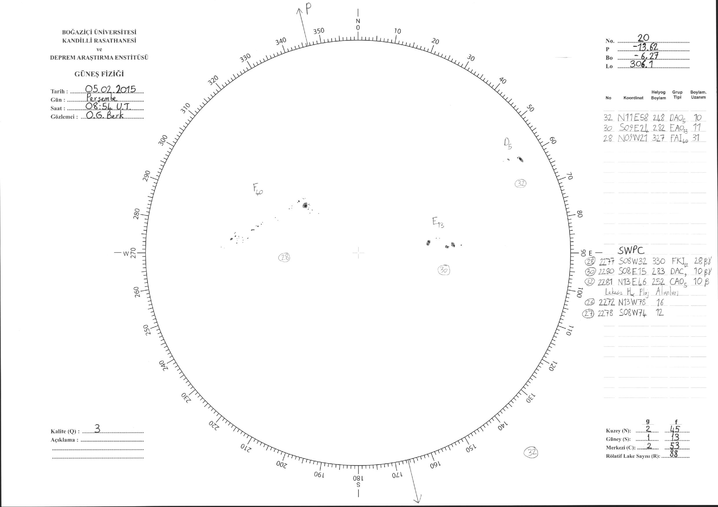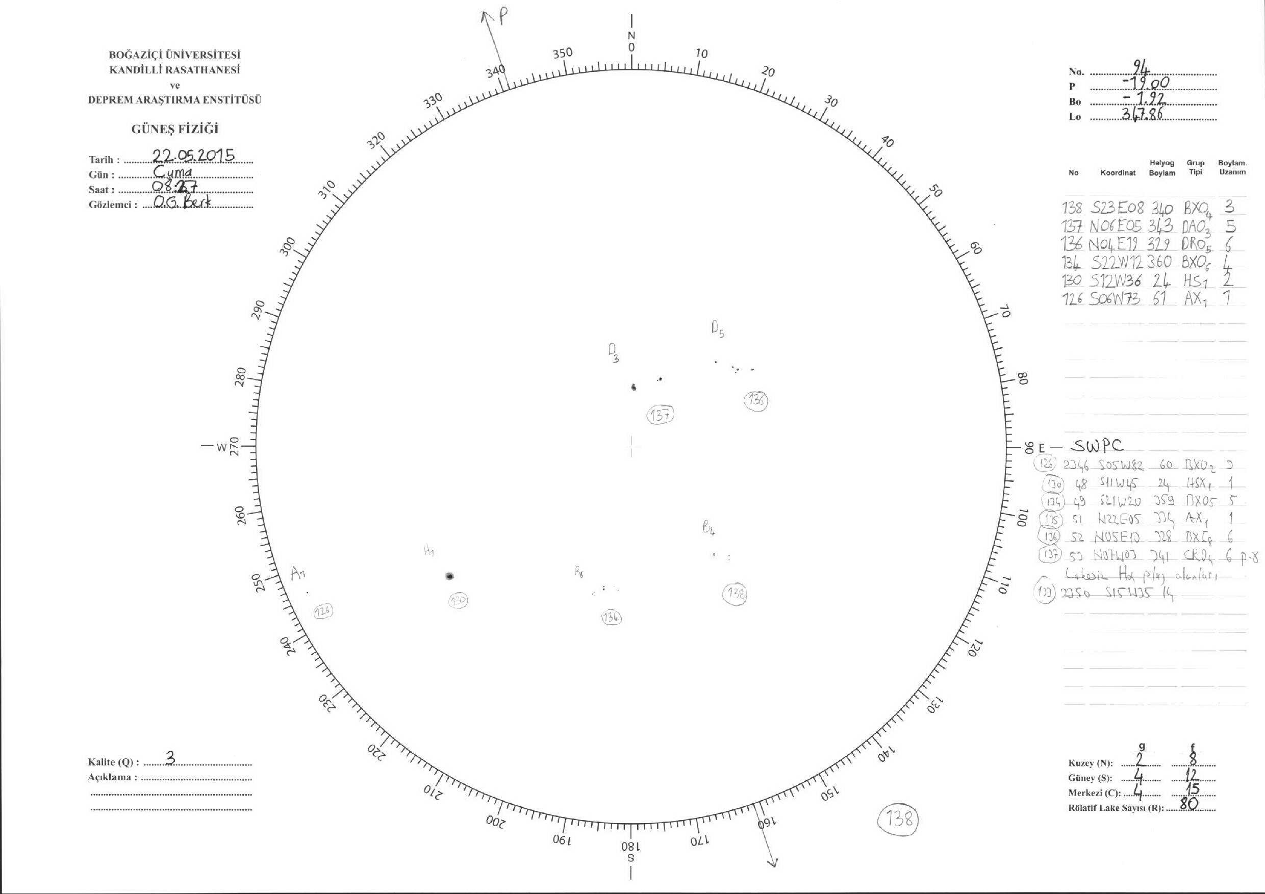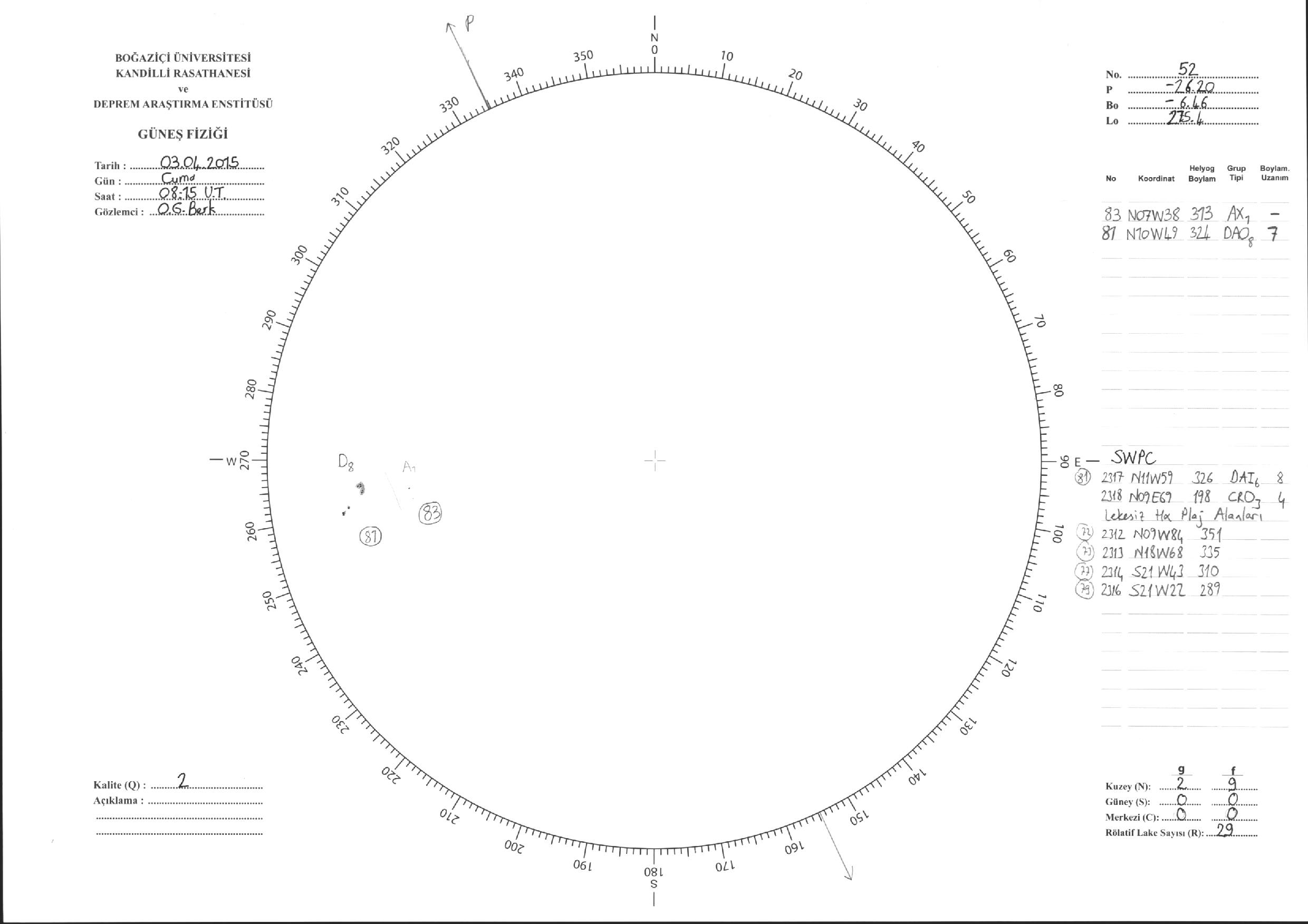 Güneş Lekesi Çizimleri / Kandilli Sunspot Drawings