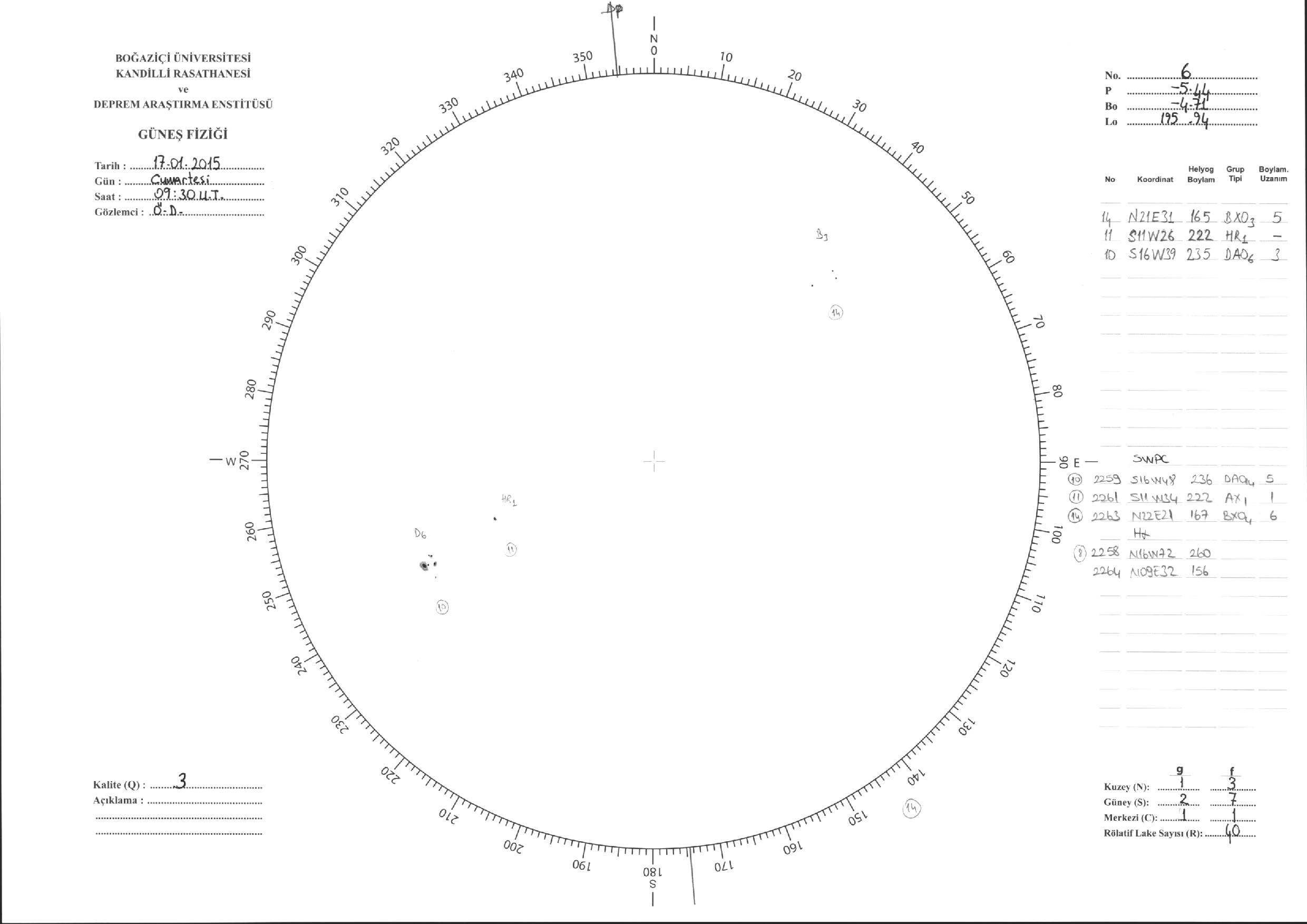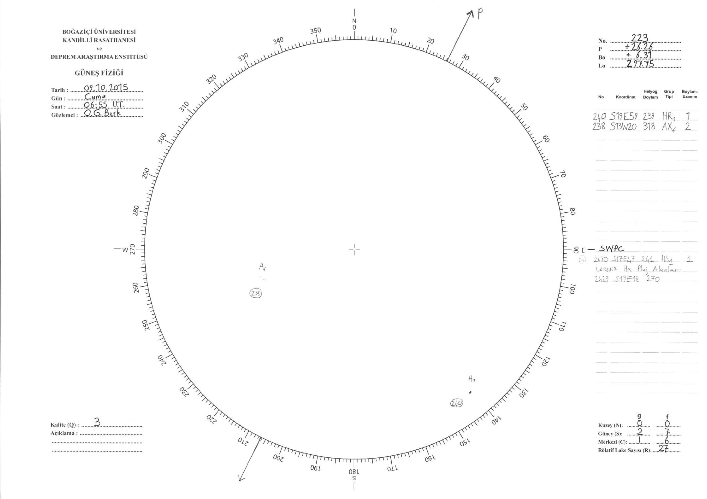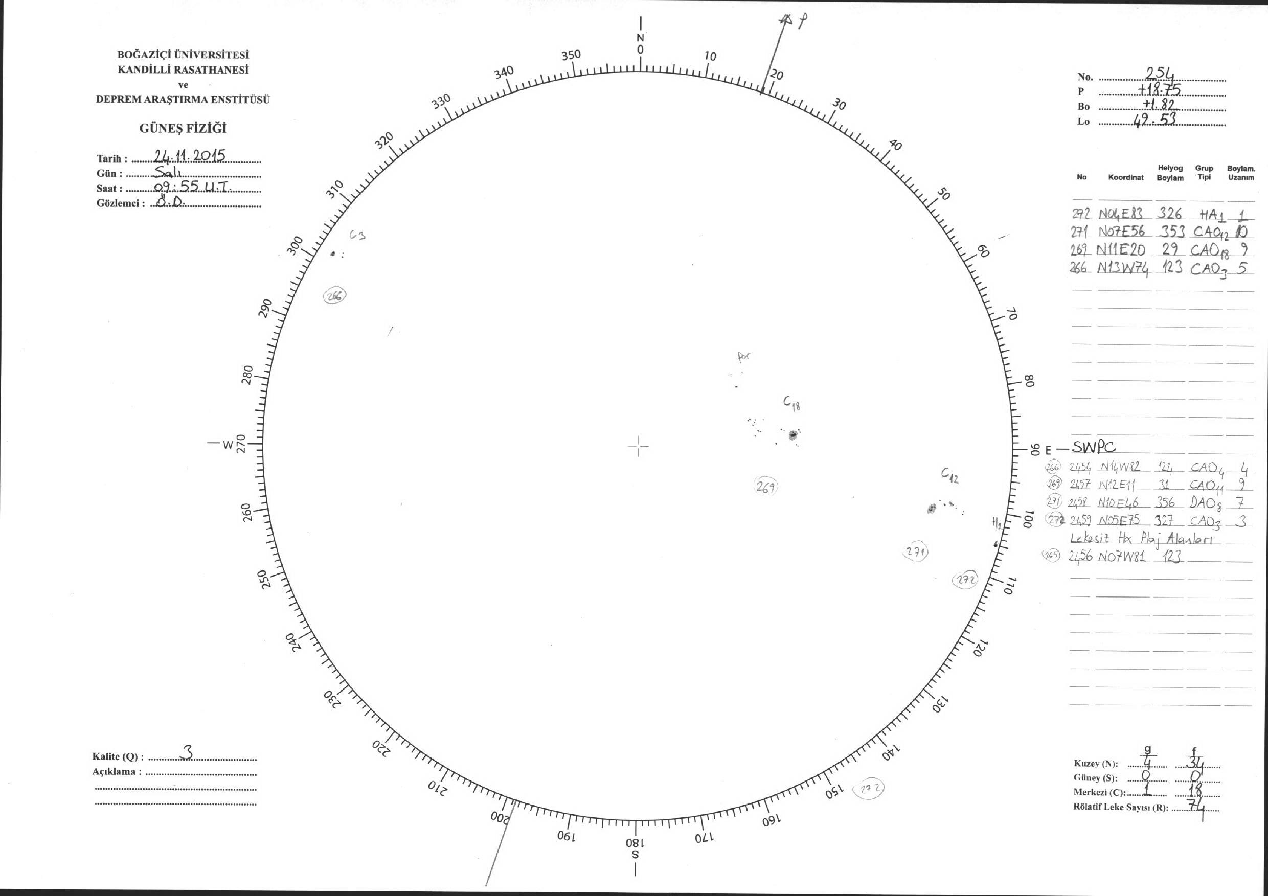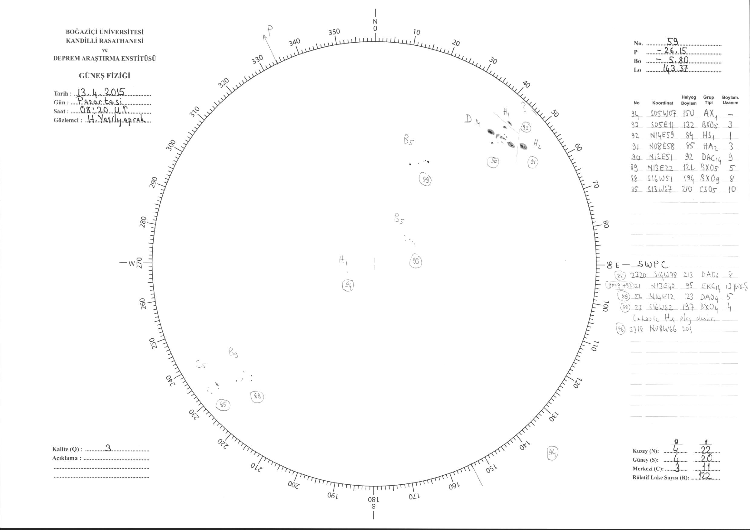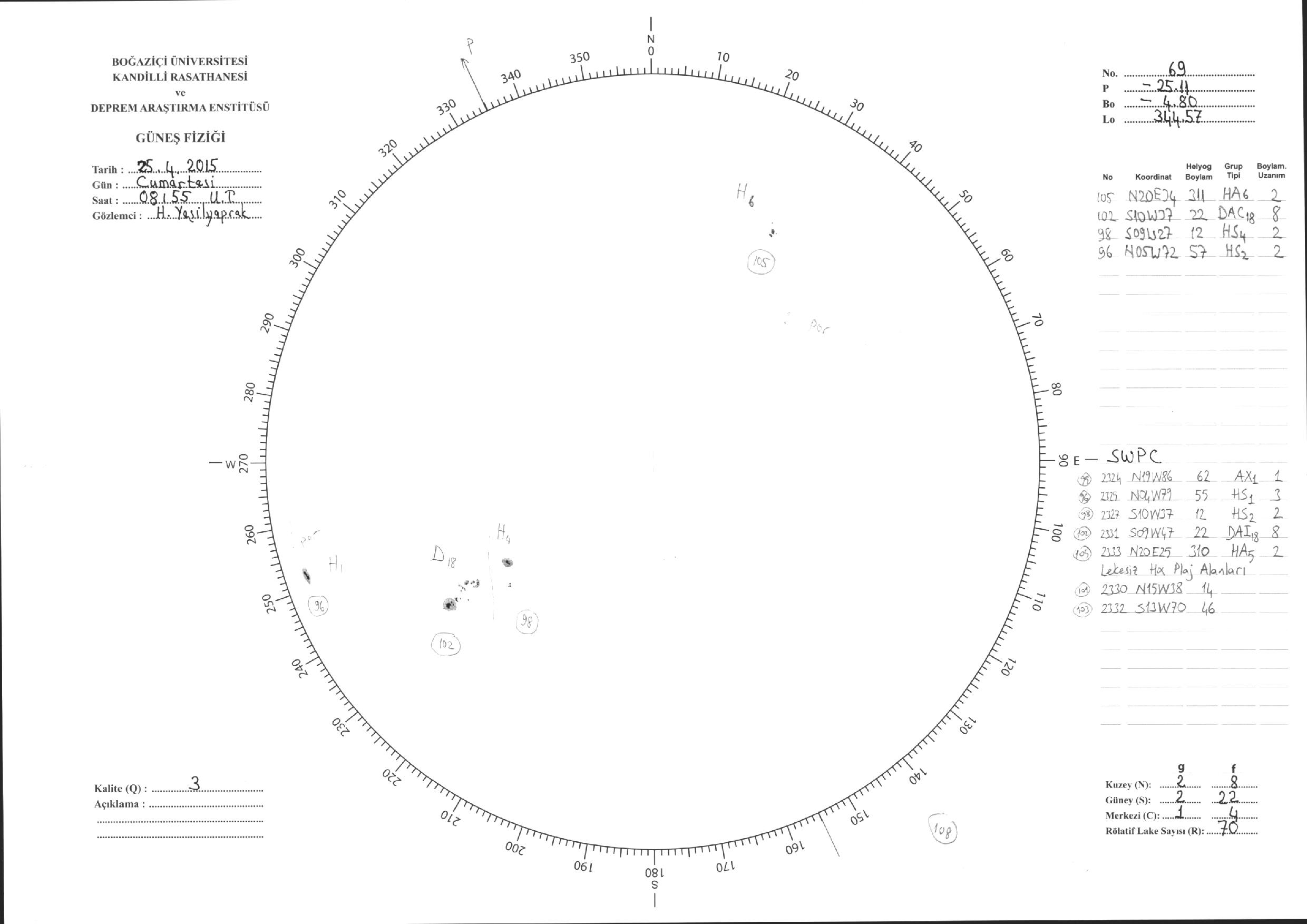 Güneş Lekesi Çizimleri / Kandilli Sunspot Drawings