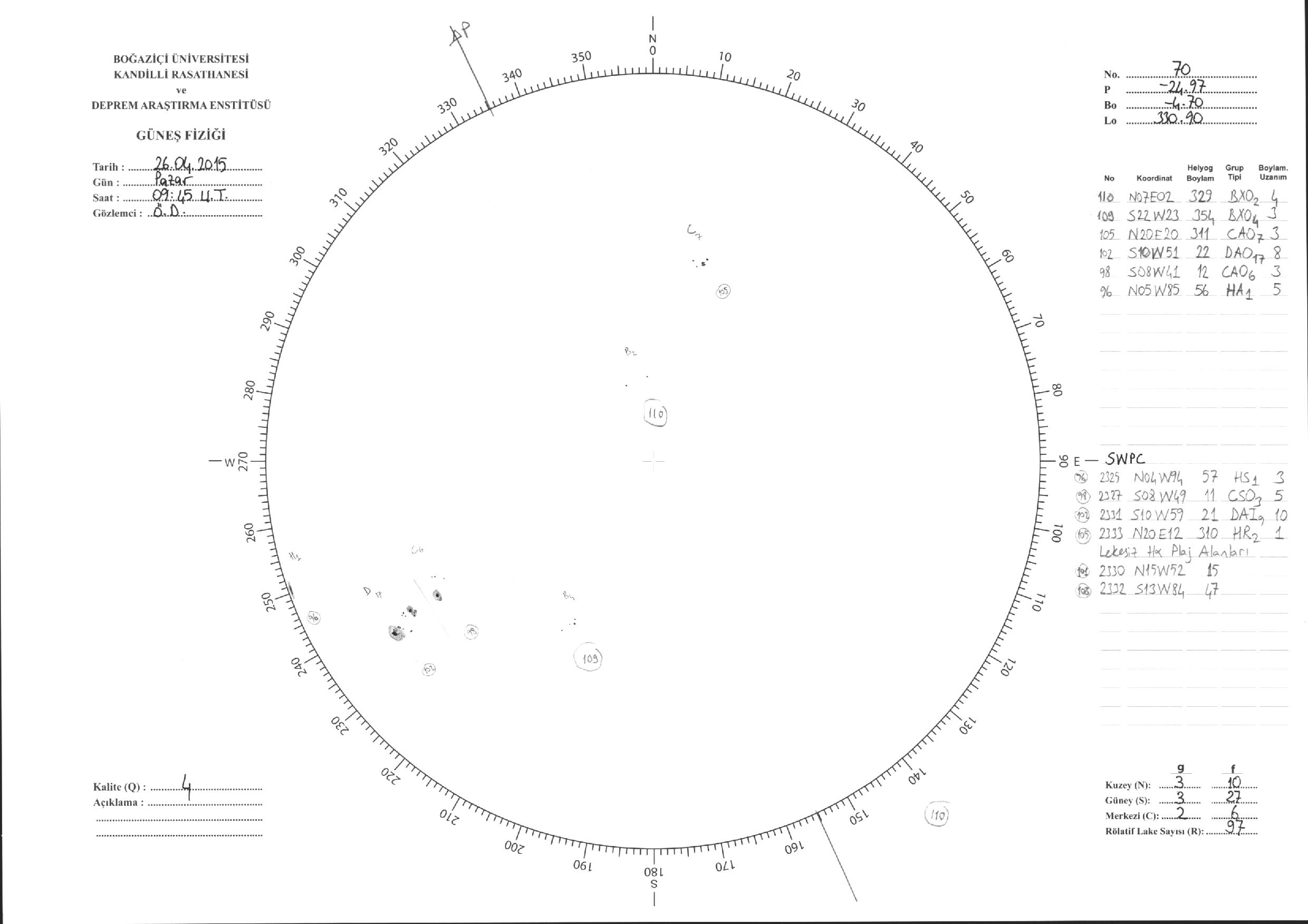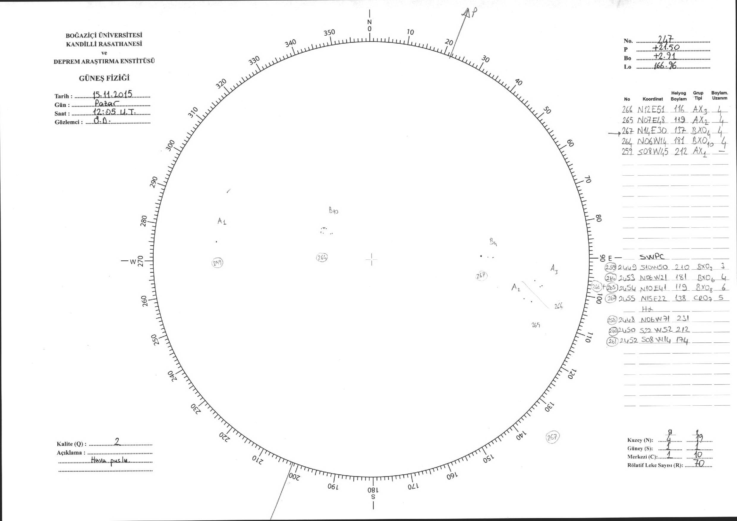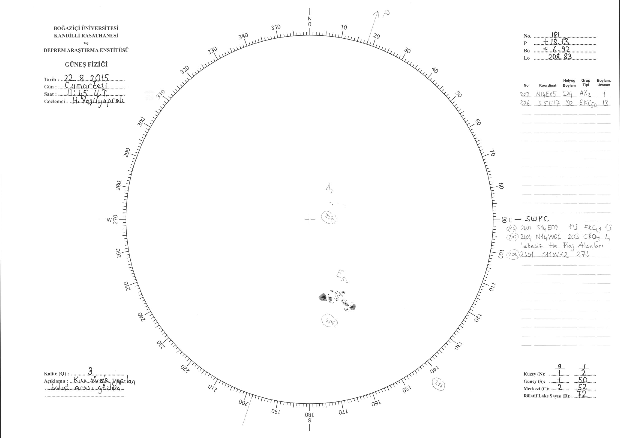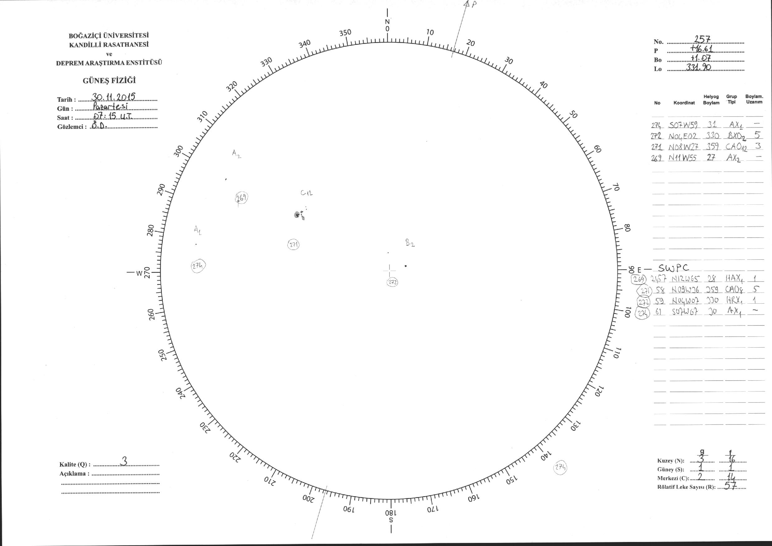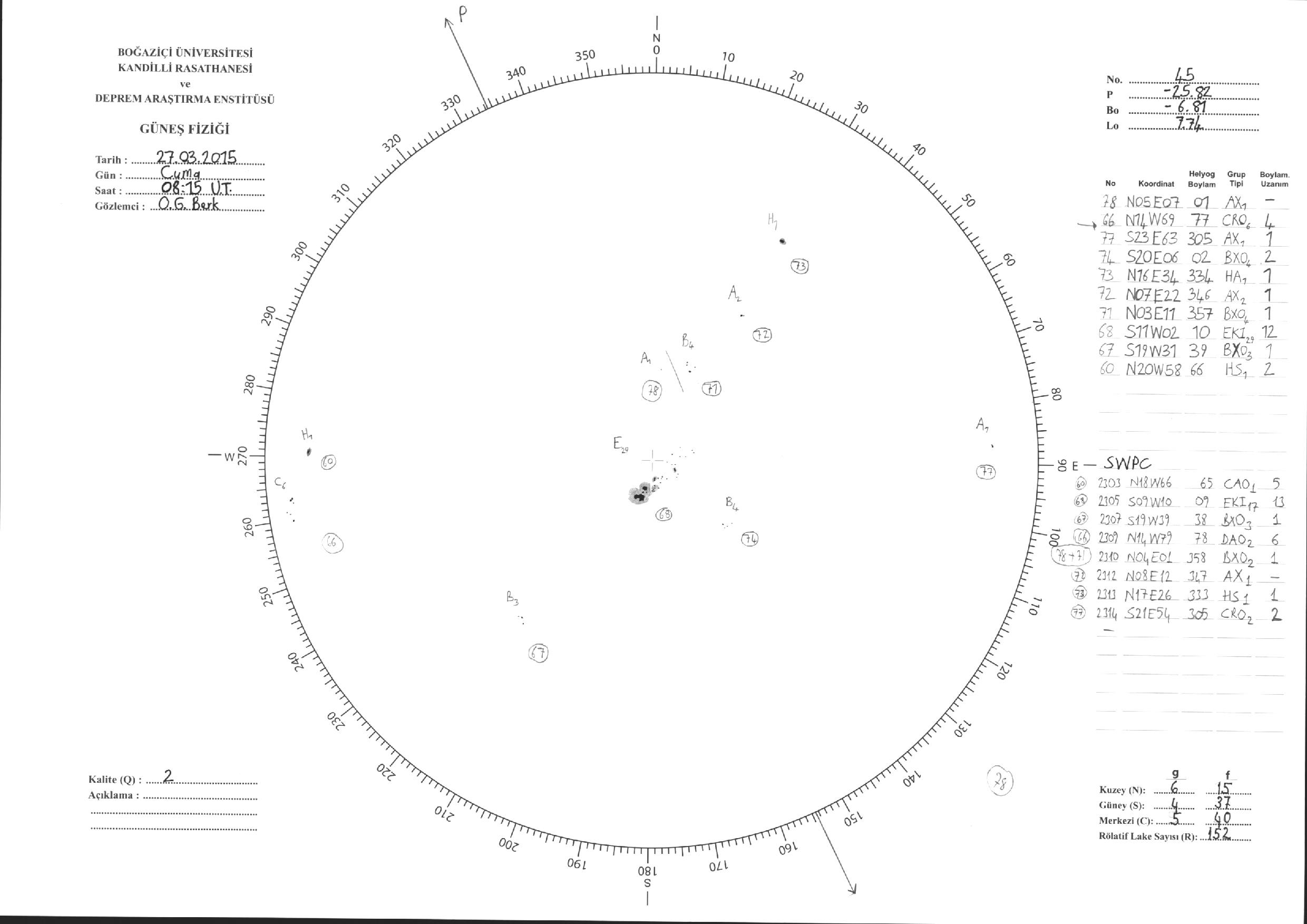 Güneş Lekesi Çizimleri / Kandilli Sunspot Drawings