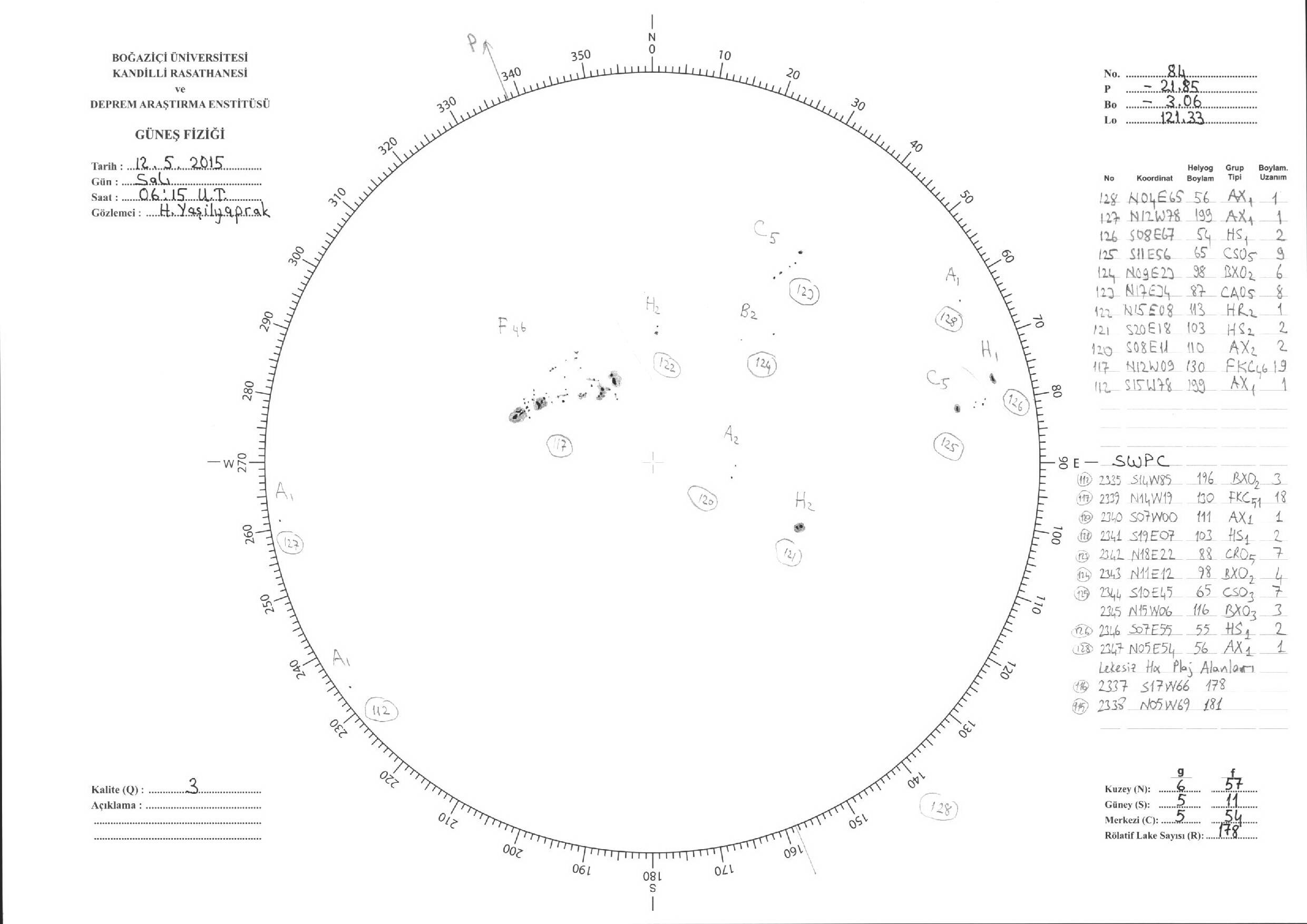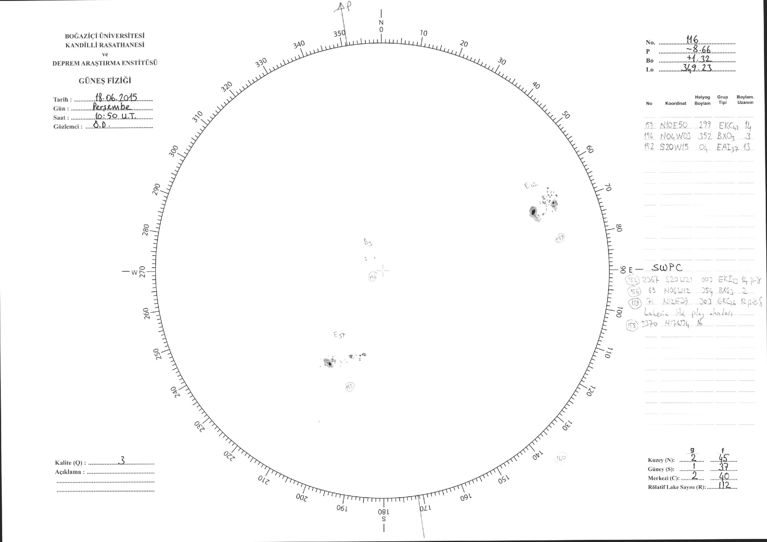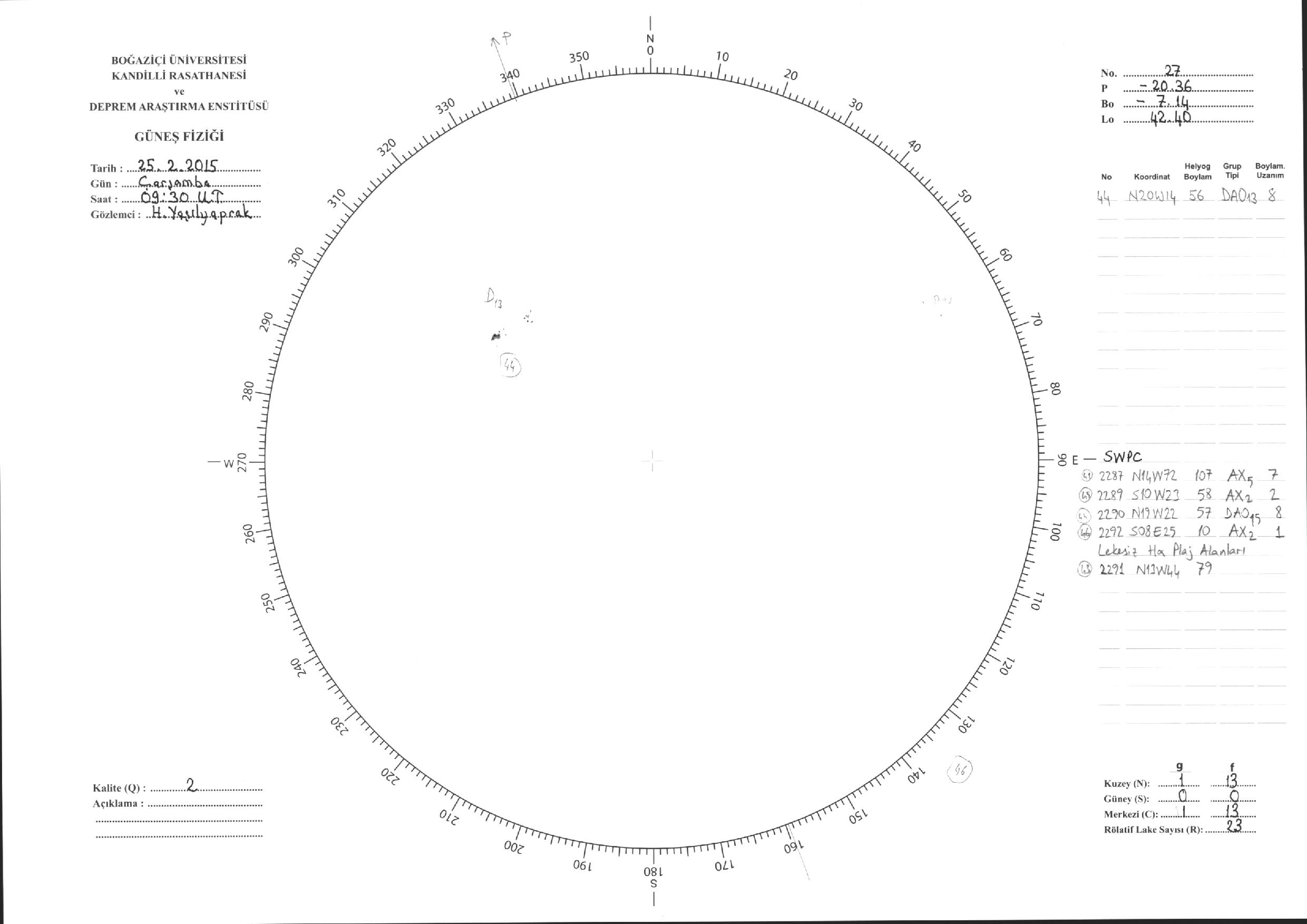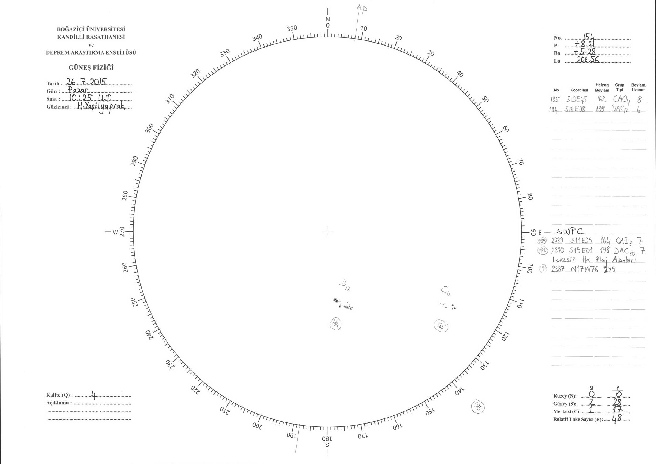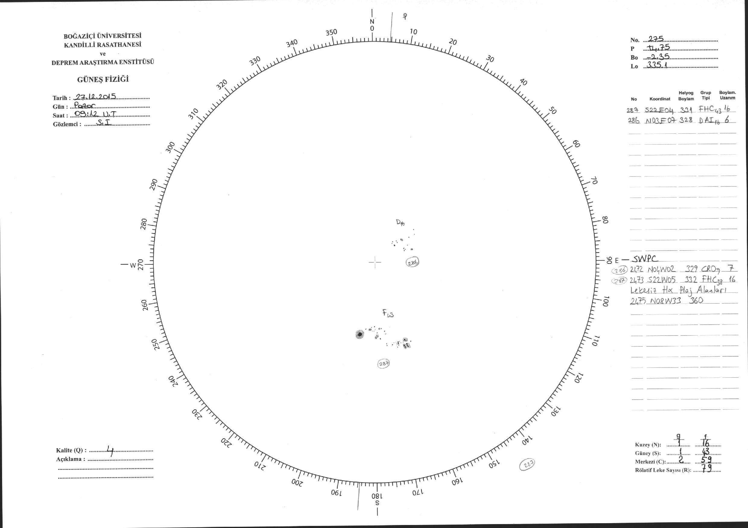 Güneş Lekesi Çizimleri / Kandilli Sunspot Drawings