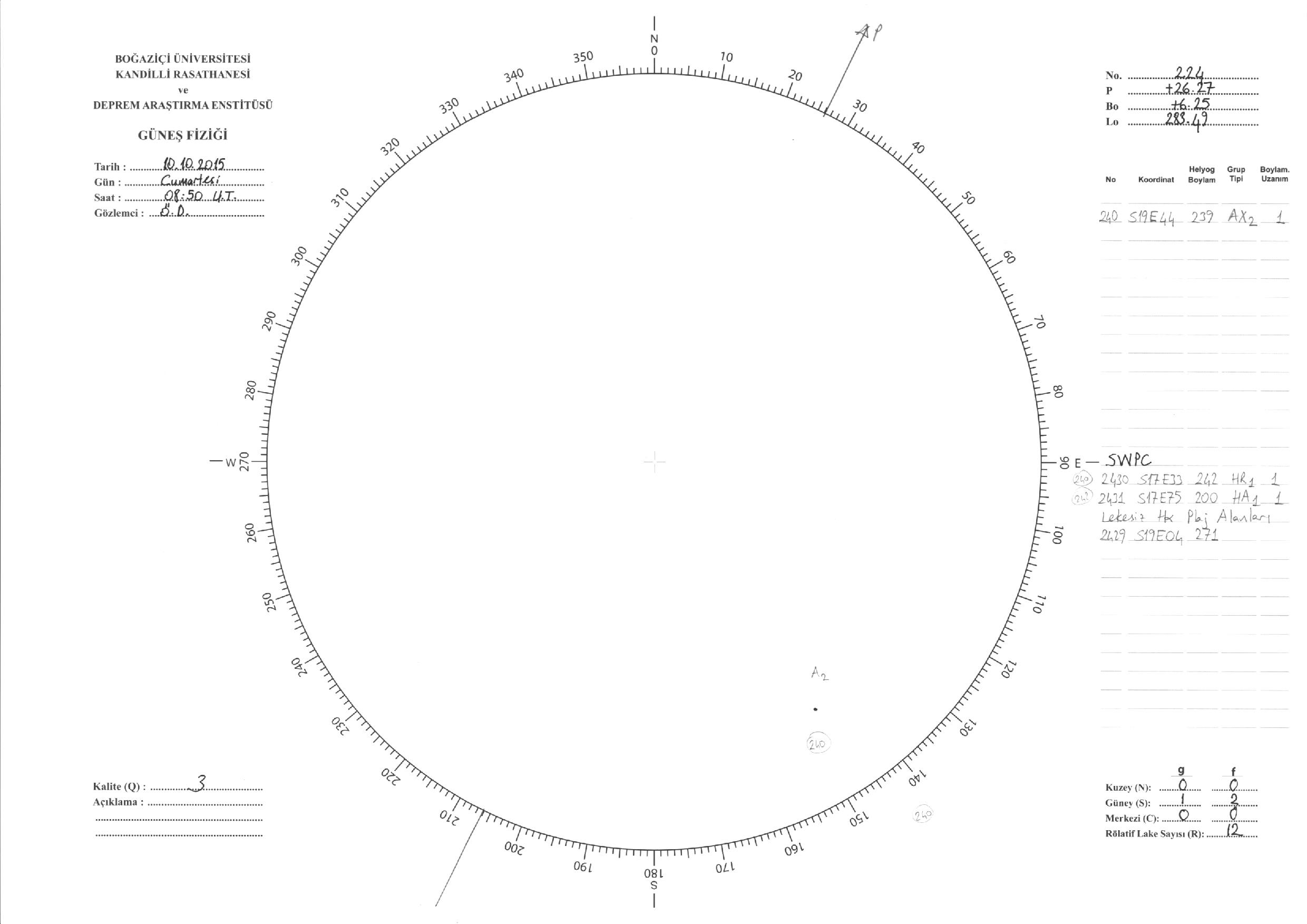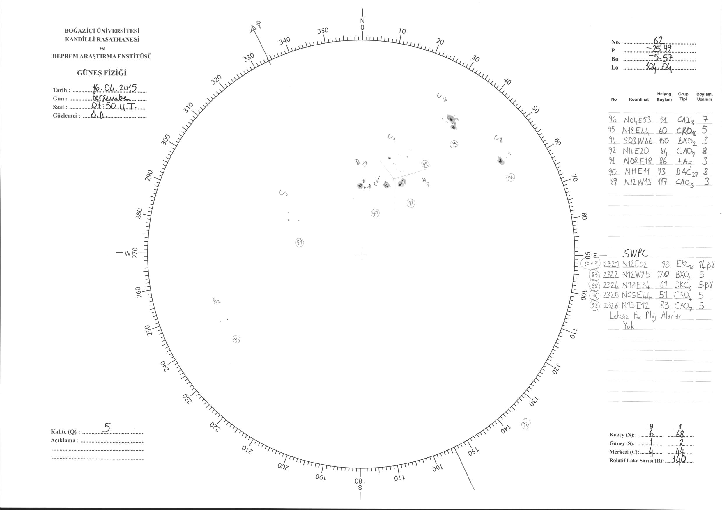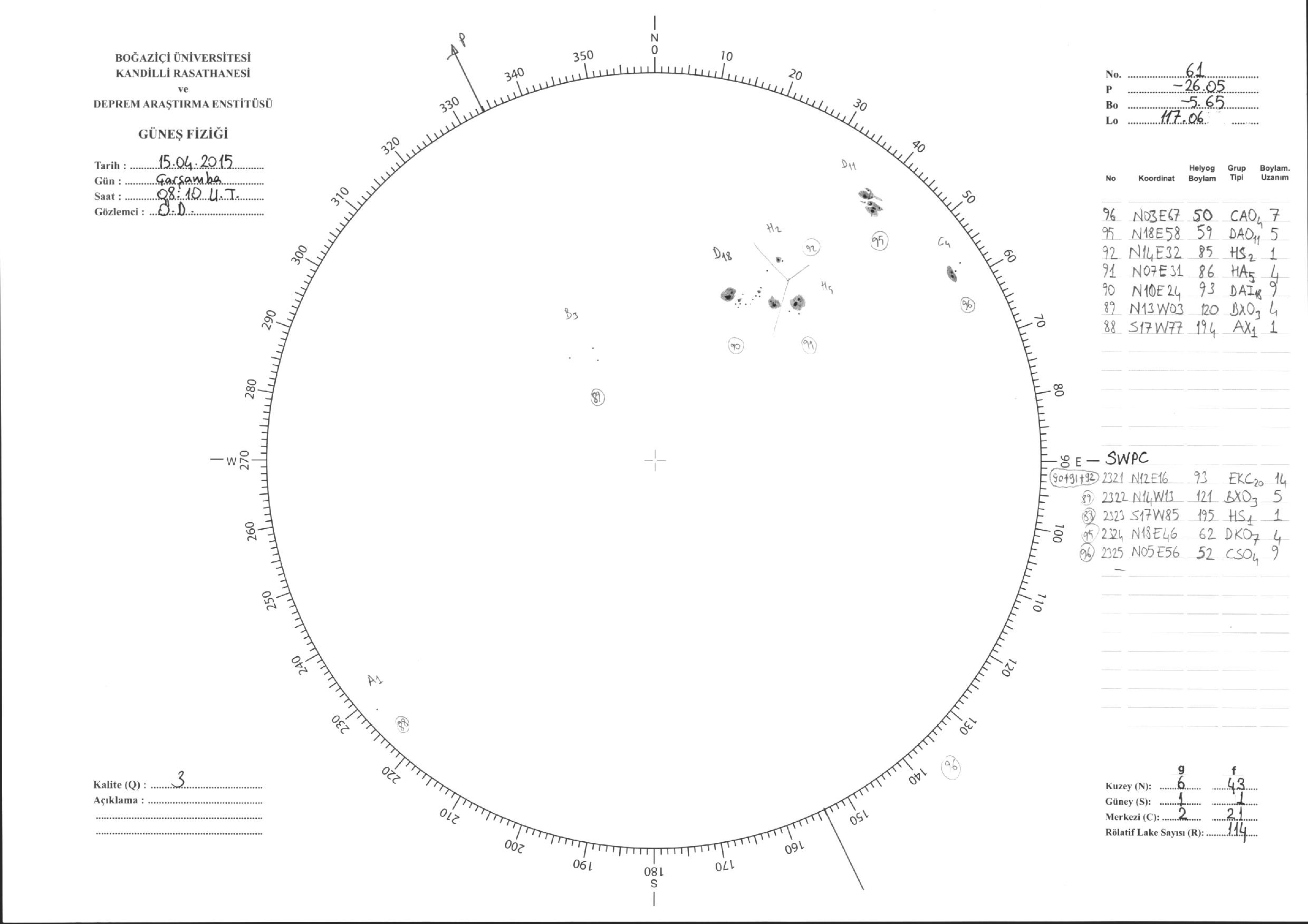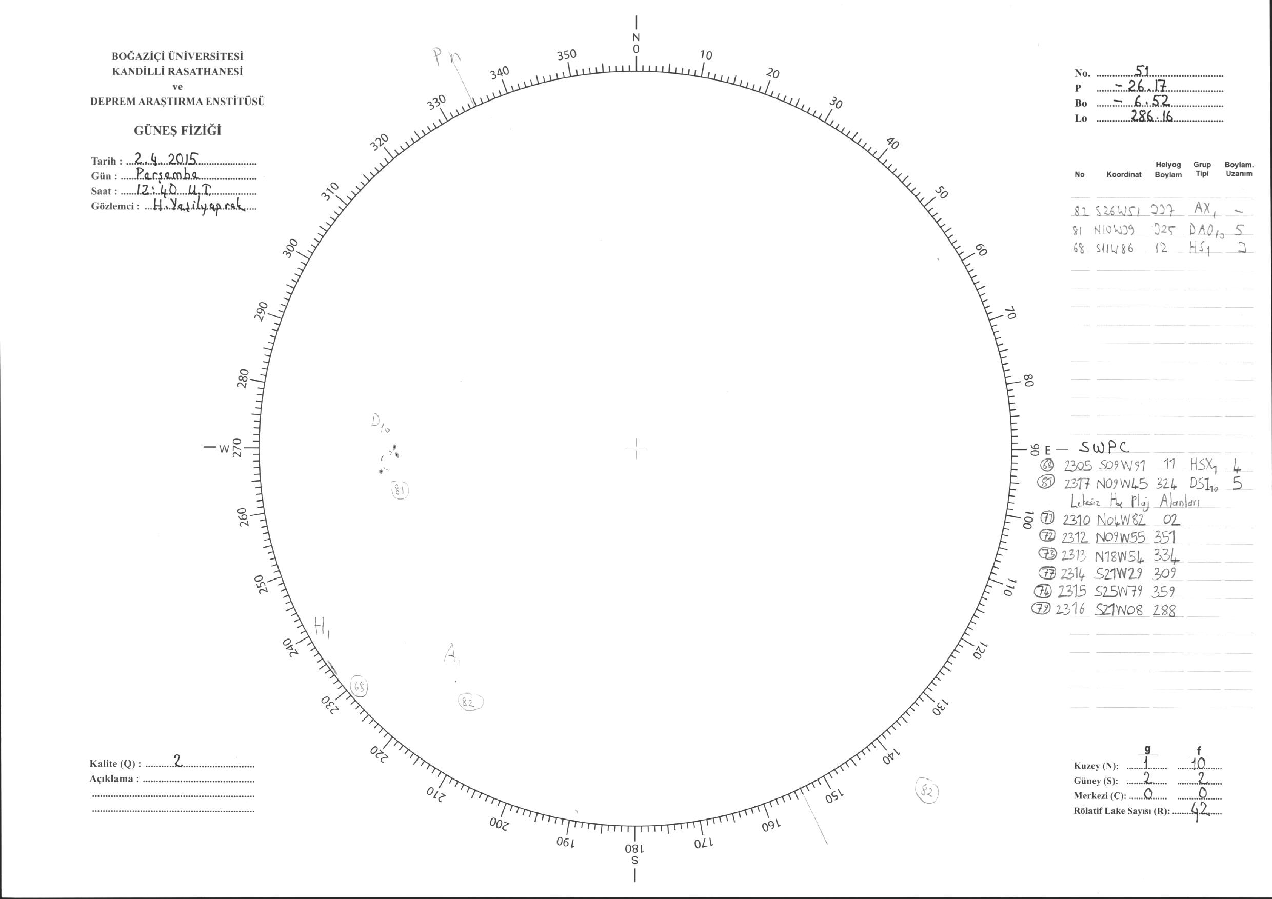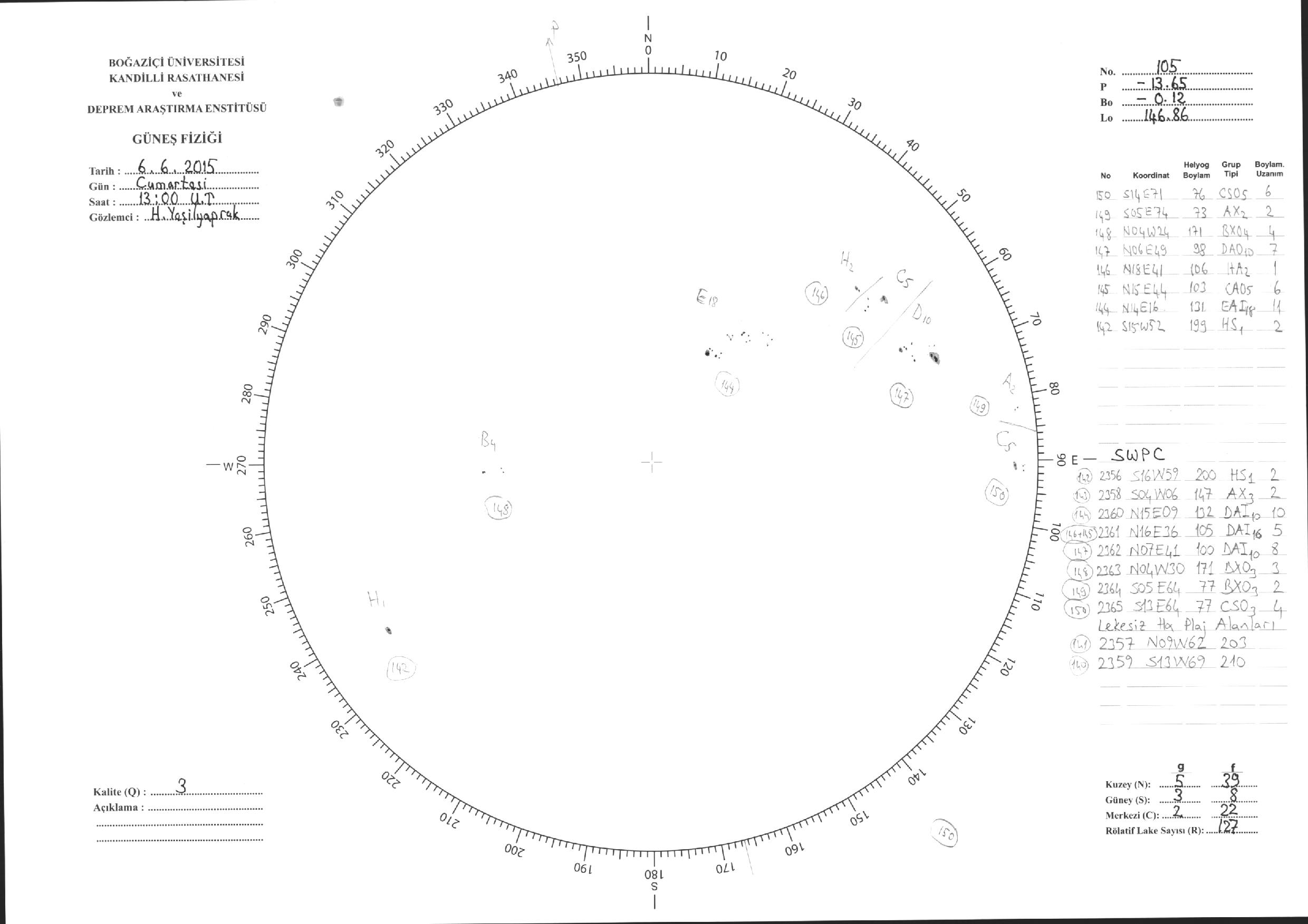Güneş Lekesi Çizimleri / Kandilli Sunspot Drawings