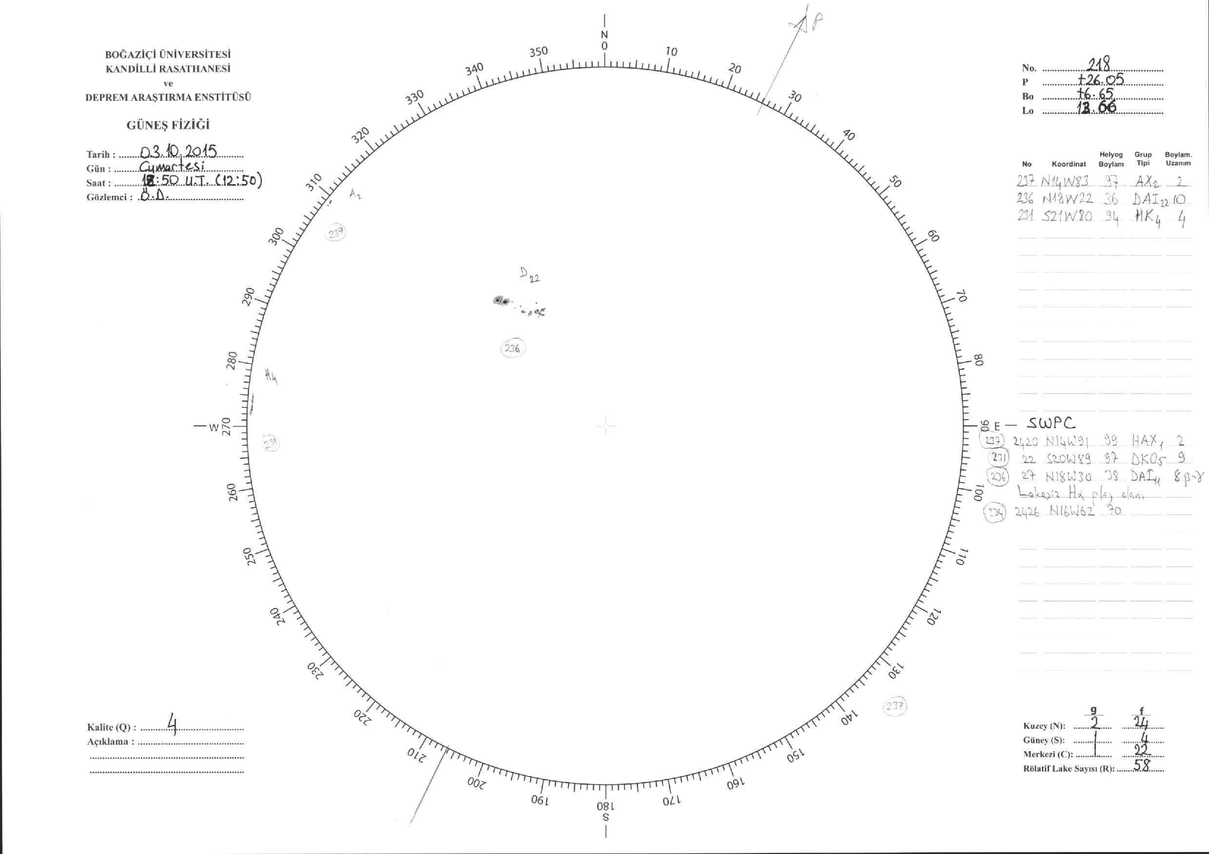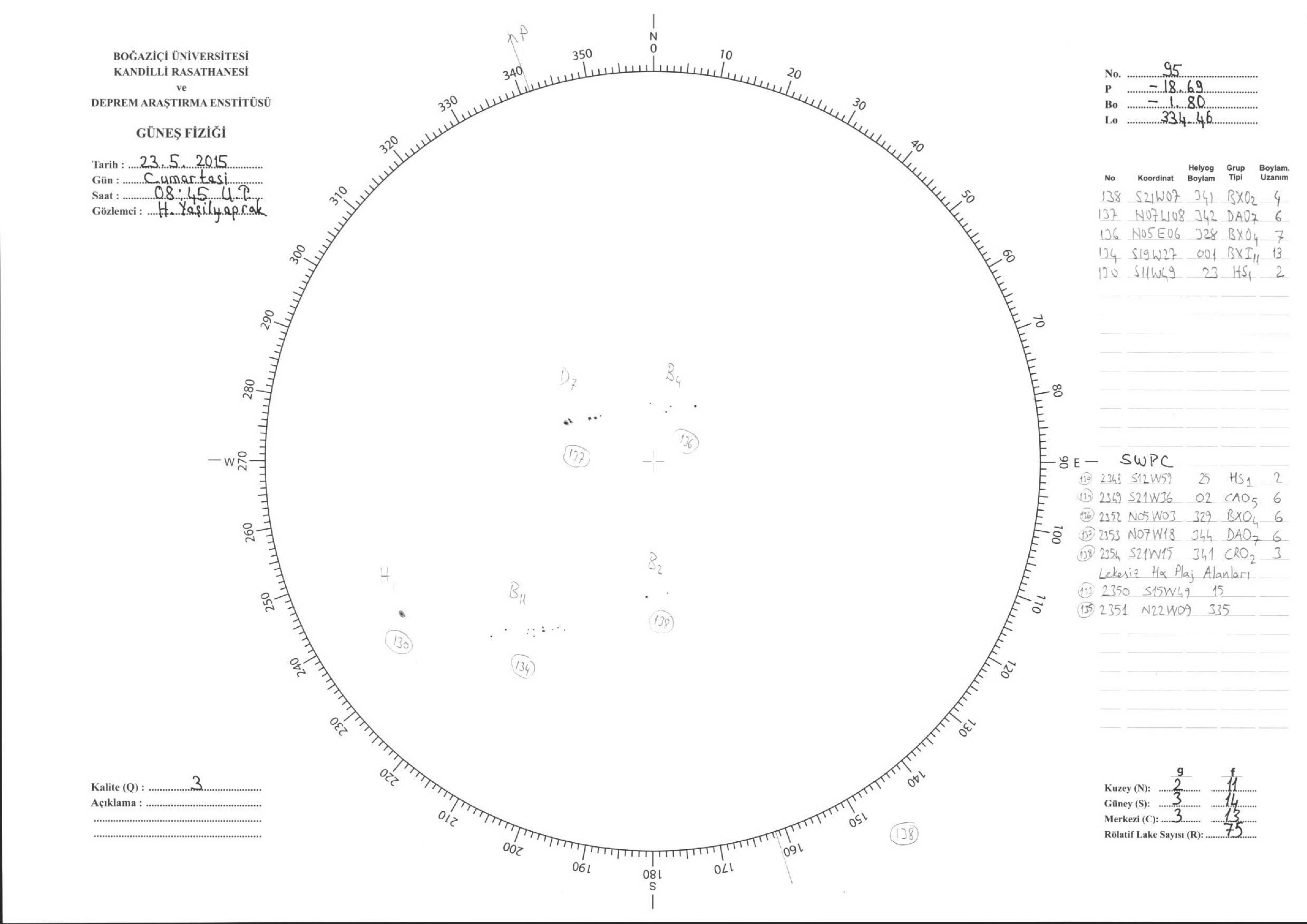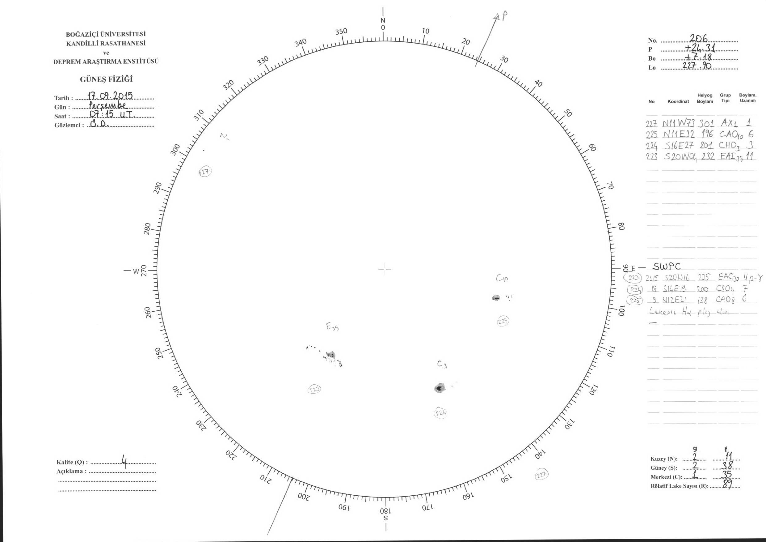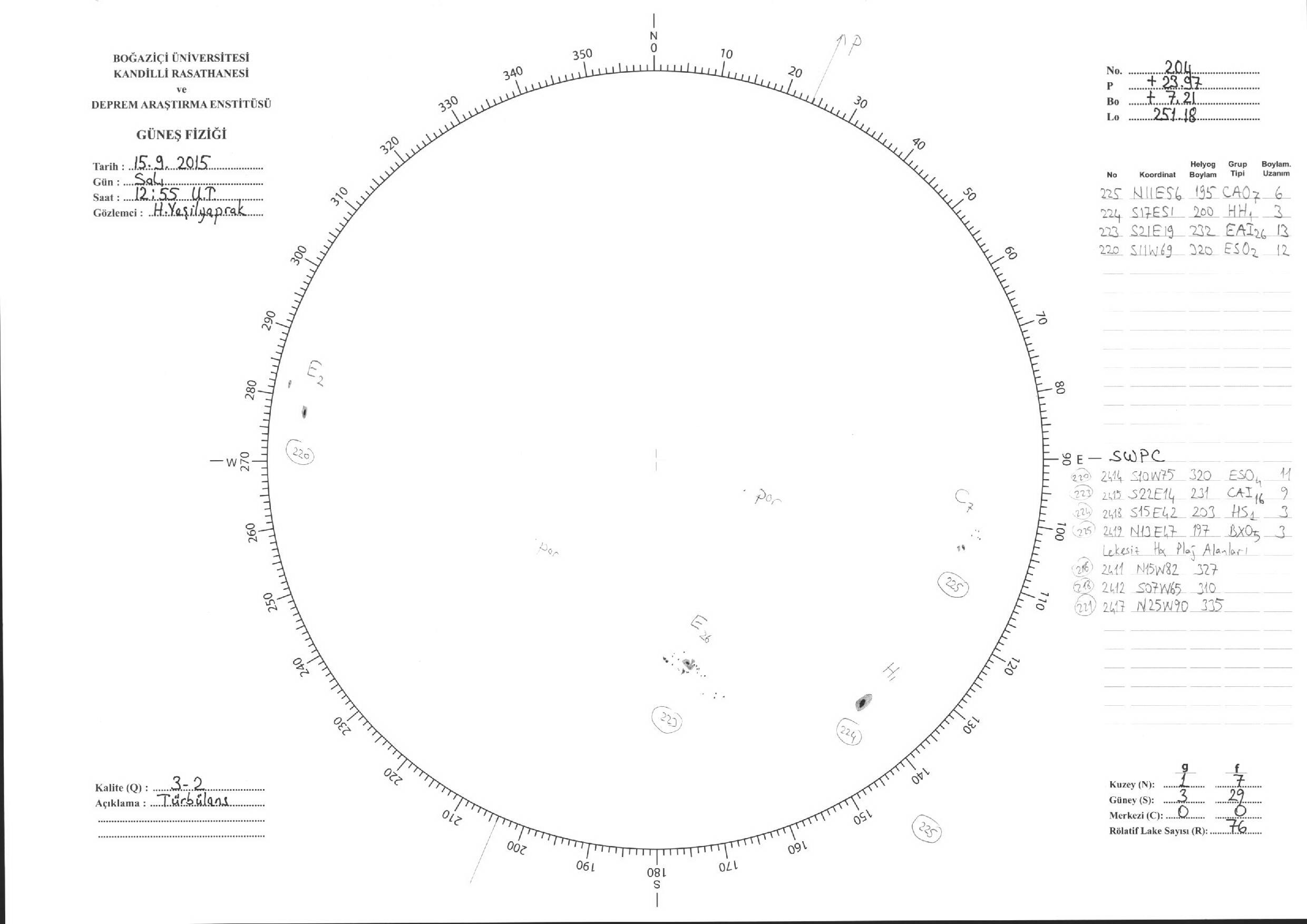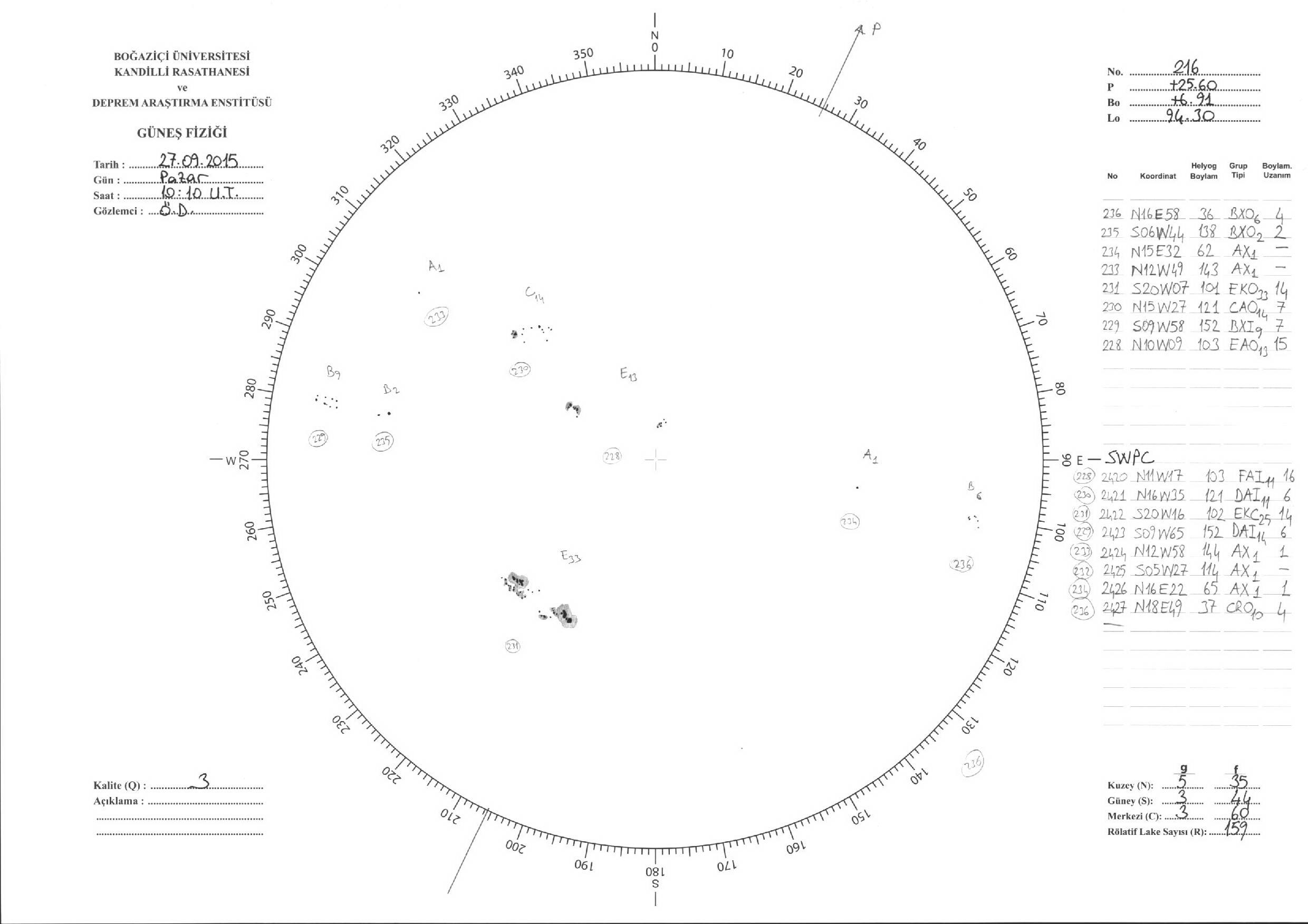 Güneş Lekesi Çizimleri / Kandilli Sunspot Drawings