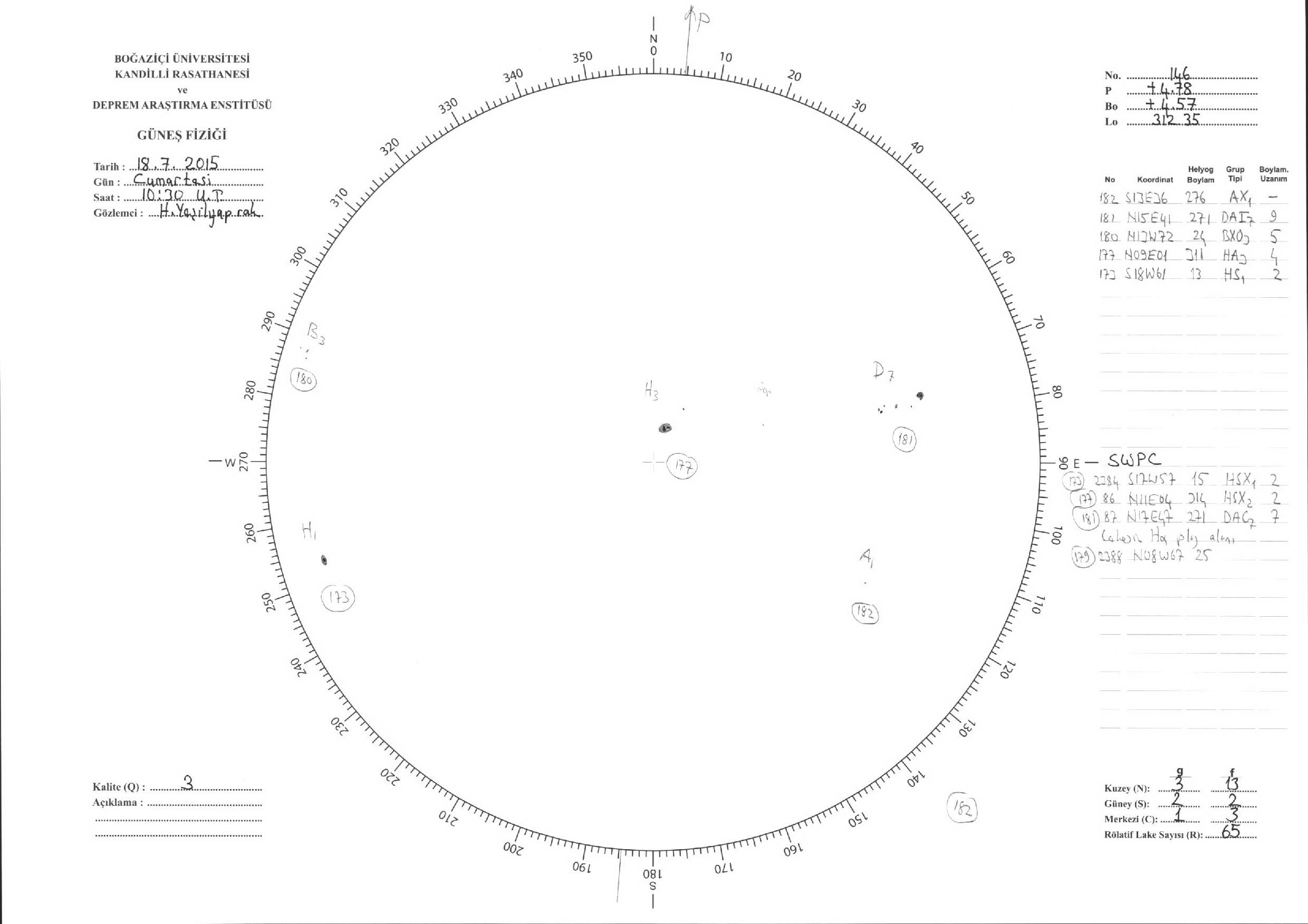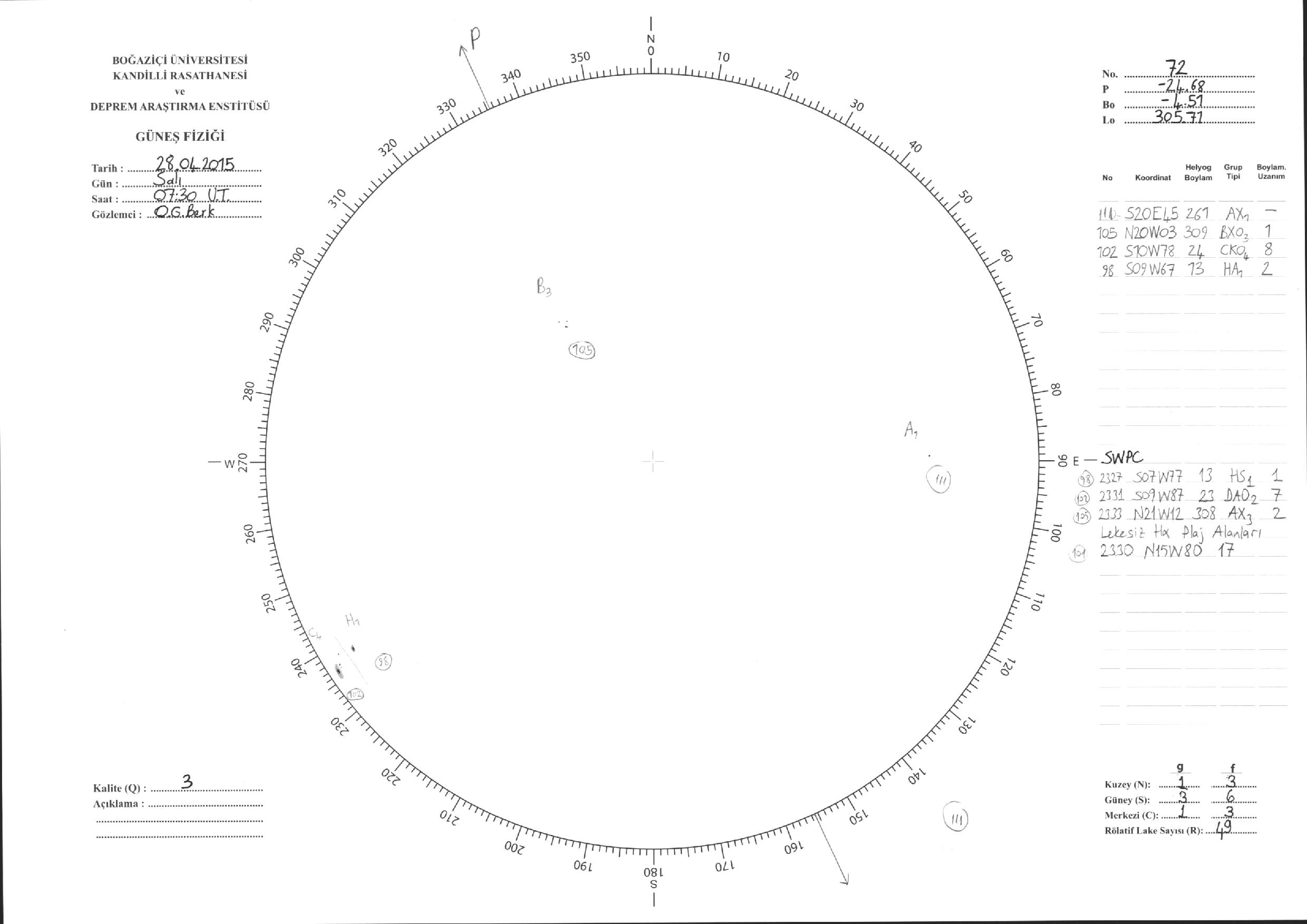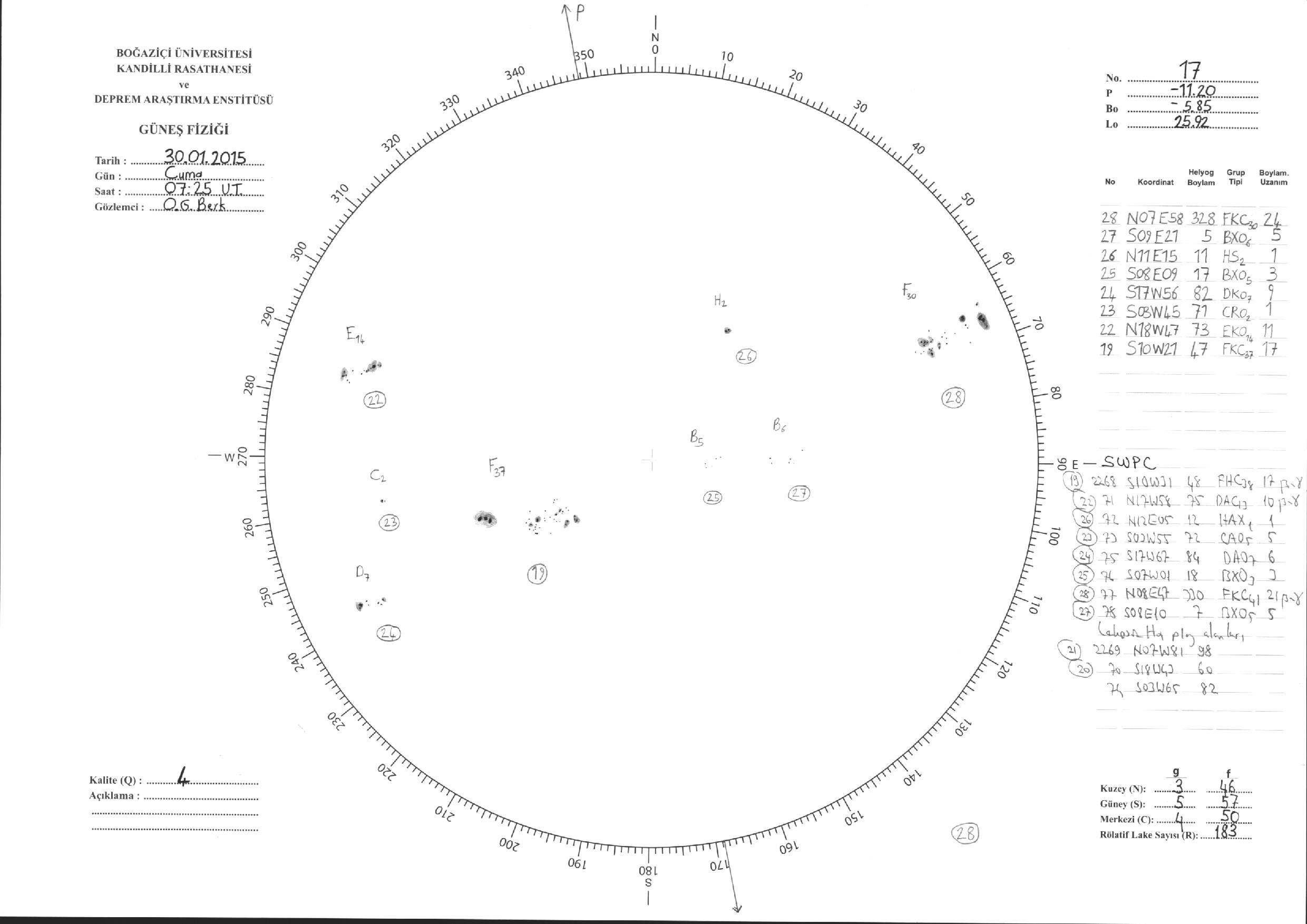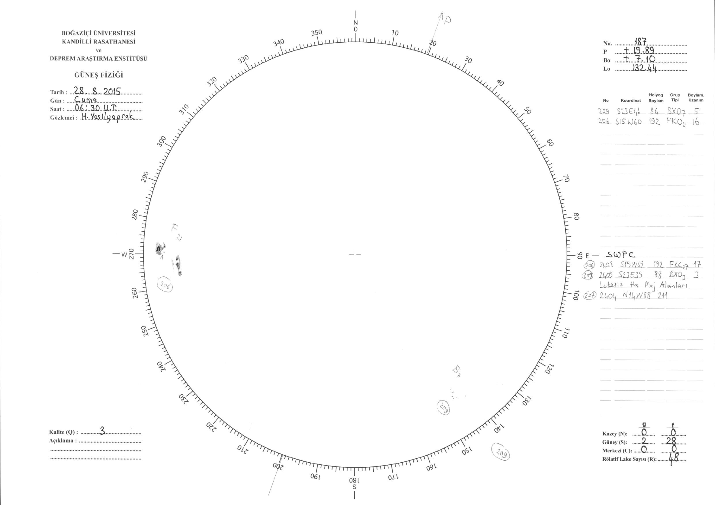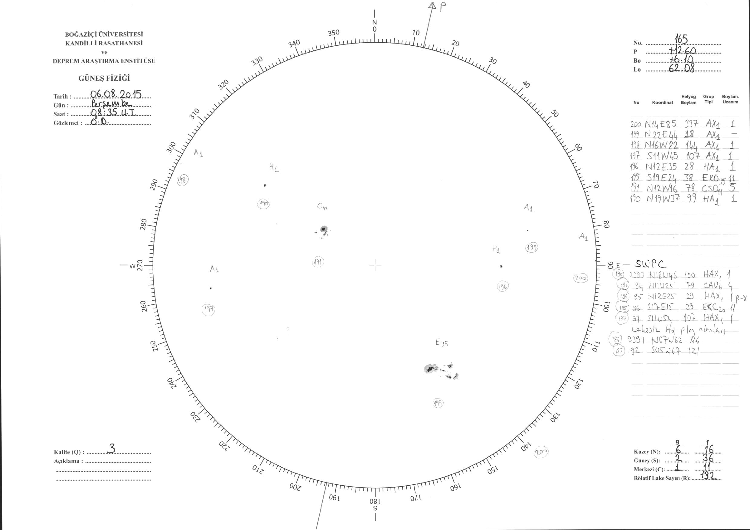 Güneş Lekesi Çizimleri / Kandilli Sunspot Drawings