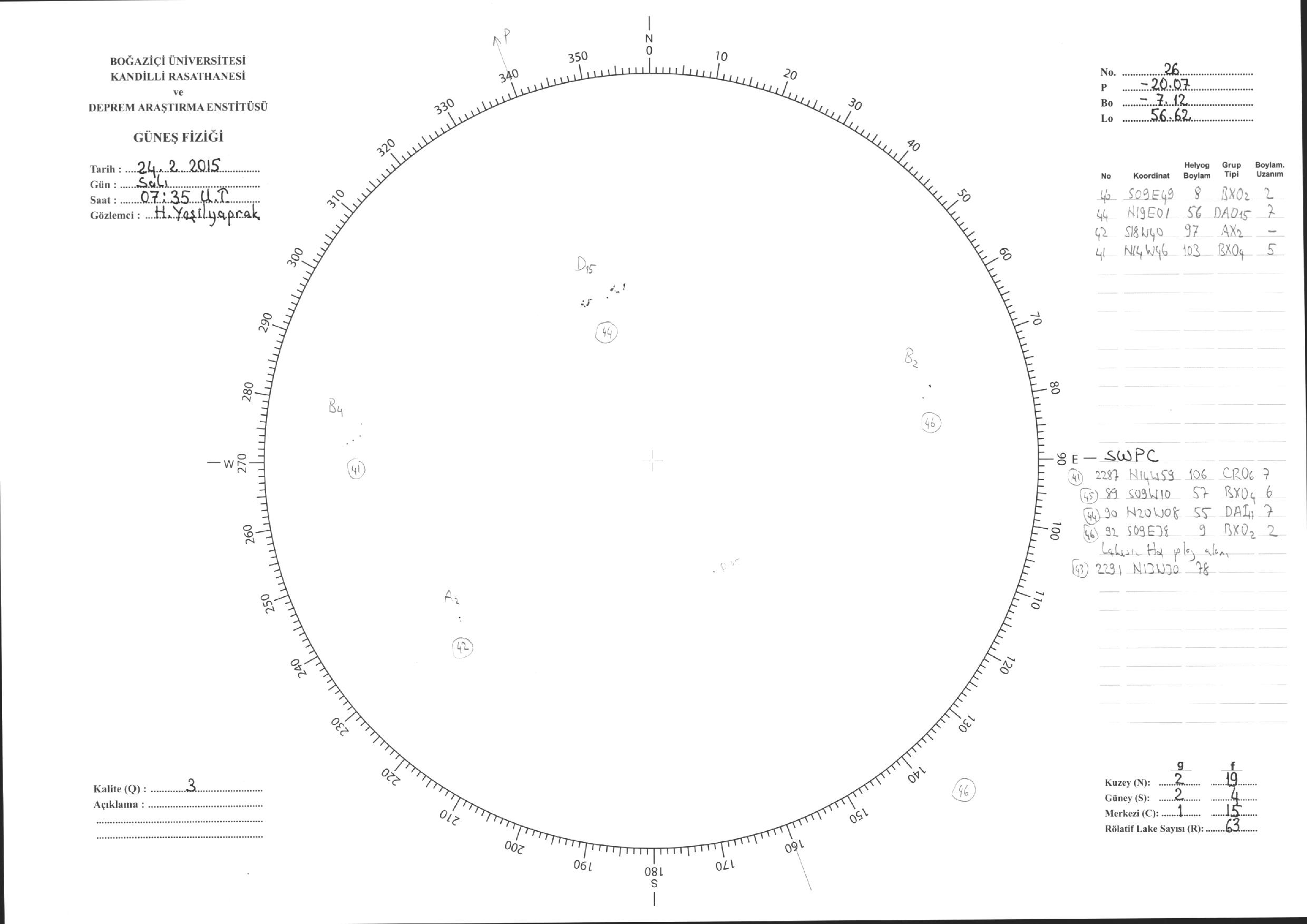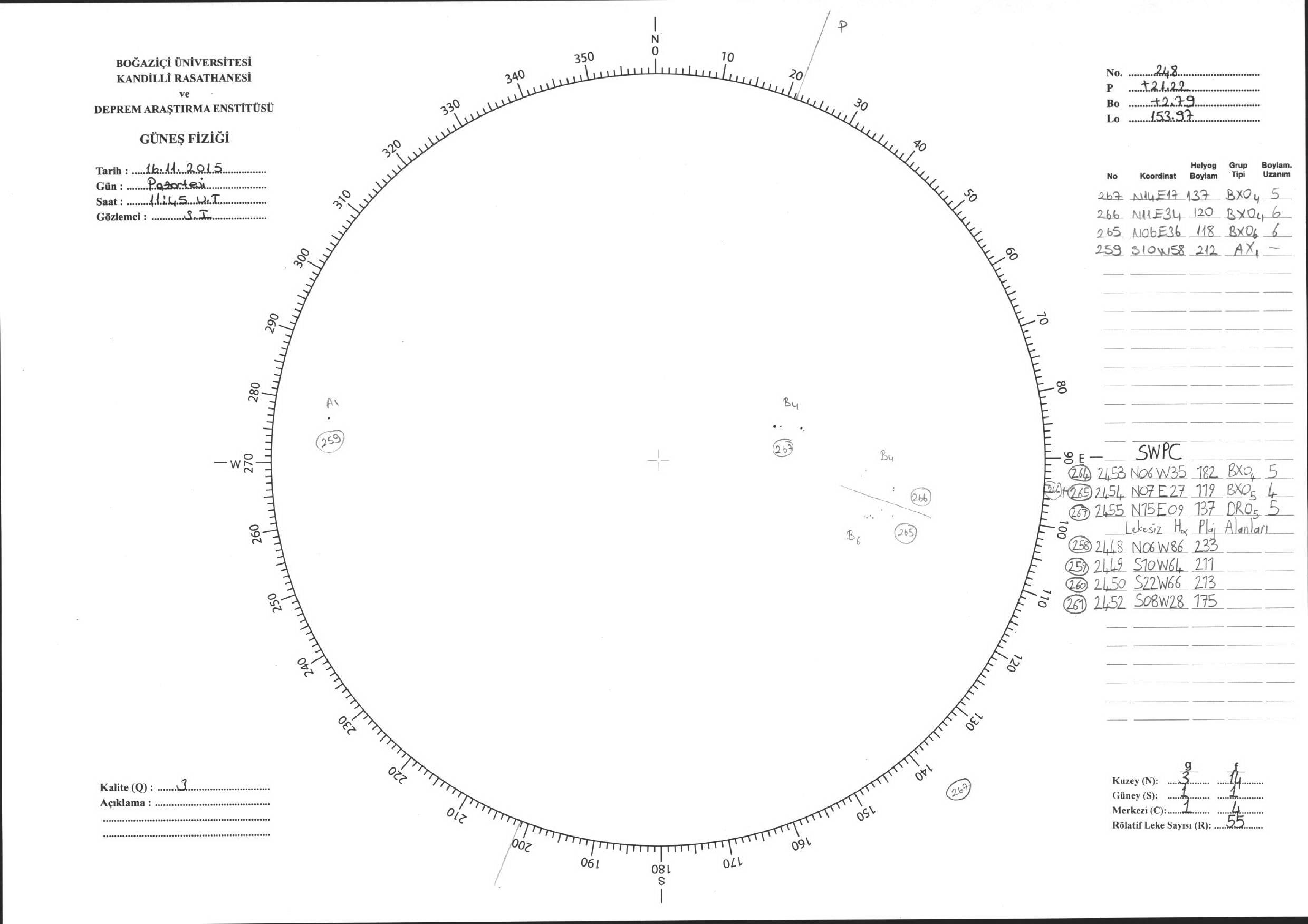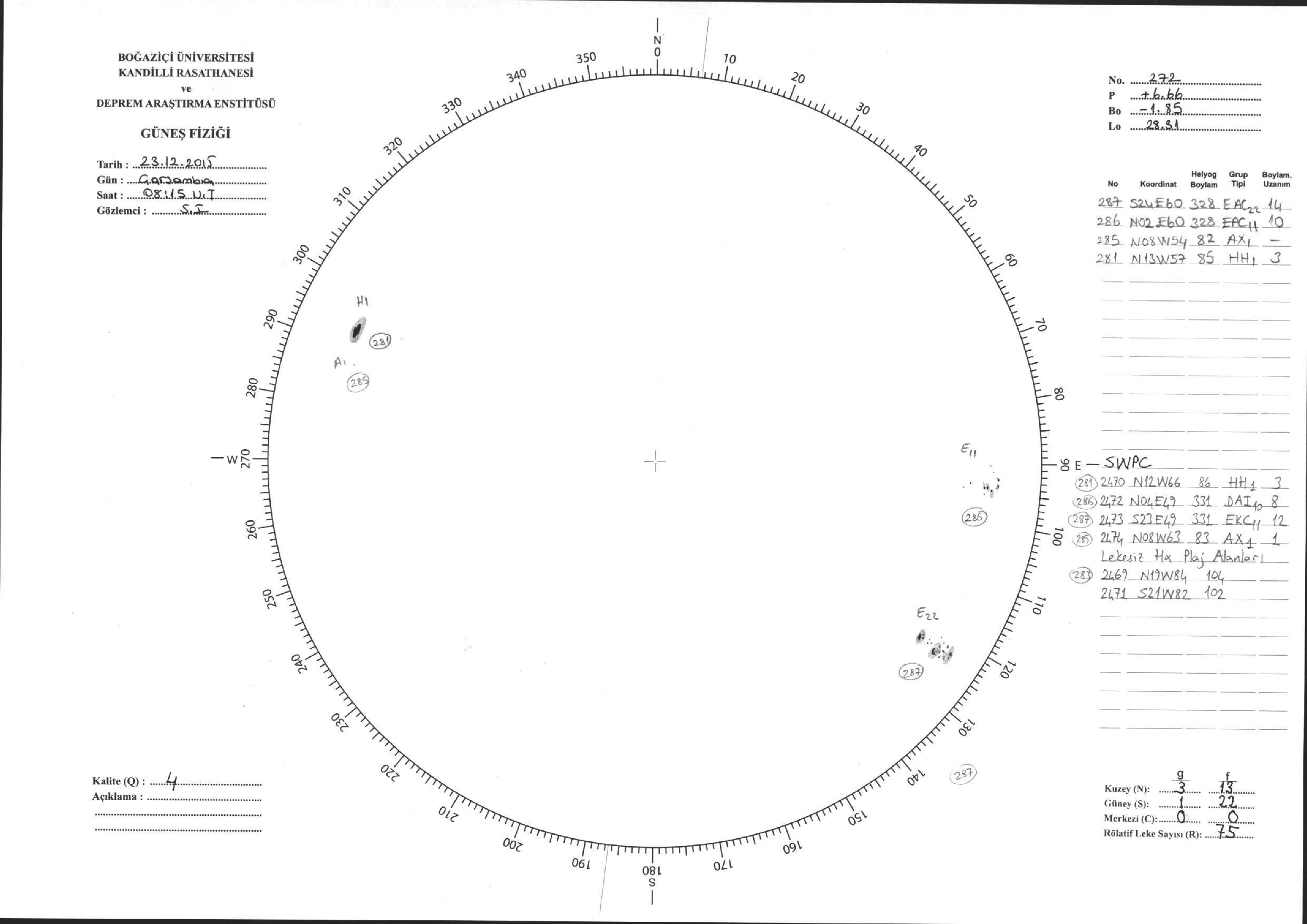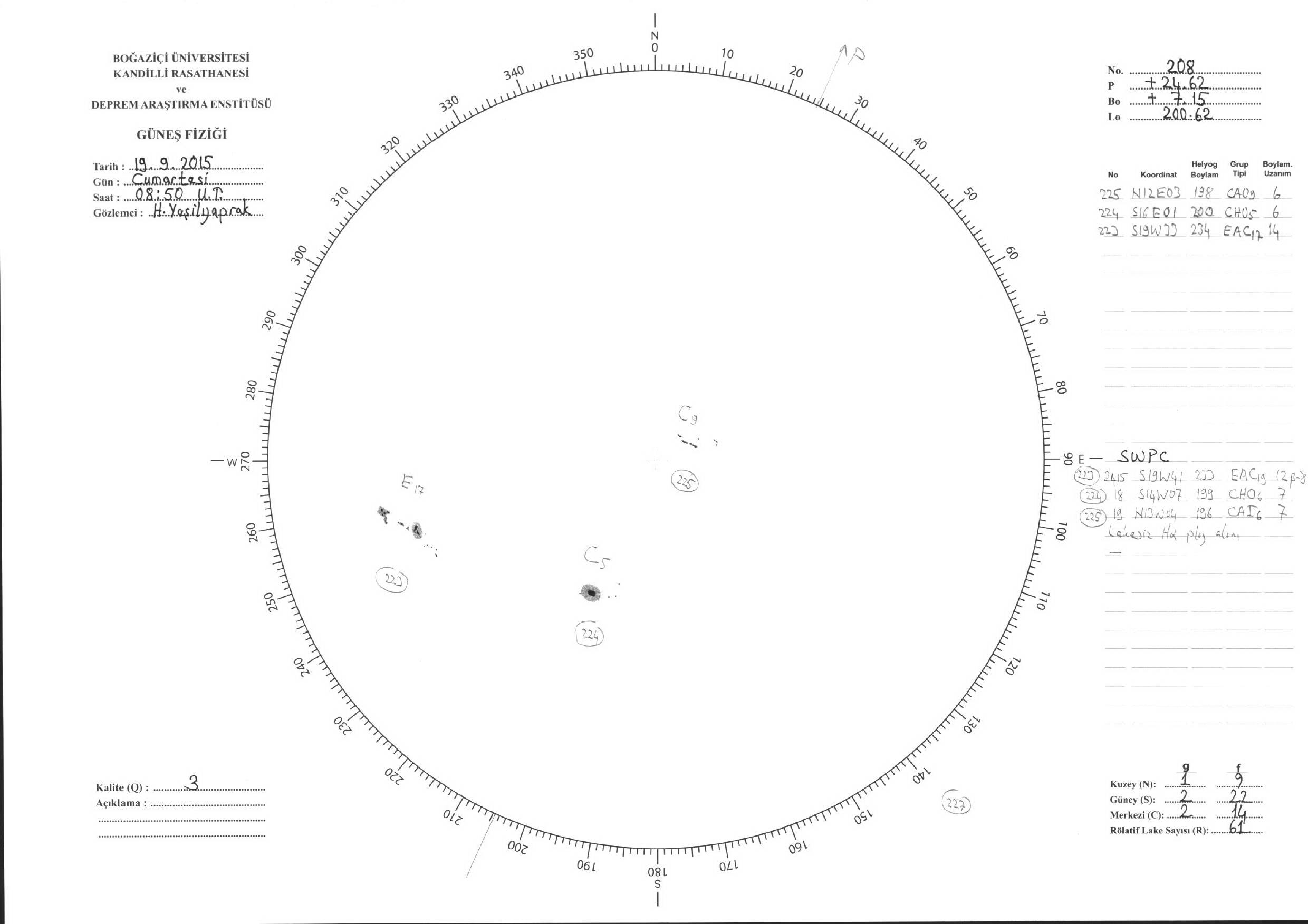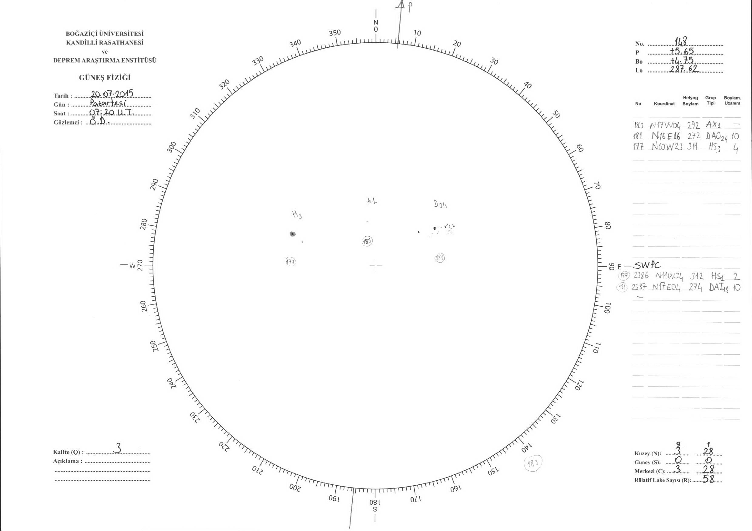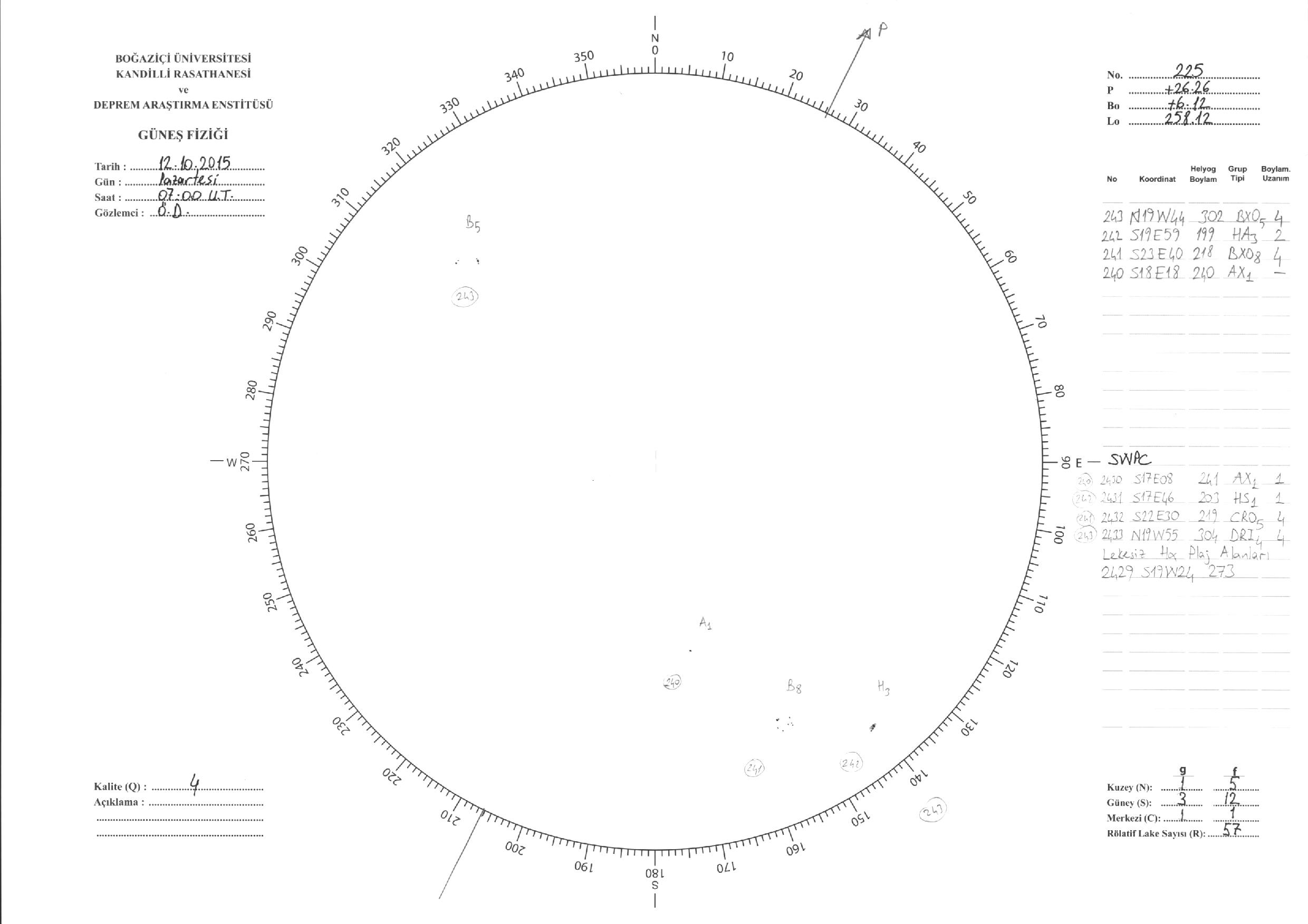 Güneş Lekesi Çizimleri / Kandilli Sunspot Drawings