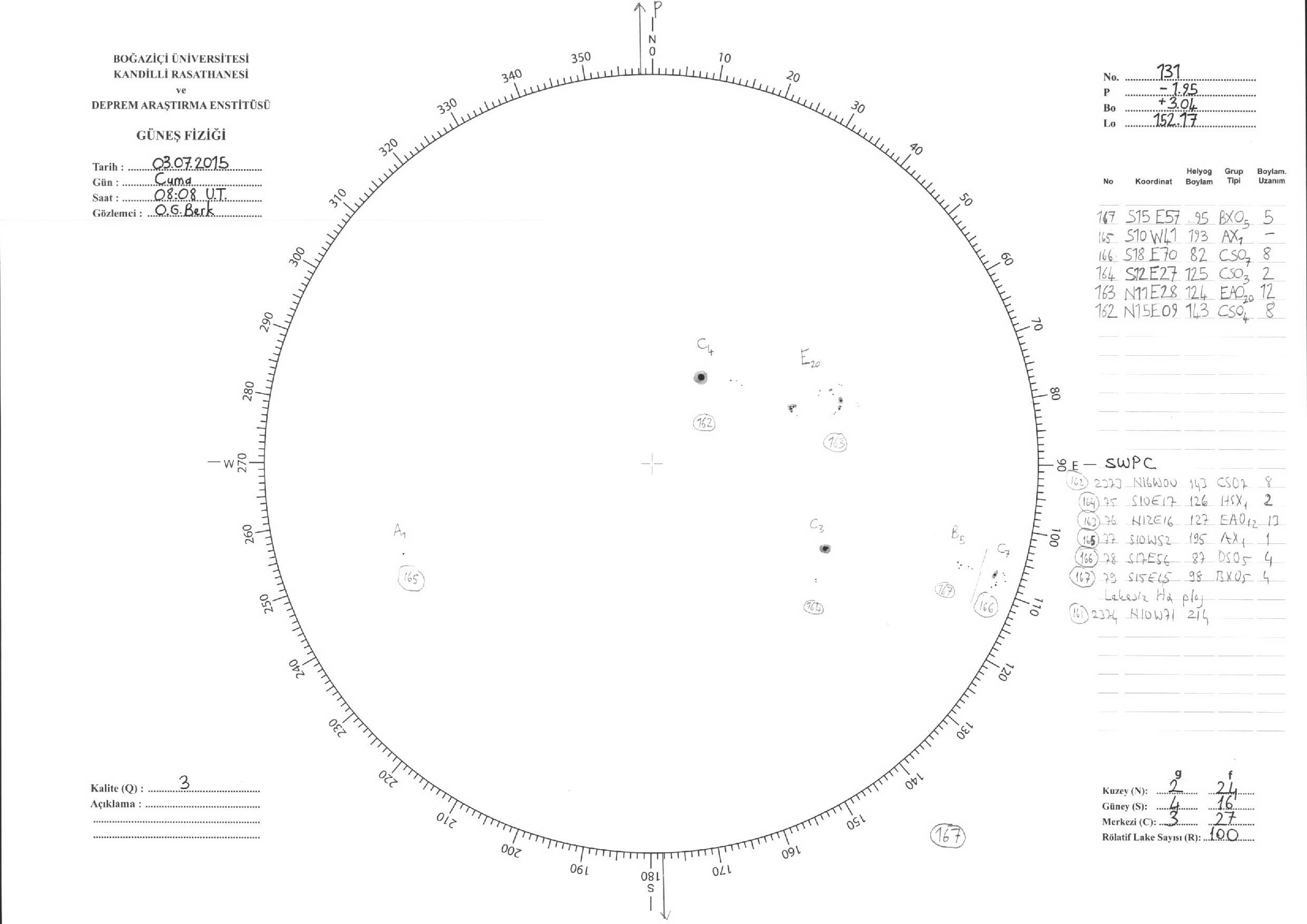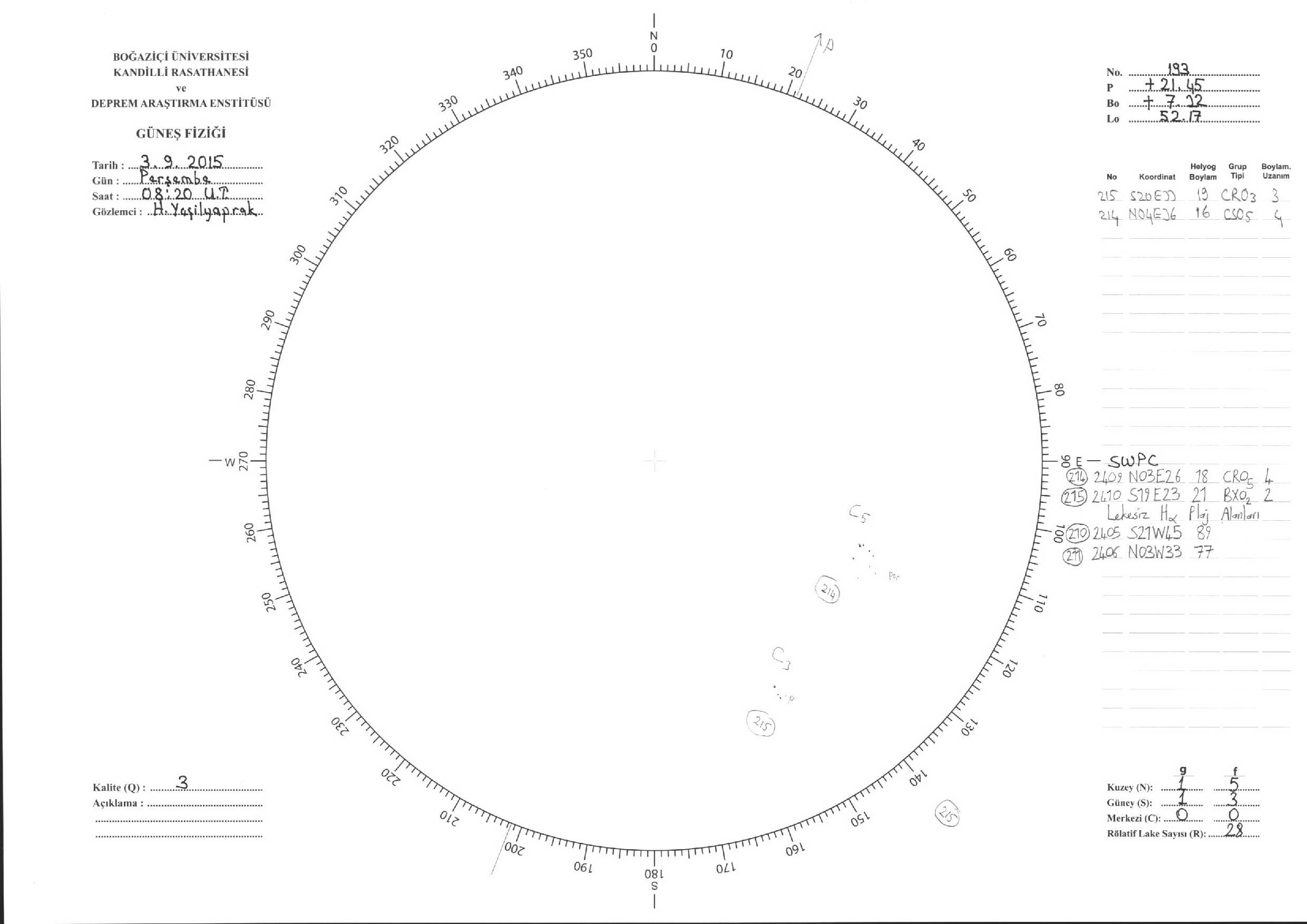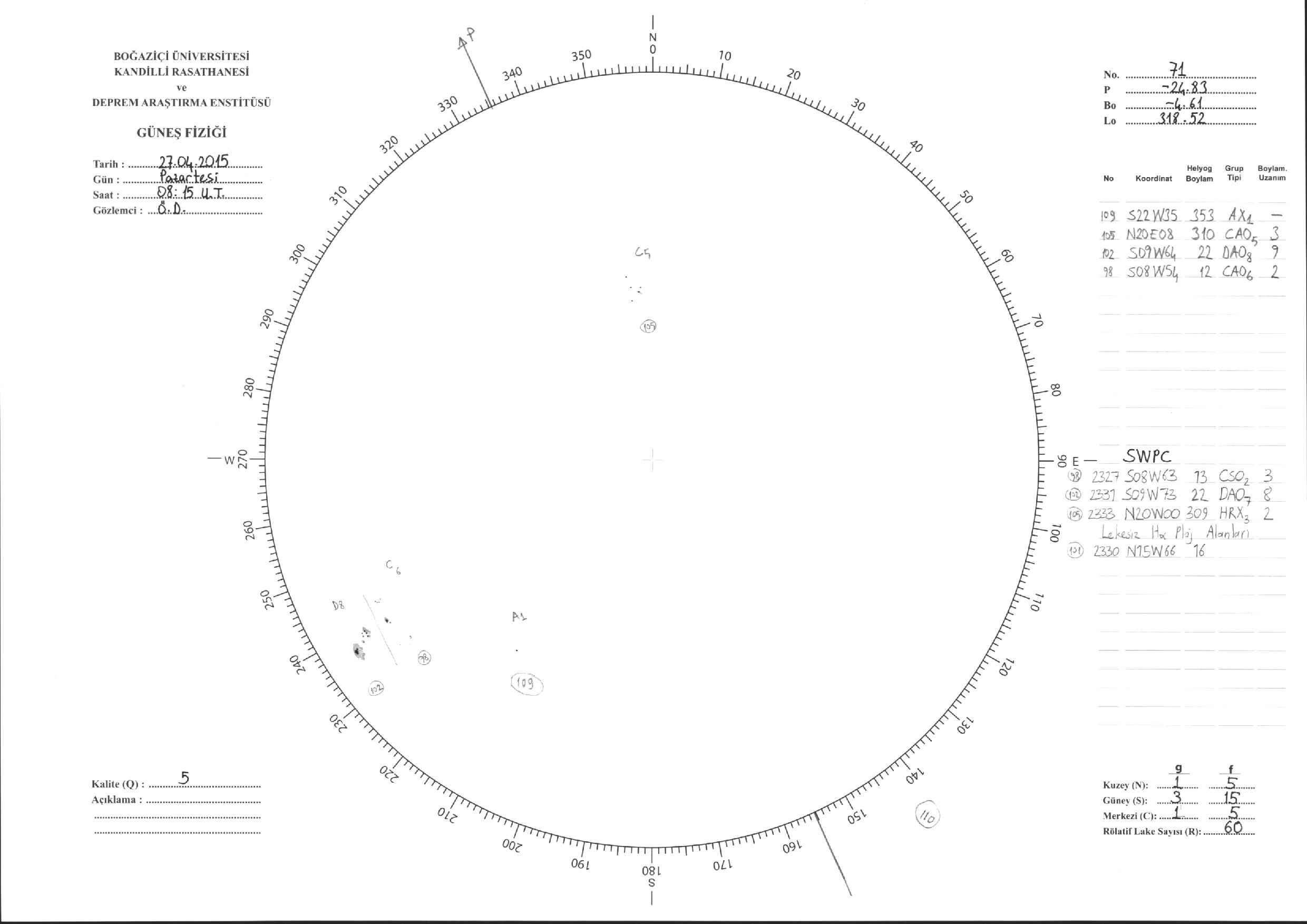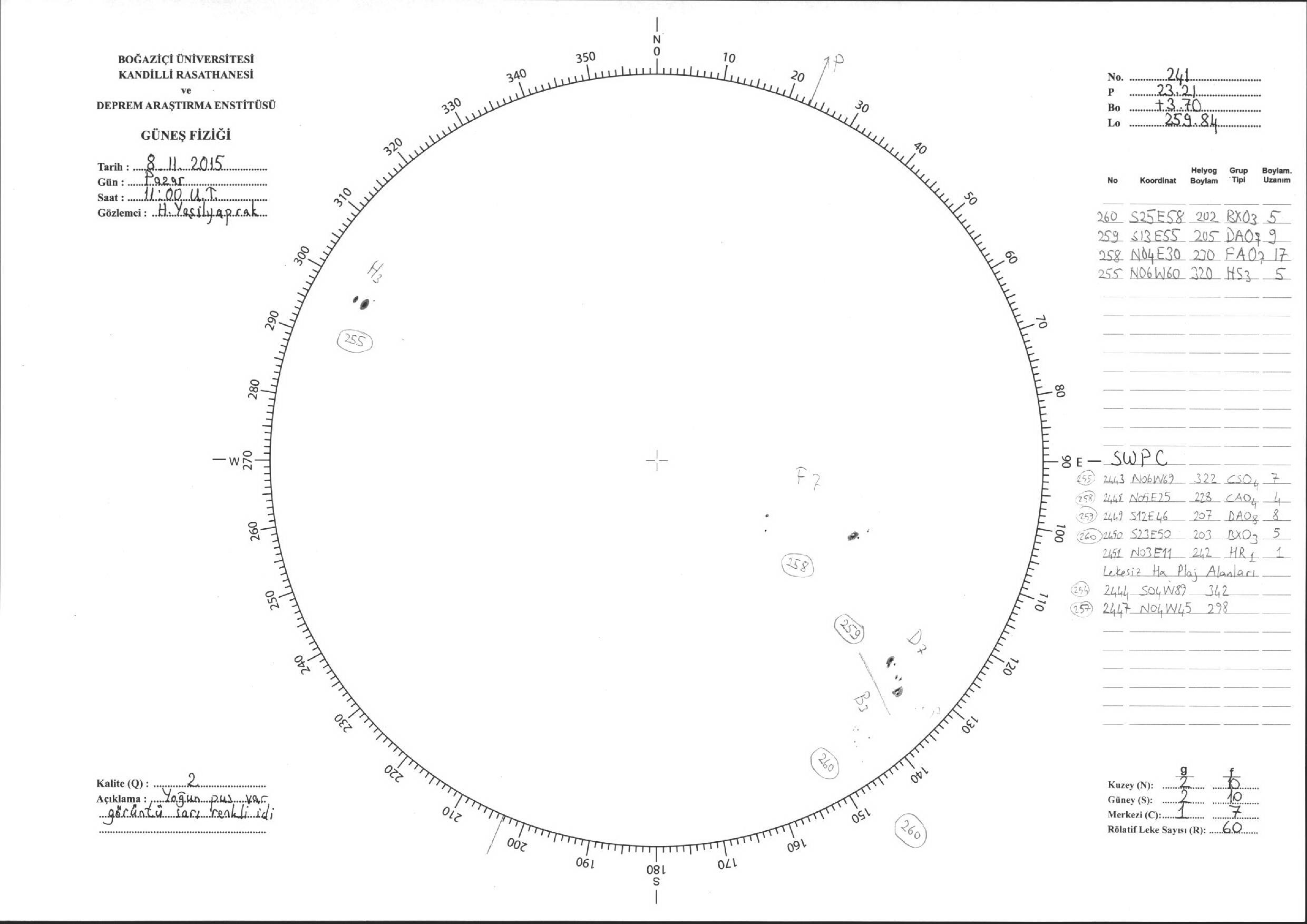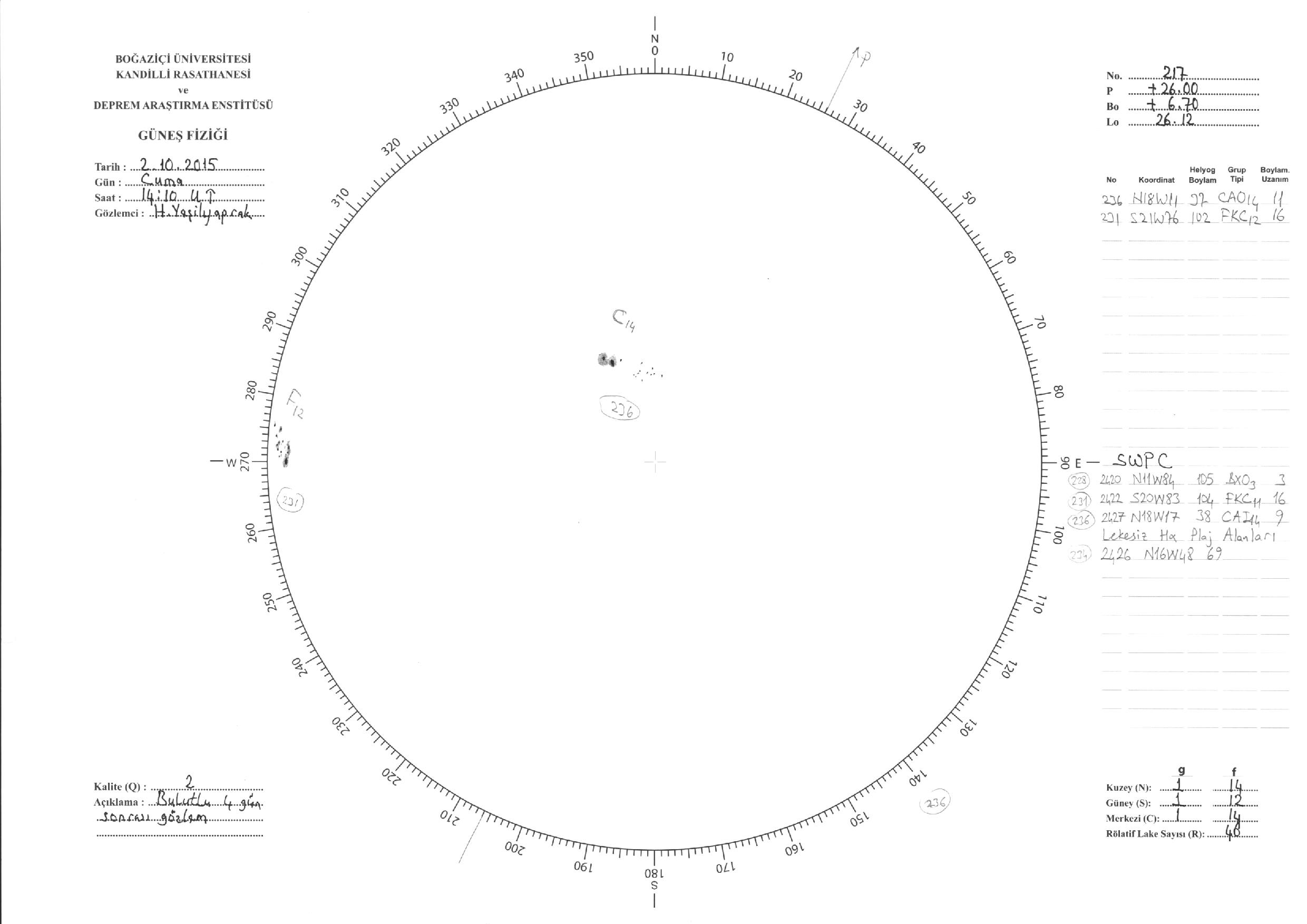 Güneş Lekesi Çizimleri / Kandilli Sunspot Drawings
