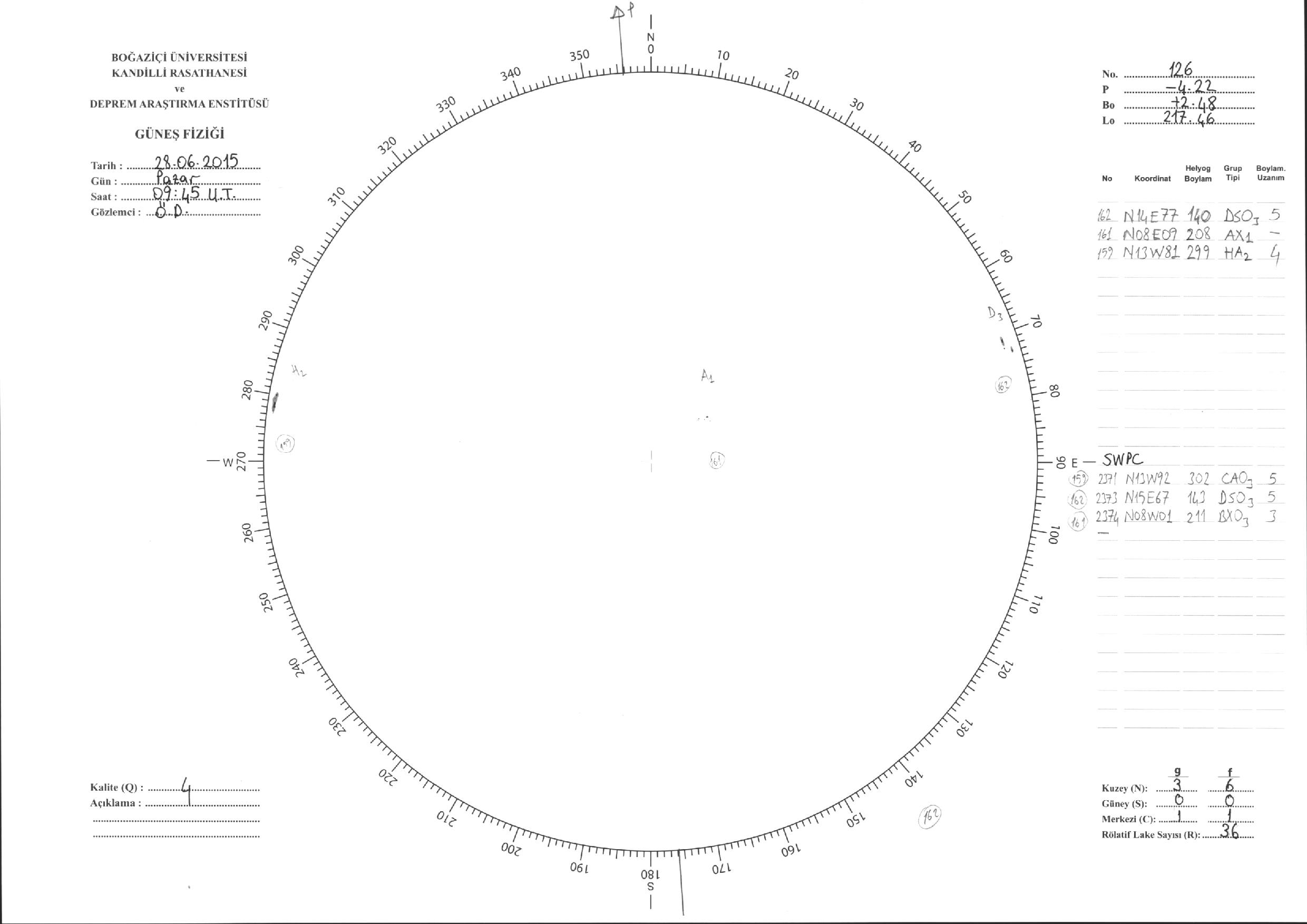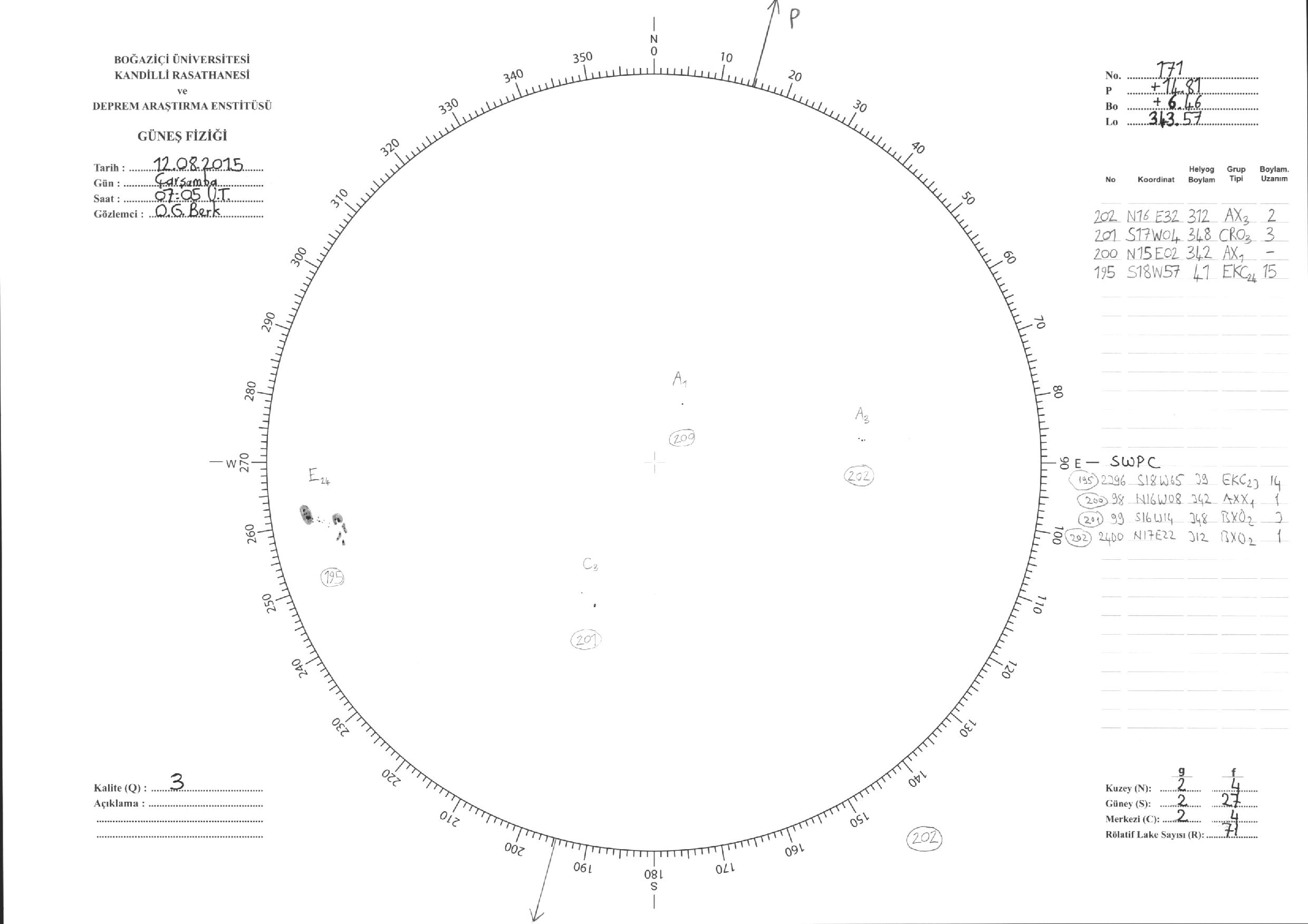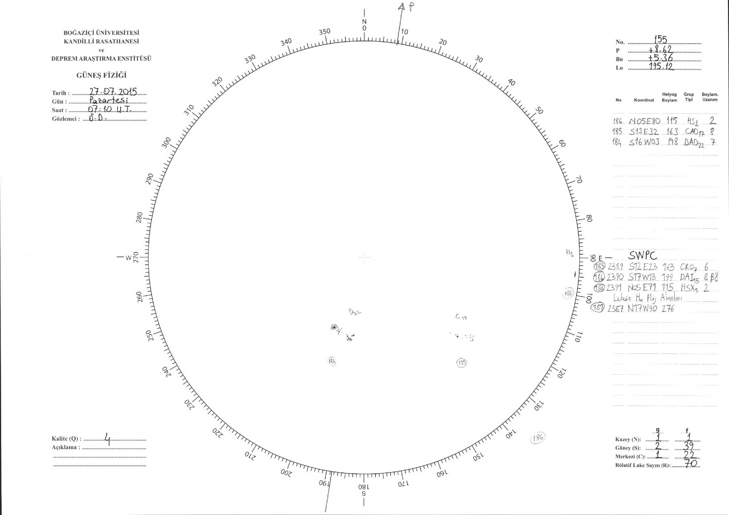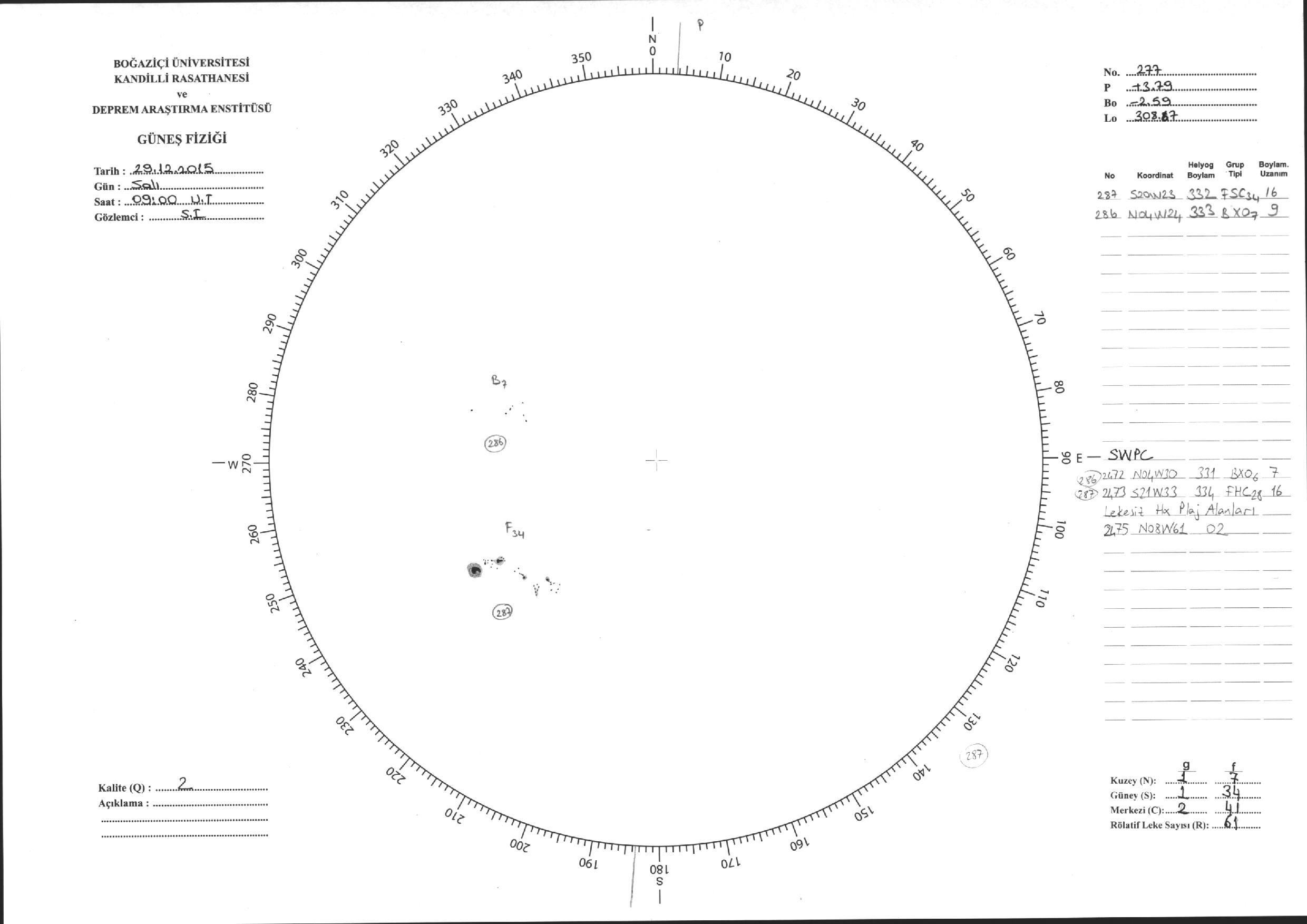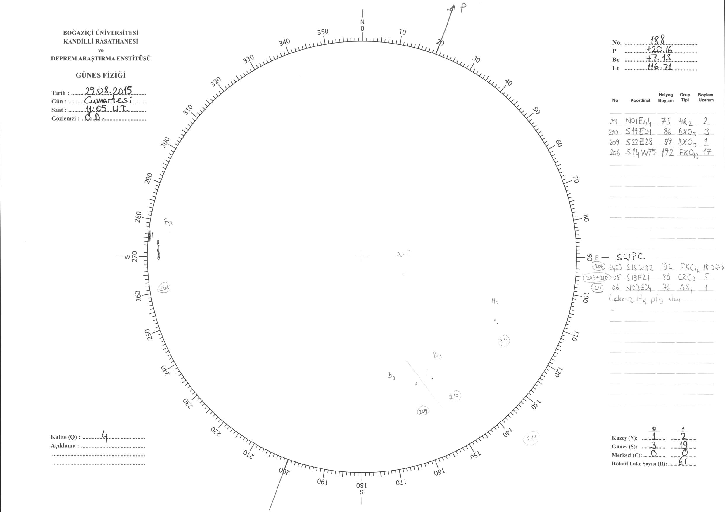 Güneş Lekesi Çizimleri / Kandilli Sunspot Drawings