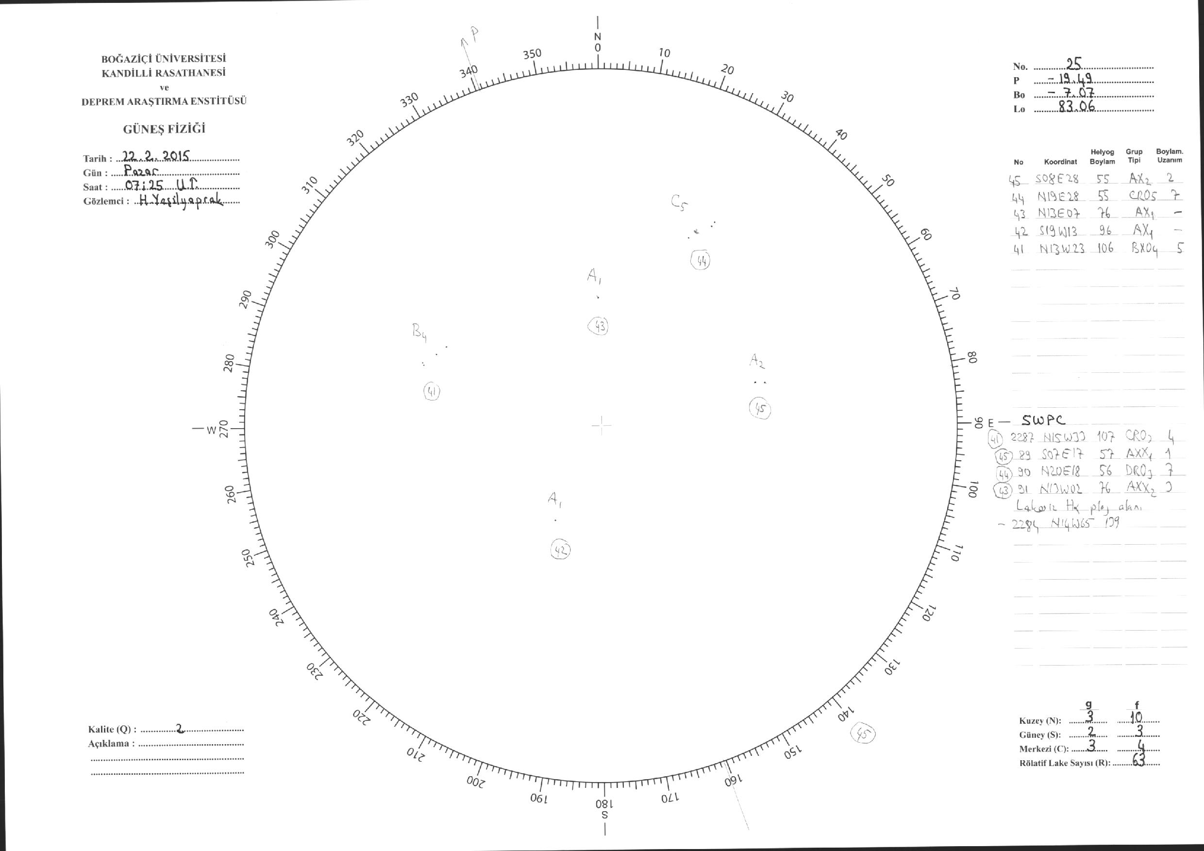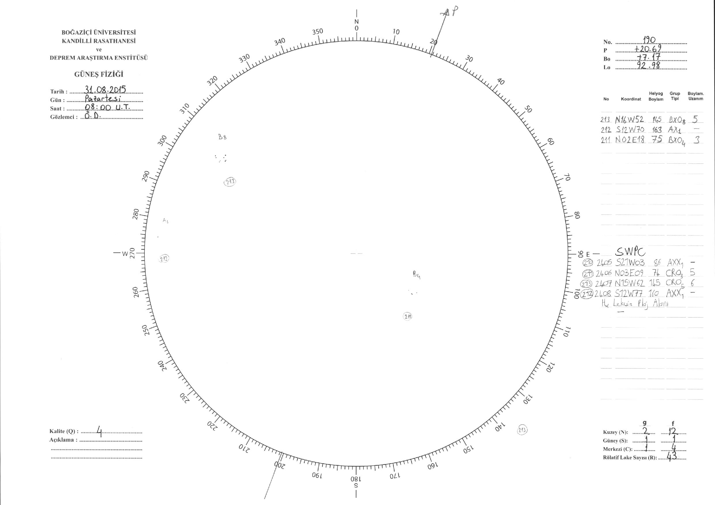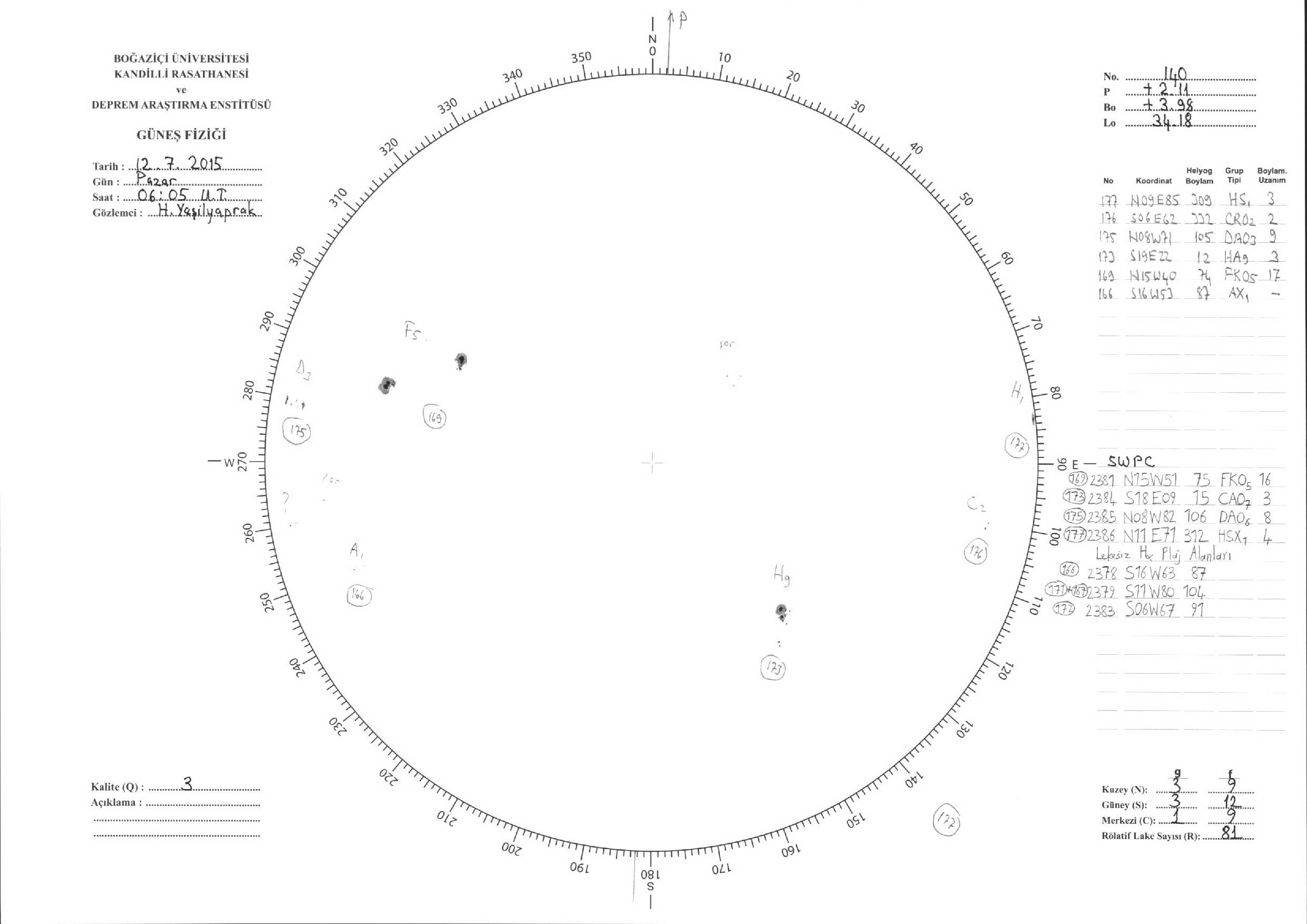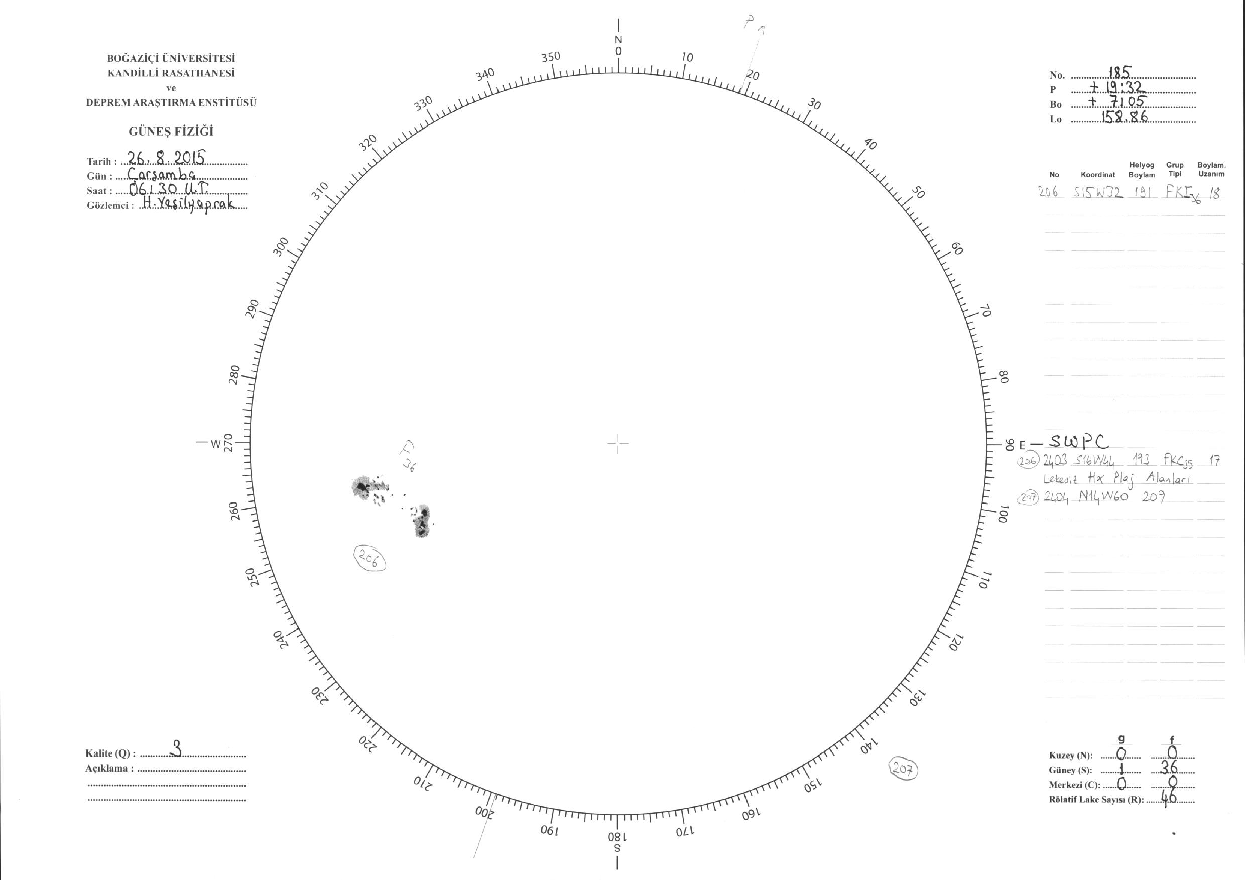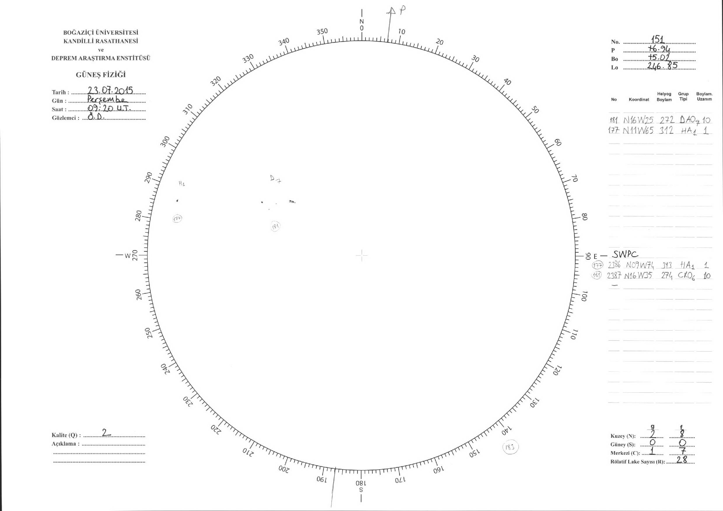 Güneş Lekesi Çizimleri / Kandilli Sunspot Drawings