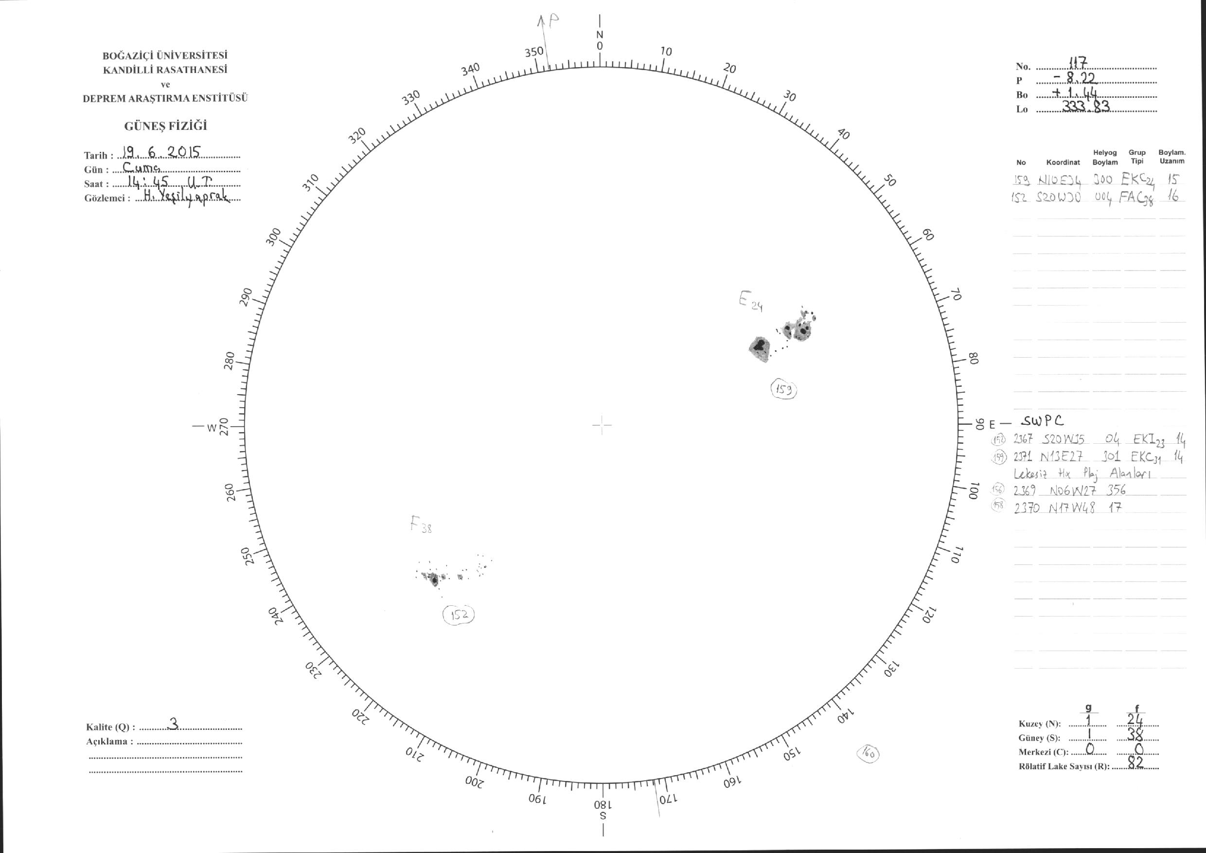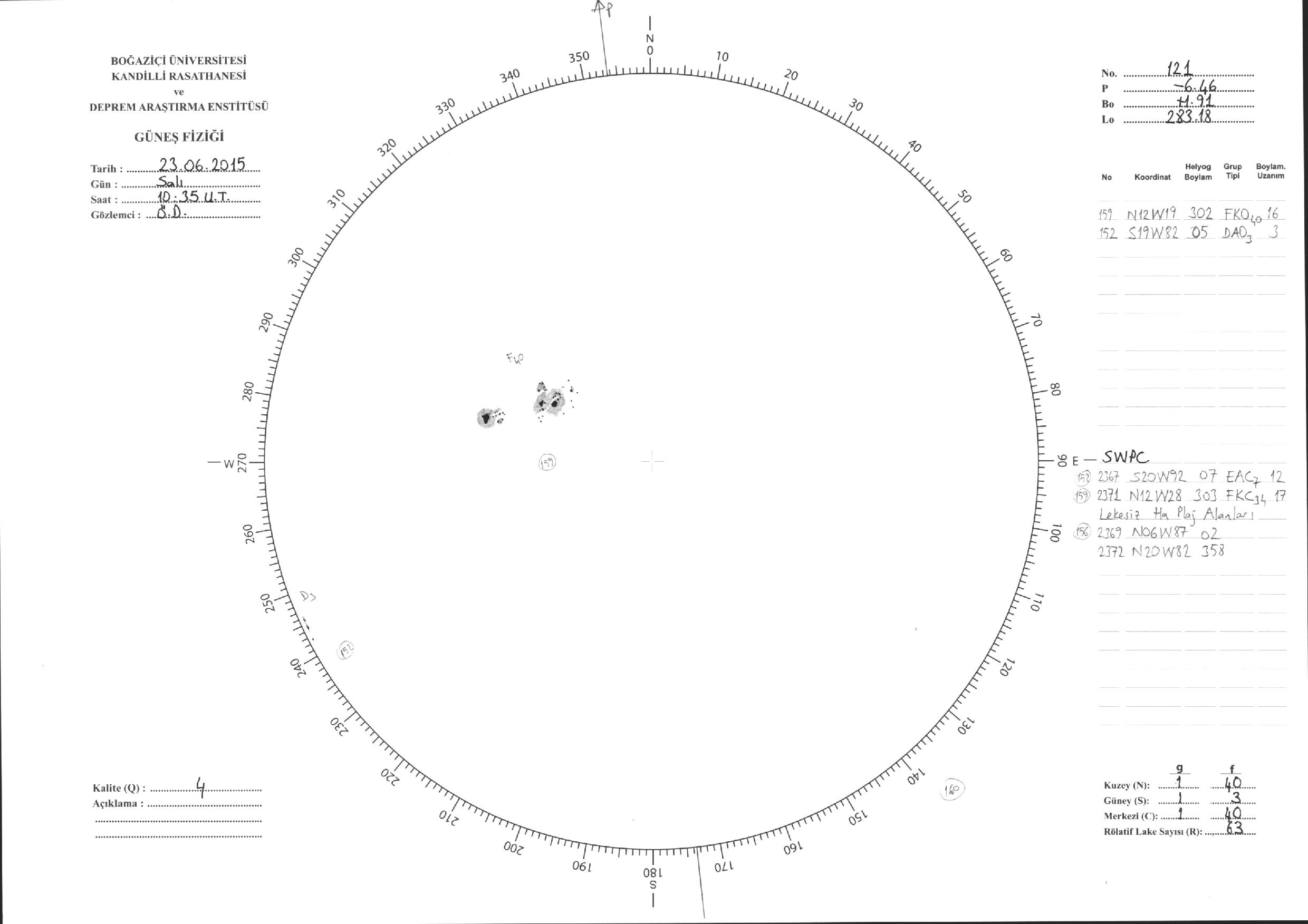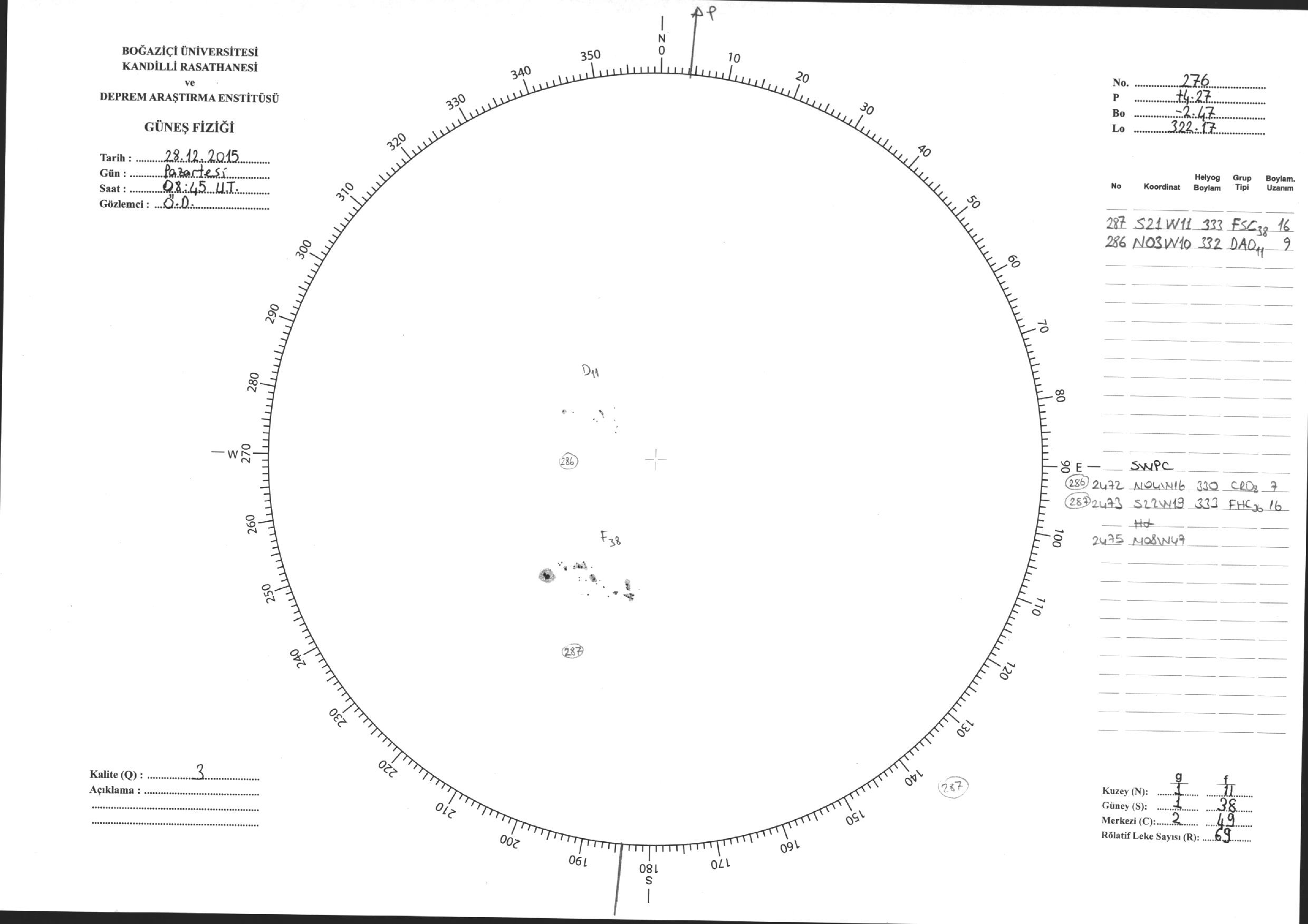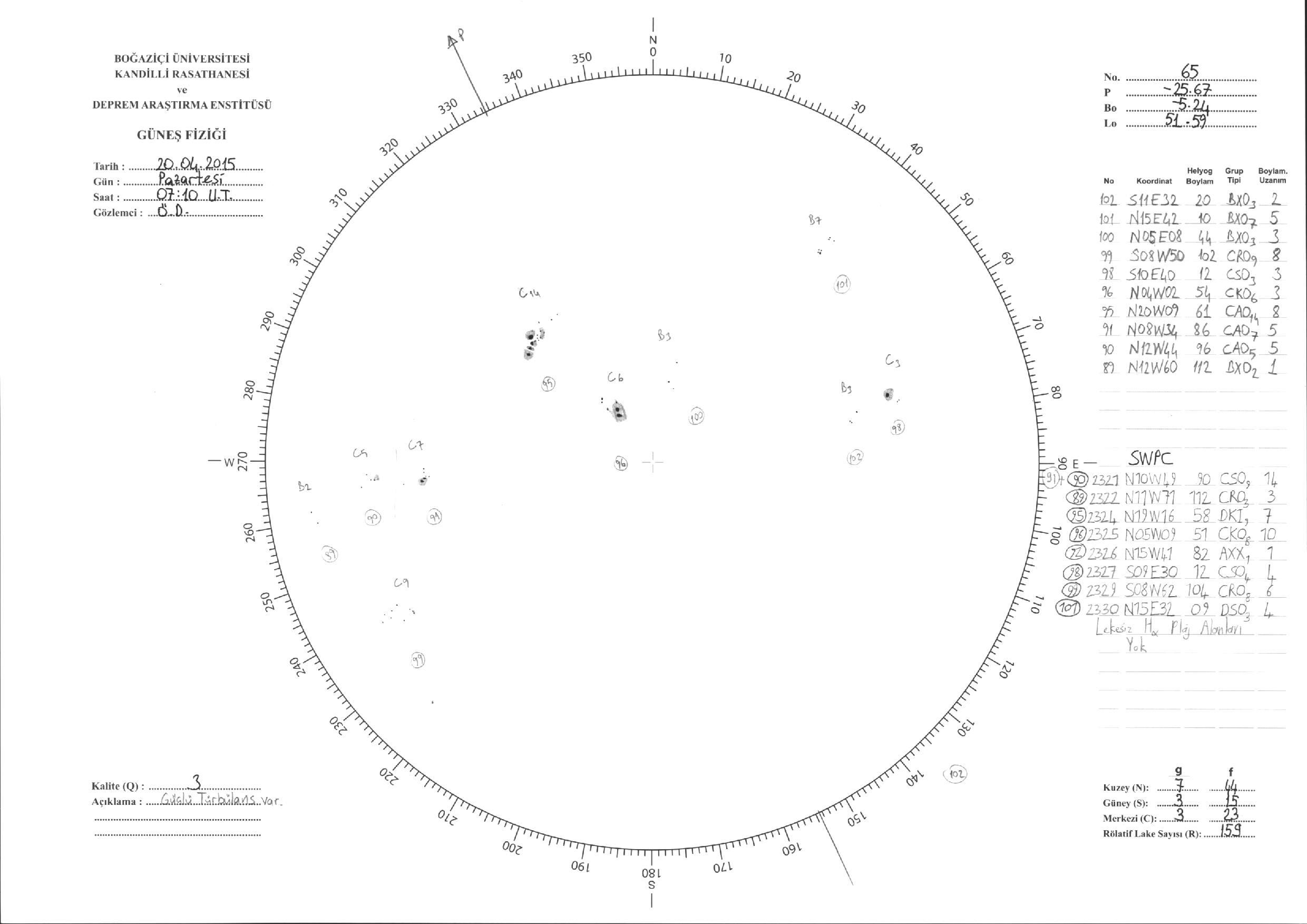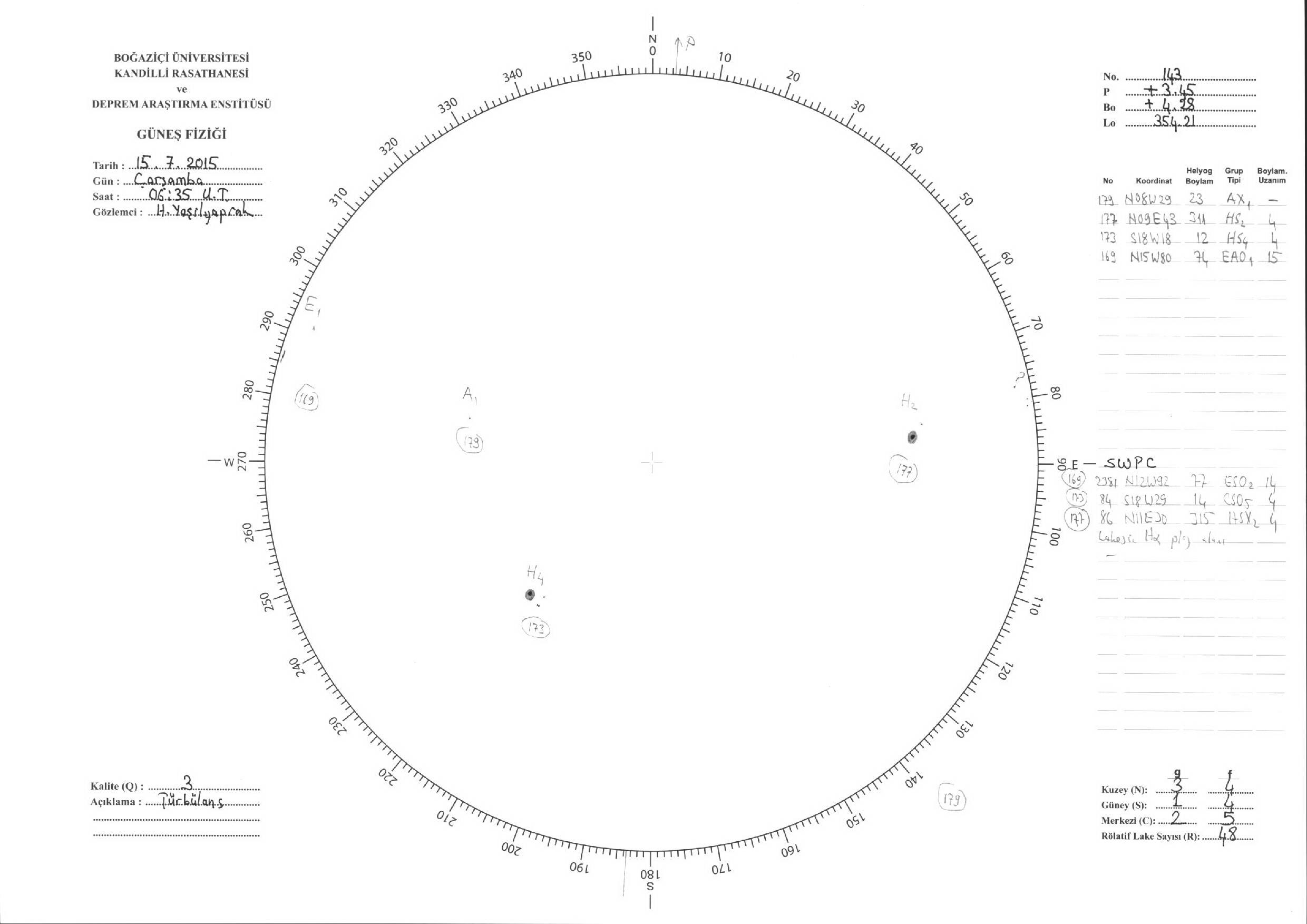 Güneş Lekesi Çizimleri / Kandilli Sunspot Drawings