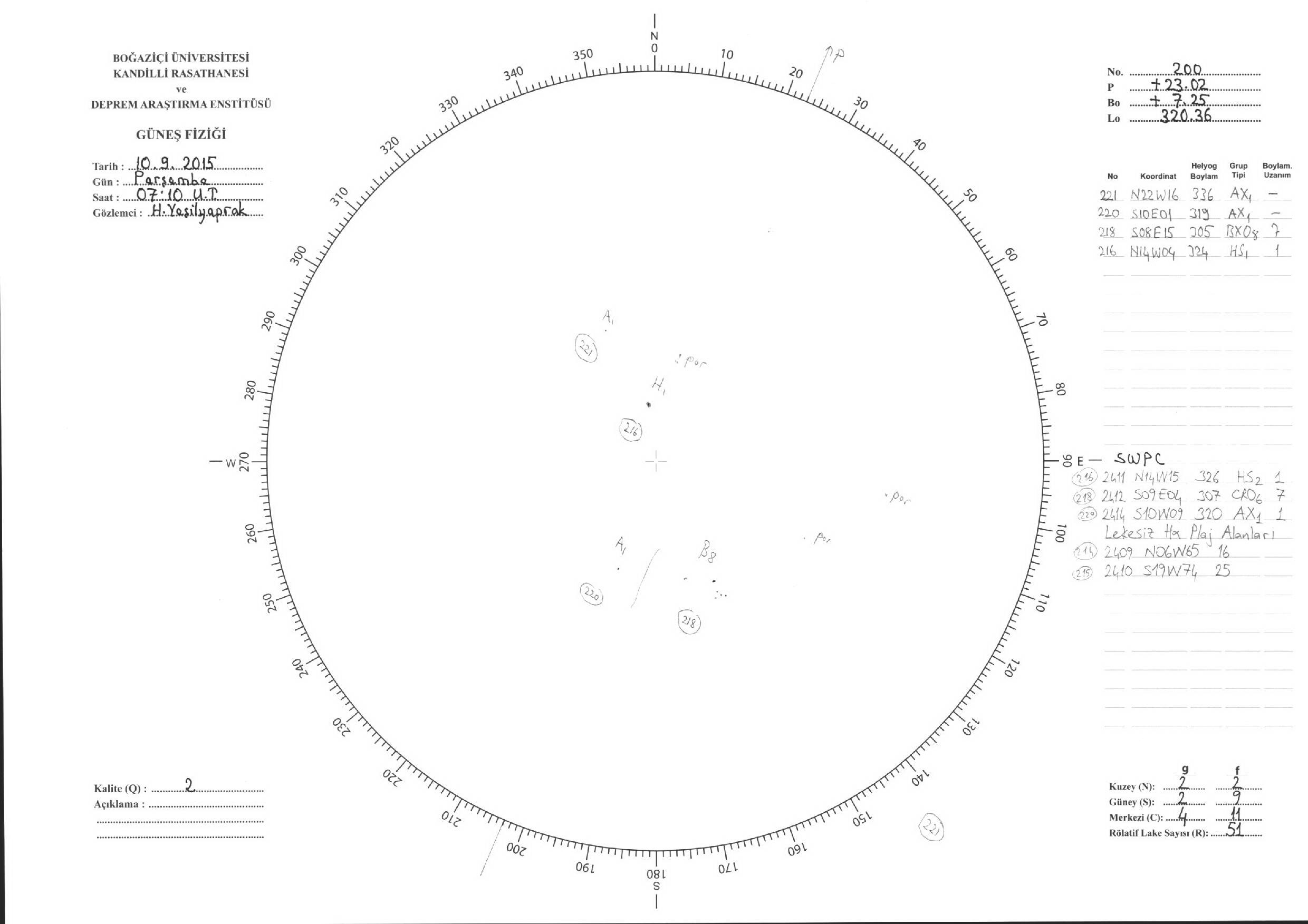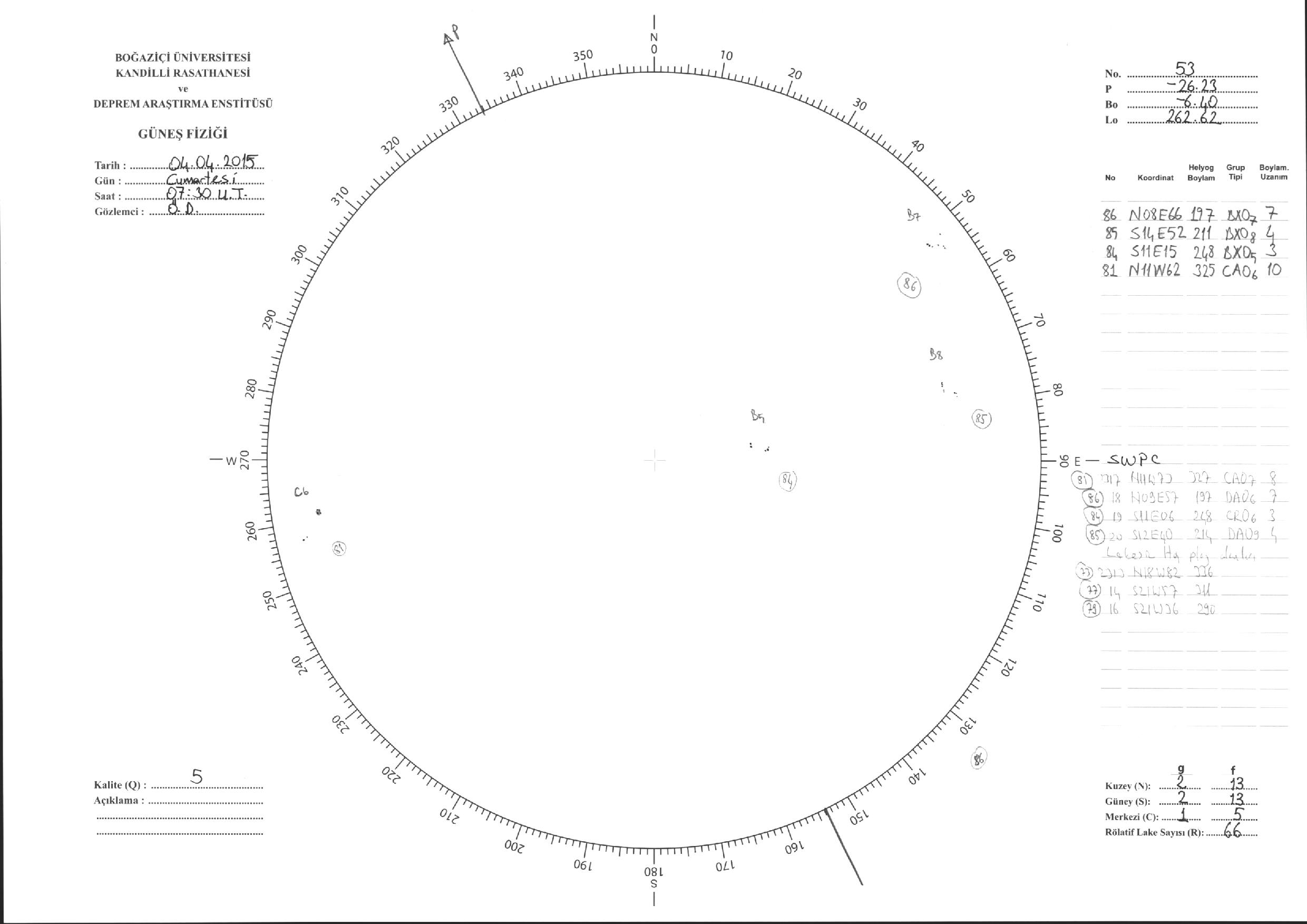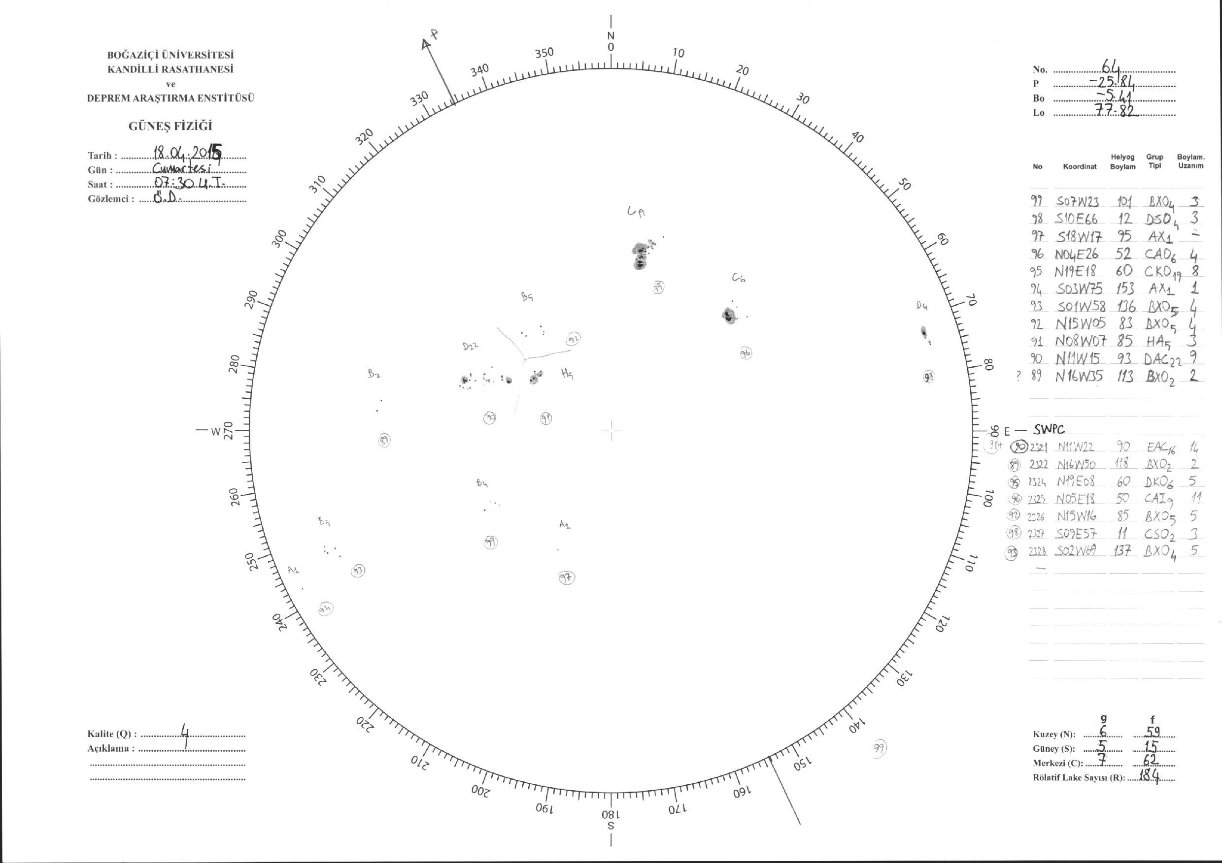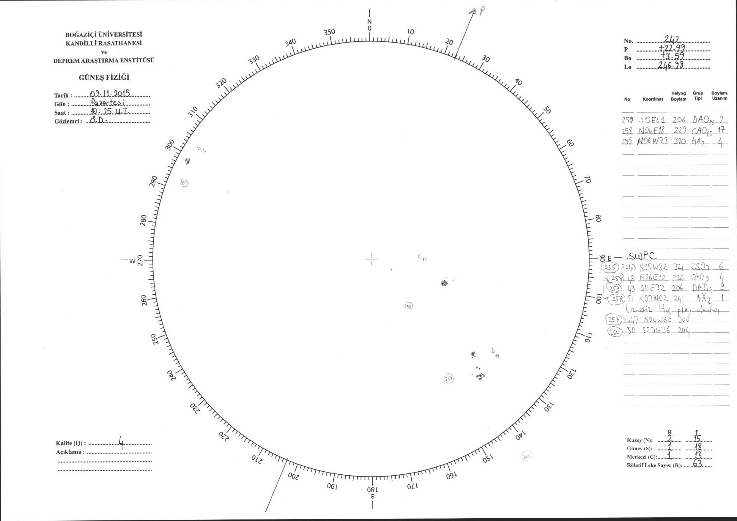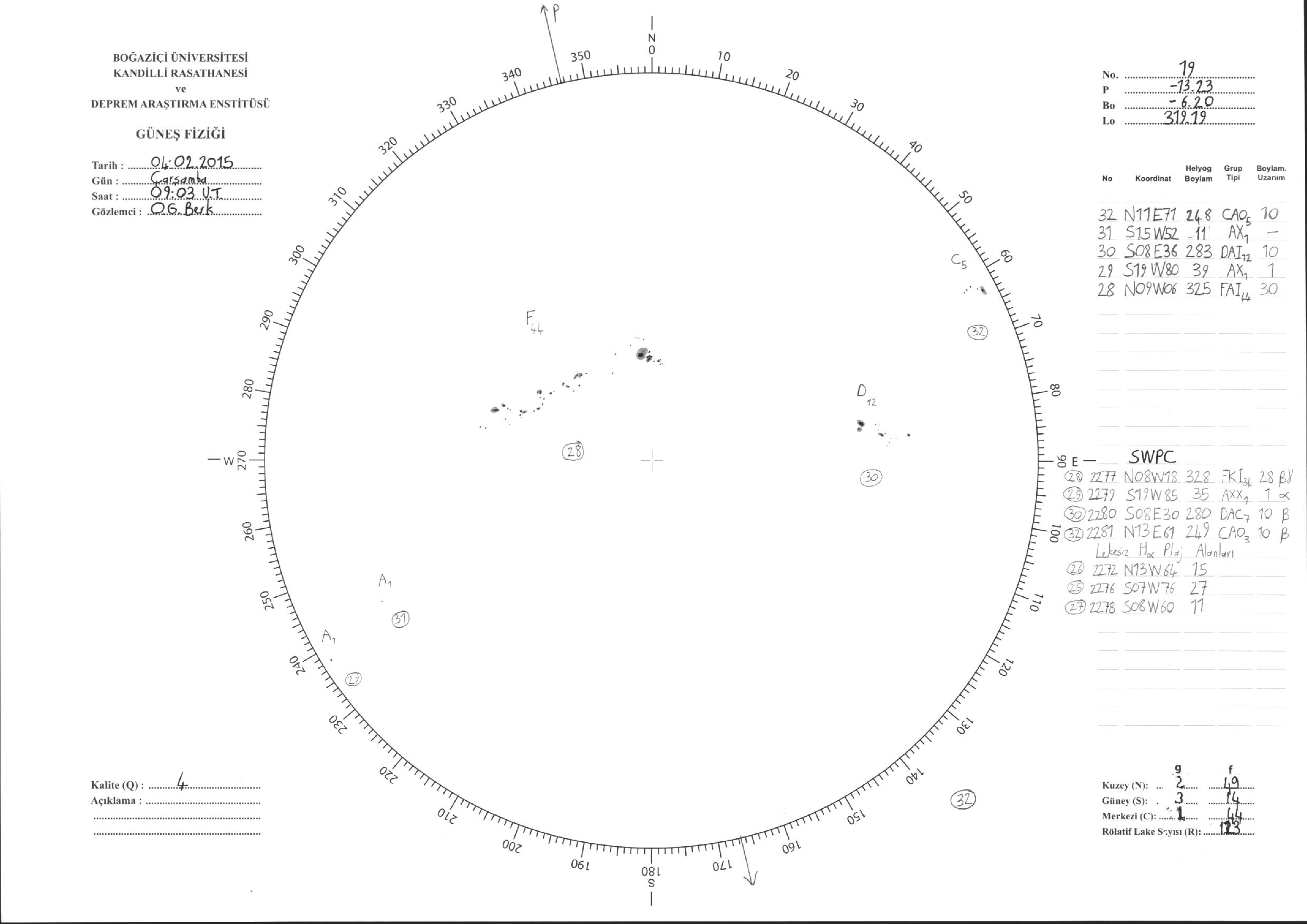 Güneş Lekesi Çizimleri / Kandilli Sunspot Drawings