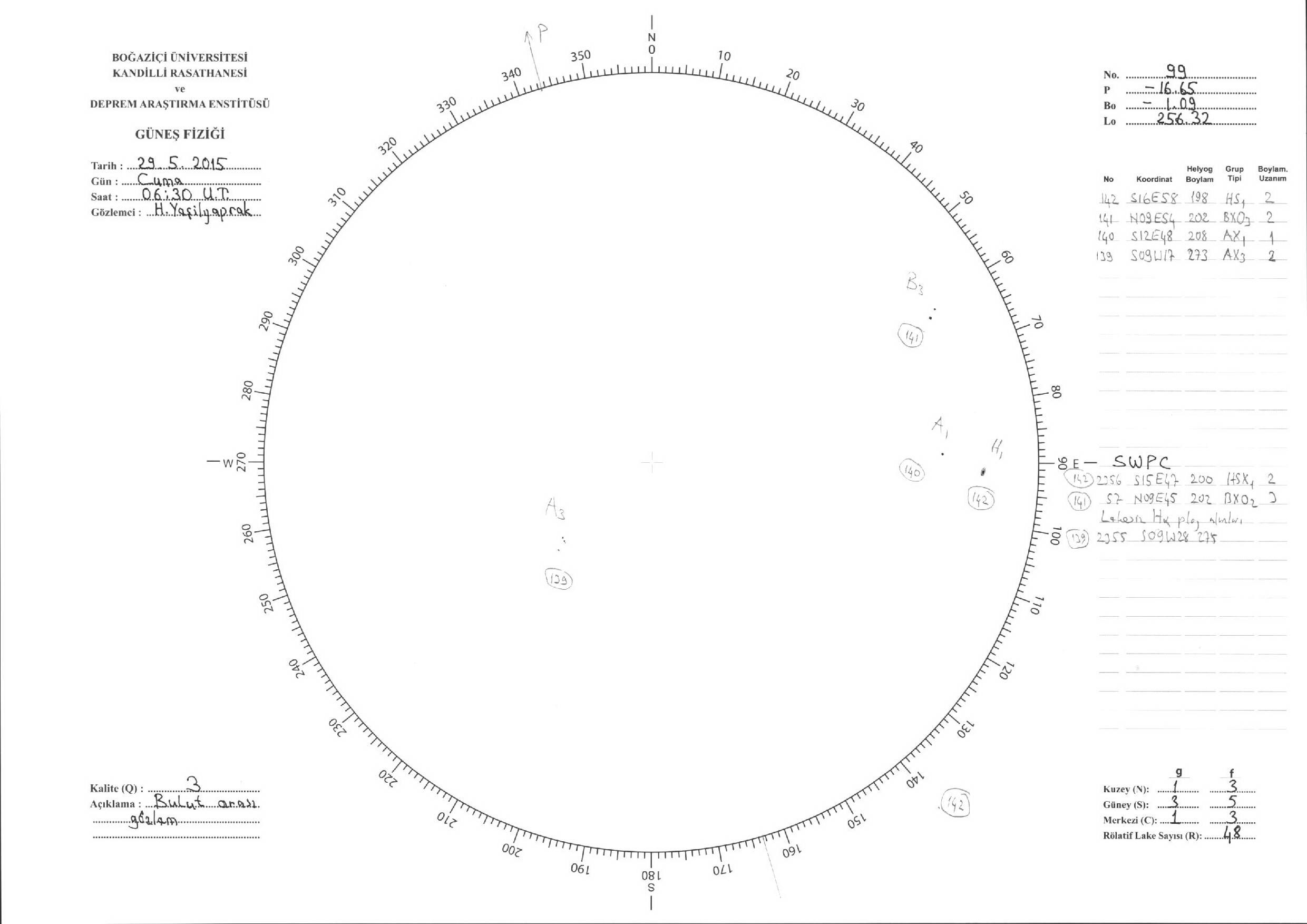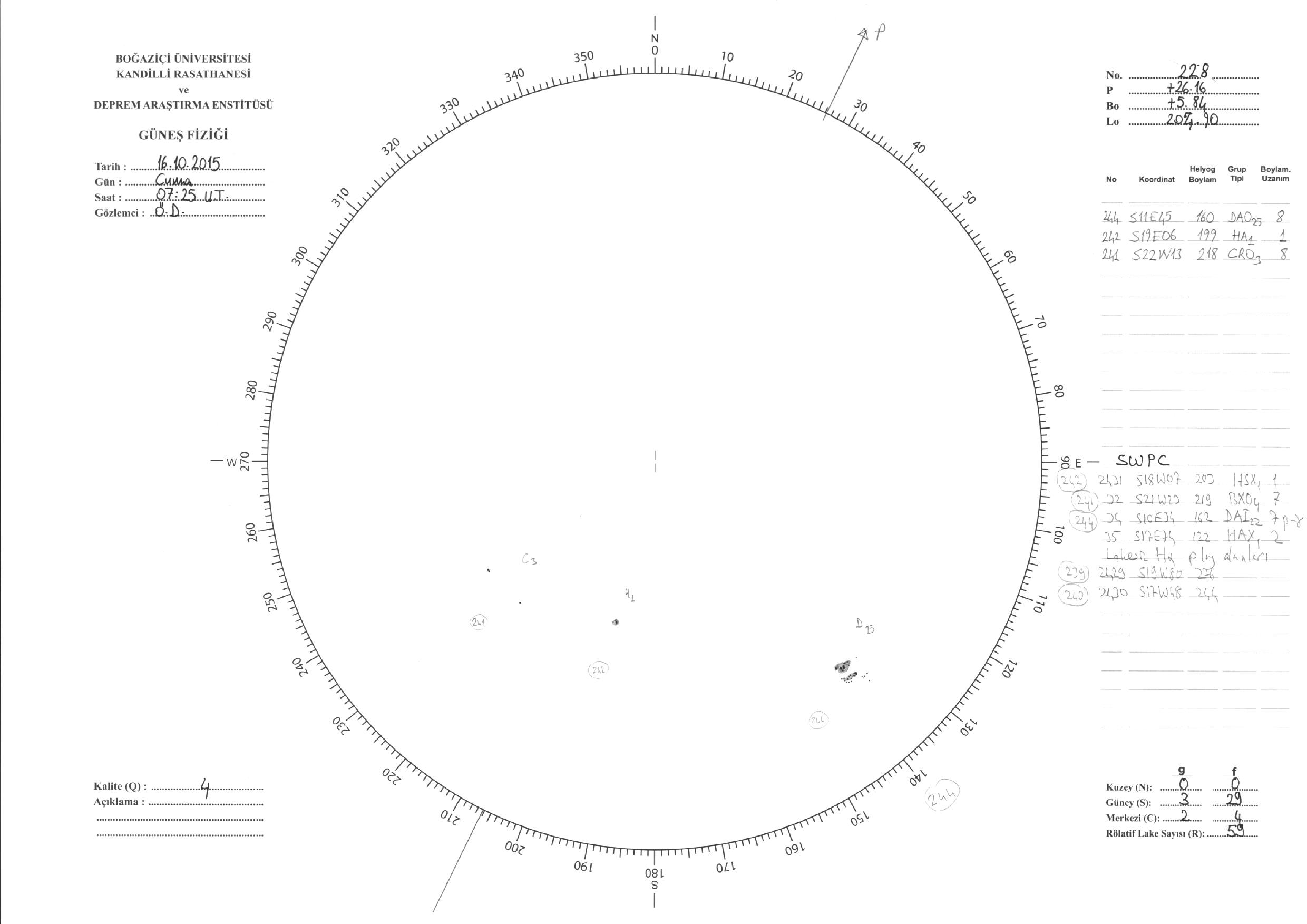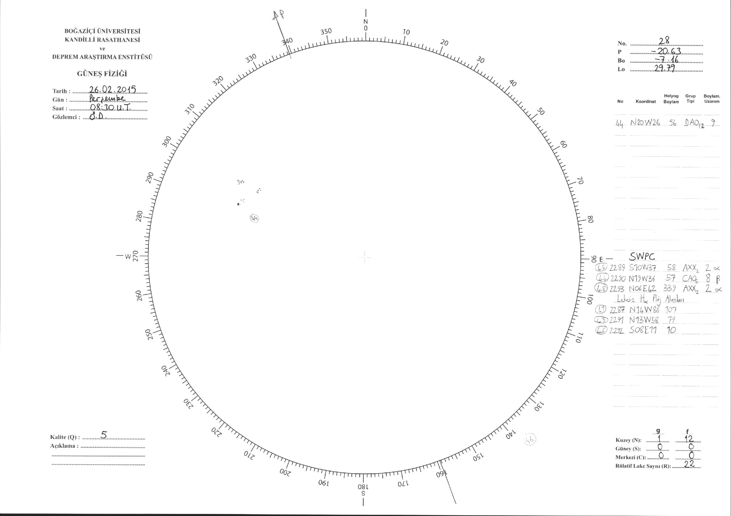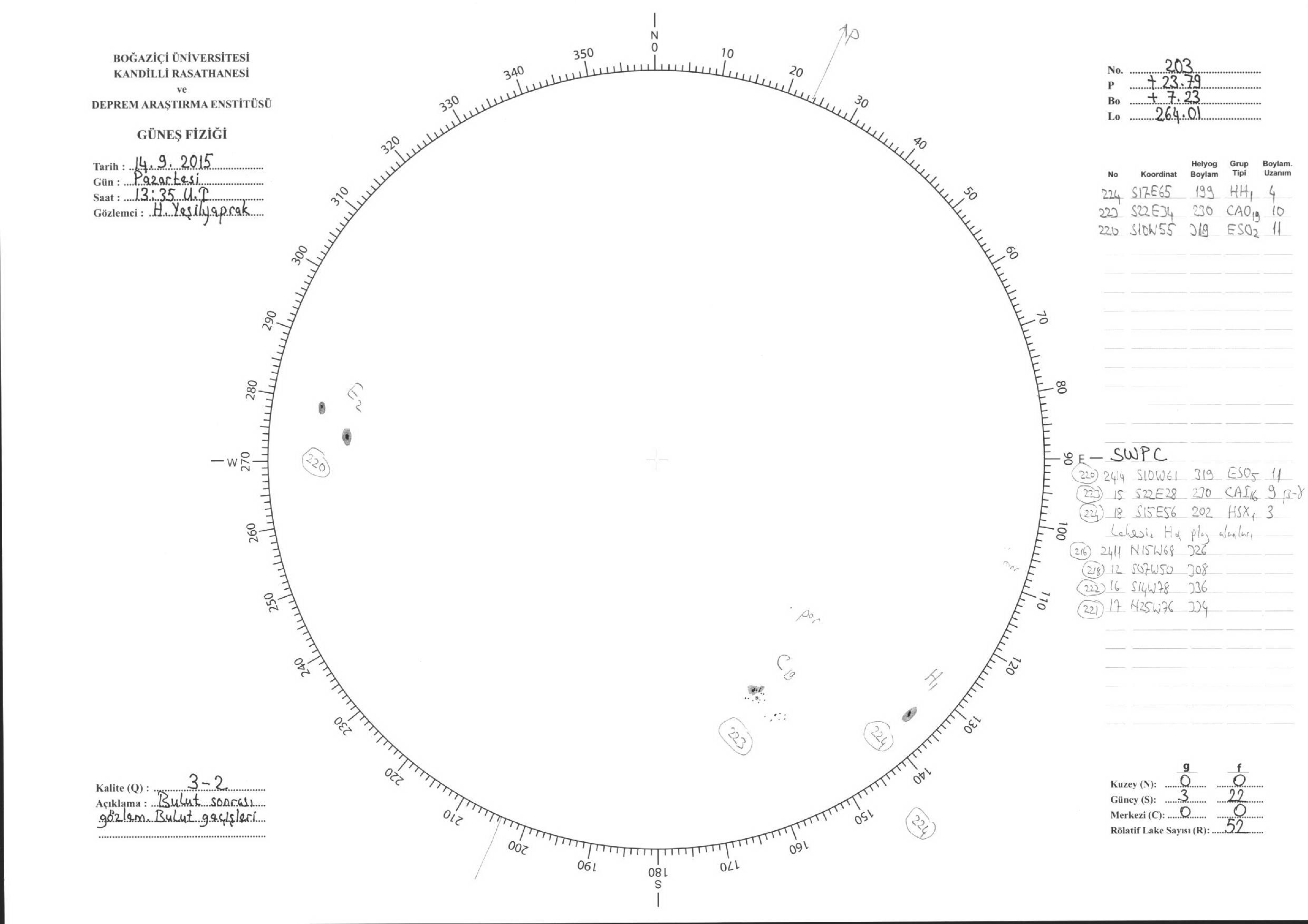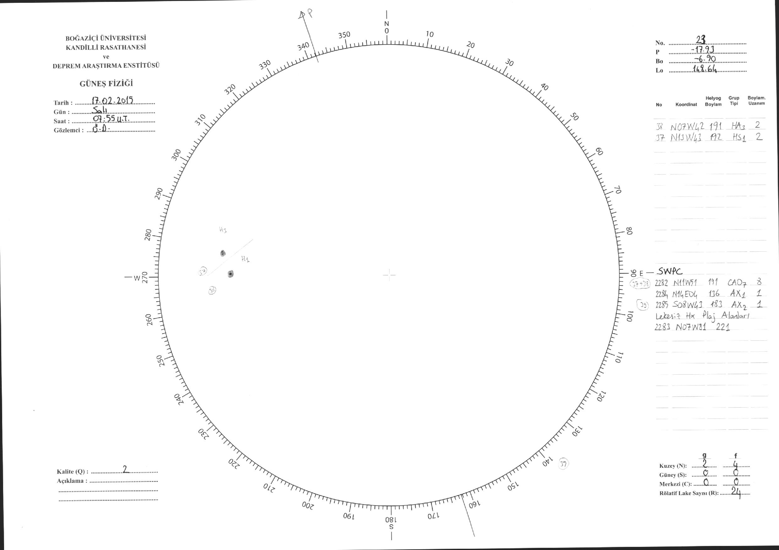 Güneş Lekesi Çizimleri / Kandilli Sunspot Drawings