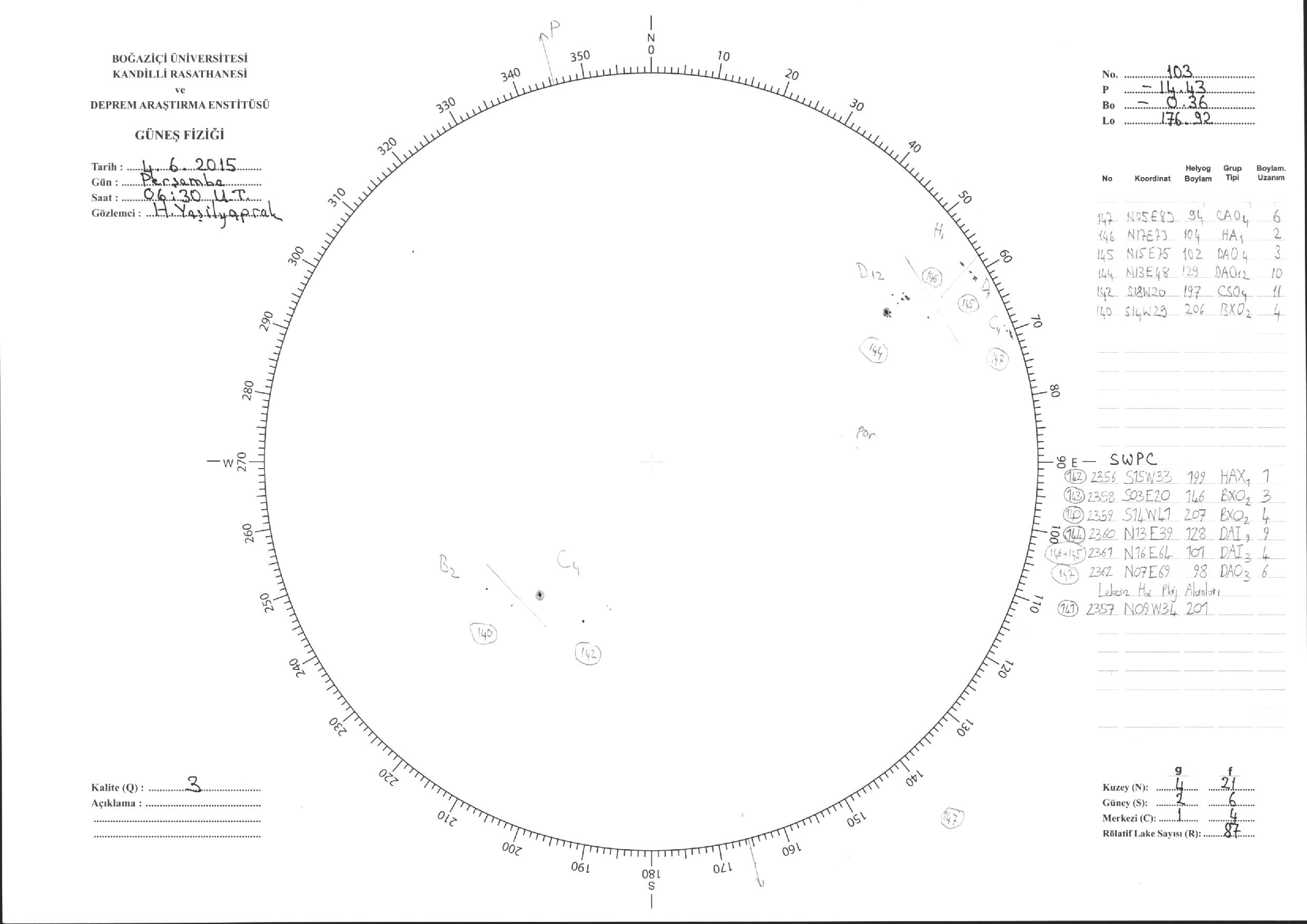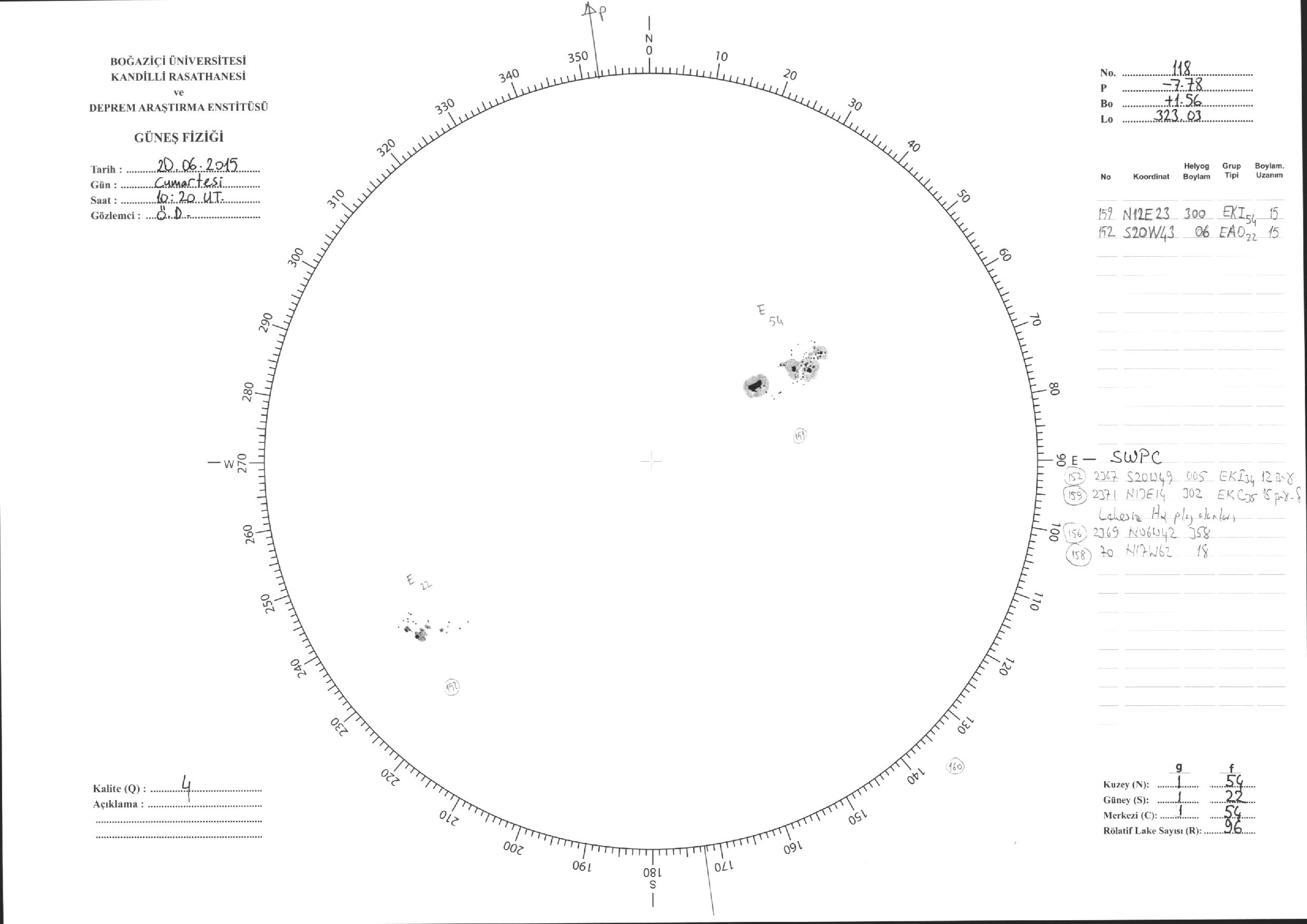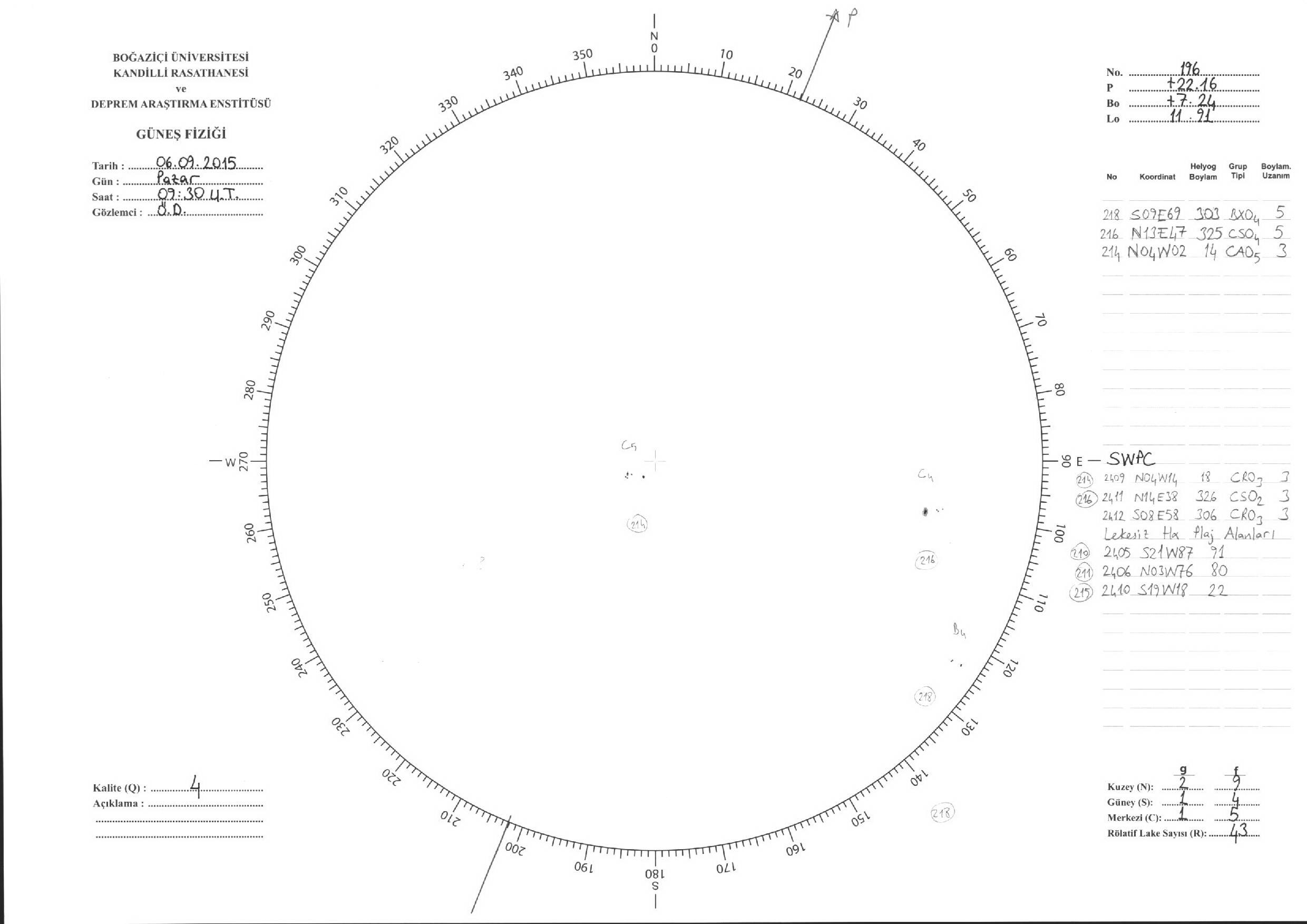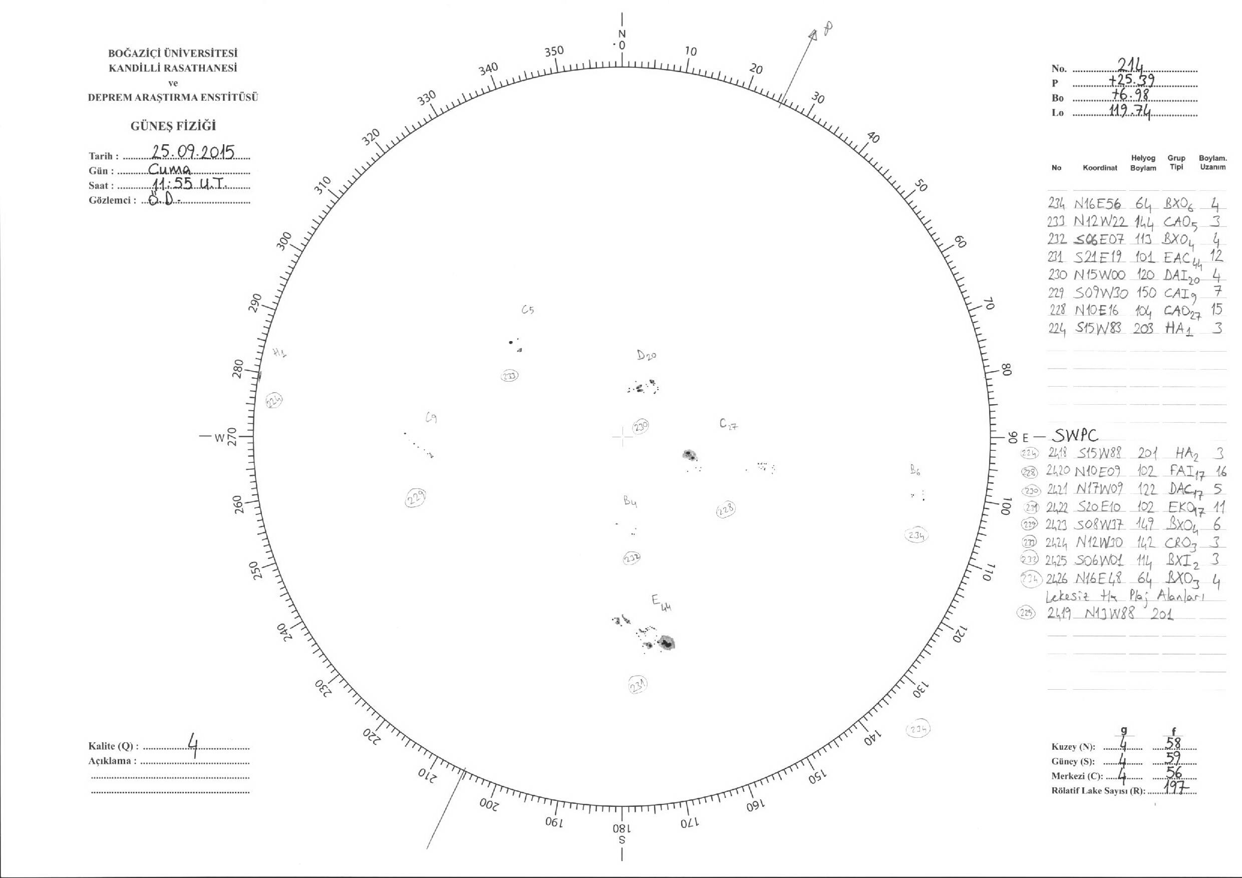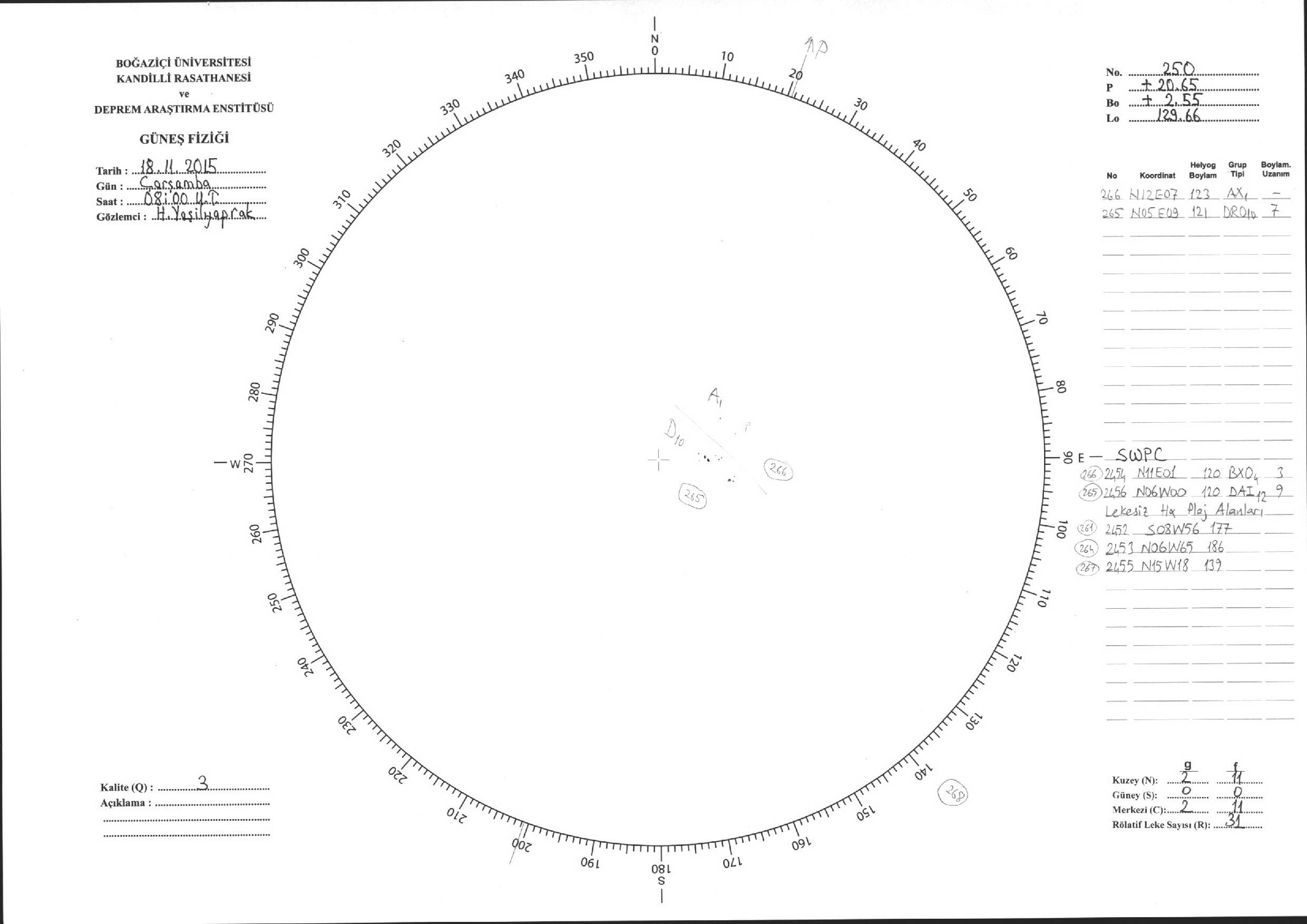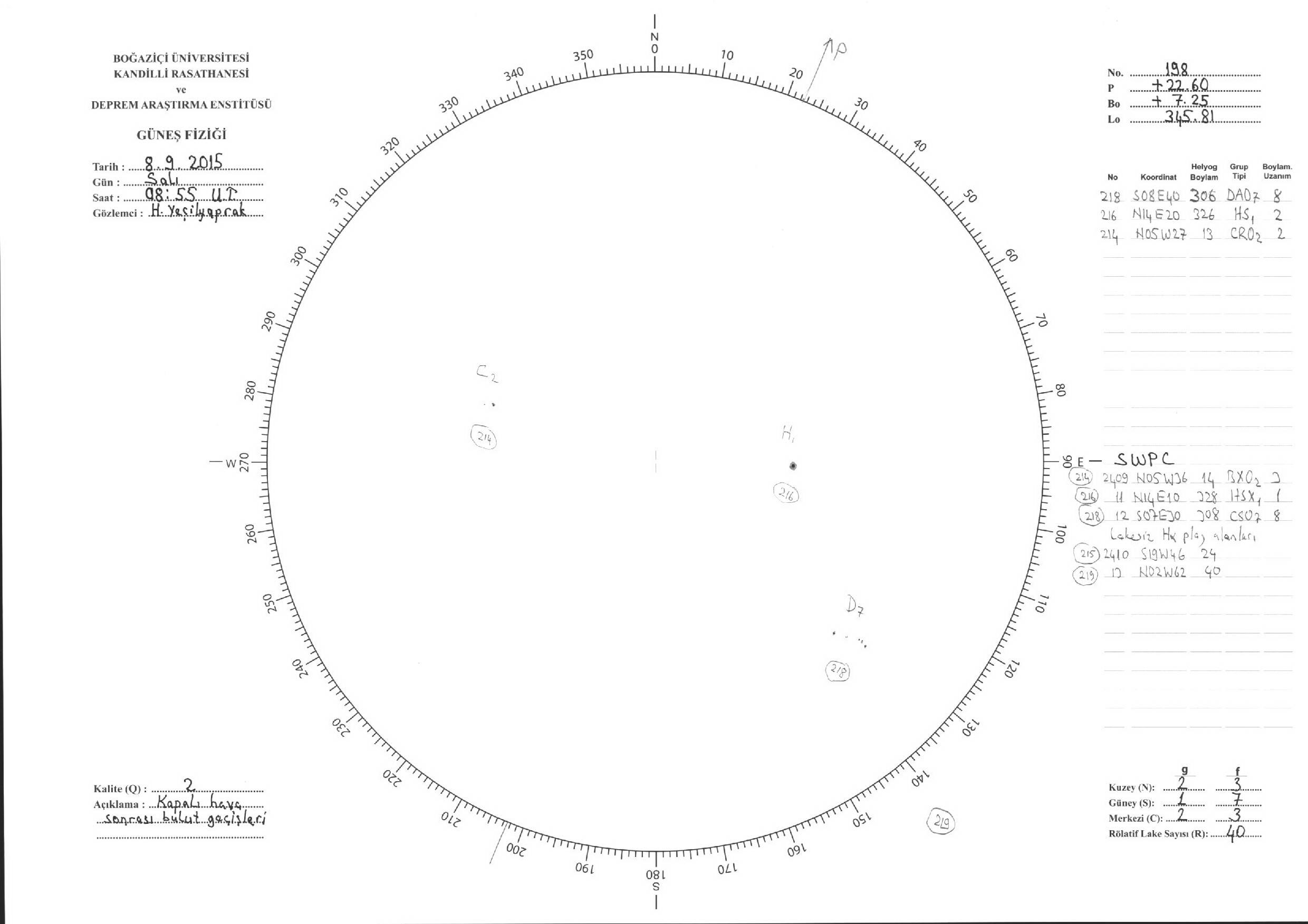 Güneş Lekesi Çizimleri / Kandilli Sunspot Drawings