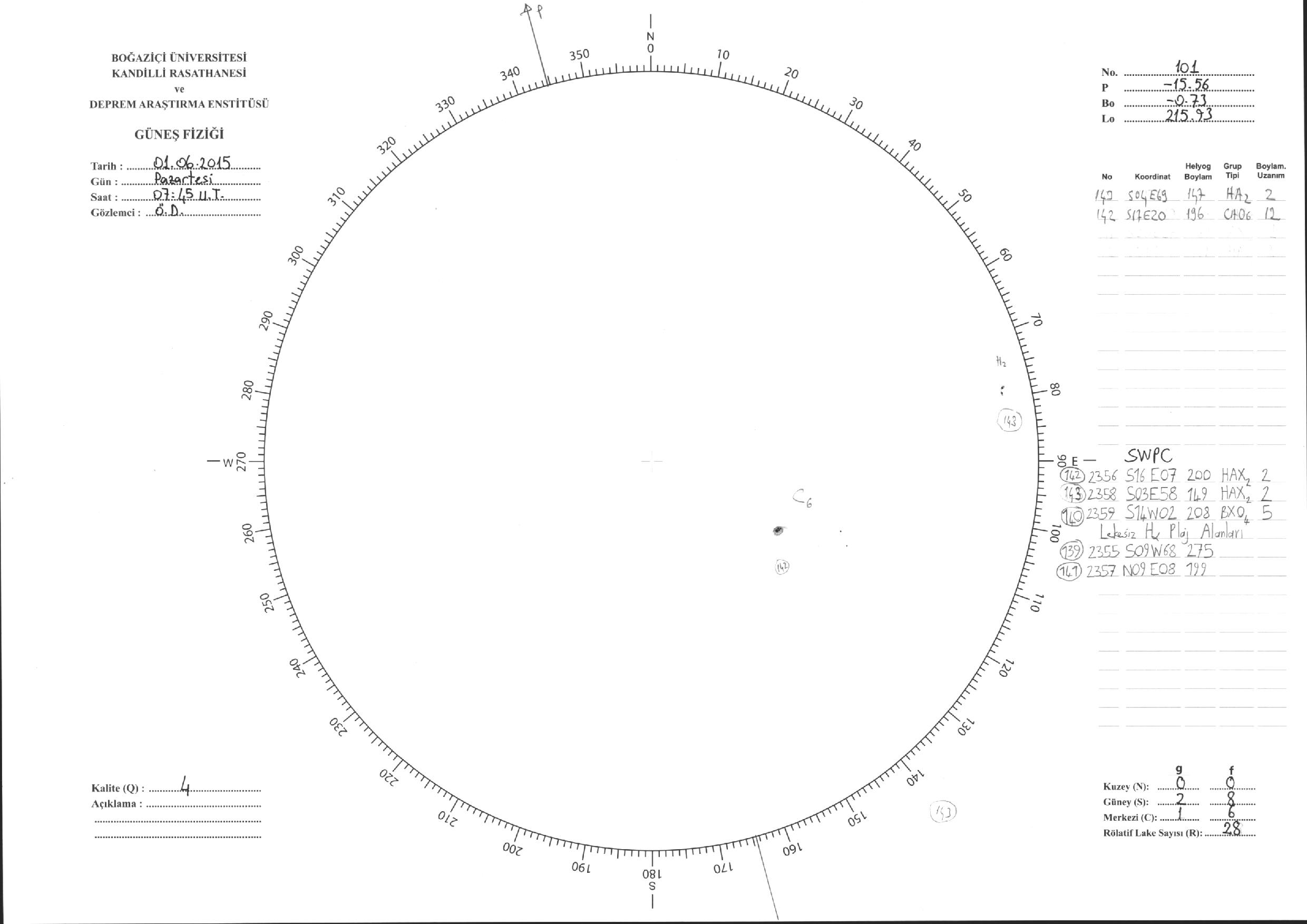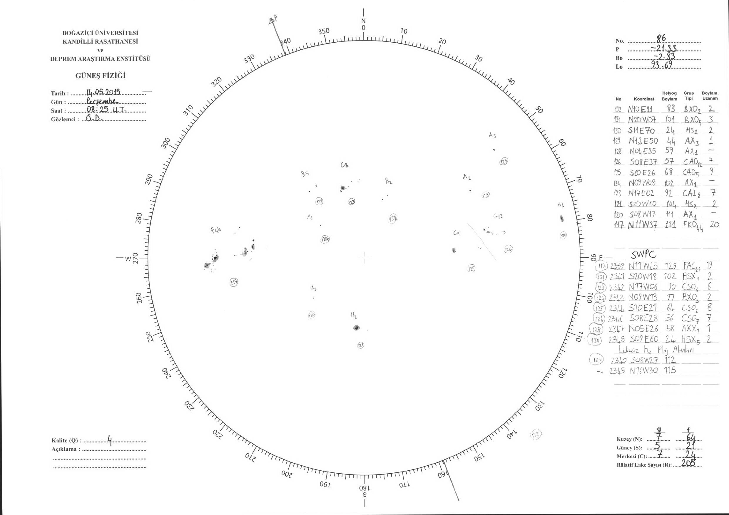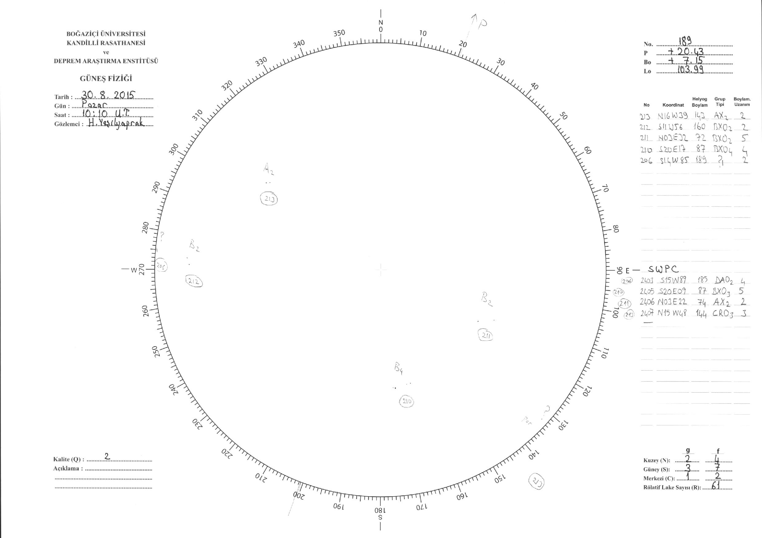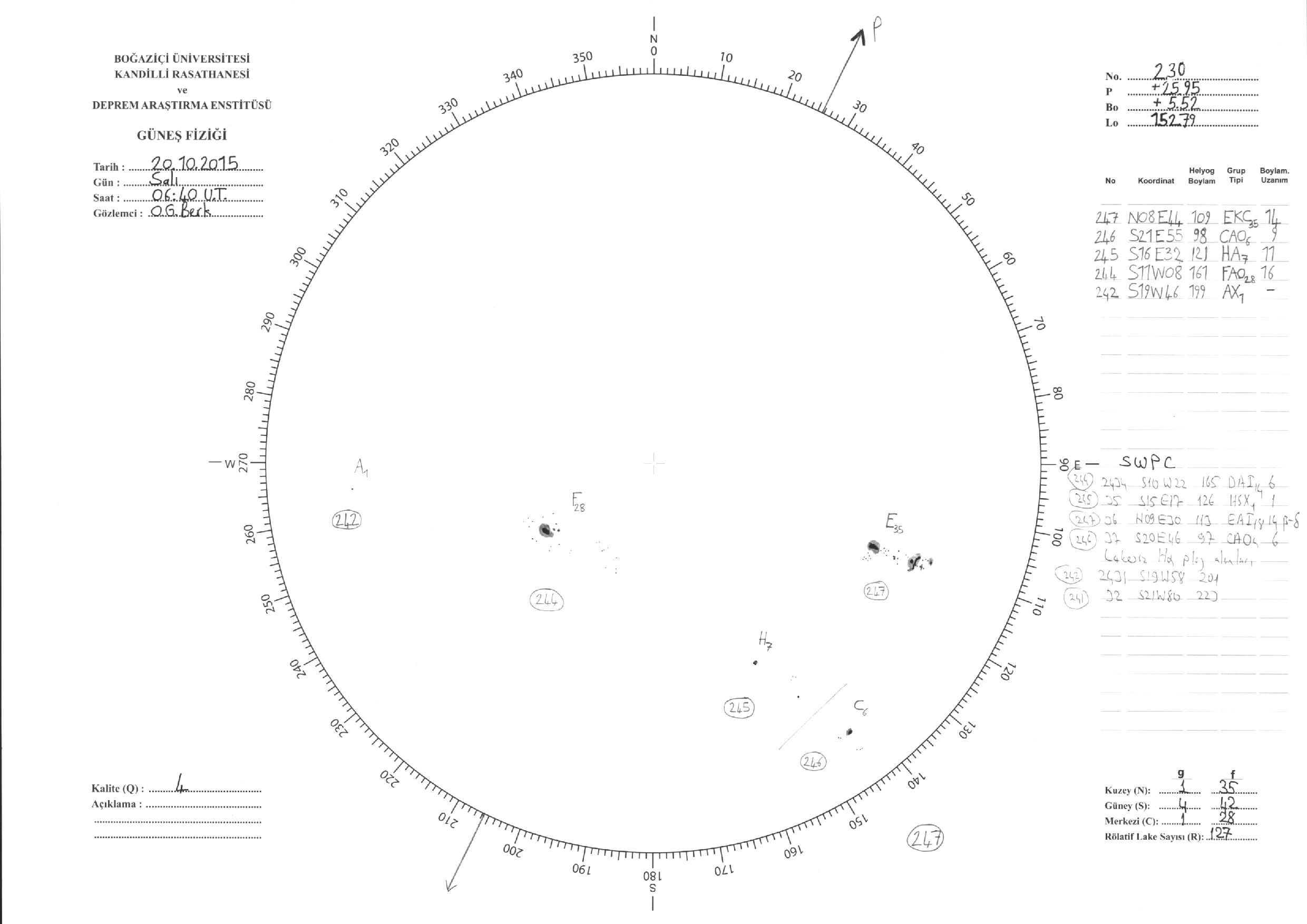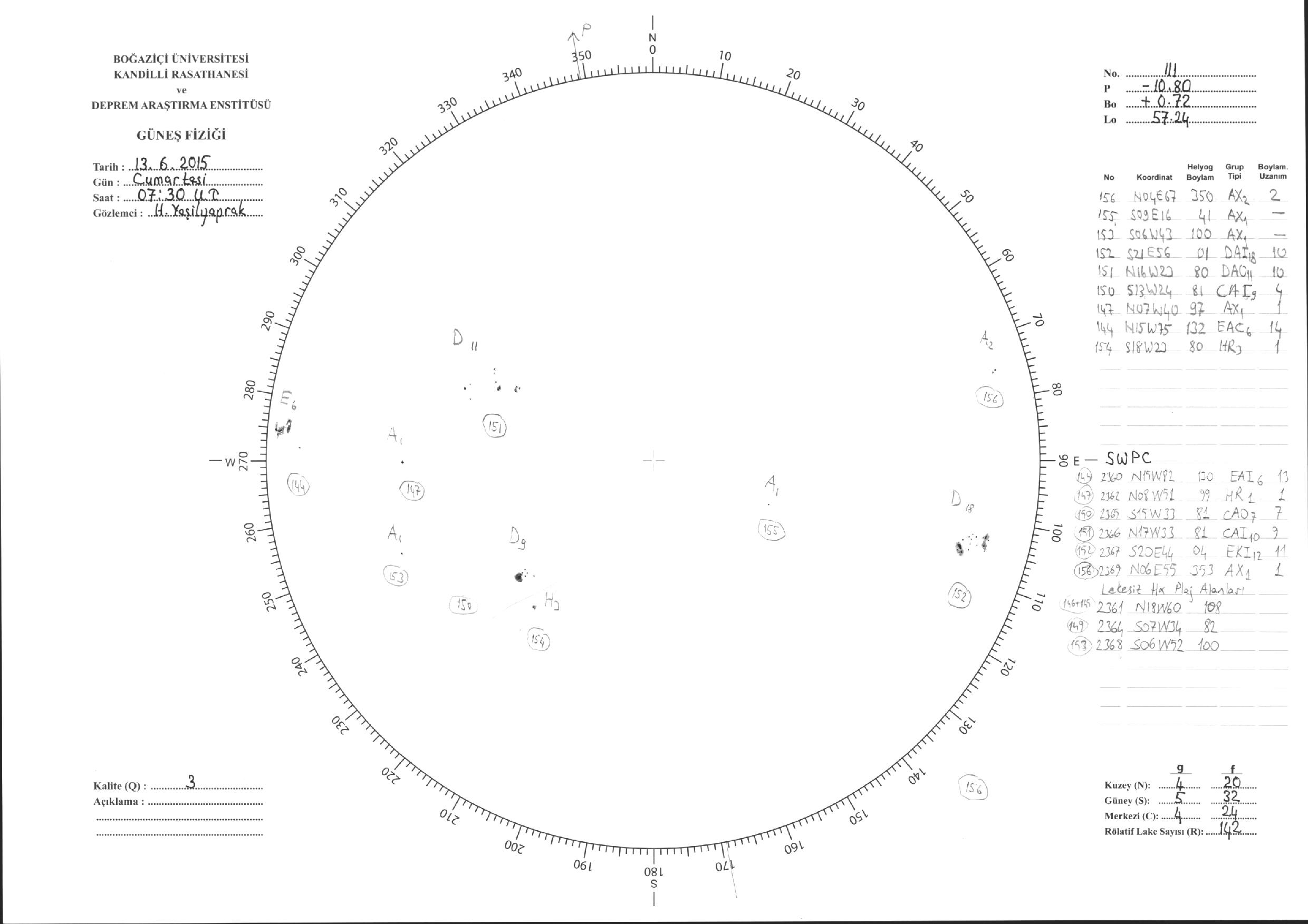 Güneş Lekesi Çizimleri / Kandilli Sunspot Drawings