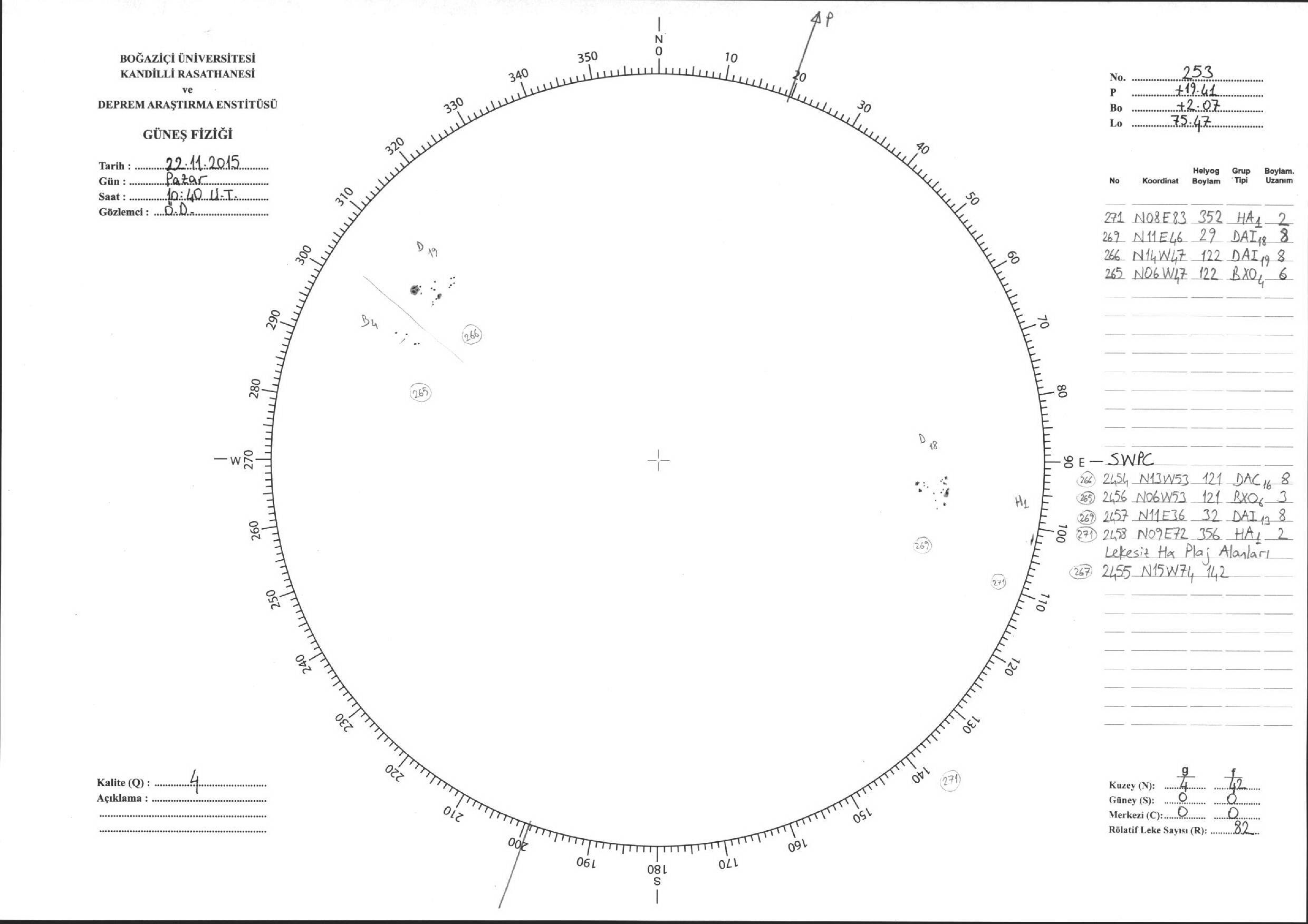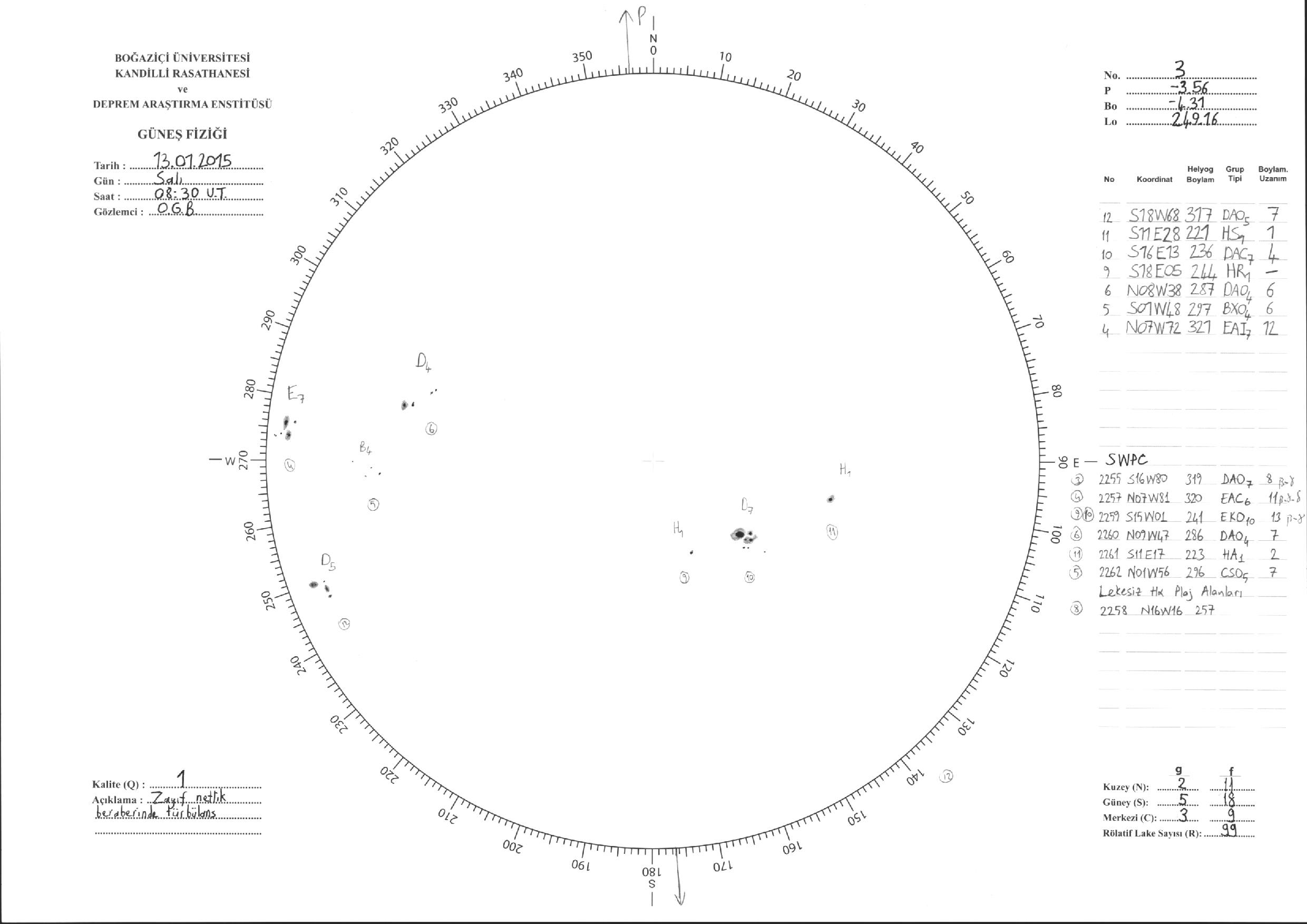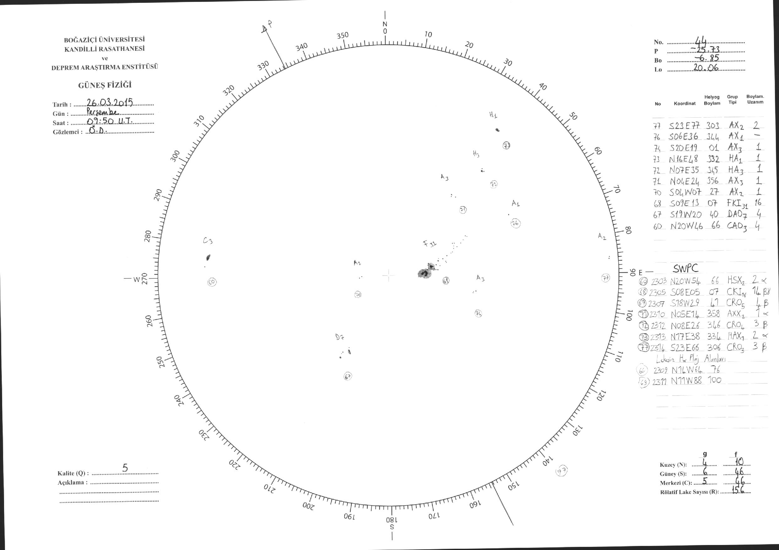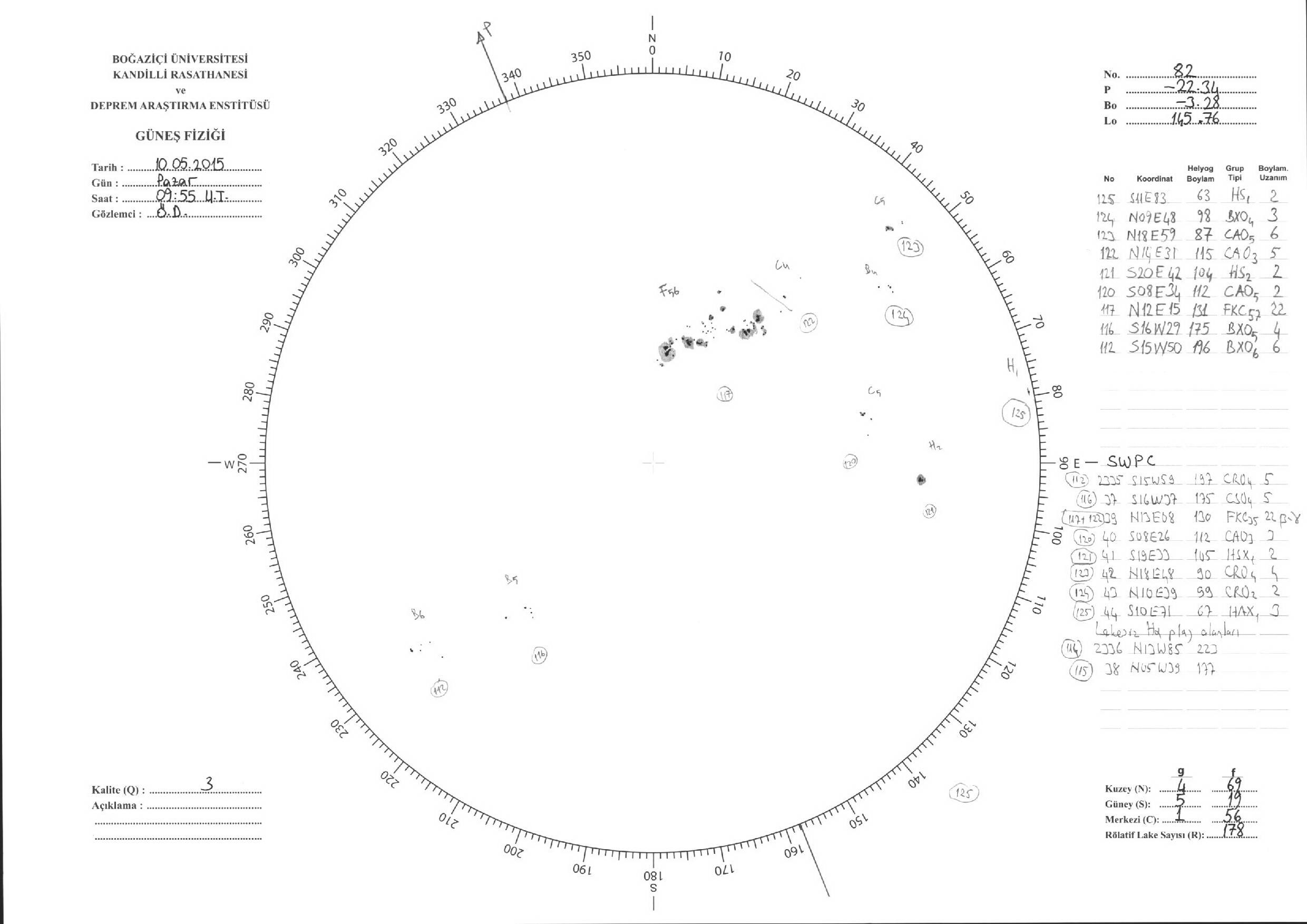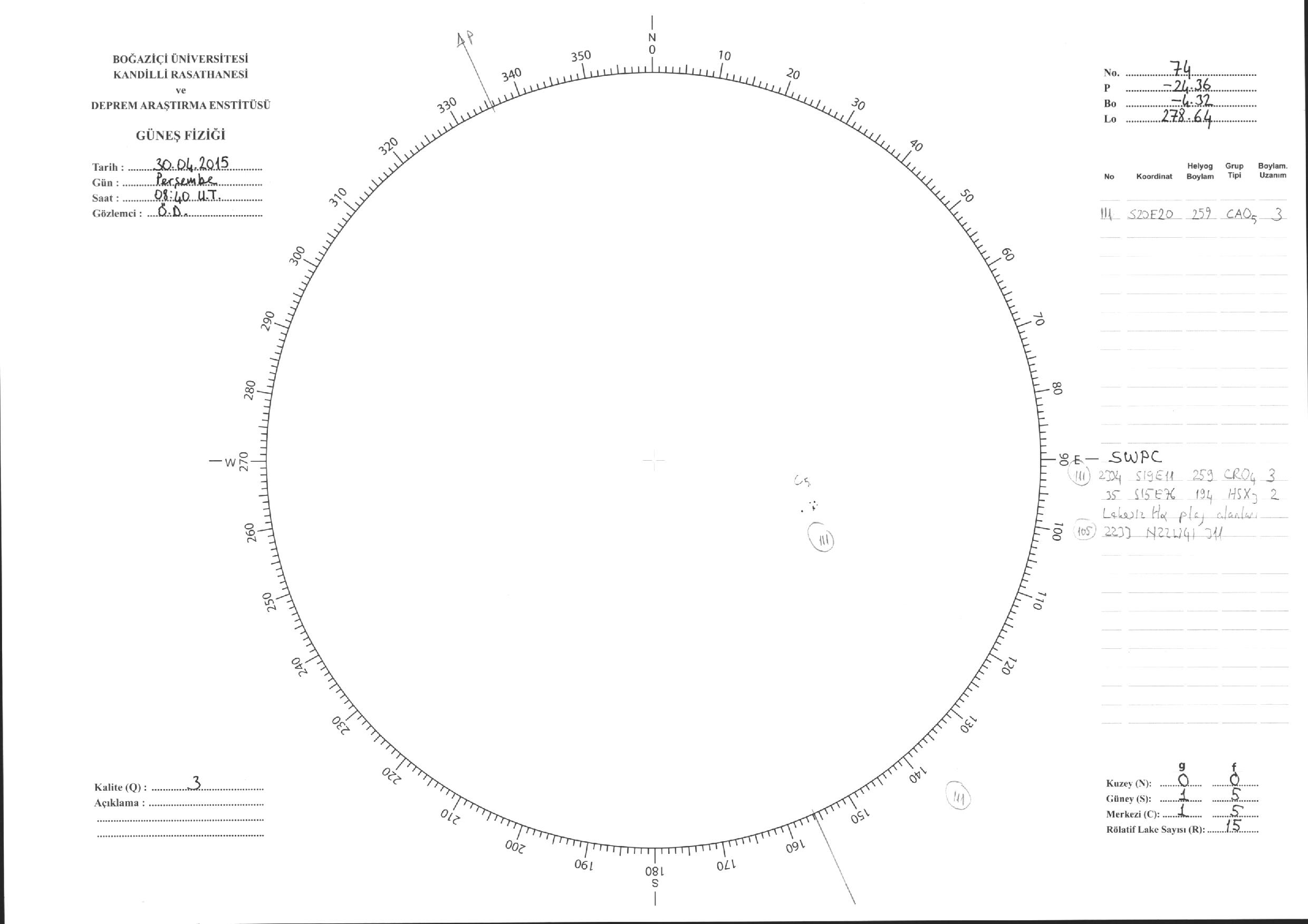 Güneş Lekesi Çizimleri / Kandilli Sunspot Drawings