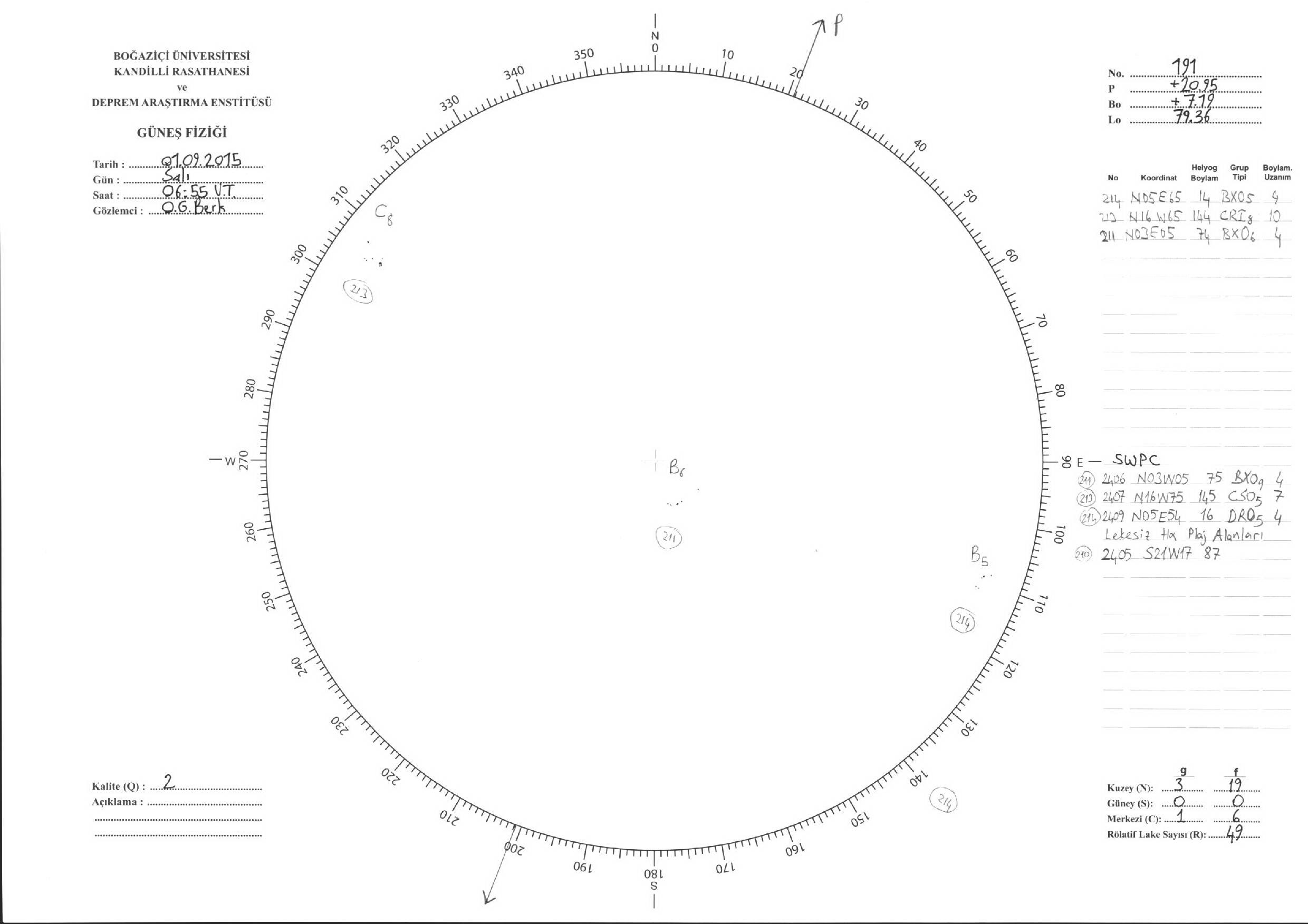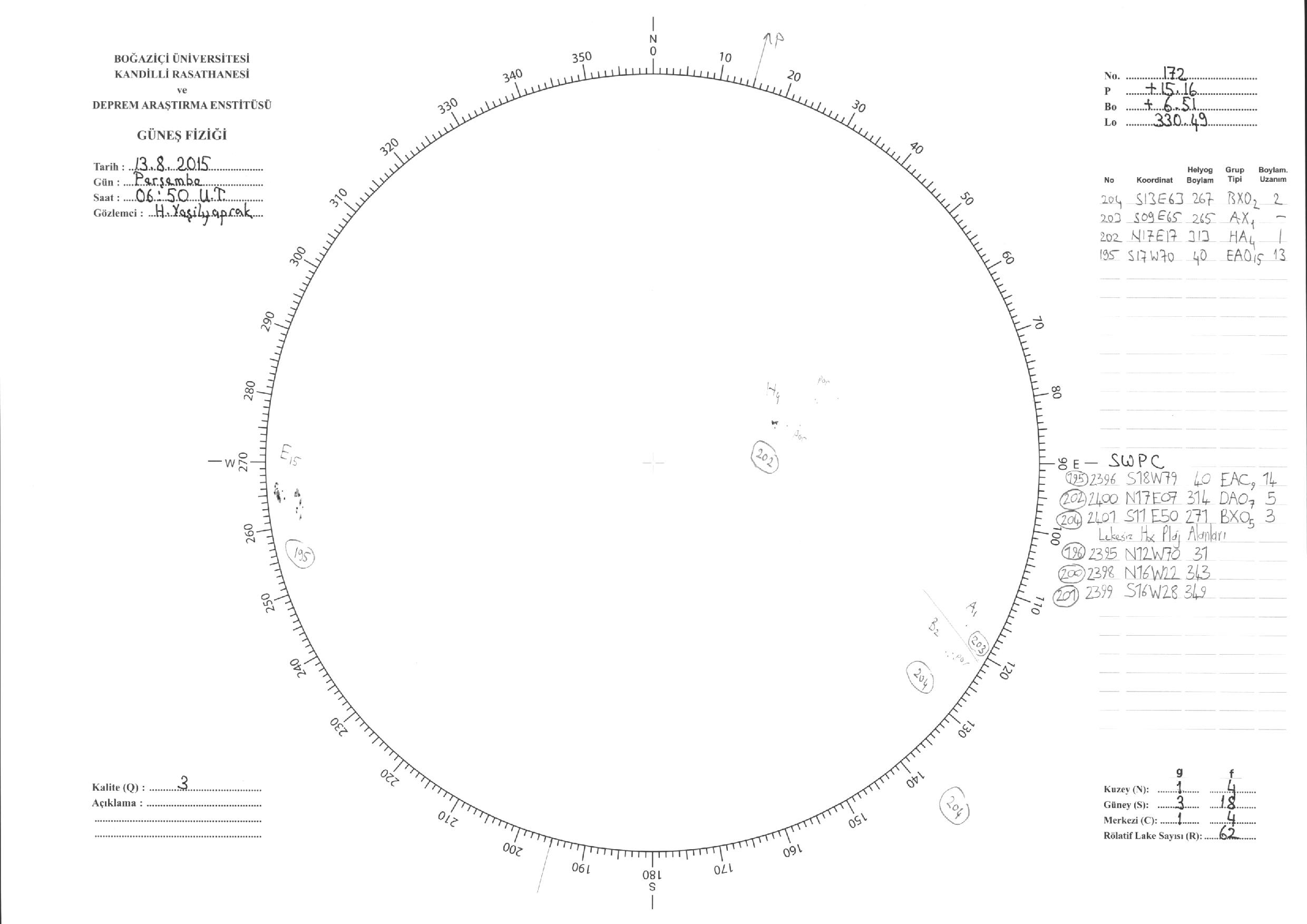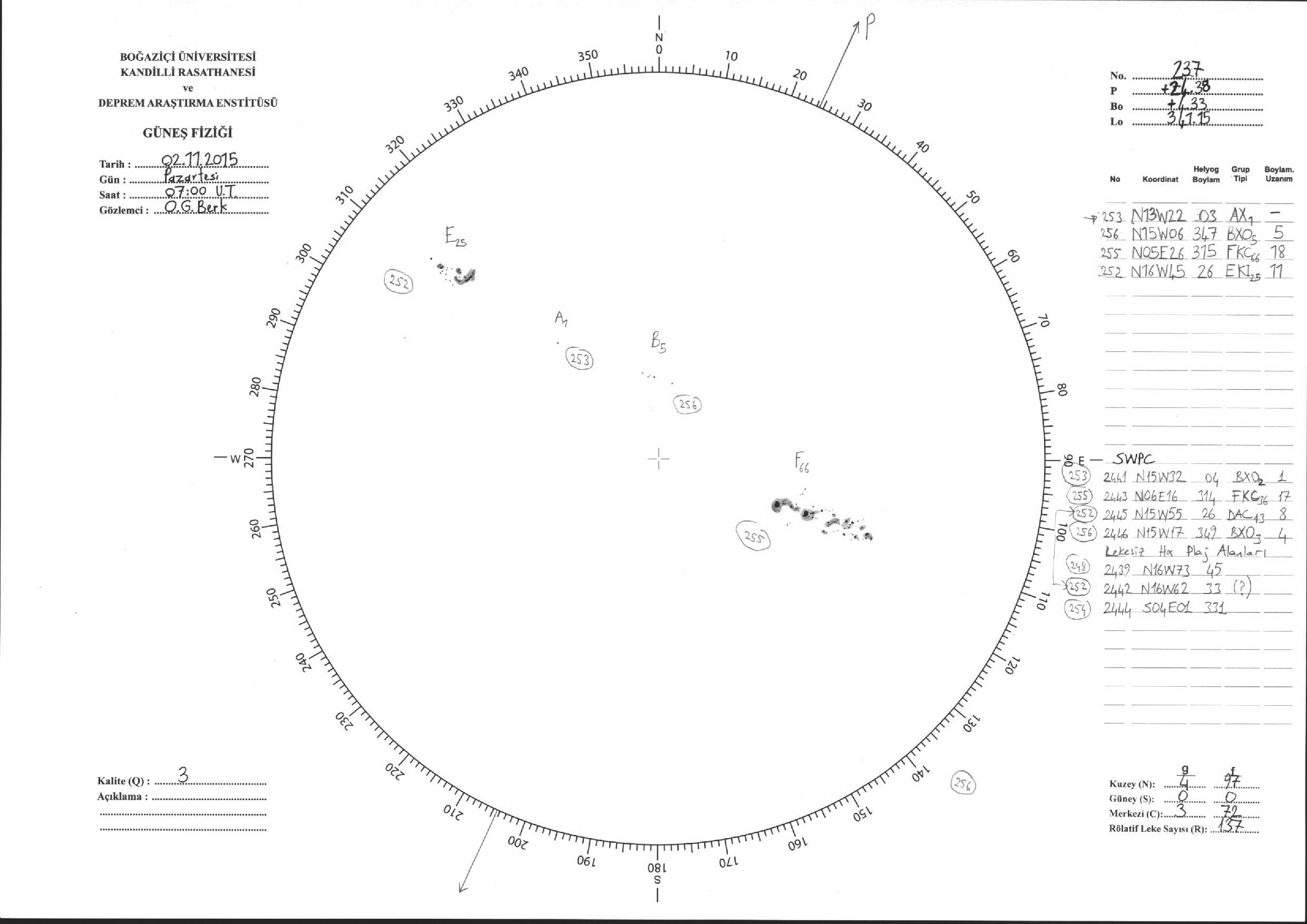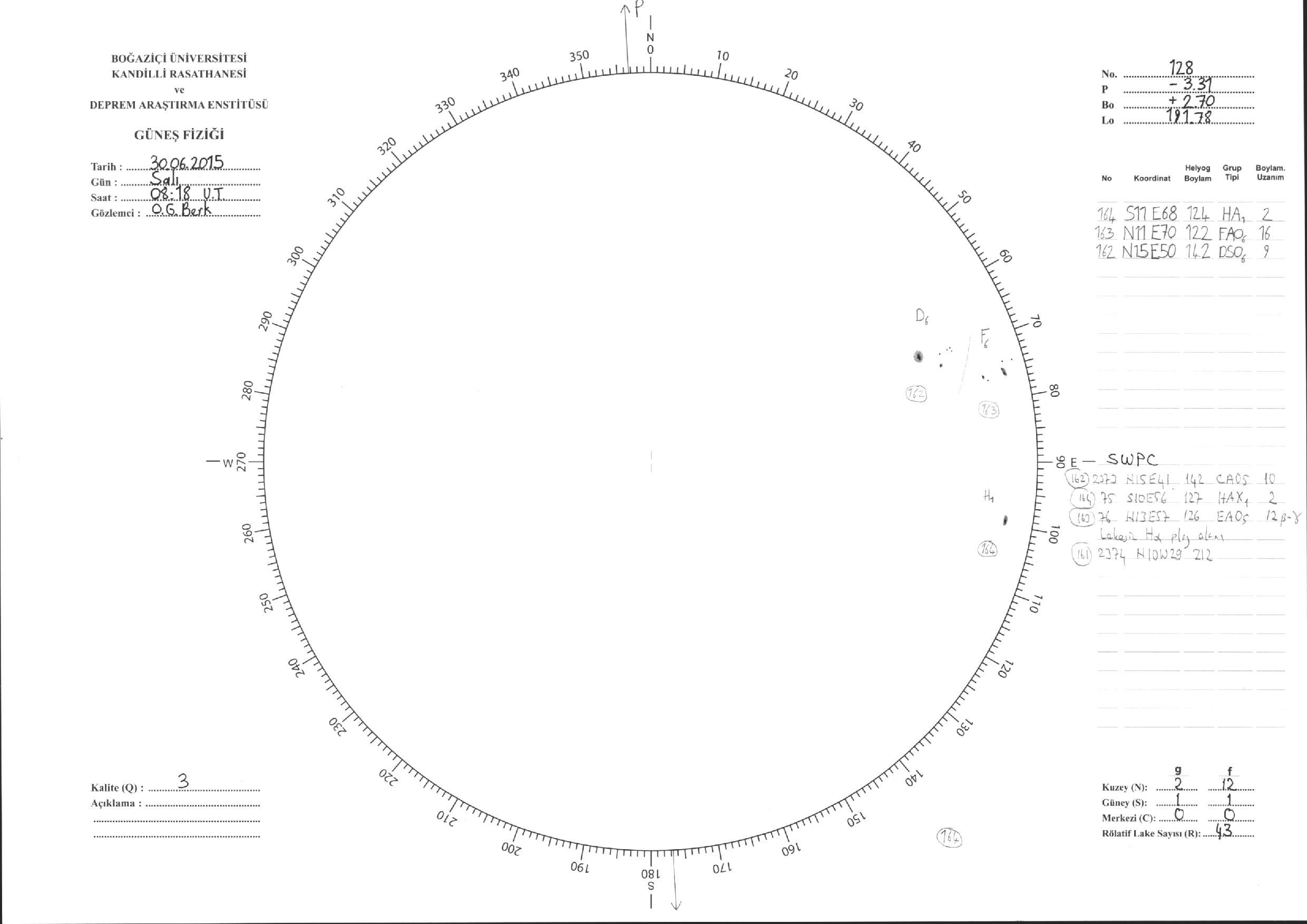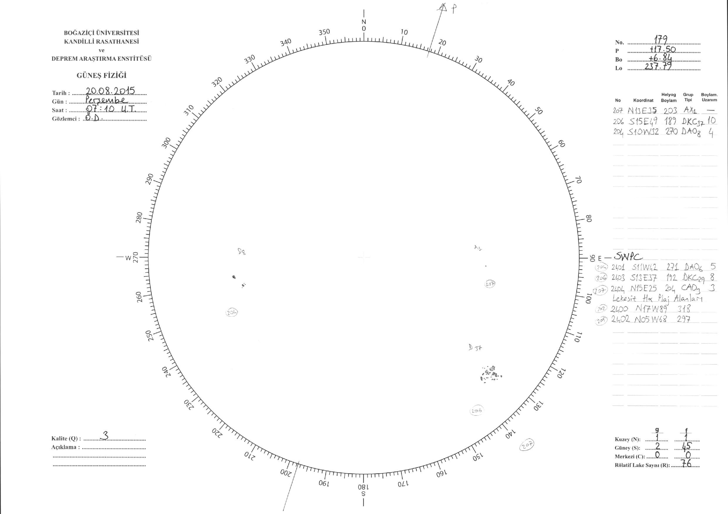 Güneş Lekesi Çizimleri / Kandilli Sunspot Drawings