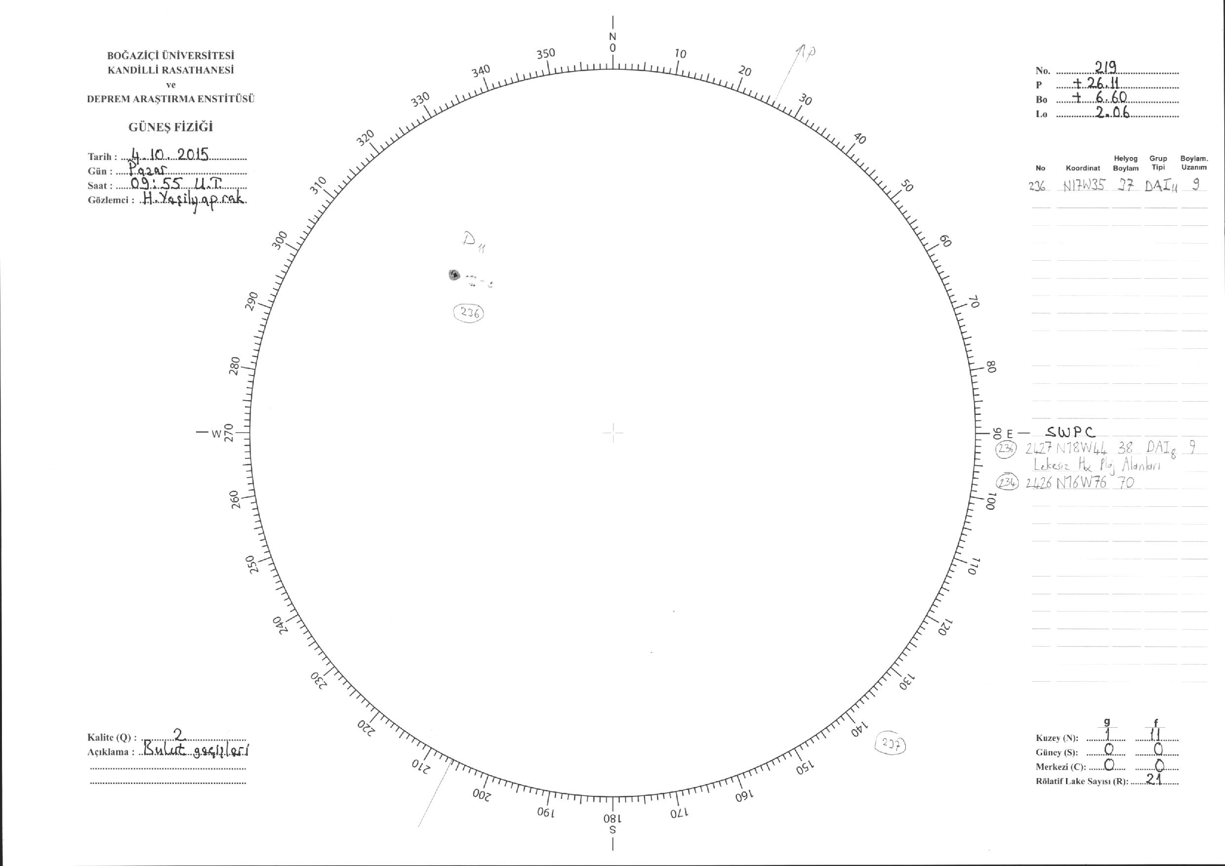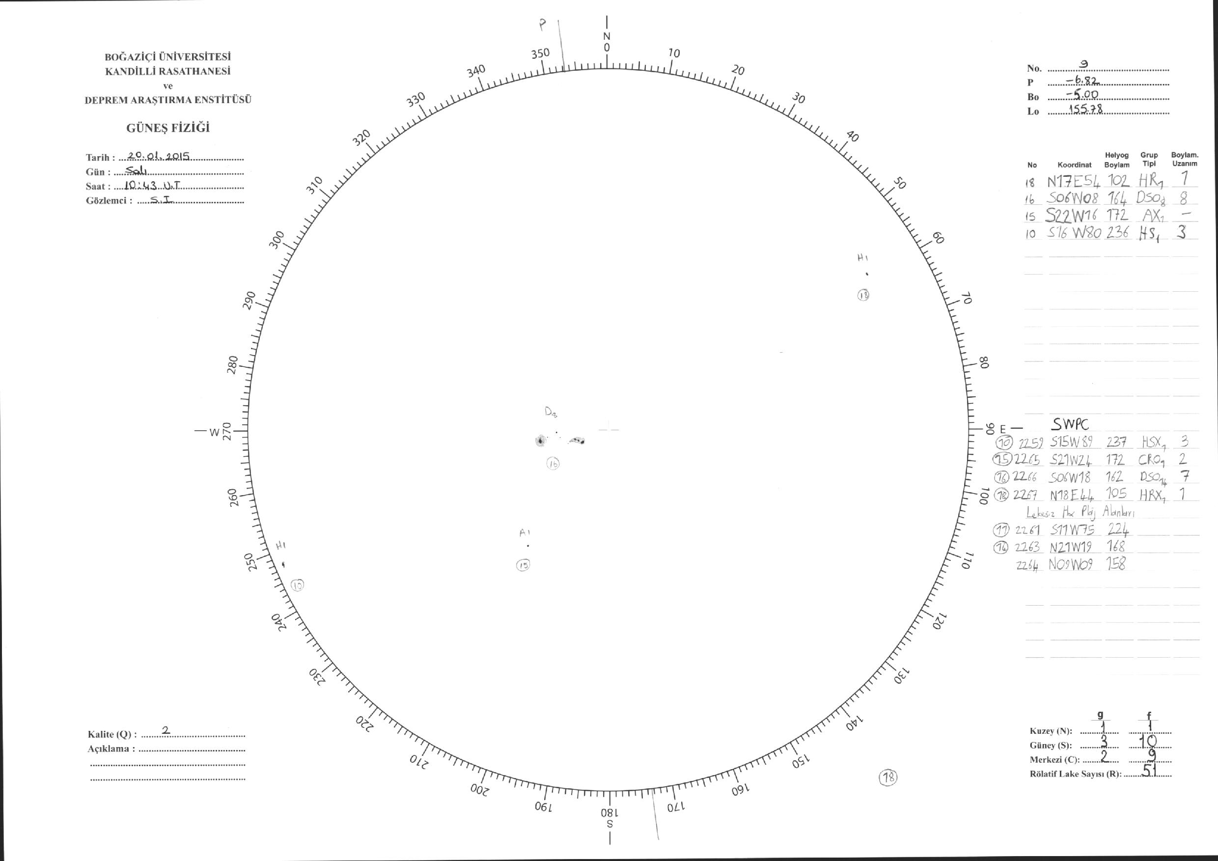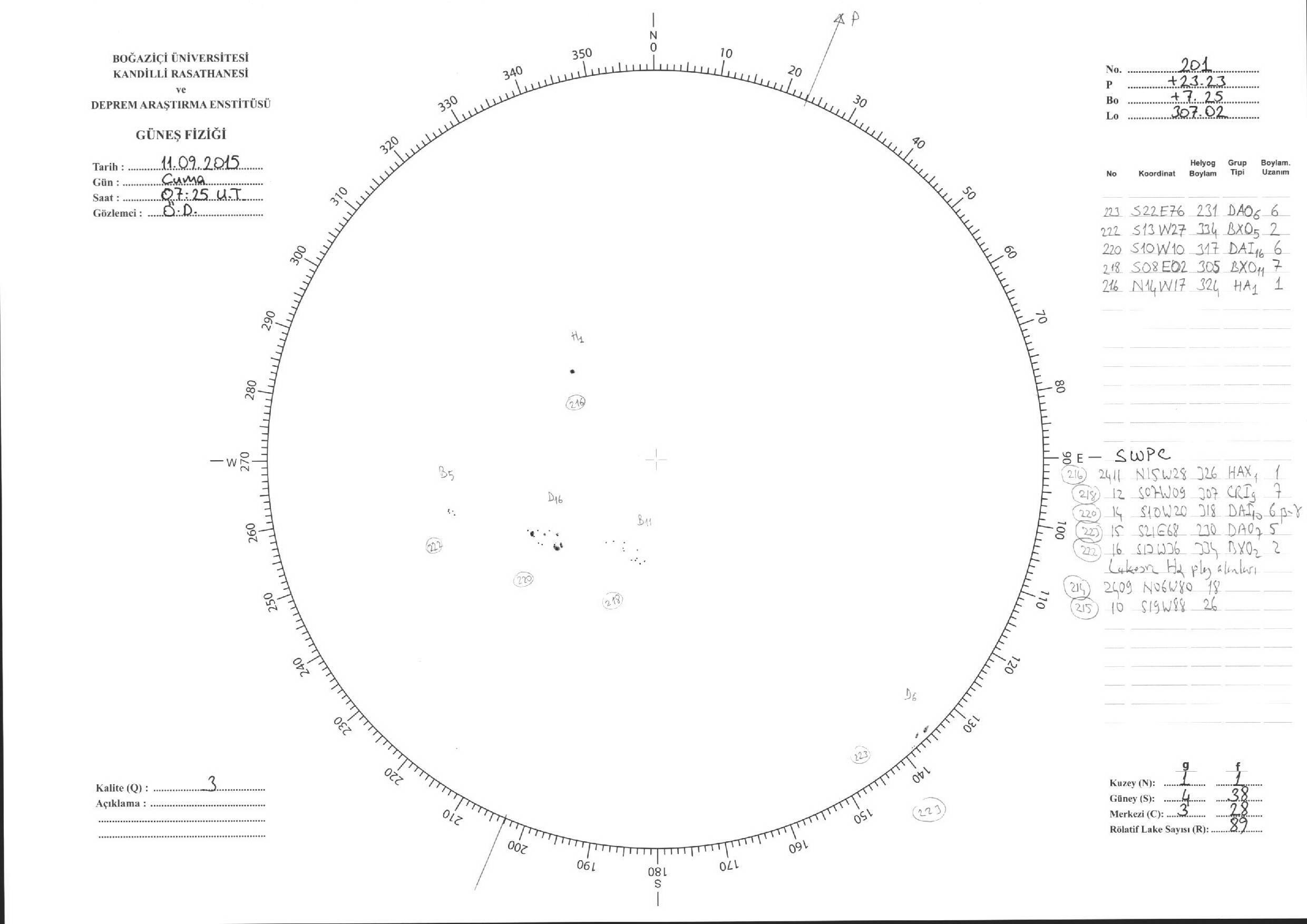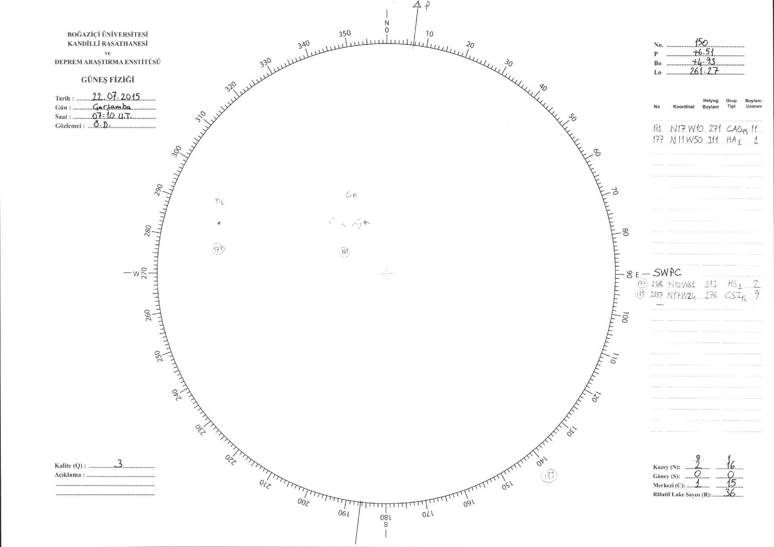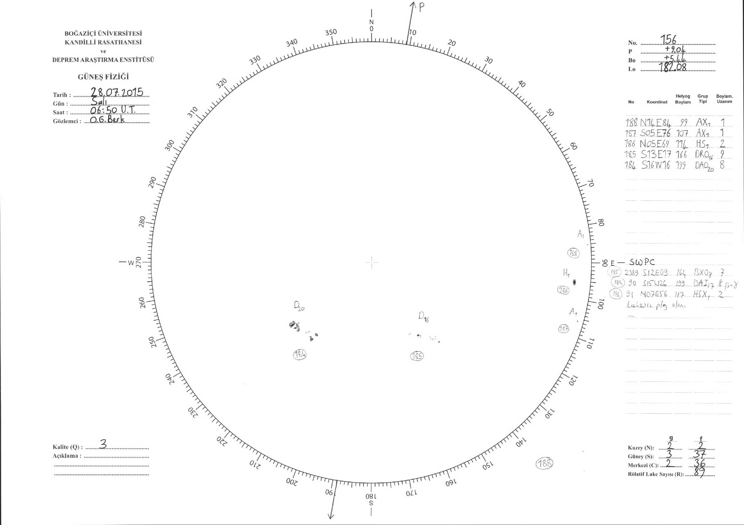 Güneş Lekesi Çizimleri / Kandilli Sunspot Drawings