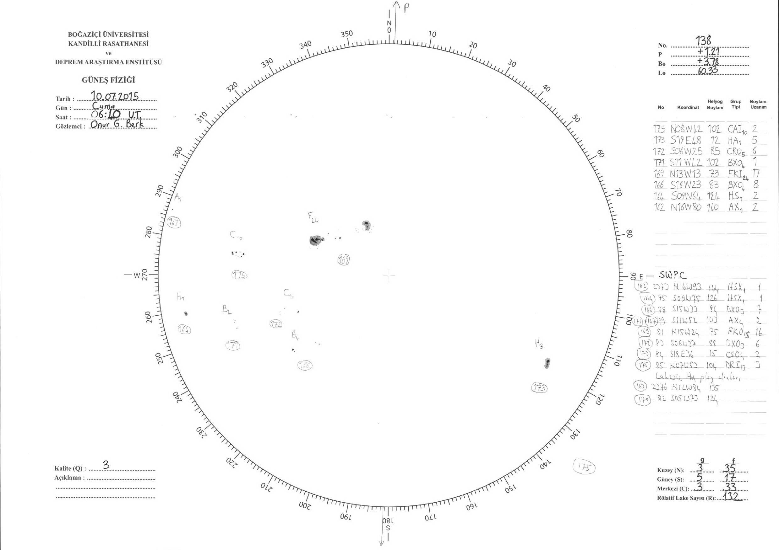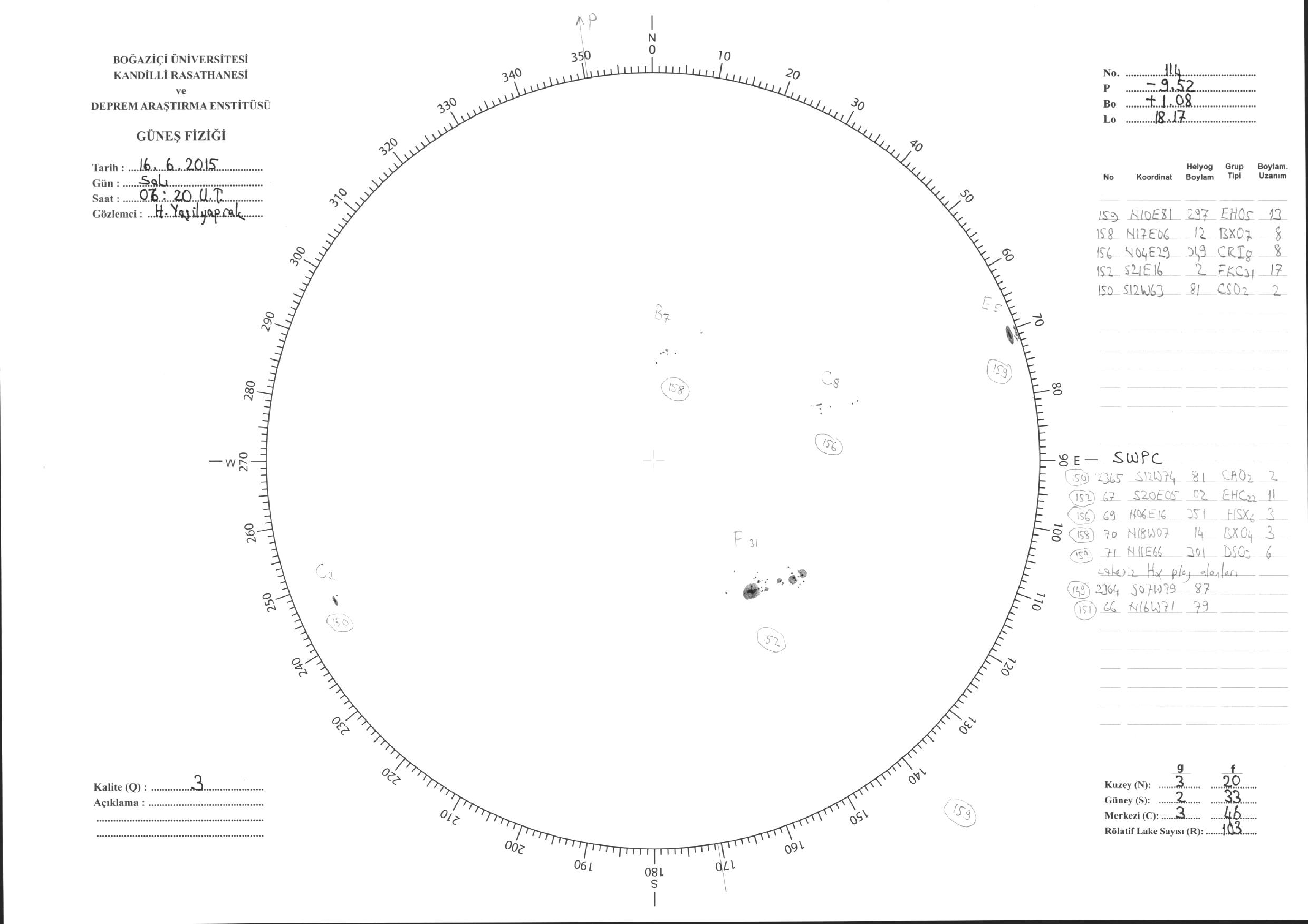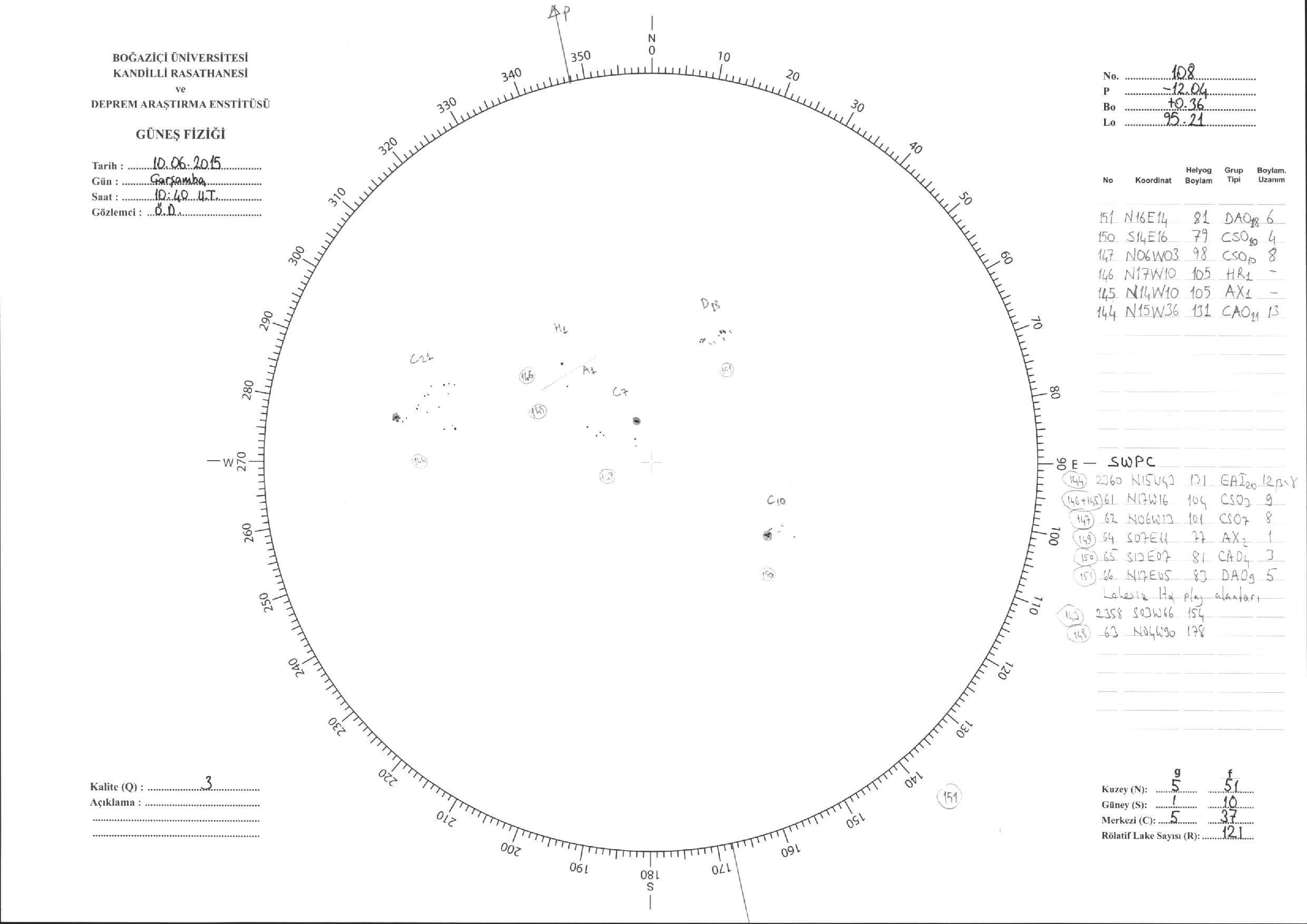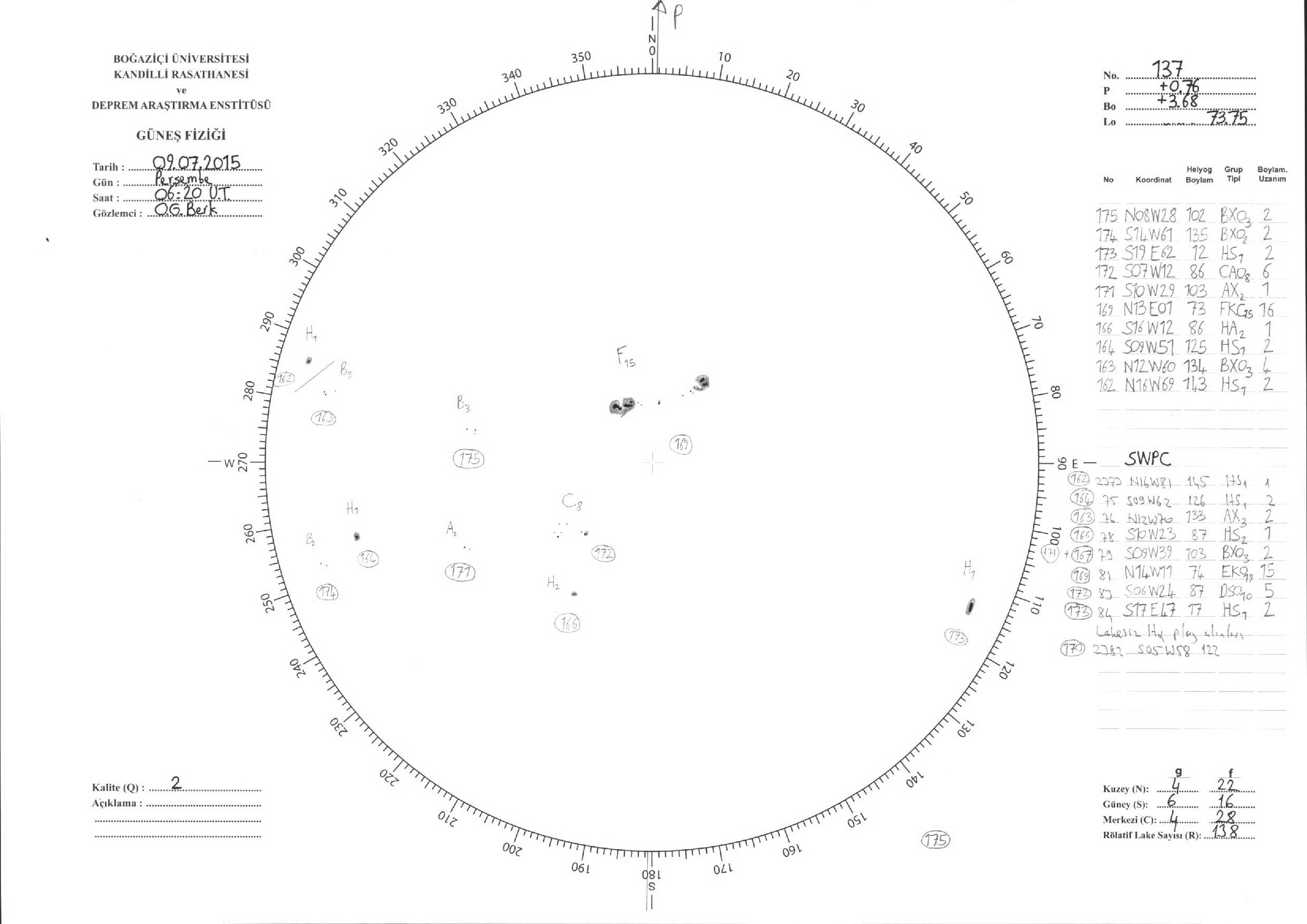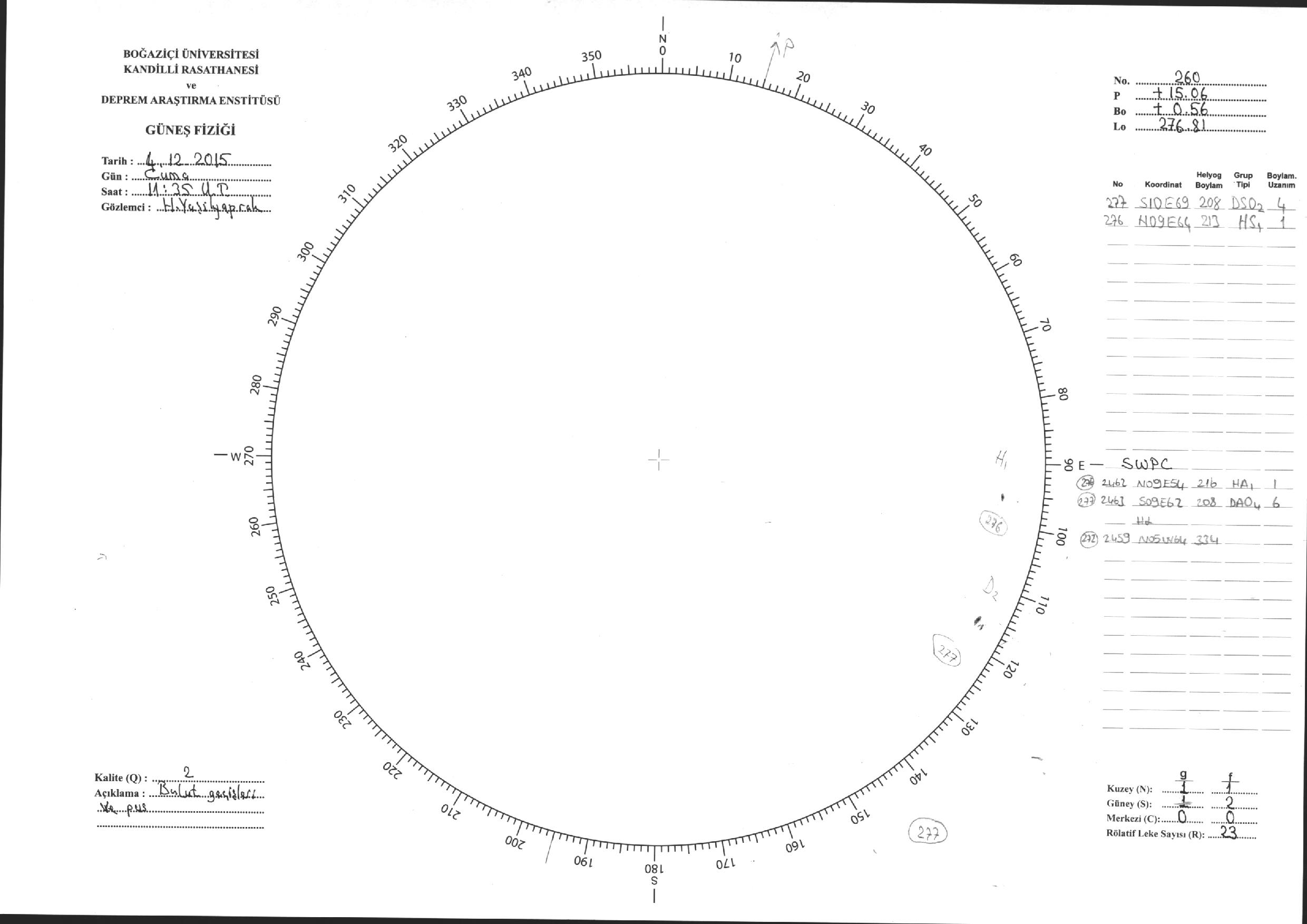 Güneş Lekesi Çizimleri / Kandilli Sunspot Drawings