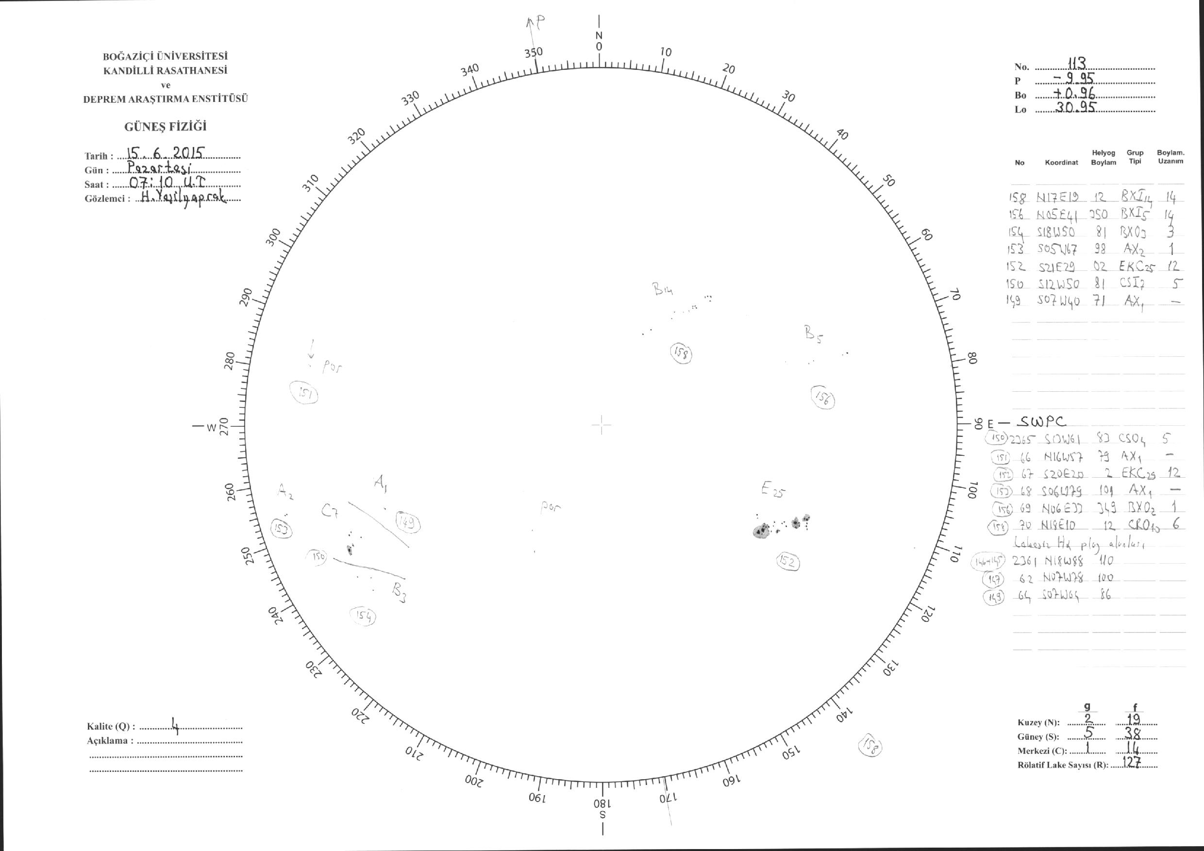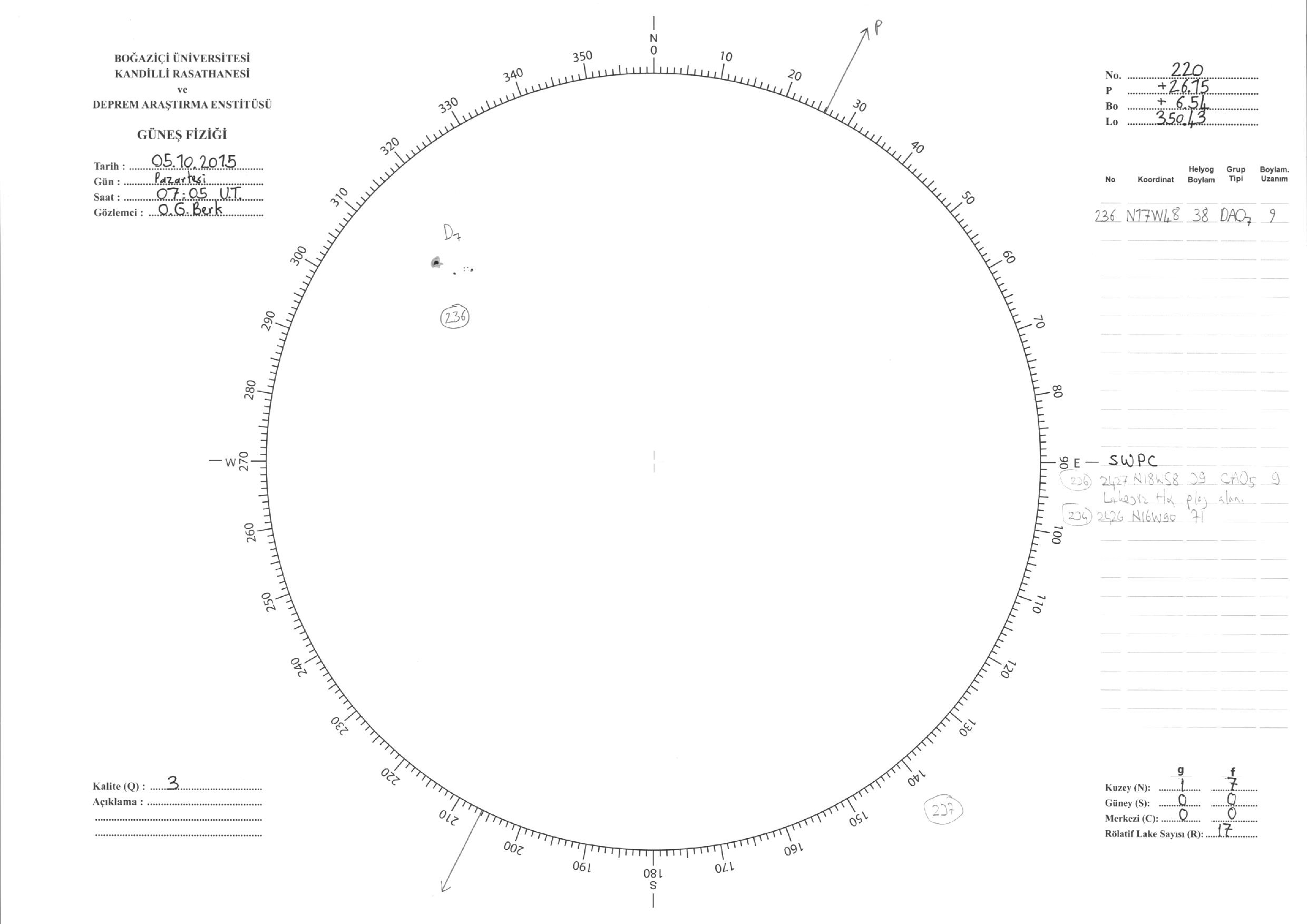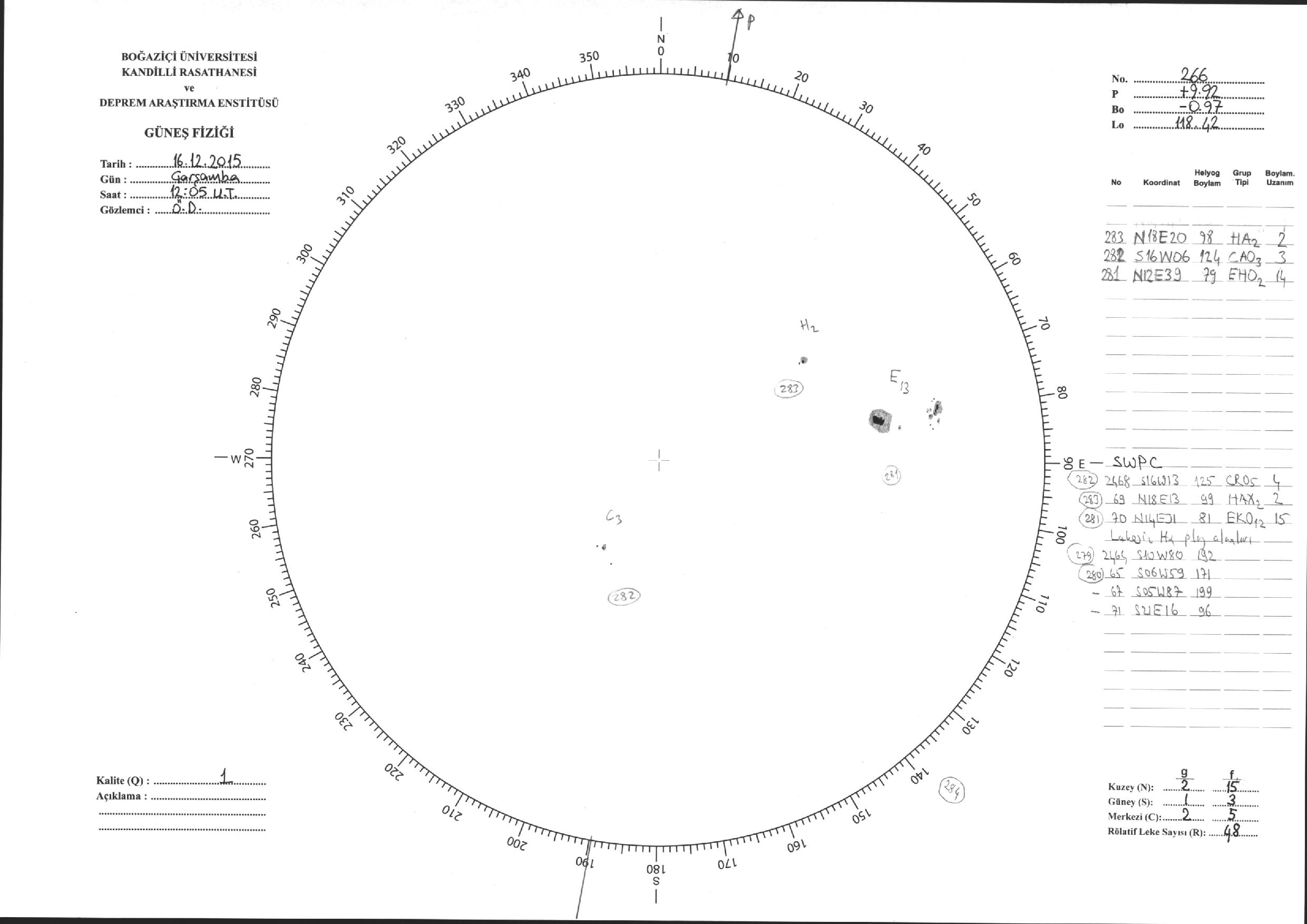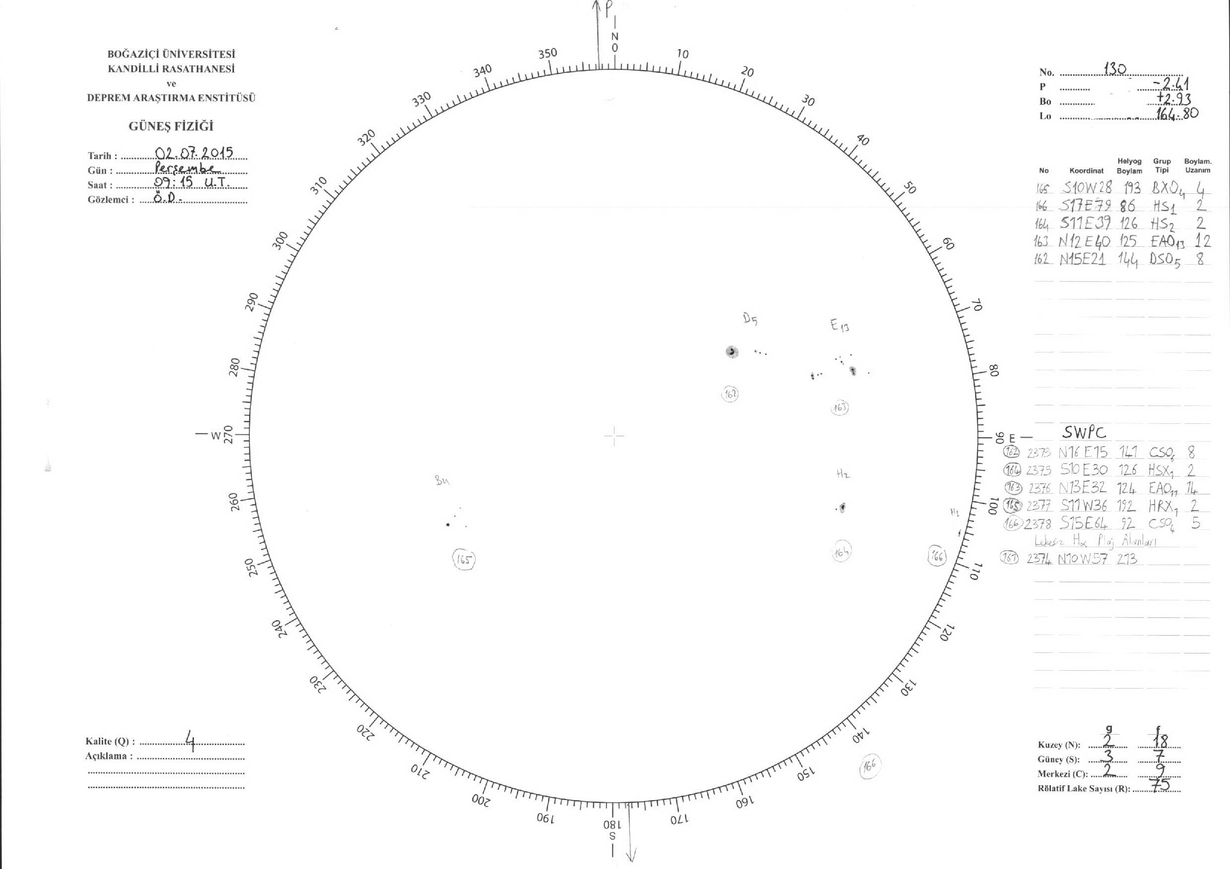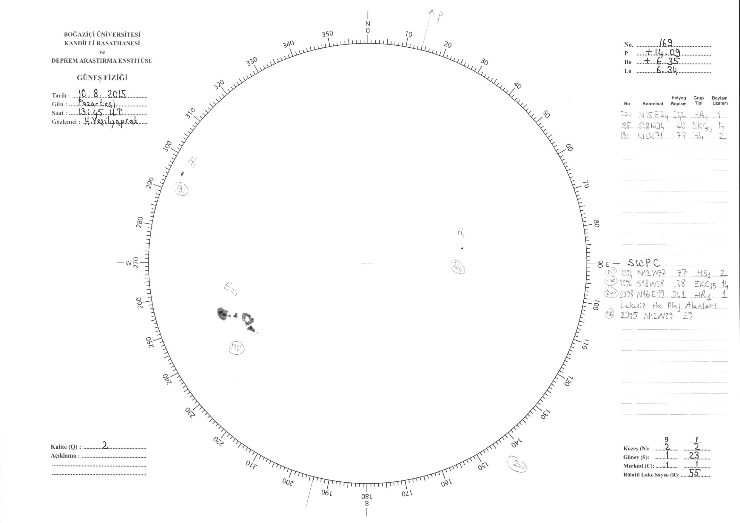 Güneş Lekesi Çizimleri / Kandilli Sunspot Drawings