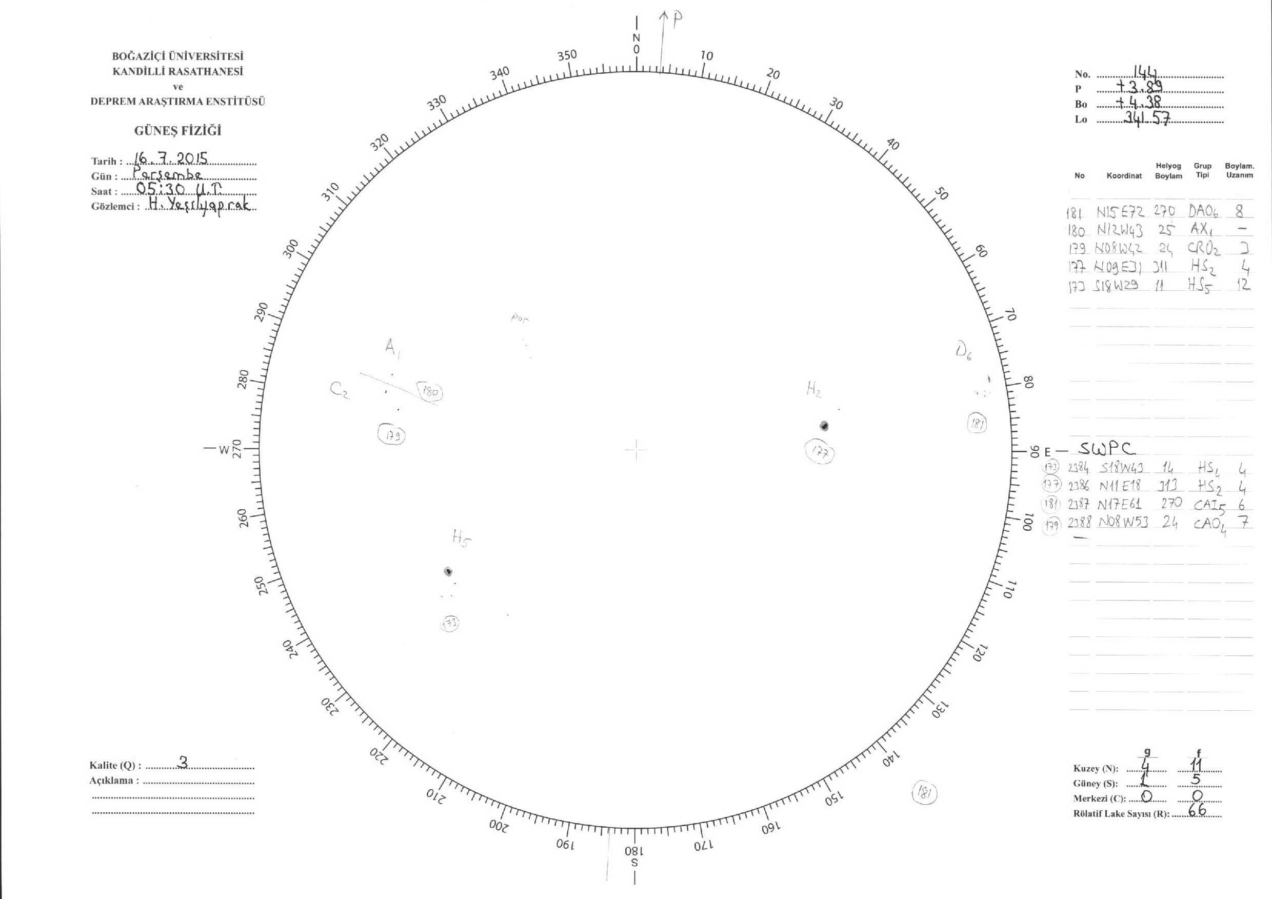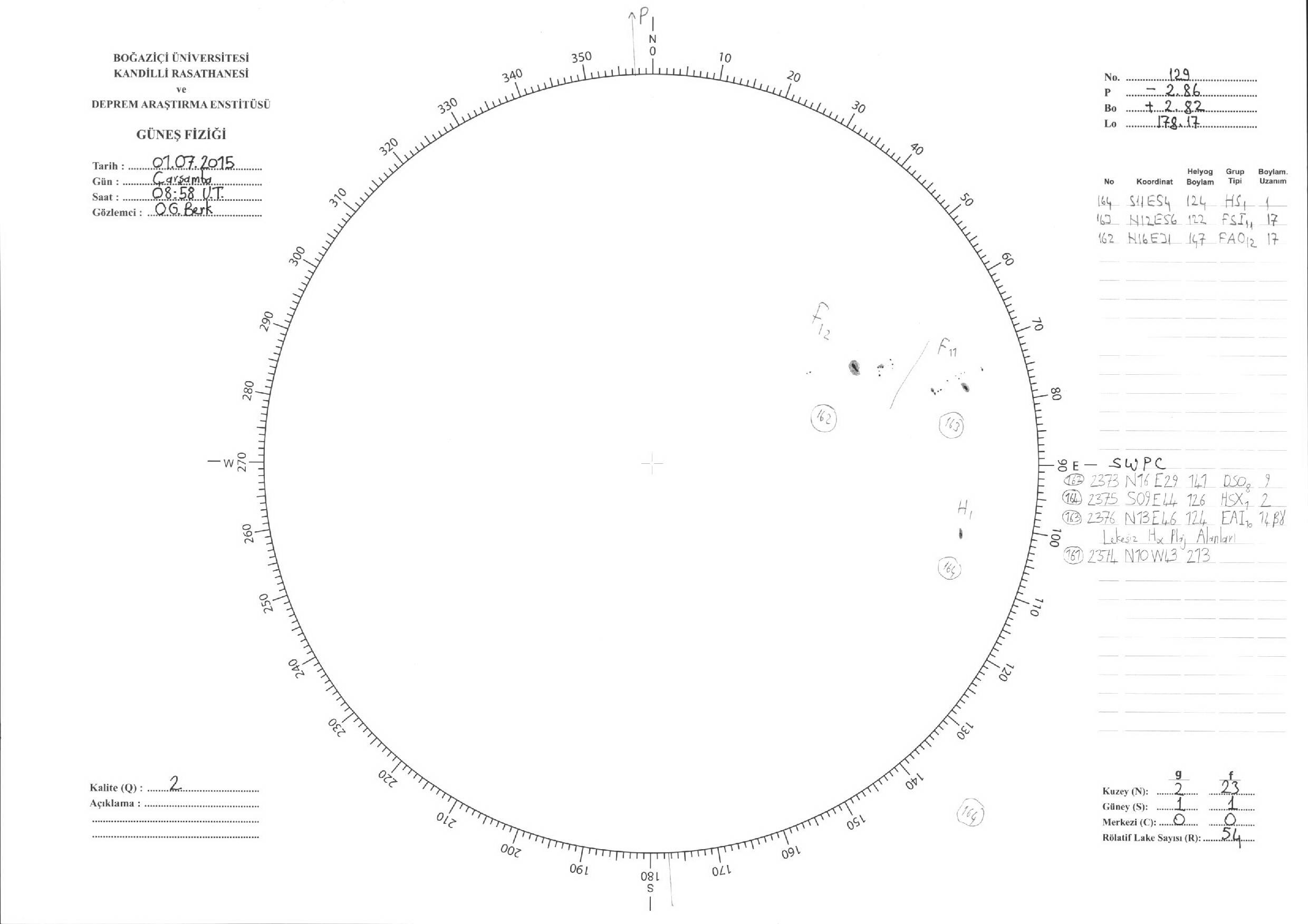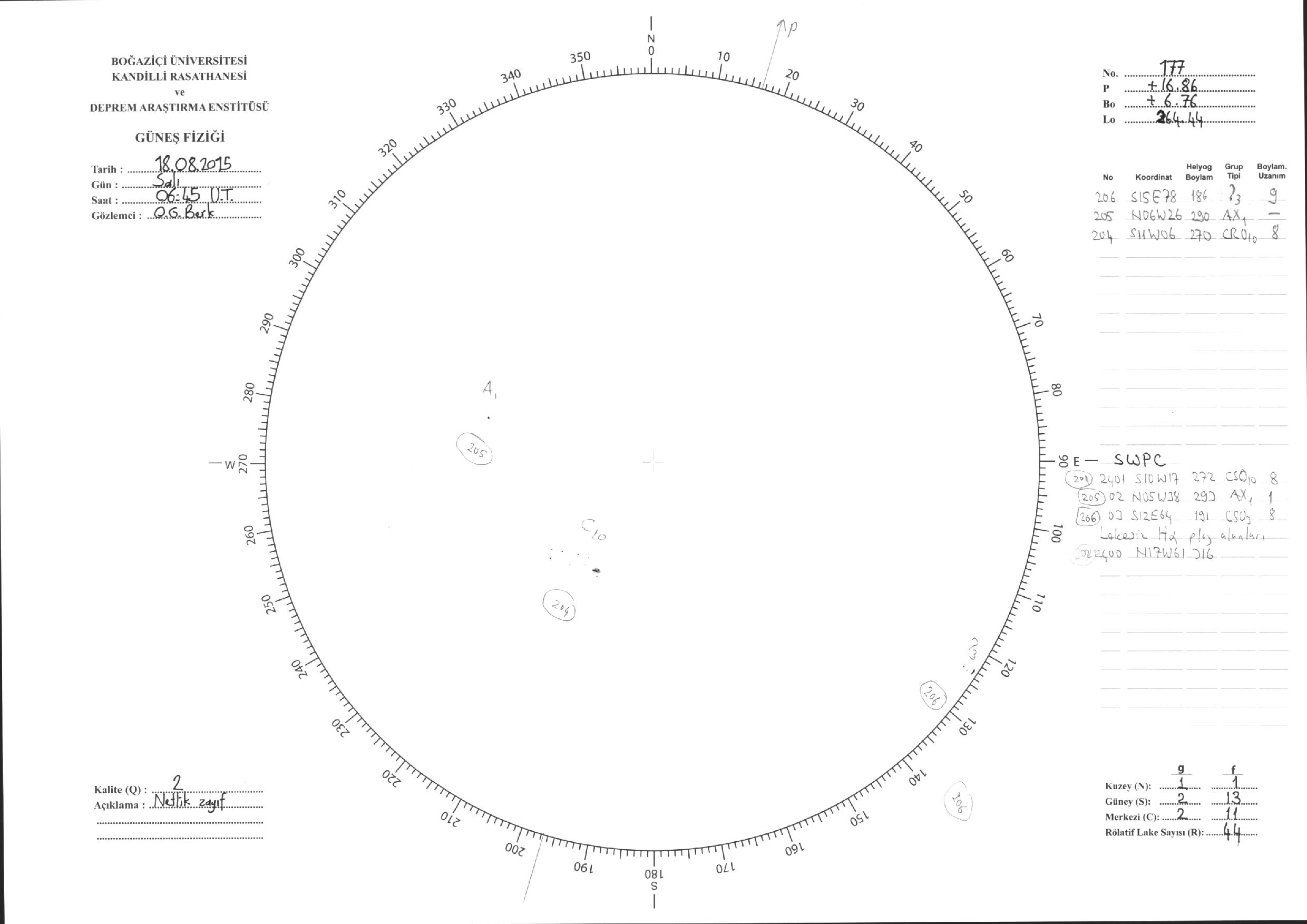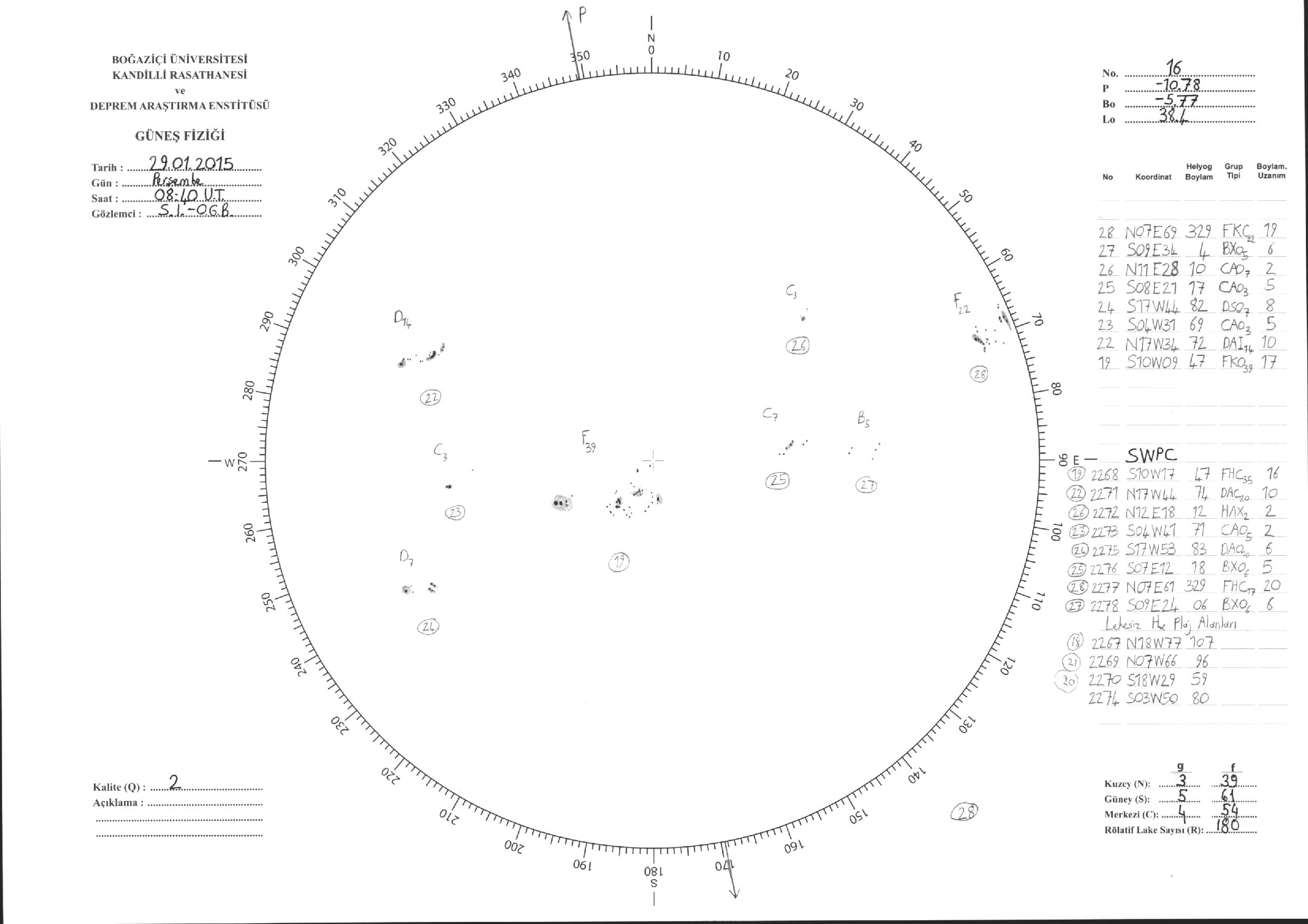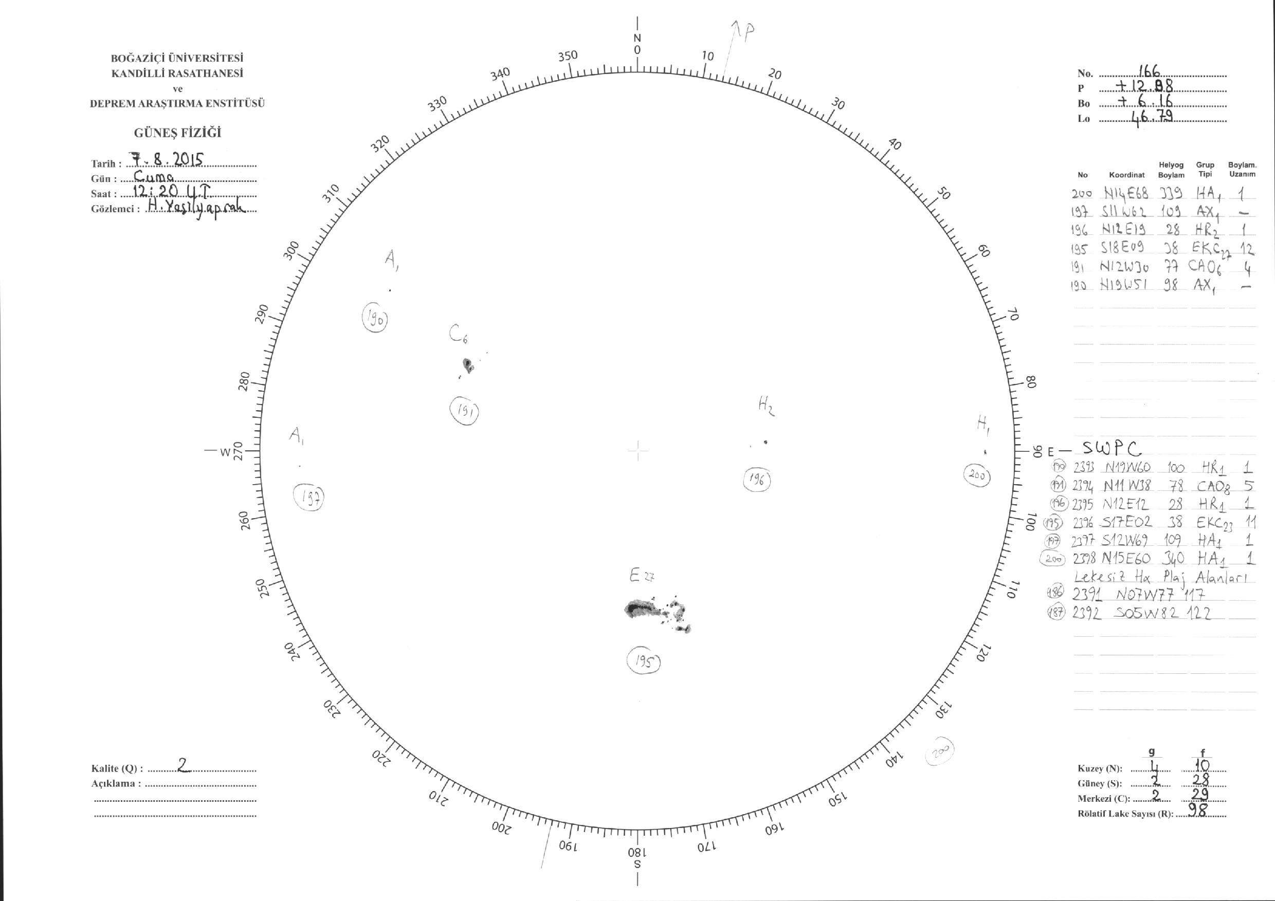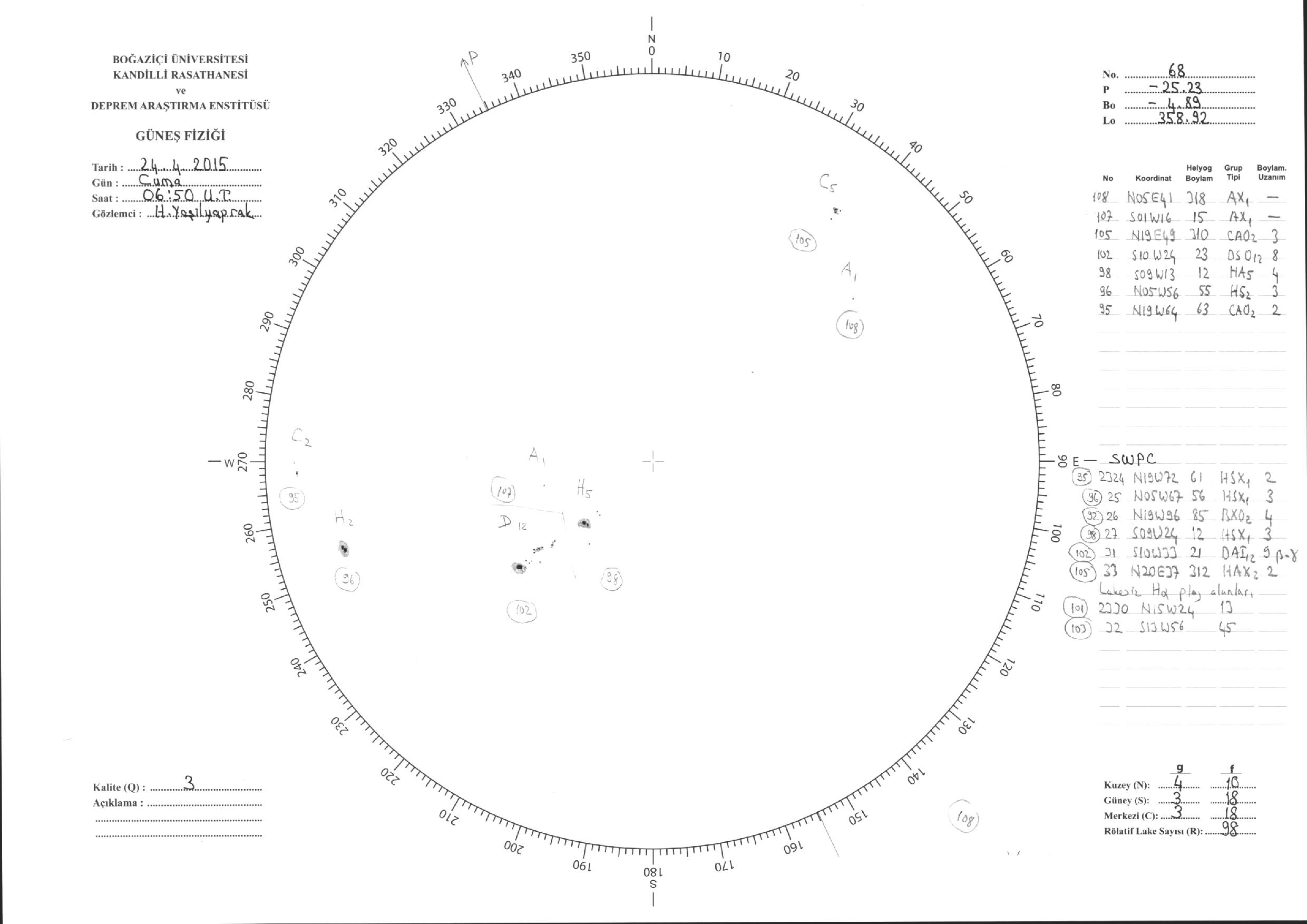 Güneş Lekesi Çizimleri / Kandilli Sunspot Drawings
