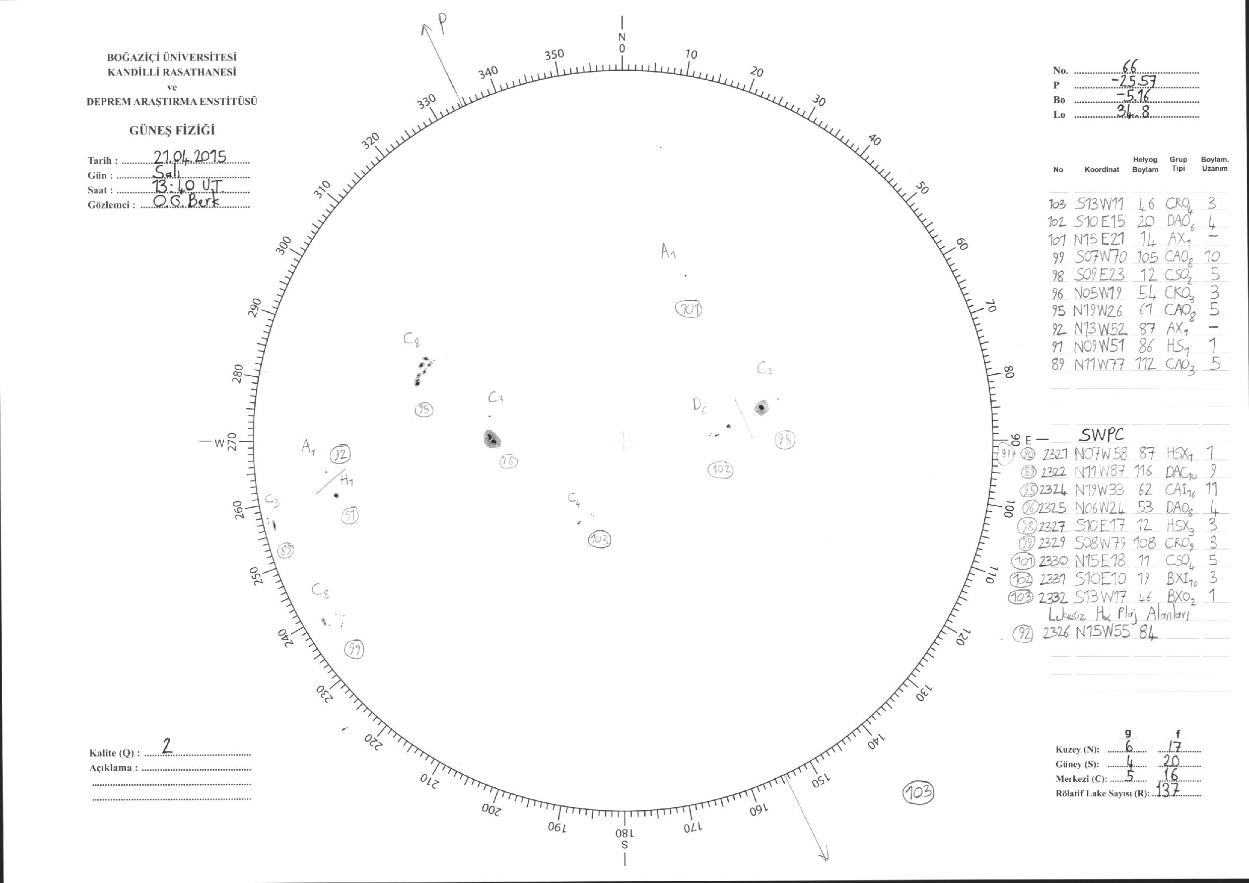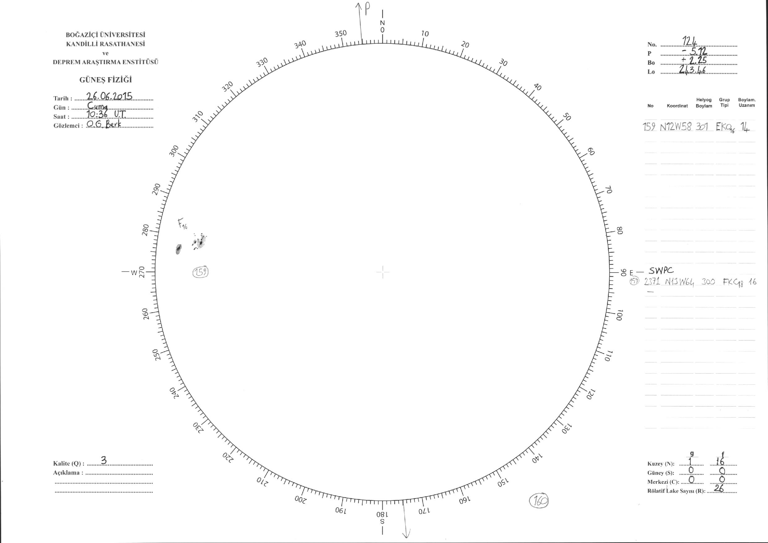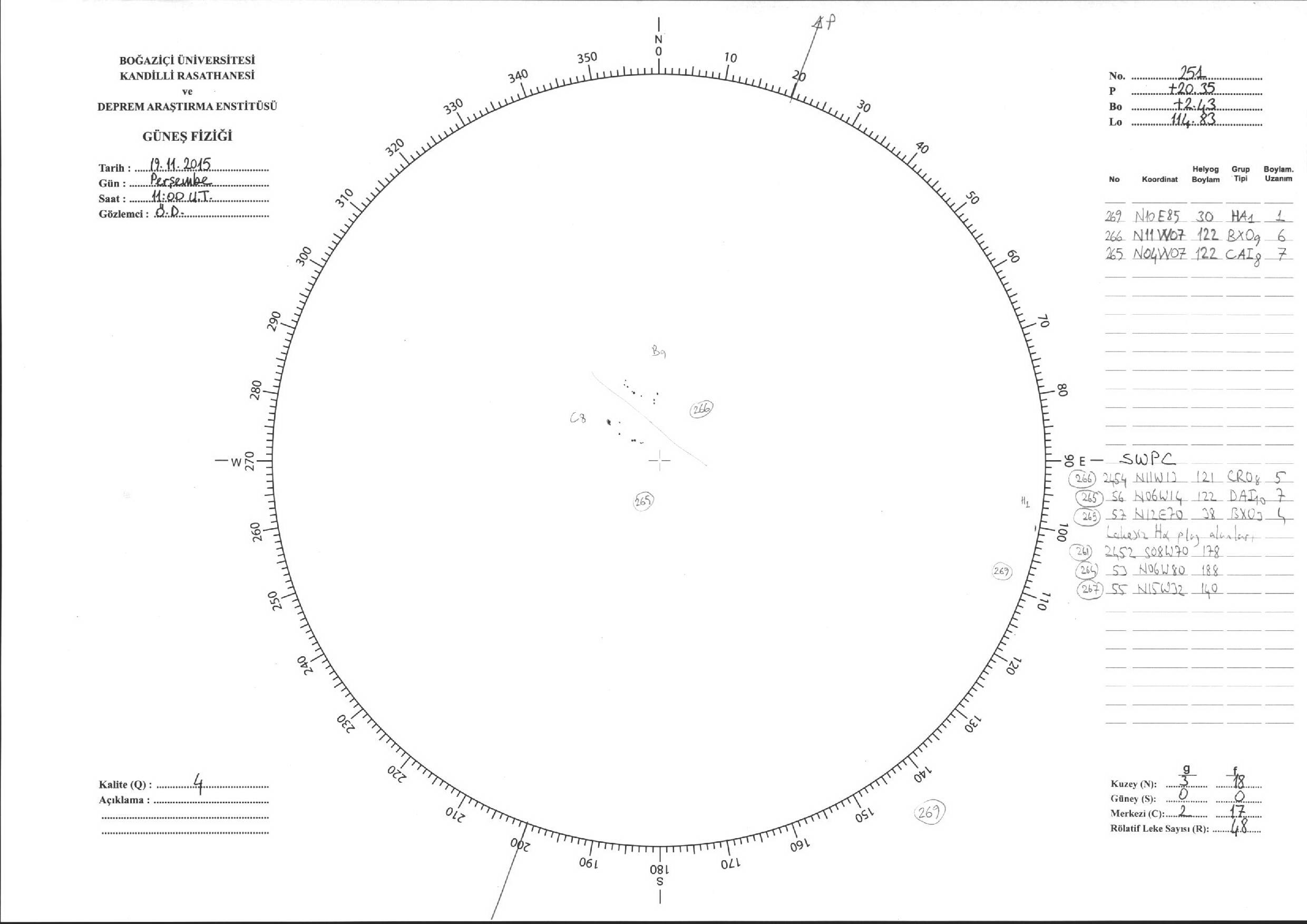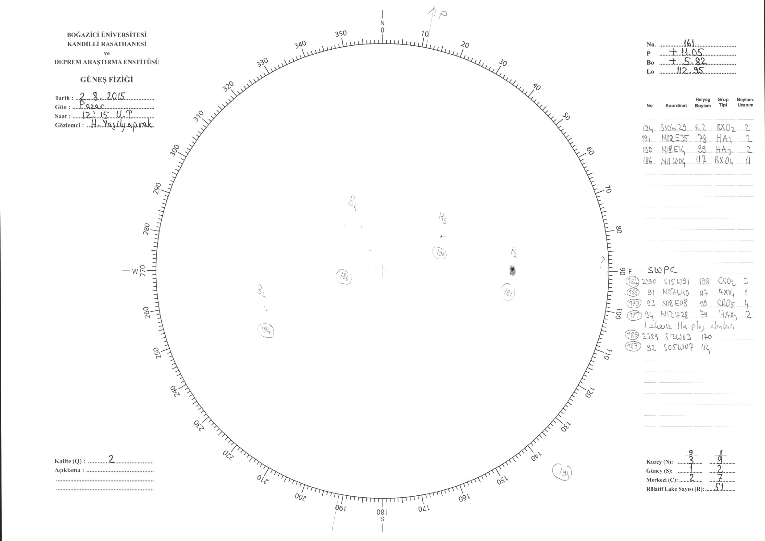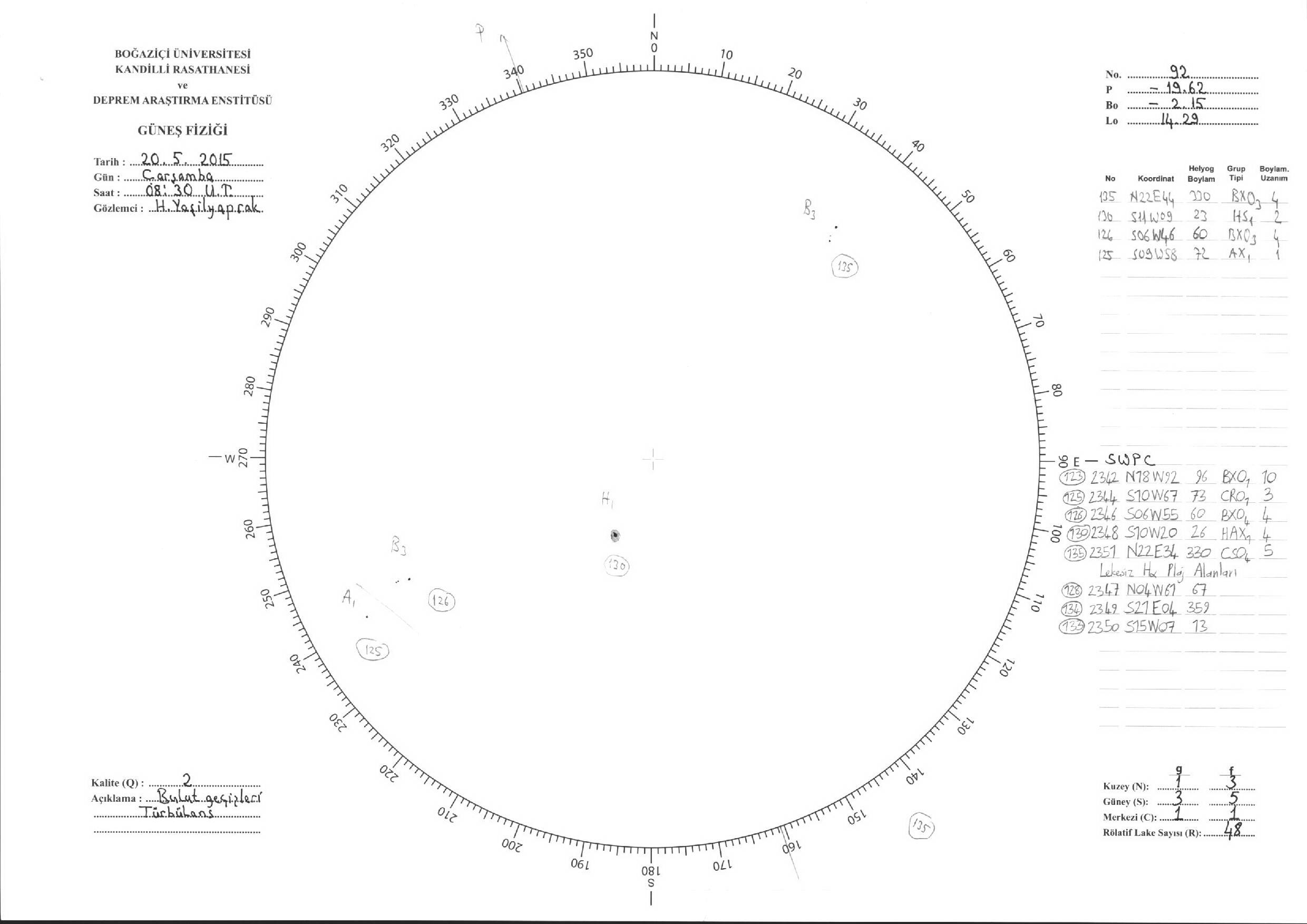 Güneş Lekesi Çizimleri / Kandilli Sunspot Drawings
