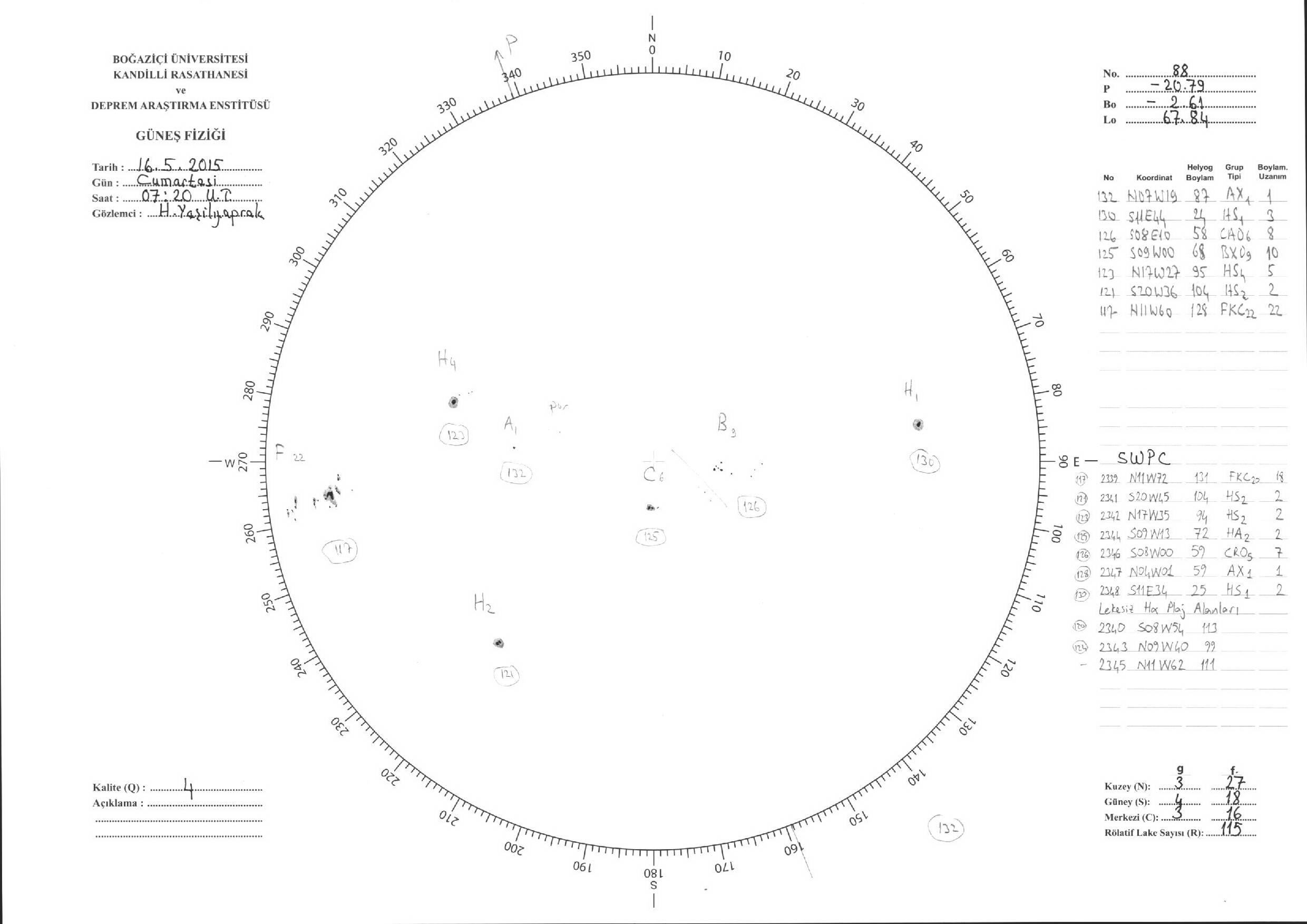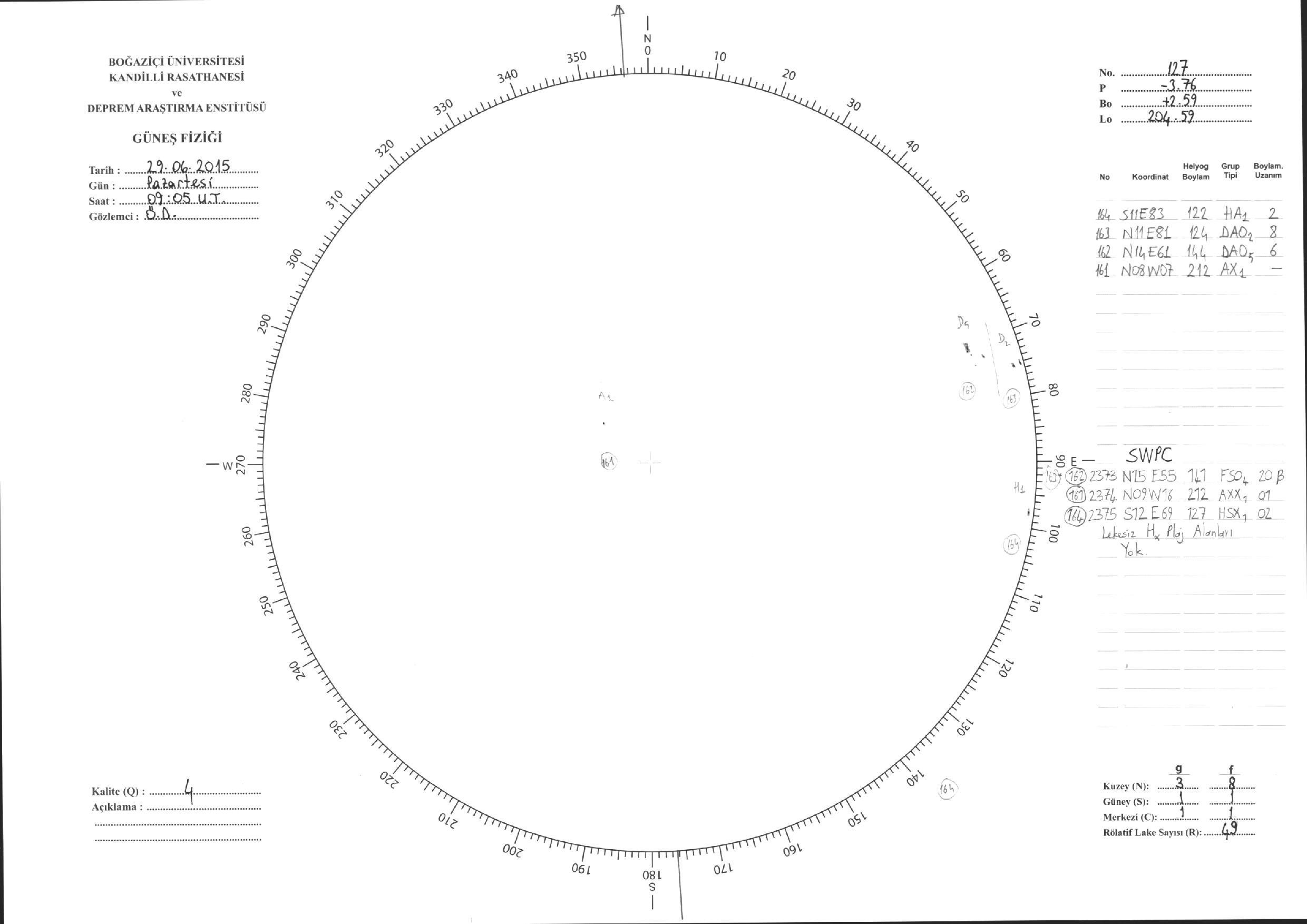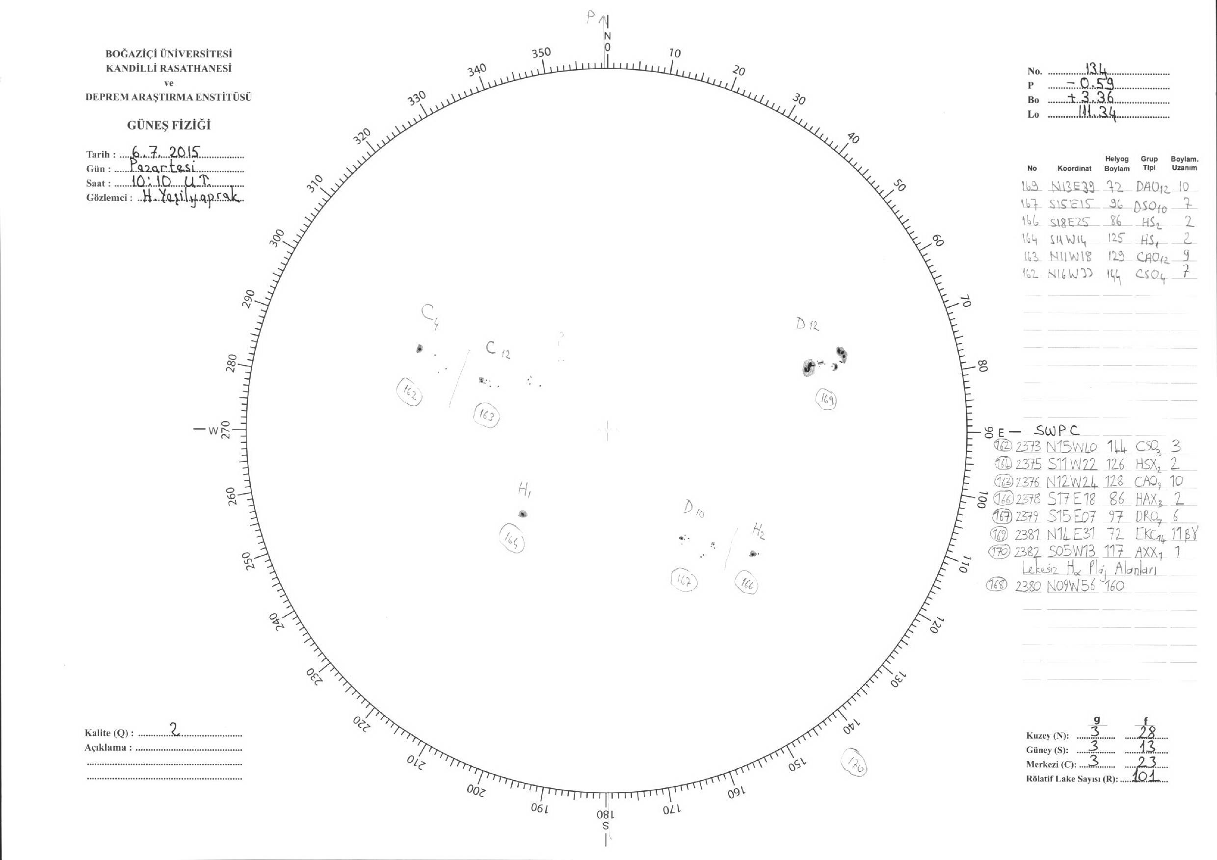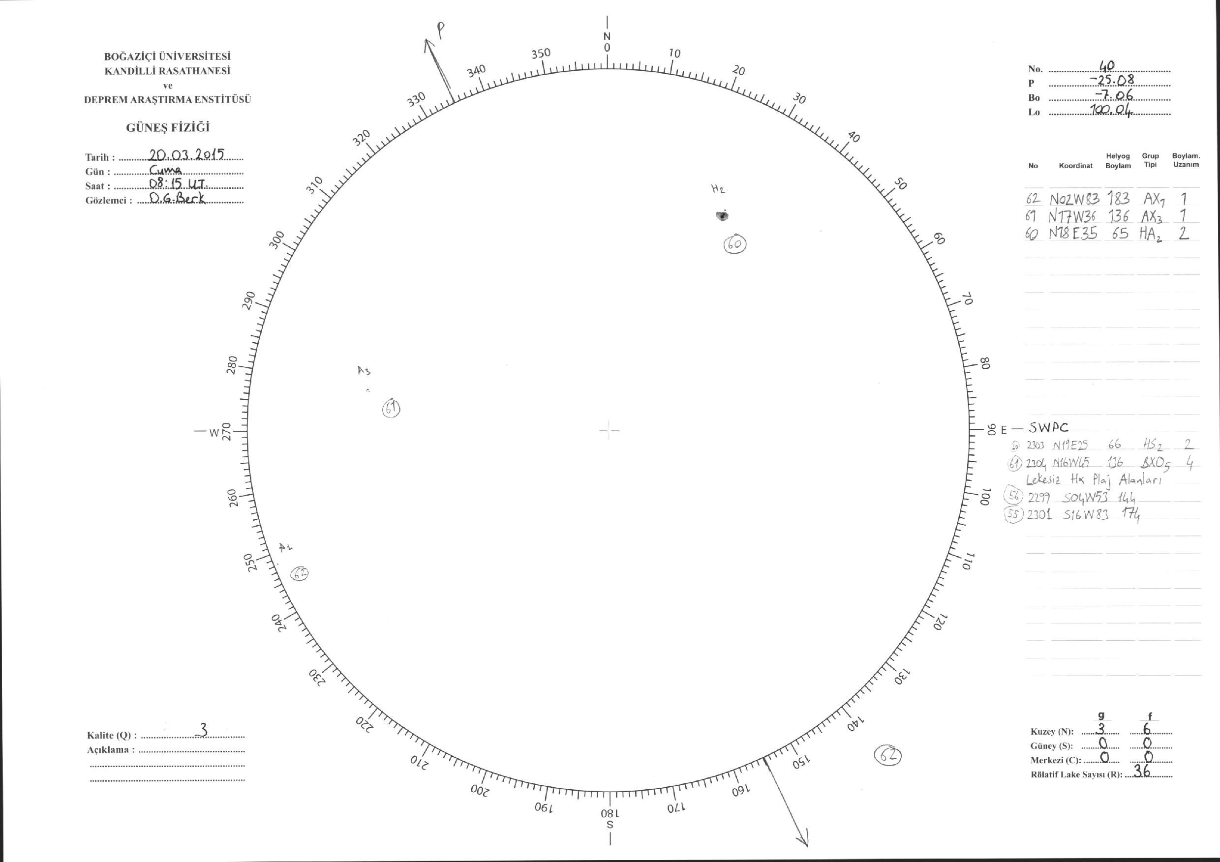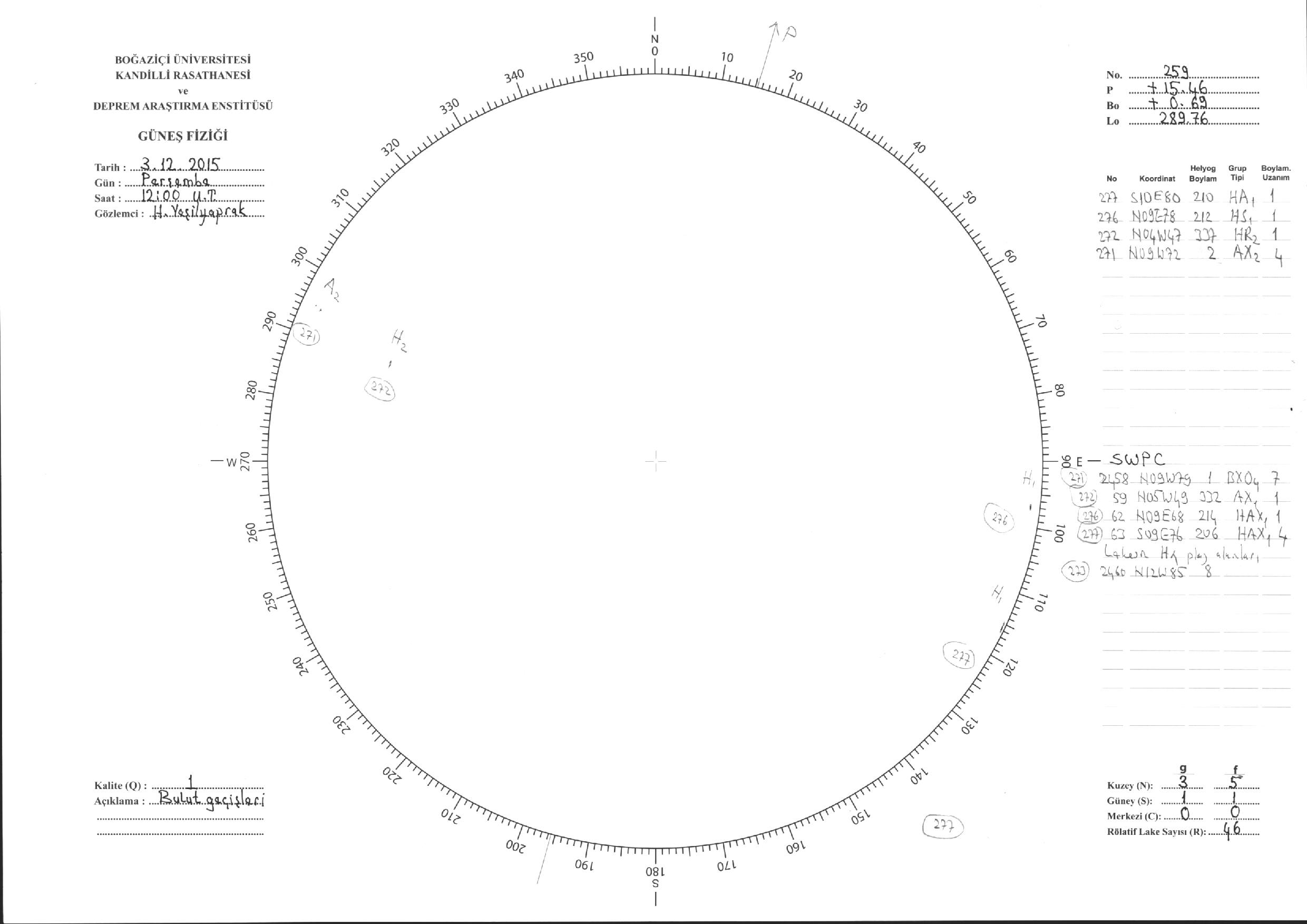 Güneş Lekesi Çizimleri / Kandilli Sunspot Drawings