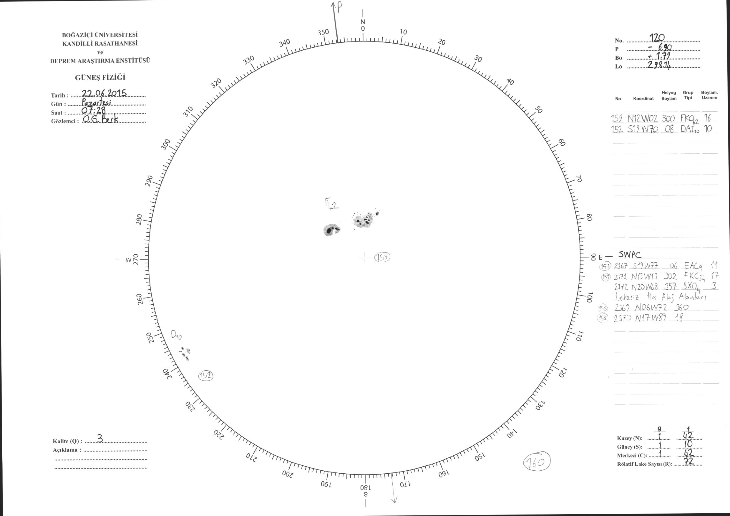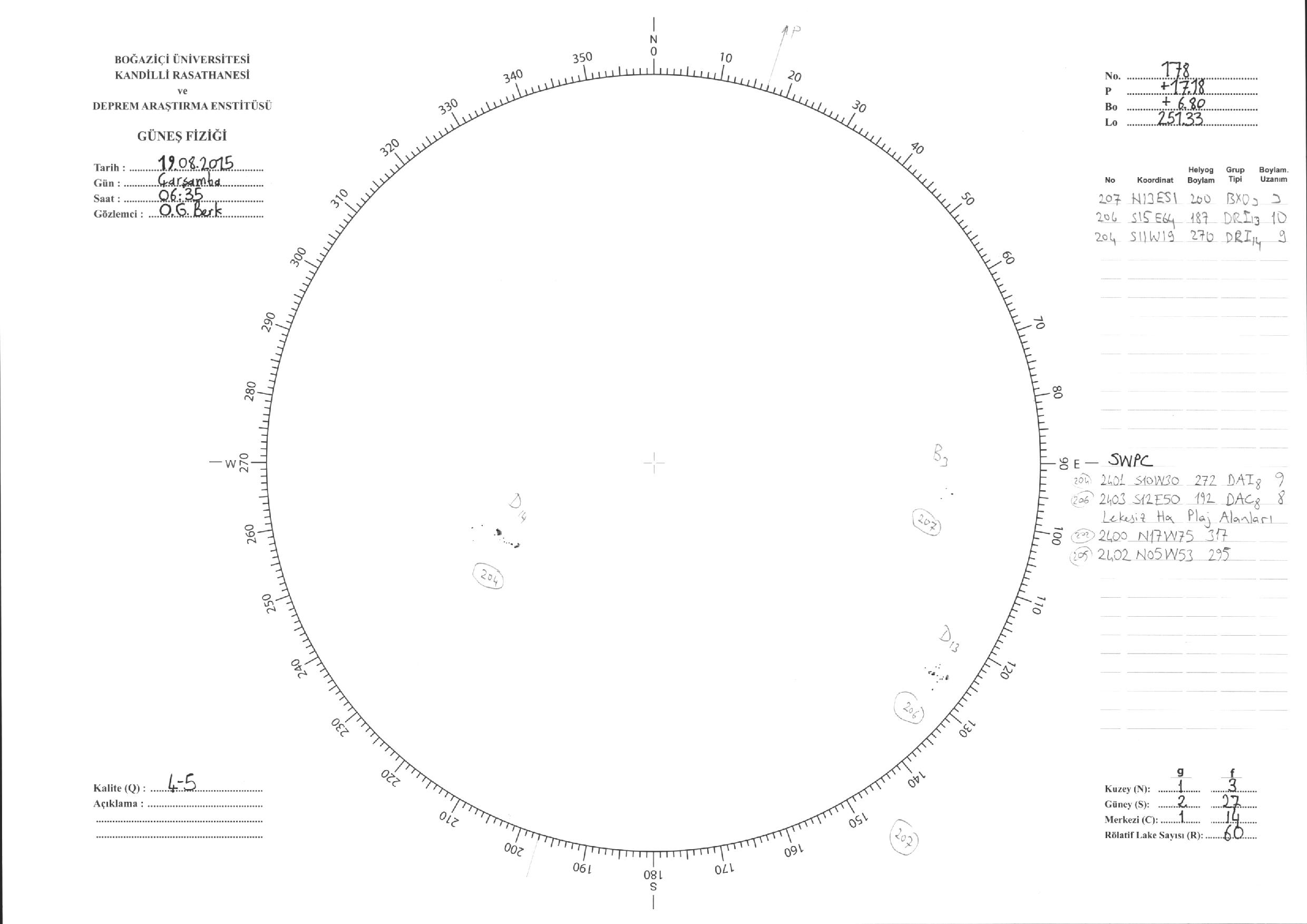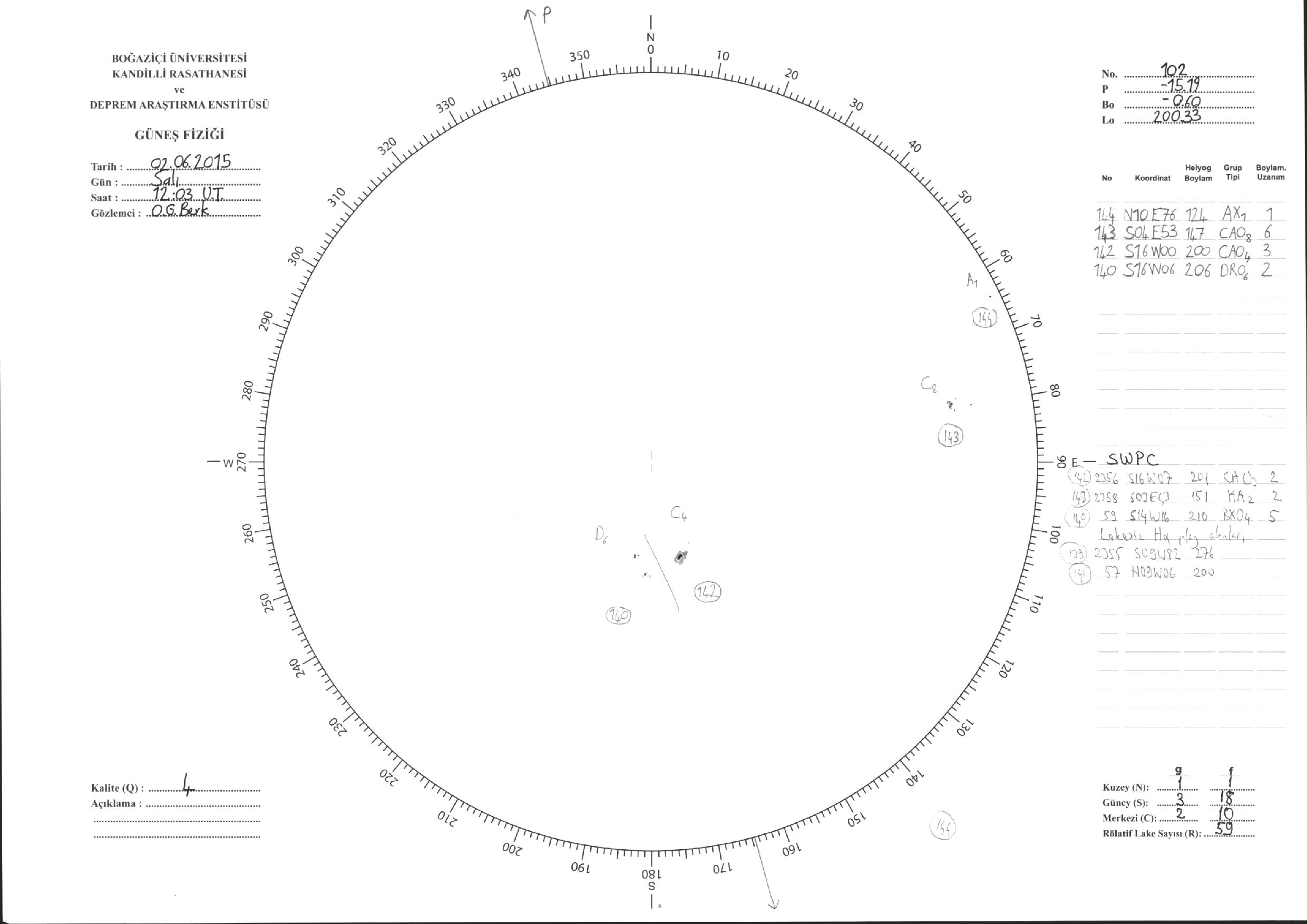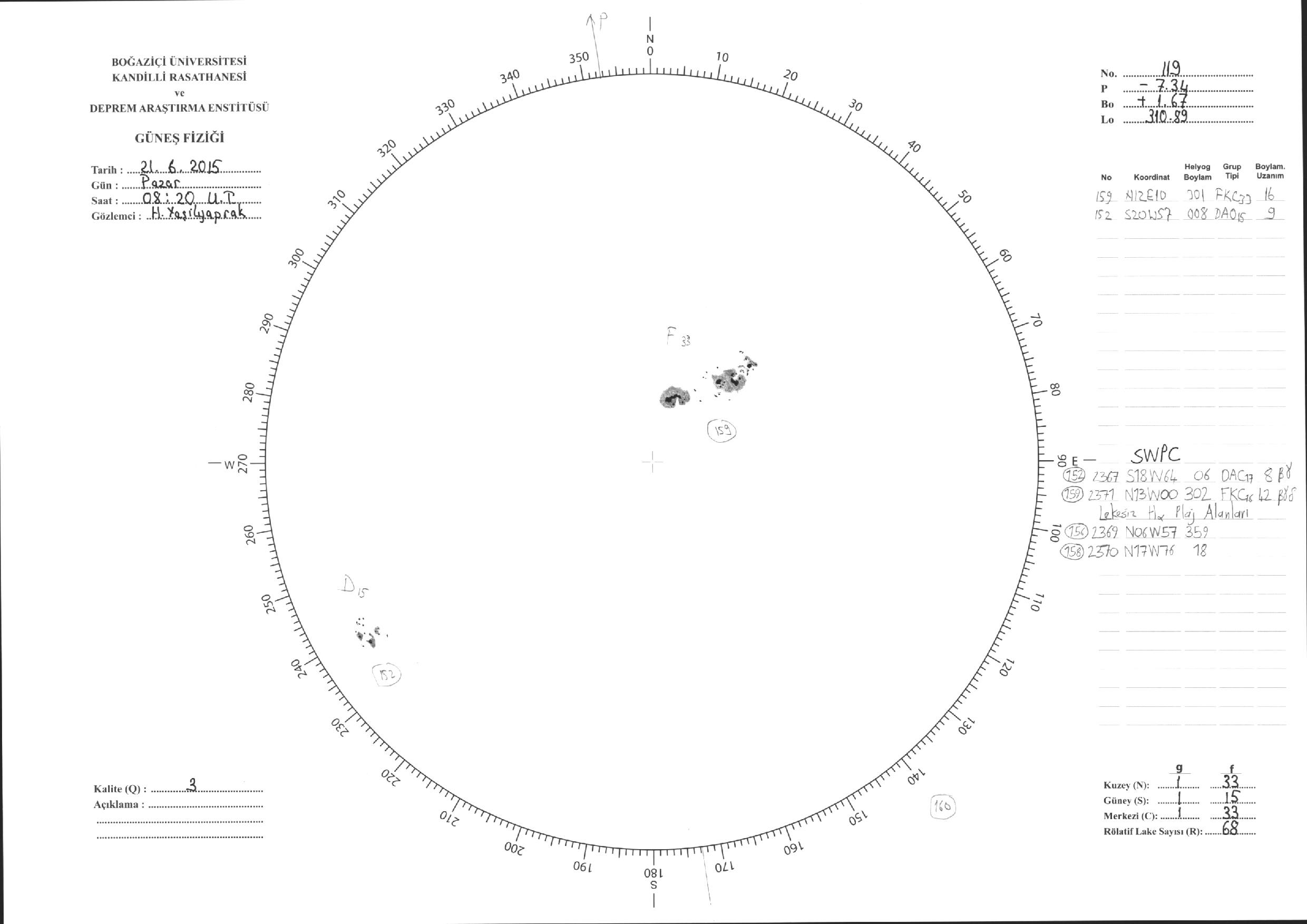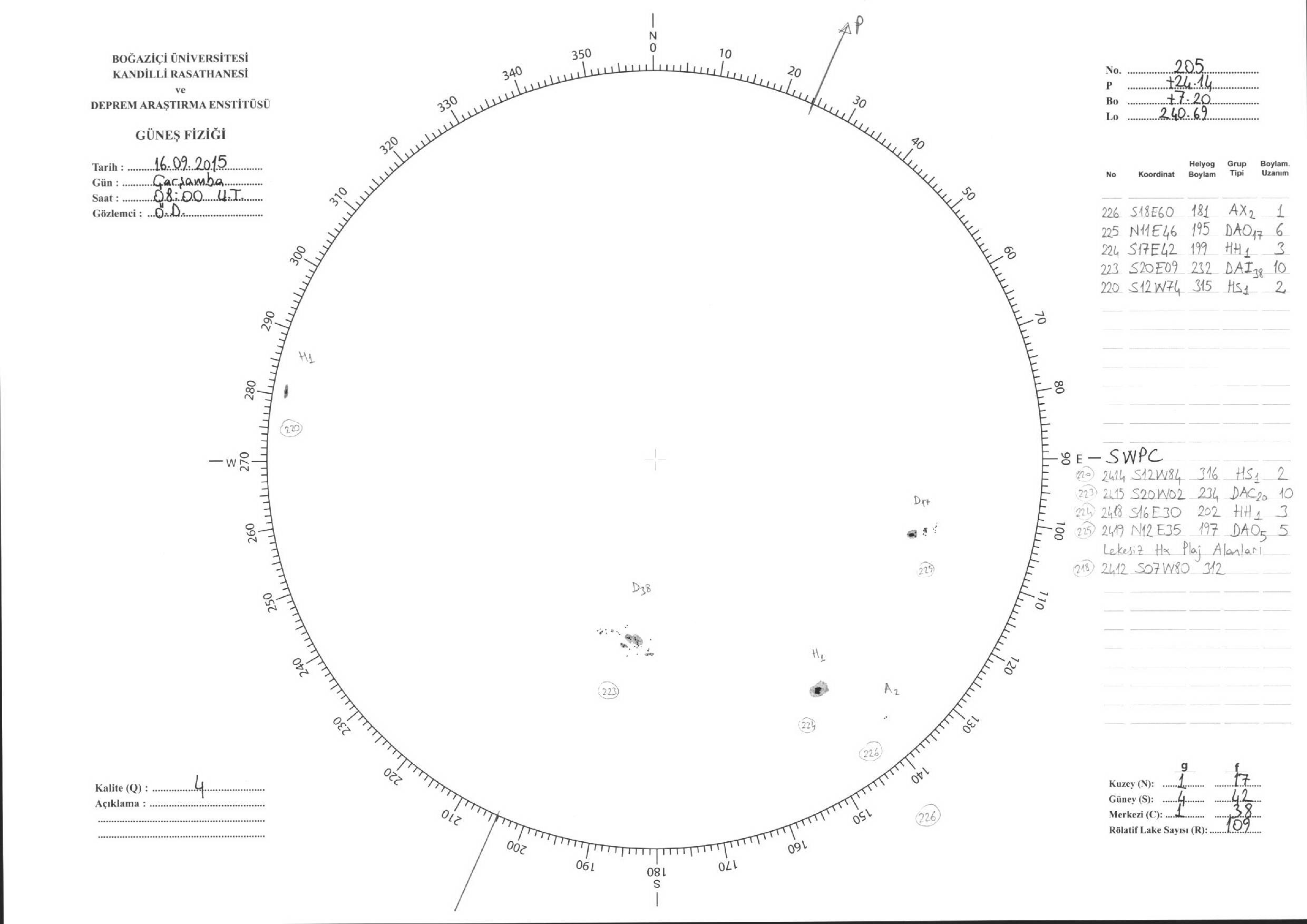 Güneş Lekesi Çizimleri / Kandilli Sunspot Drawings