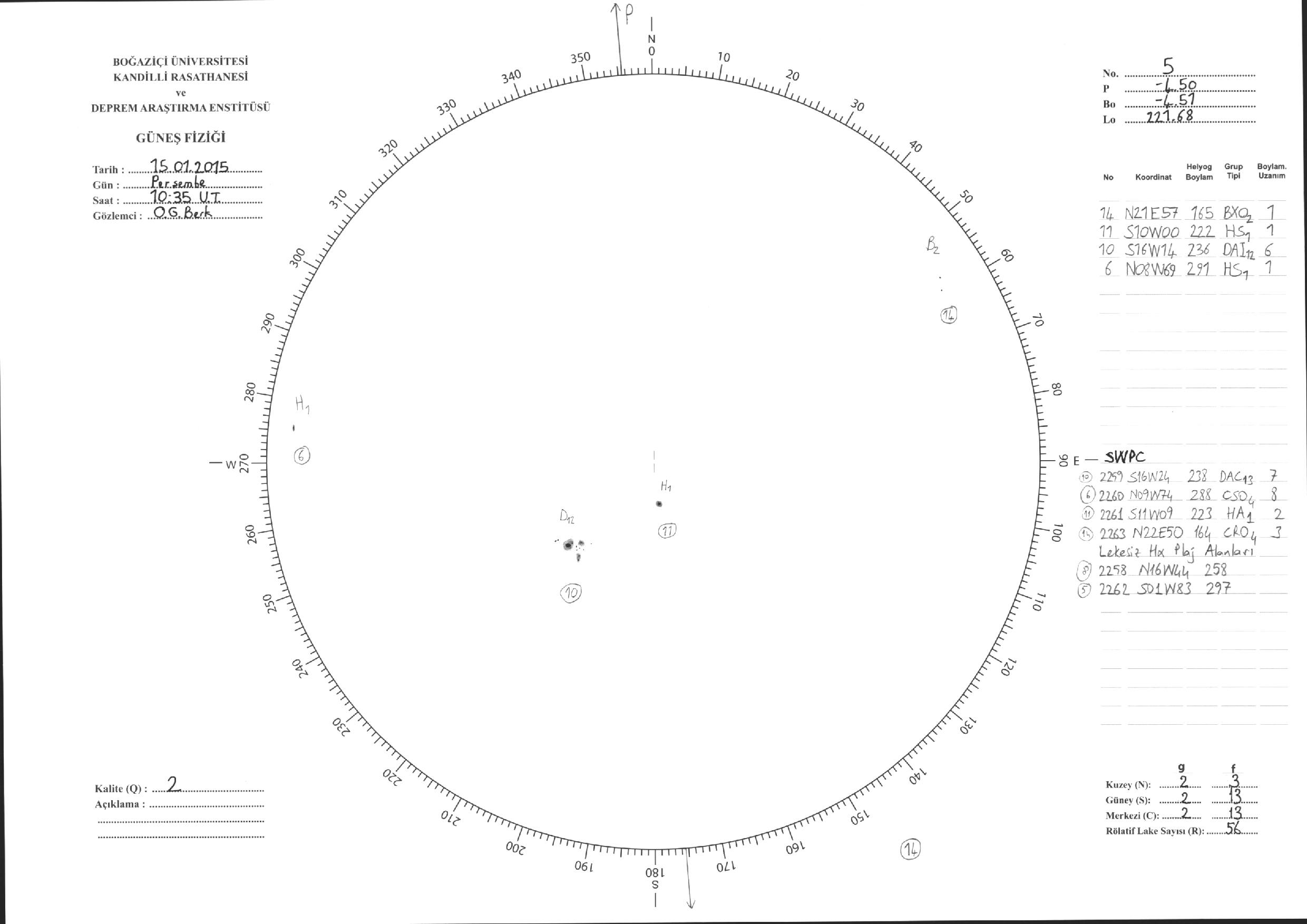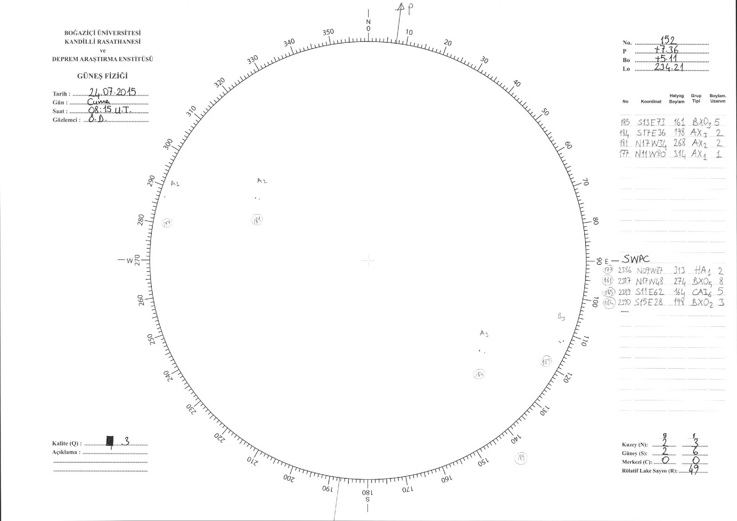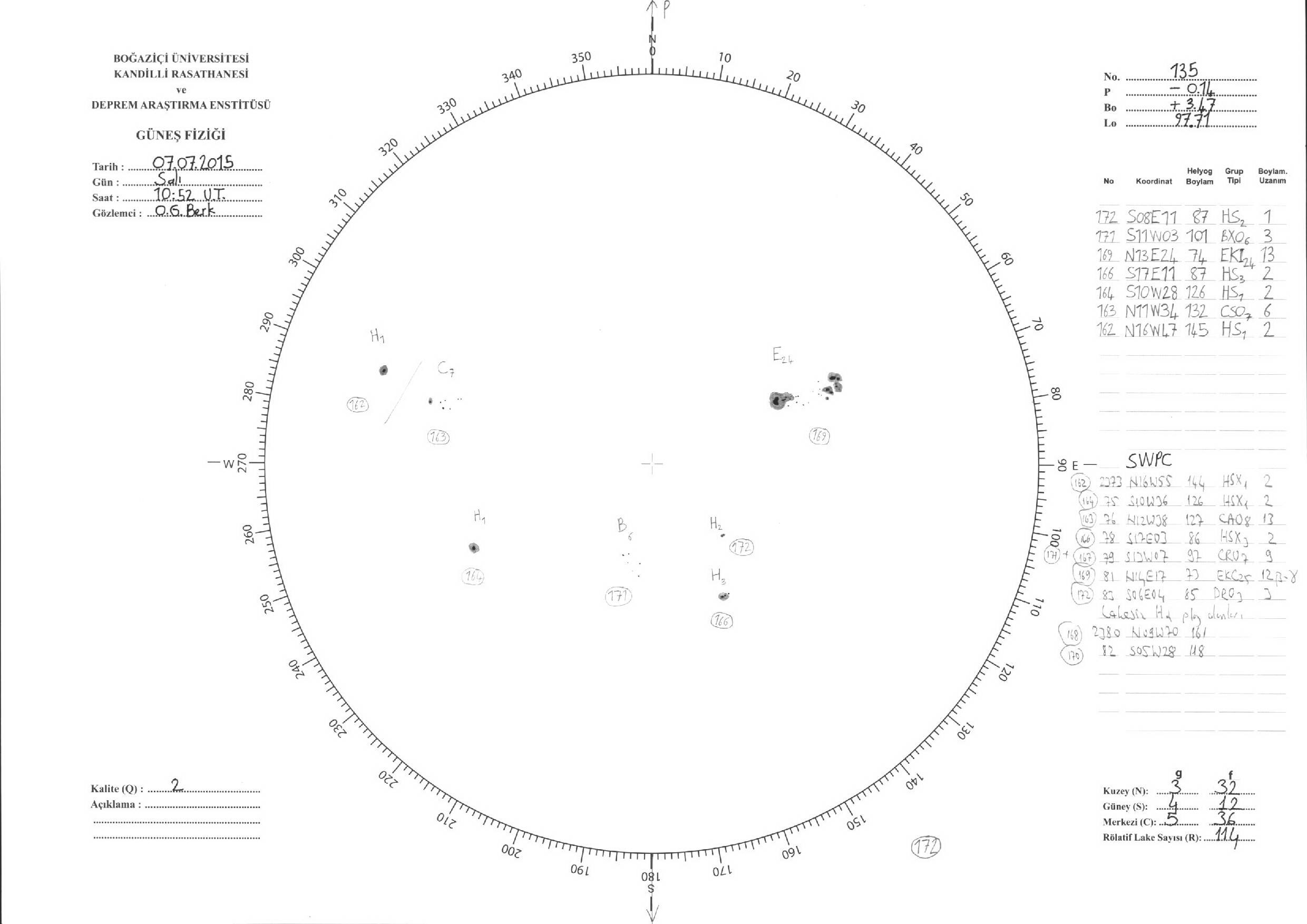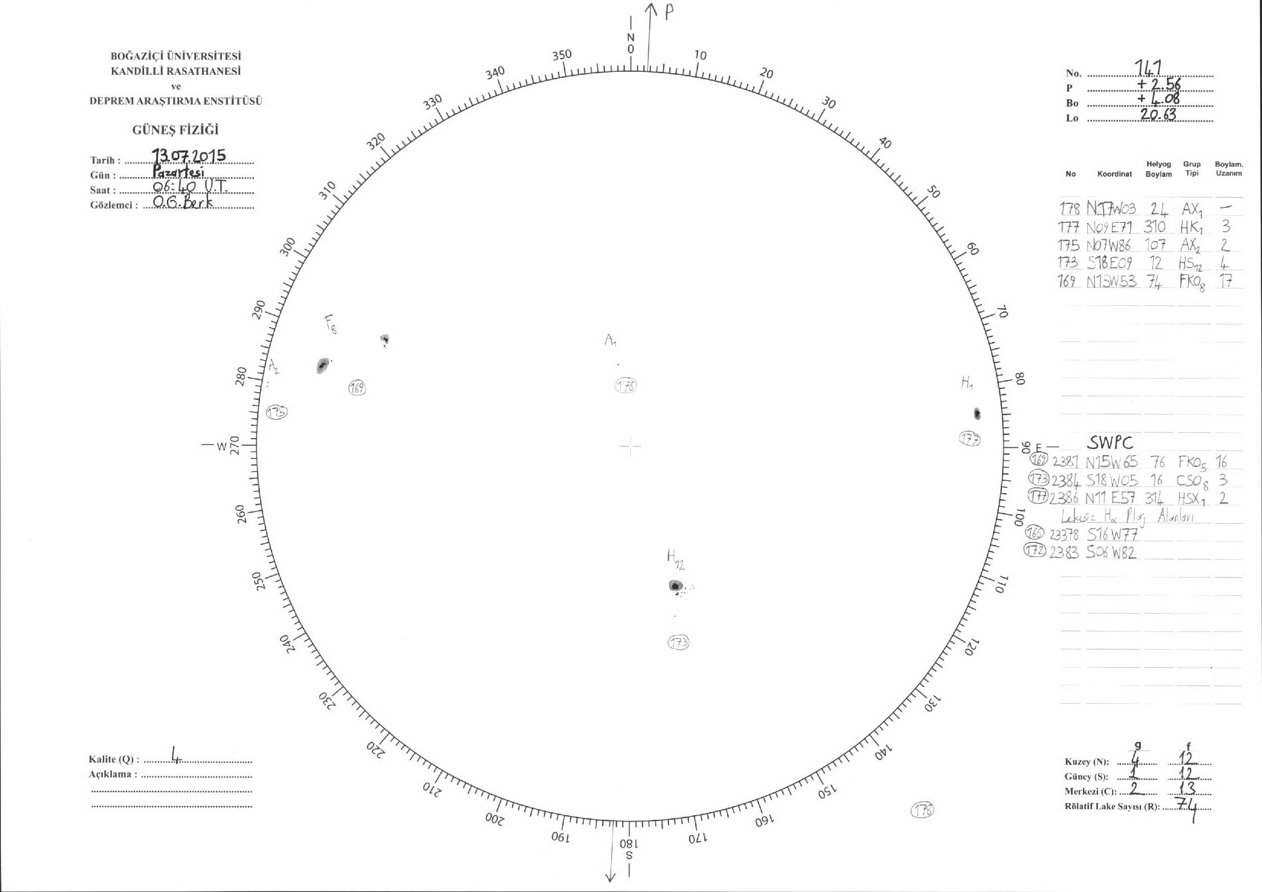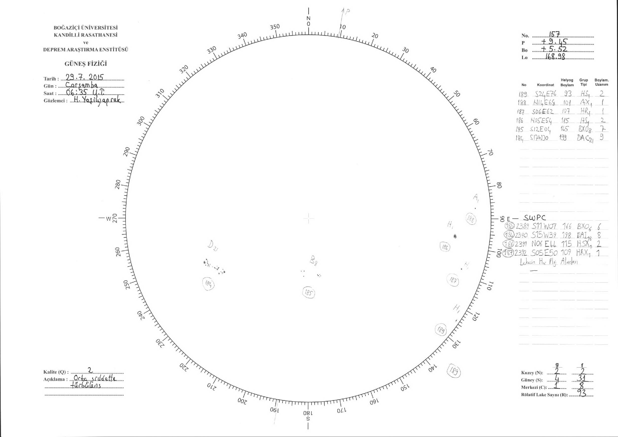 Güneş Lekesi Çizimleri / Kandilli Sunspot Drawings