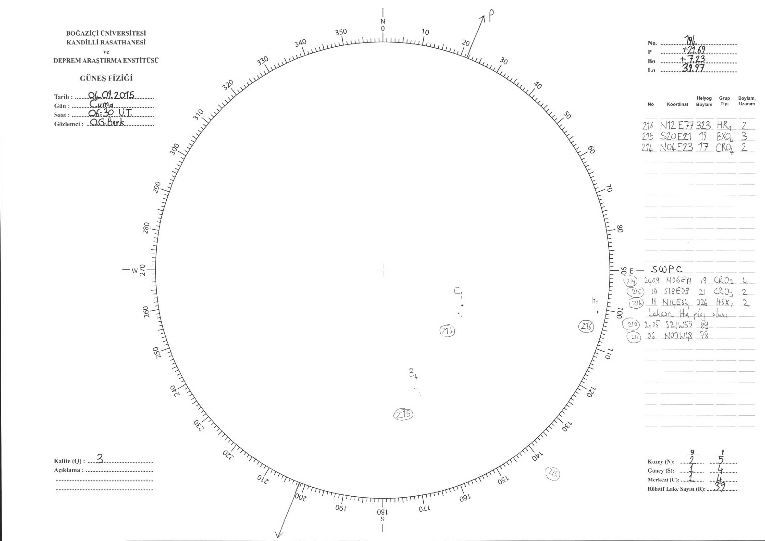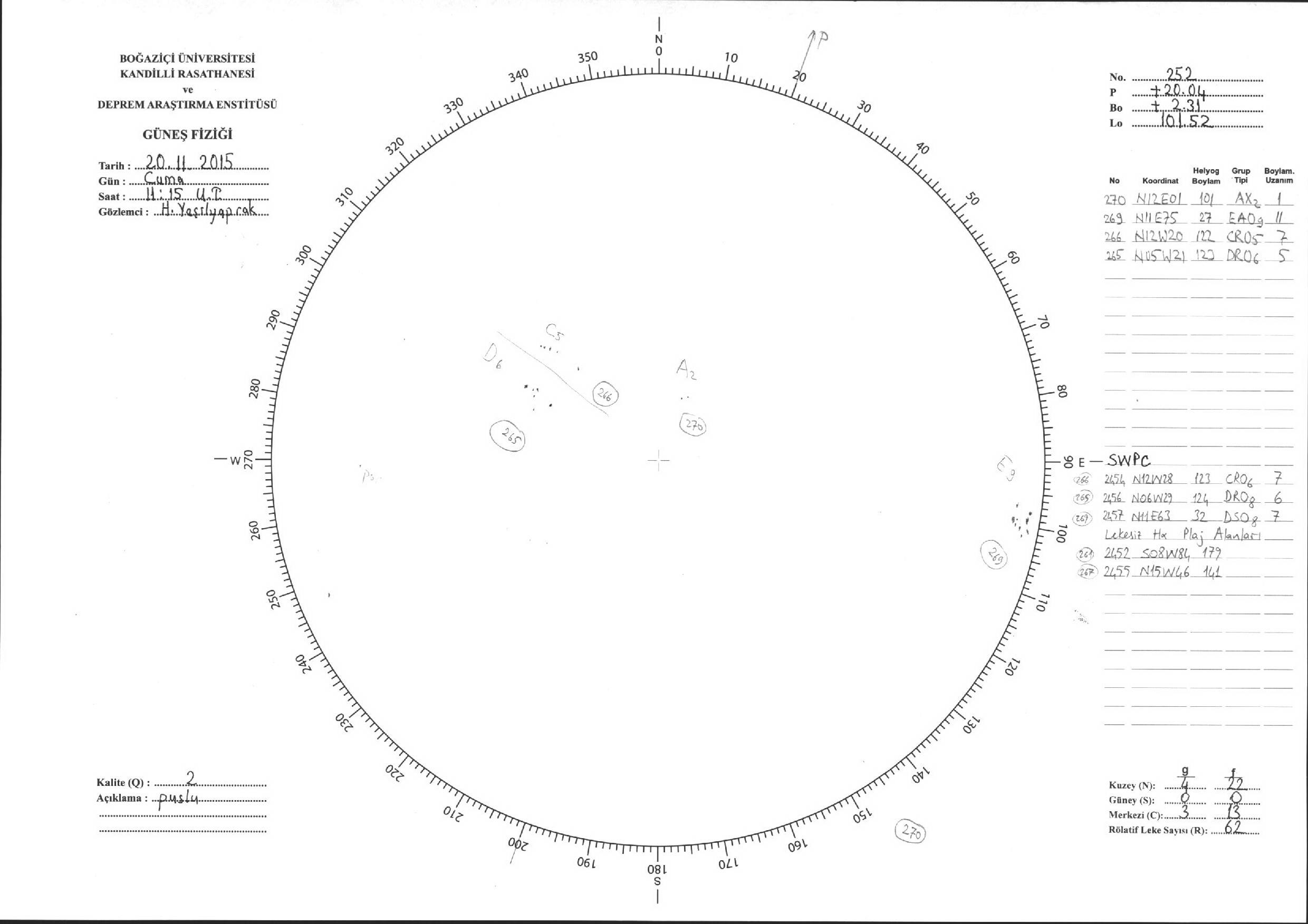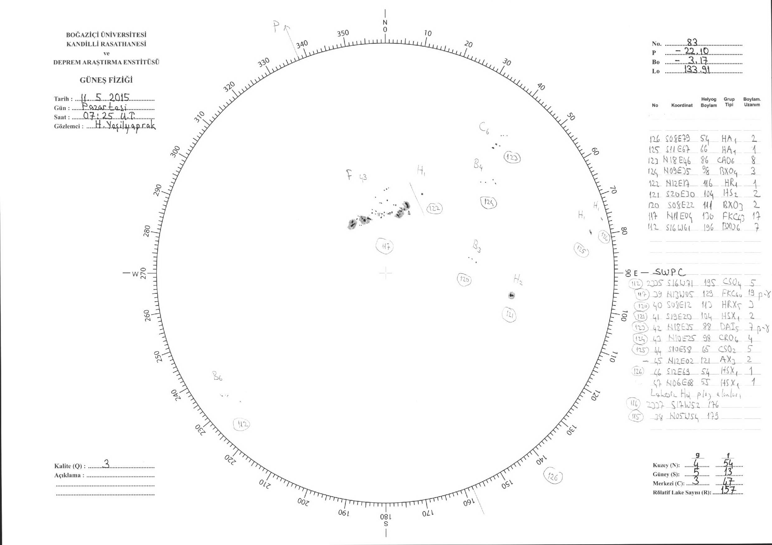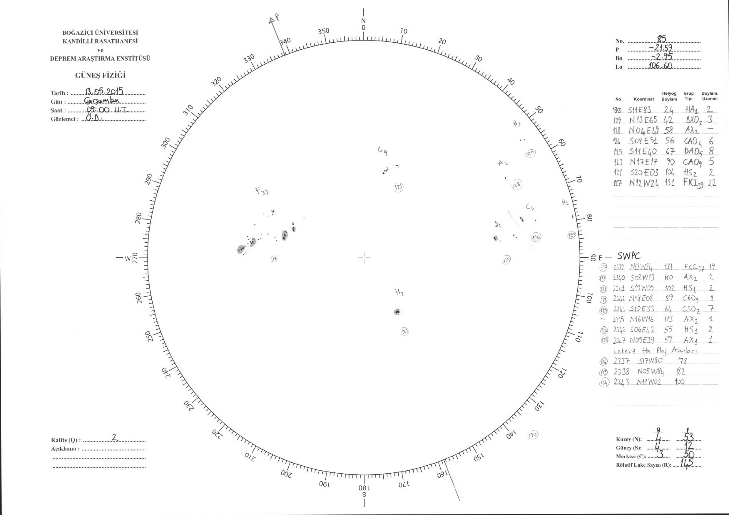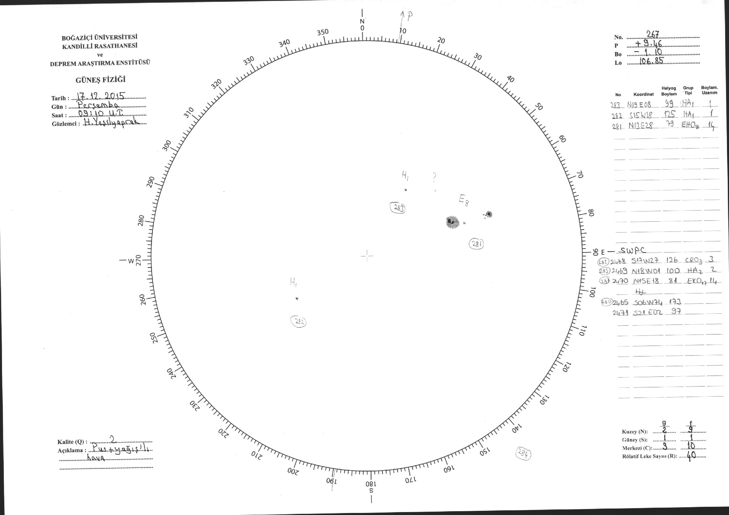 Güneş Lekesi Çizimleri / Kandilli Sunspot Drawings