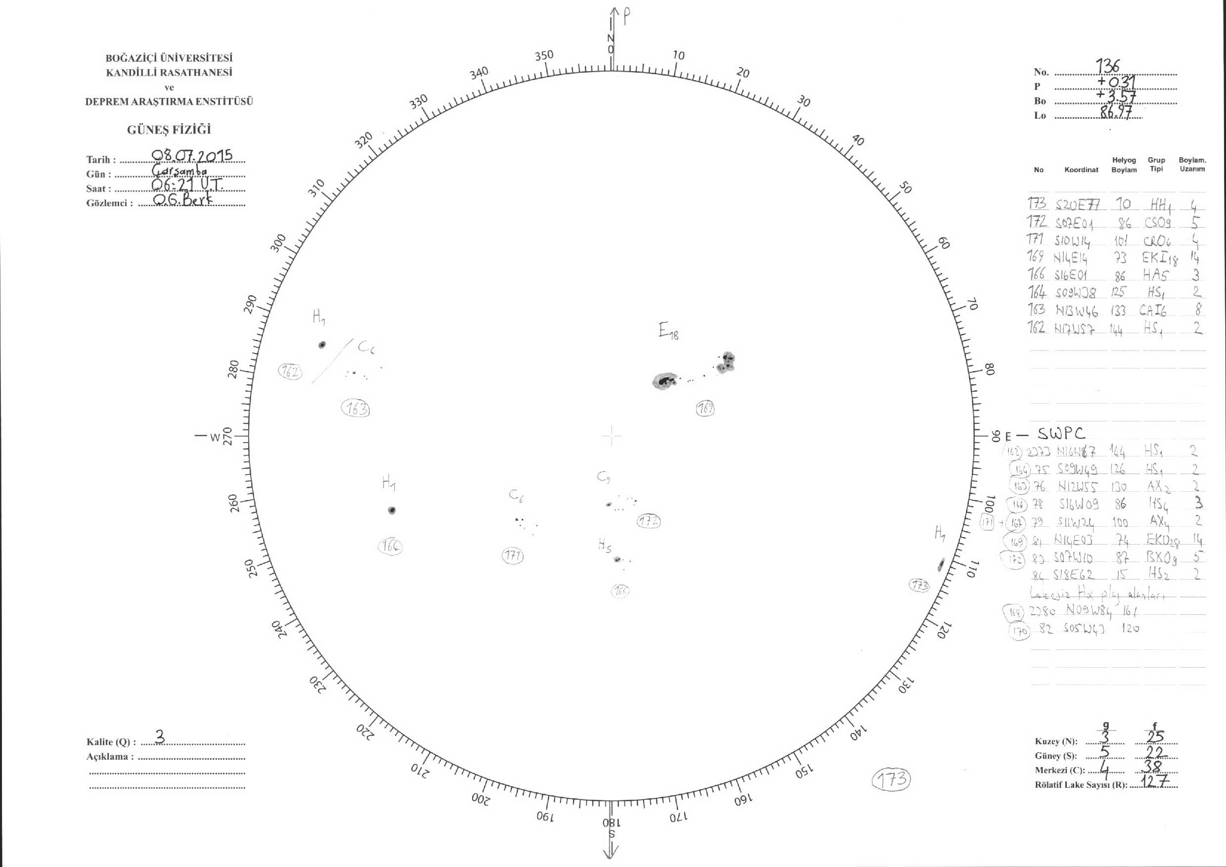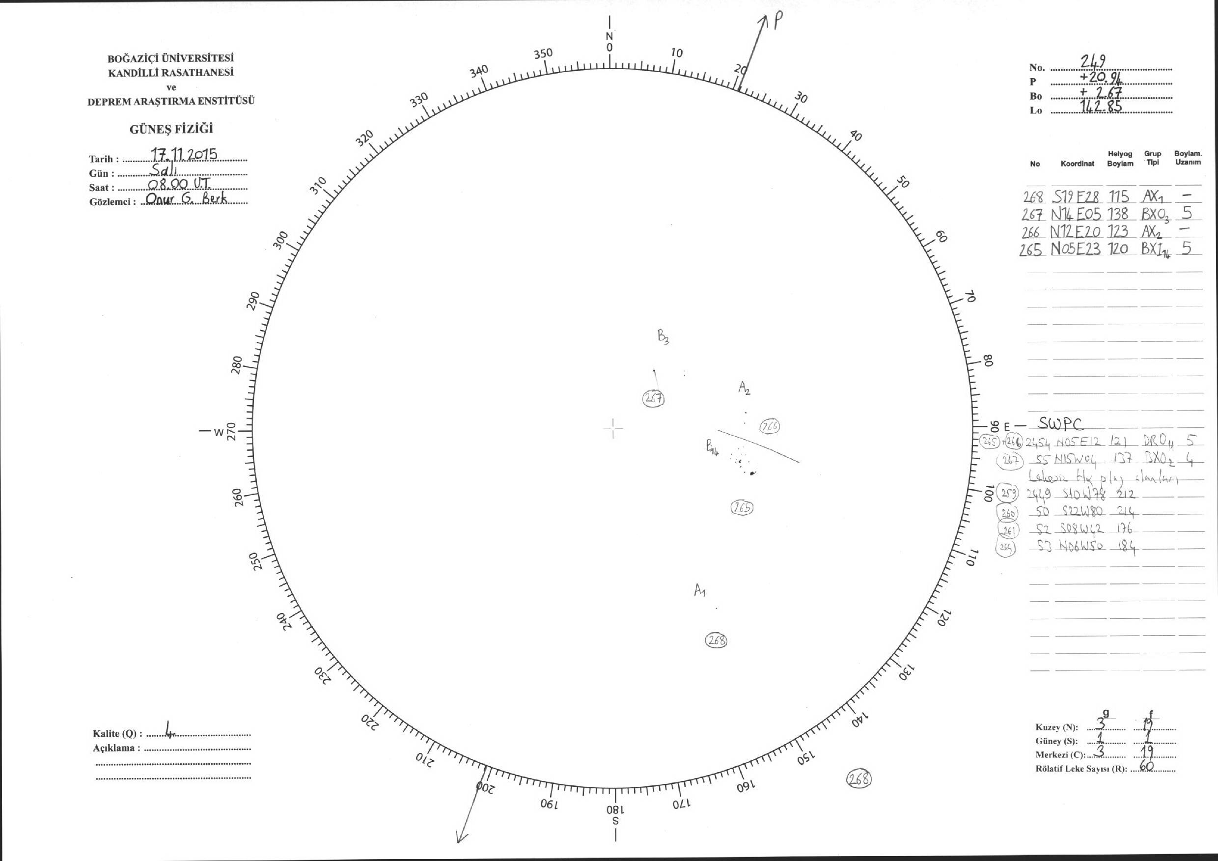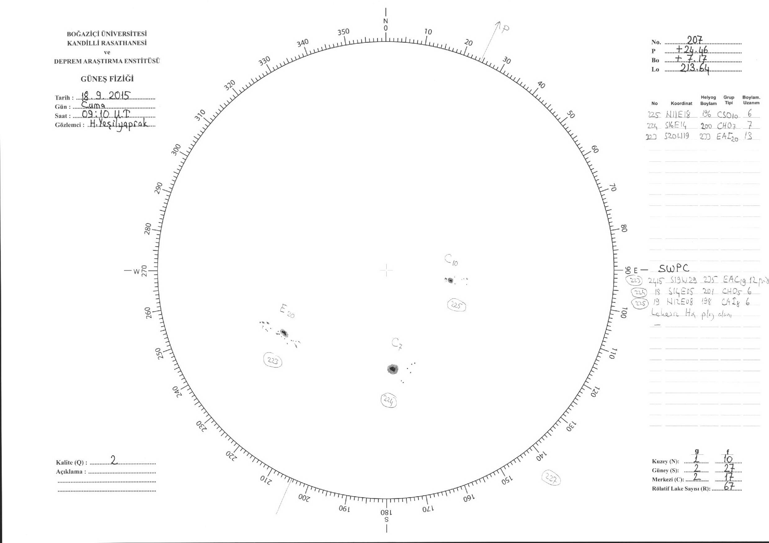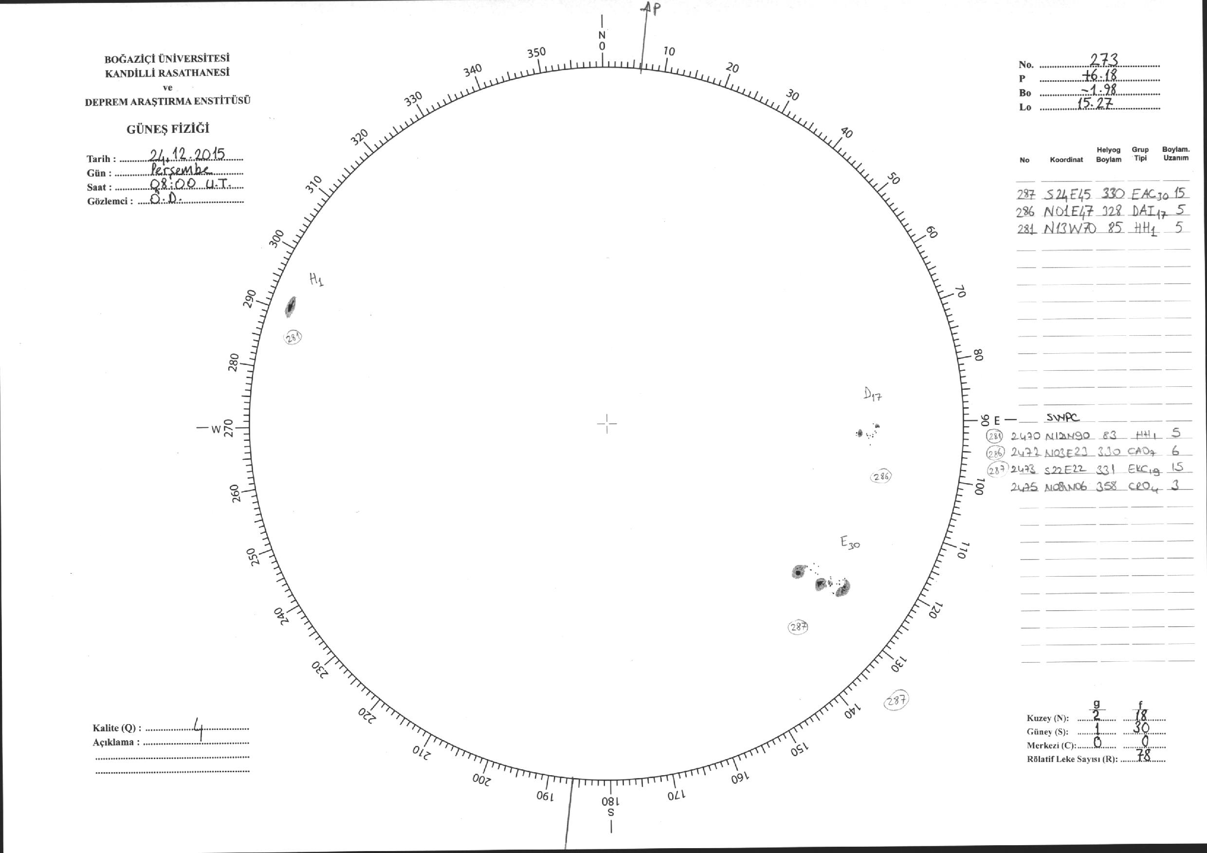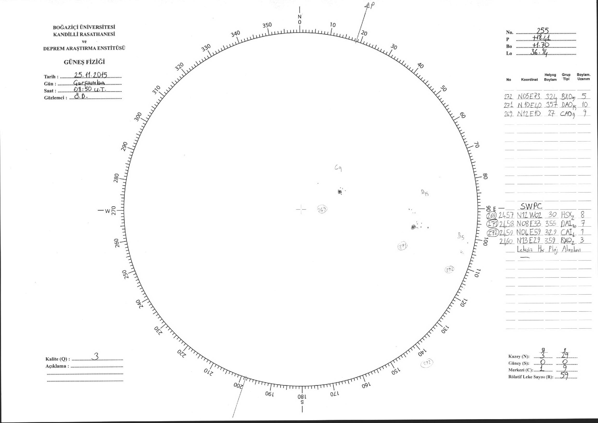Güneş Lekesi Çizimleri / Kandilli Sunspot Drawings