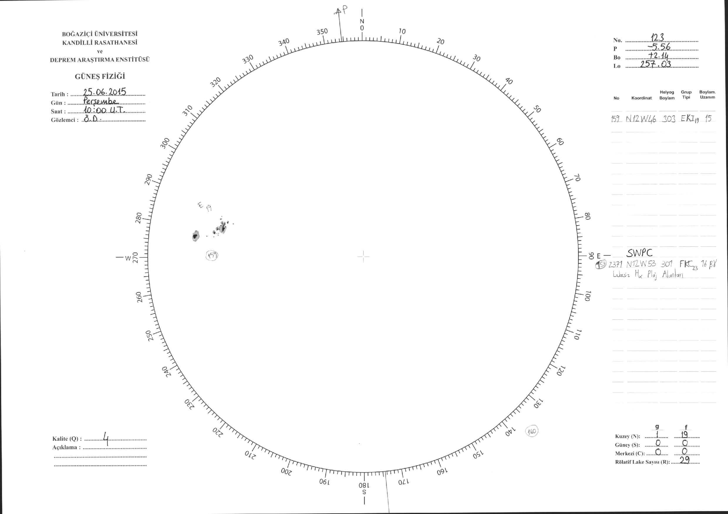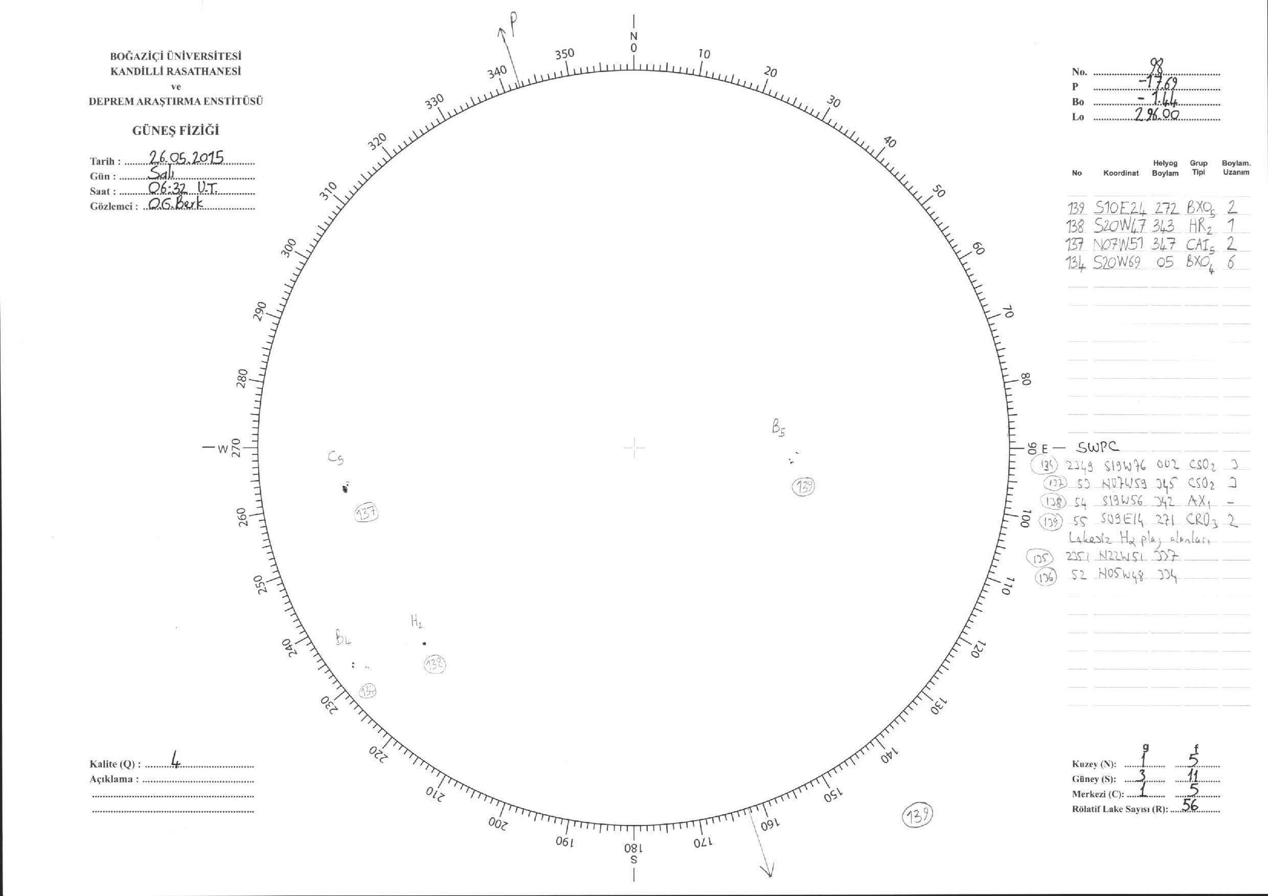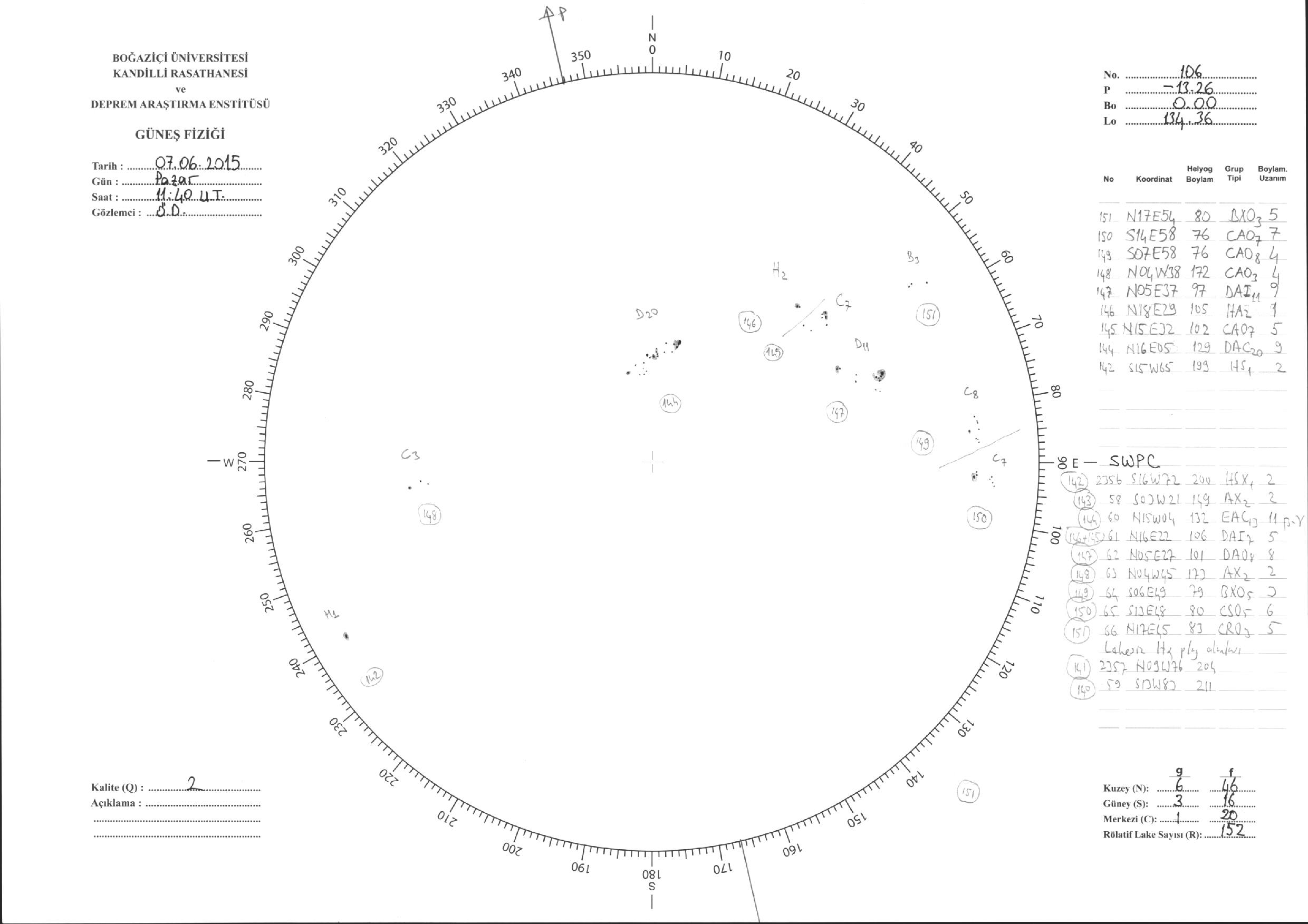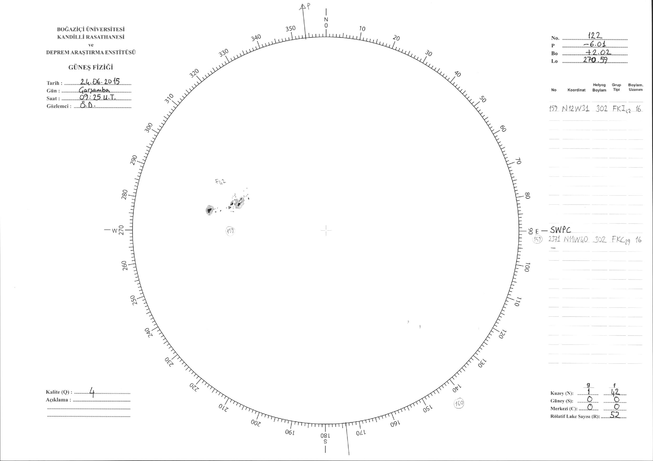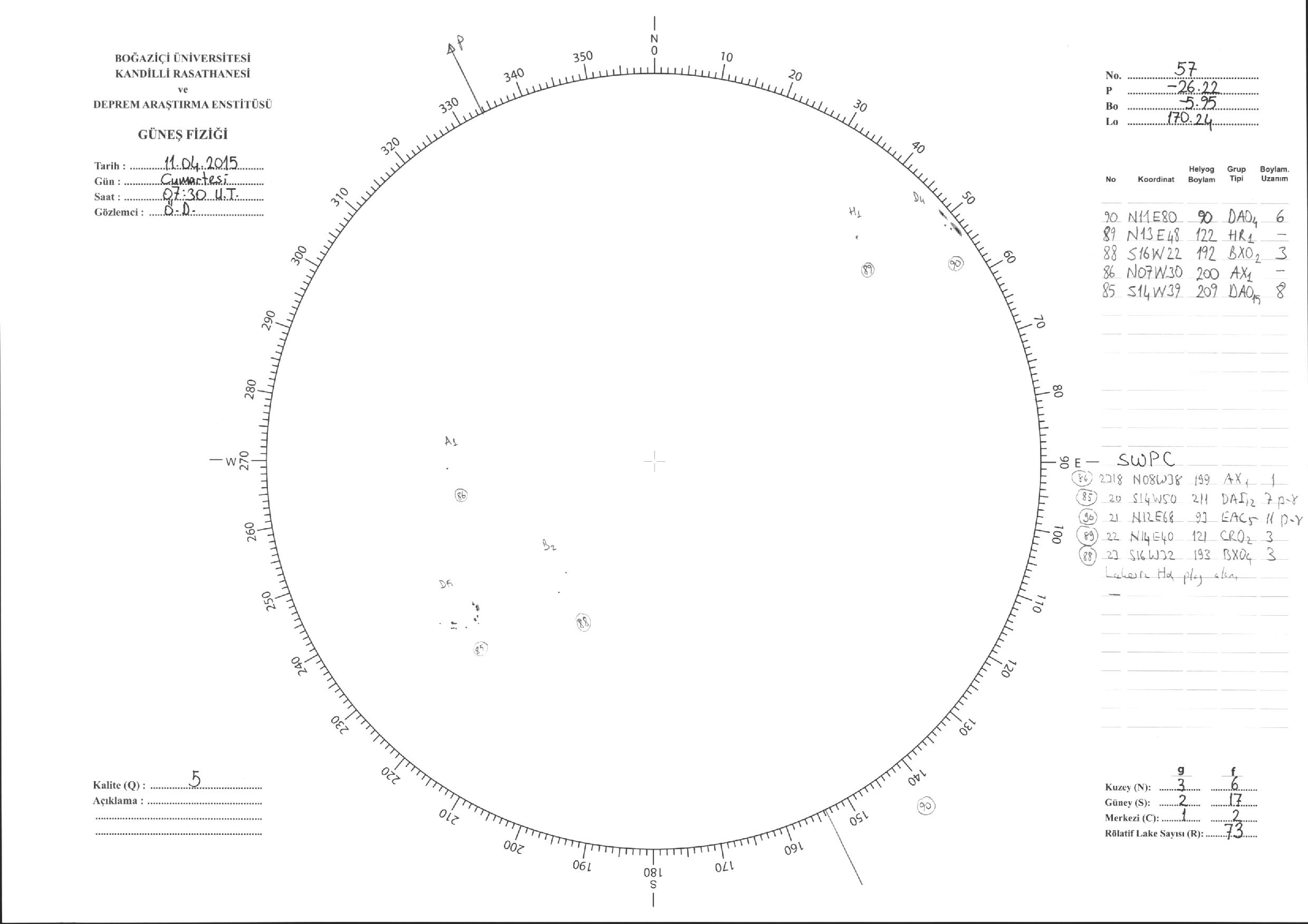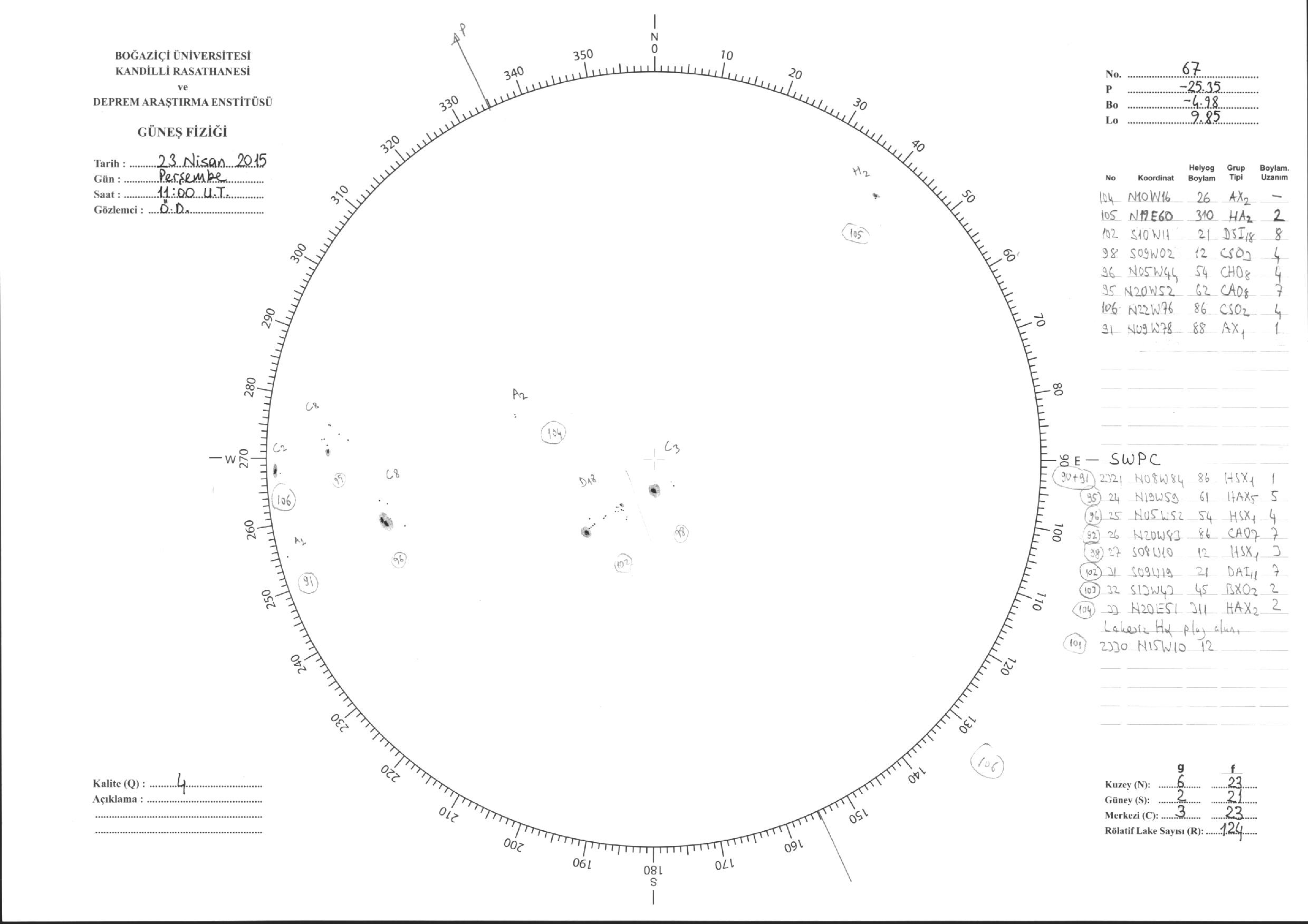 Güneş Lekesi Çizimleri / Kandilli Sunspot Drawings